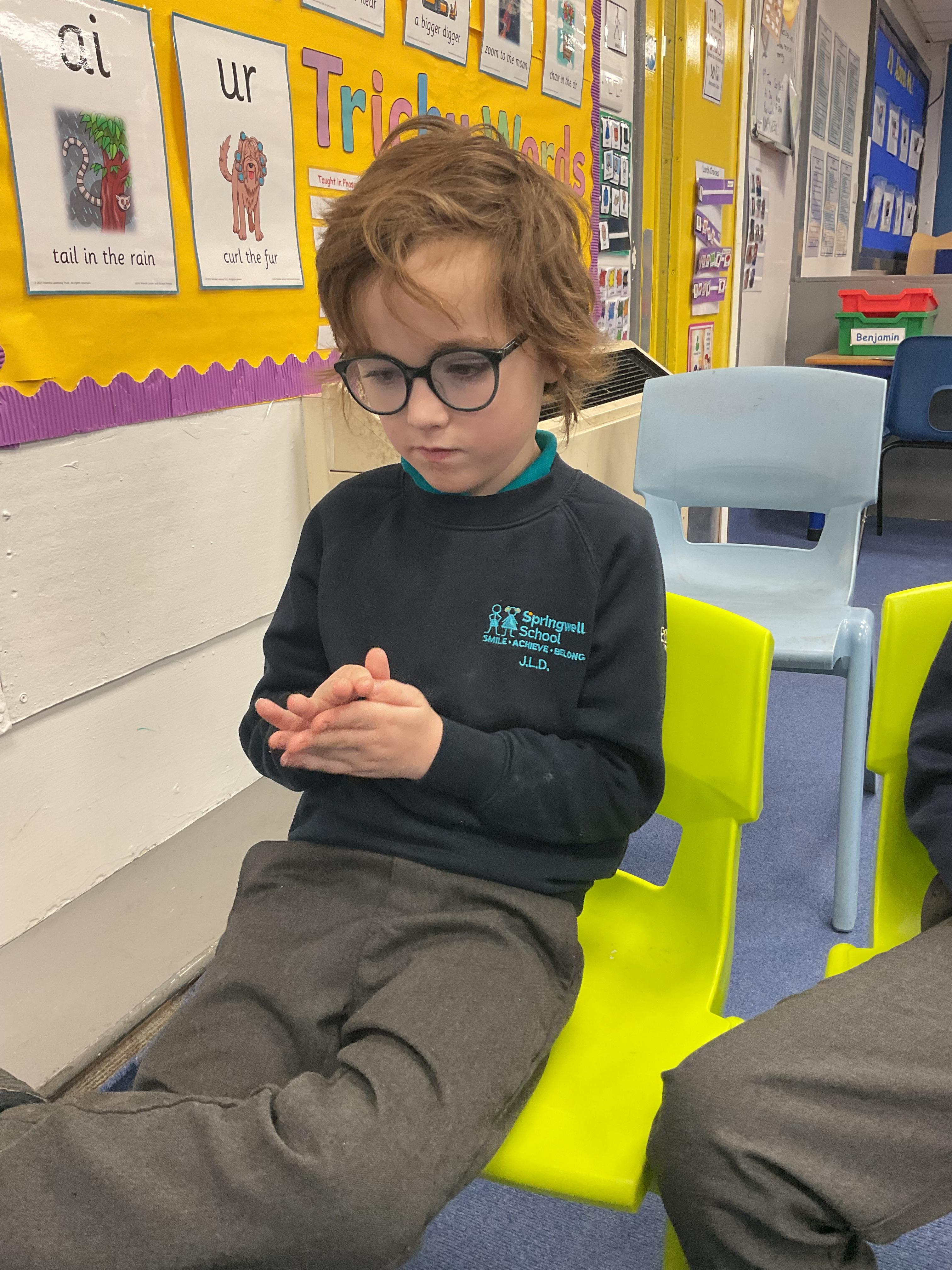 20.01.25 PHSE: CALM ME TIME! The children listened to the Chime with Jigsaw Jenie, as they looked at the relaxing pictures on the IWB, it helped them feel calm and peaceful. ​Jigsaw Jenie encouraged the children to take a big deep breath in through their noses and puff out their rainbow breath through their mouths.