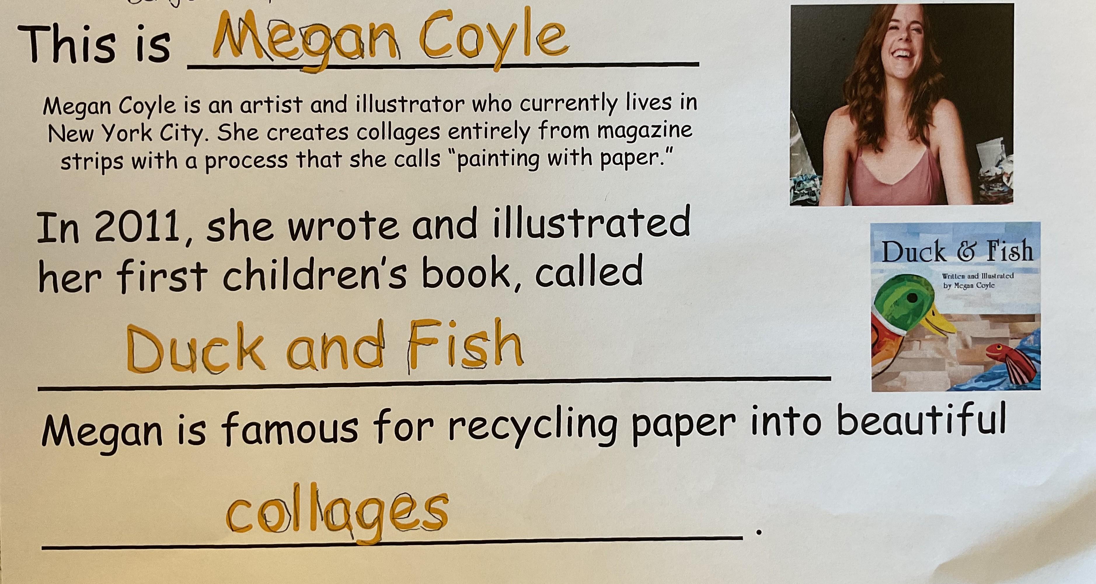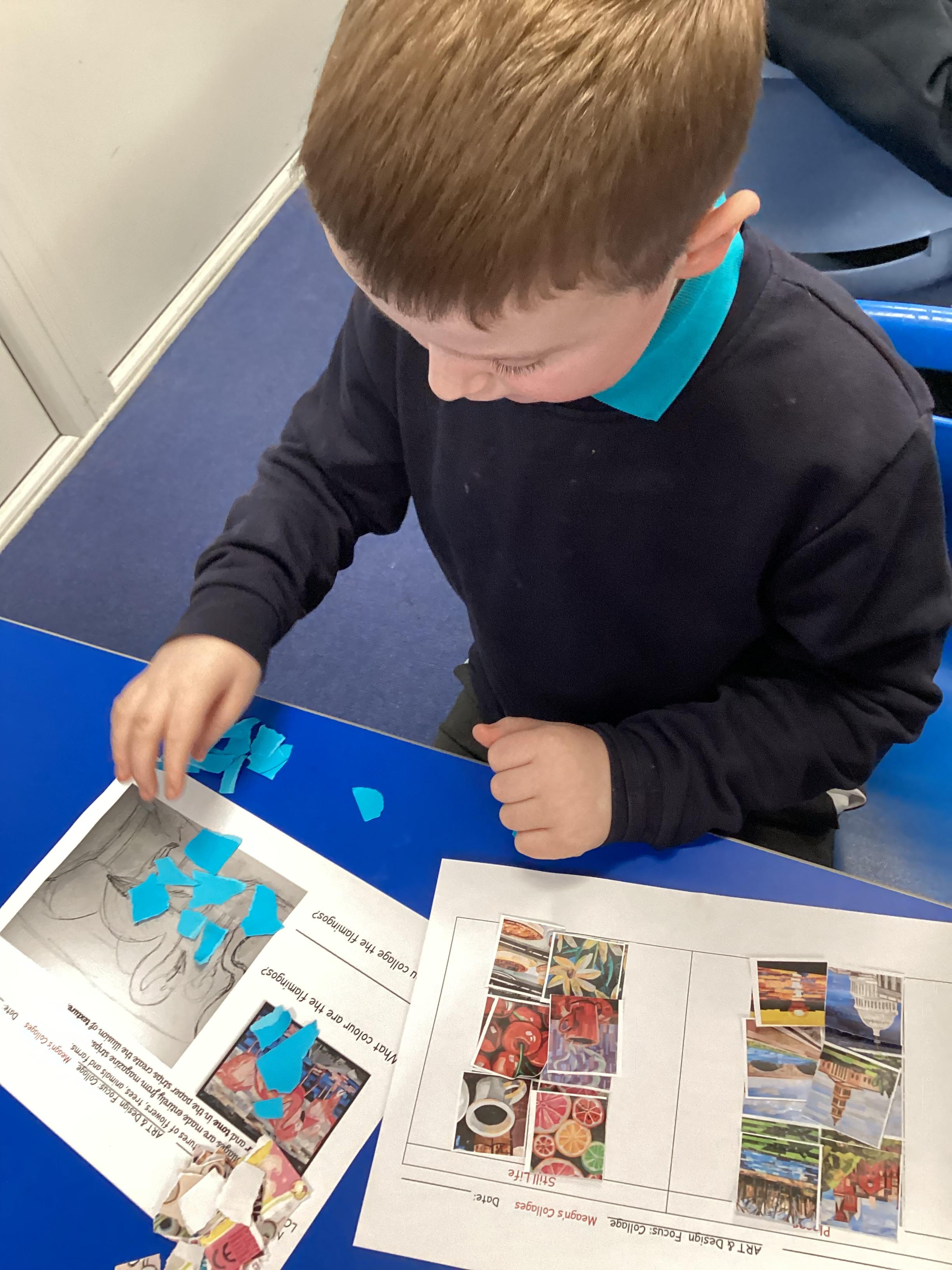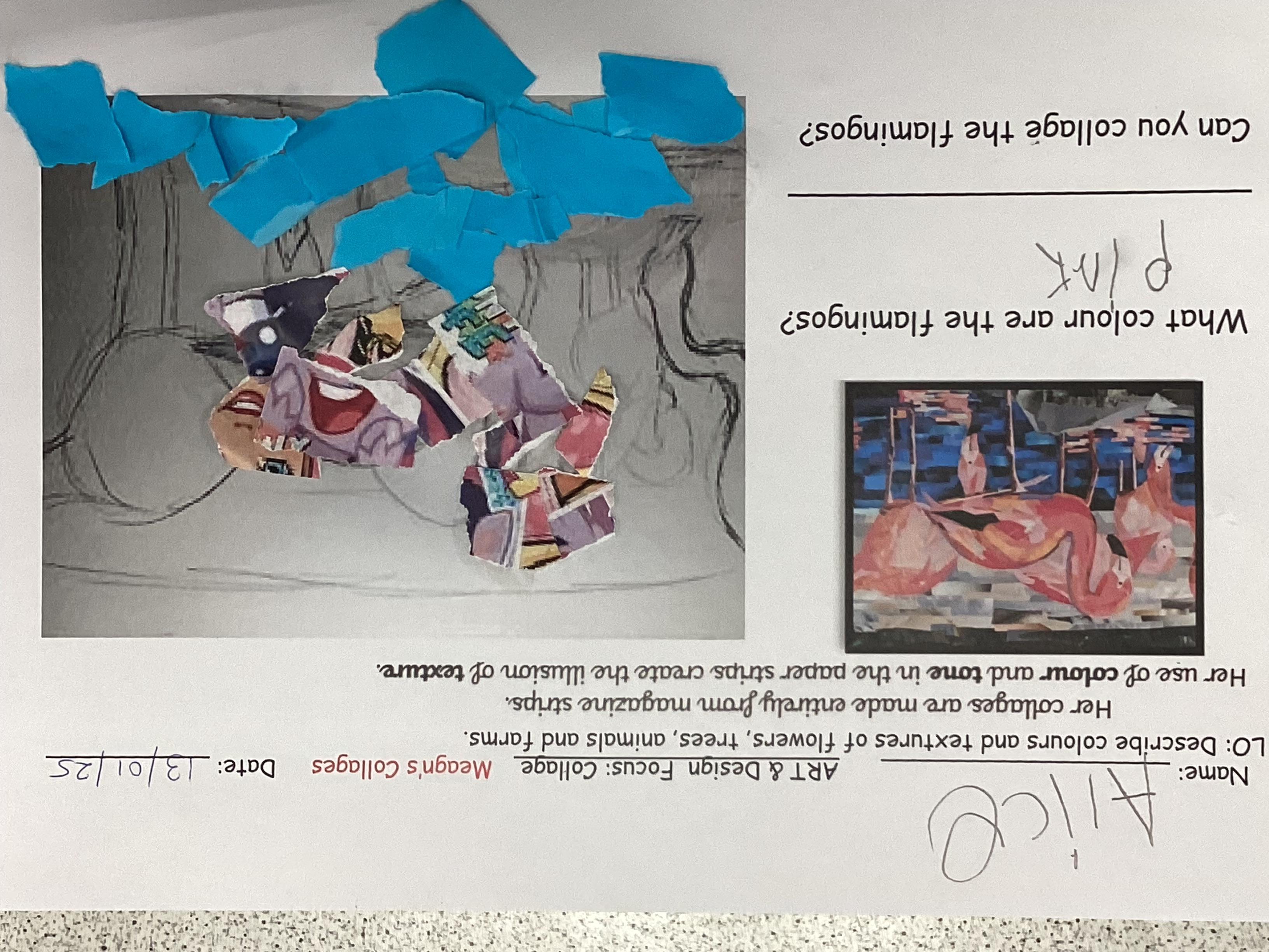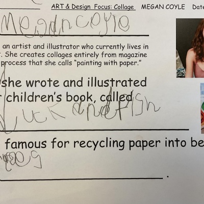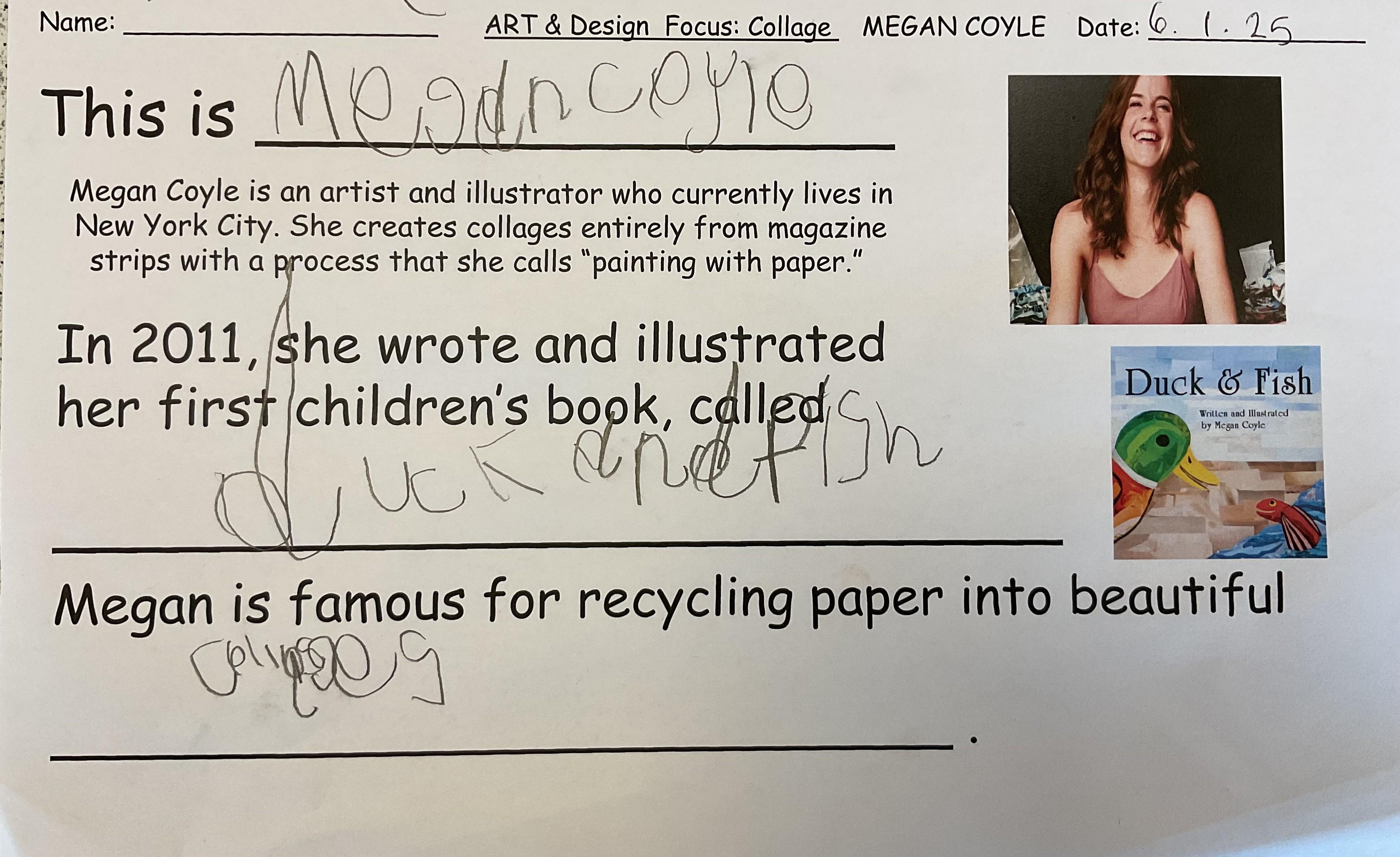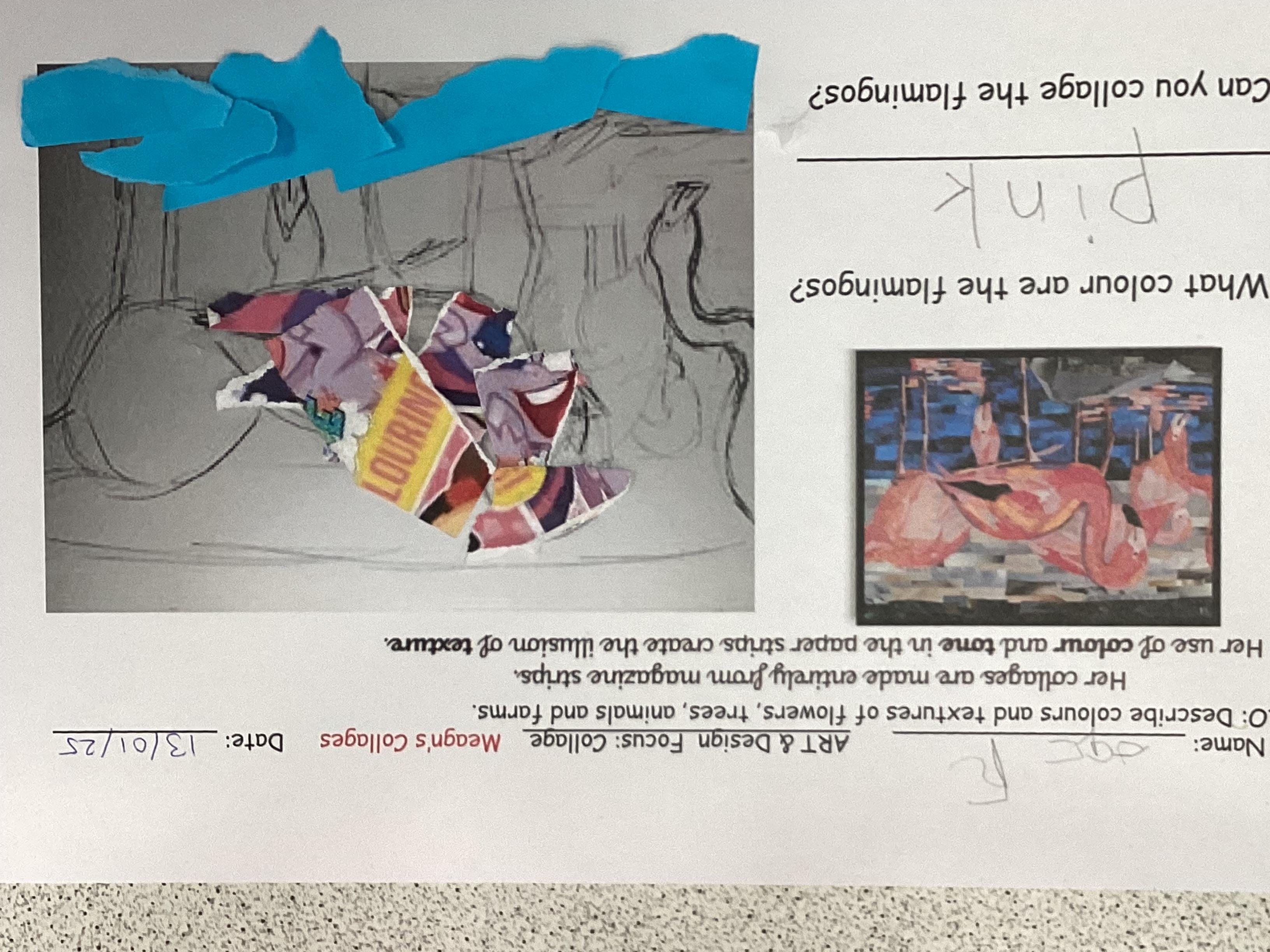 06.01.25 ART & DESIGN: We have been learning about the famous artist called Megan Coyle. She created collages entirely from magazine strips with a process that she calls "painting with paper."