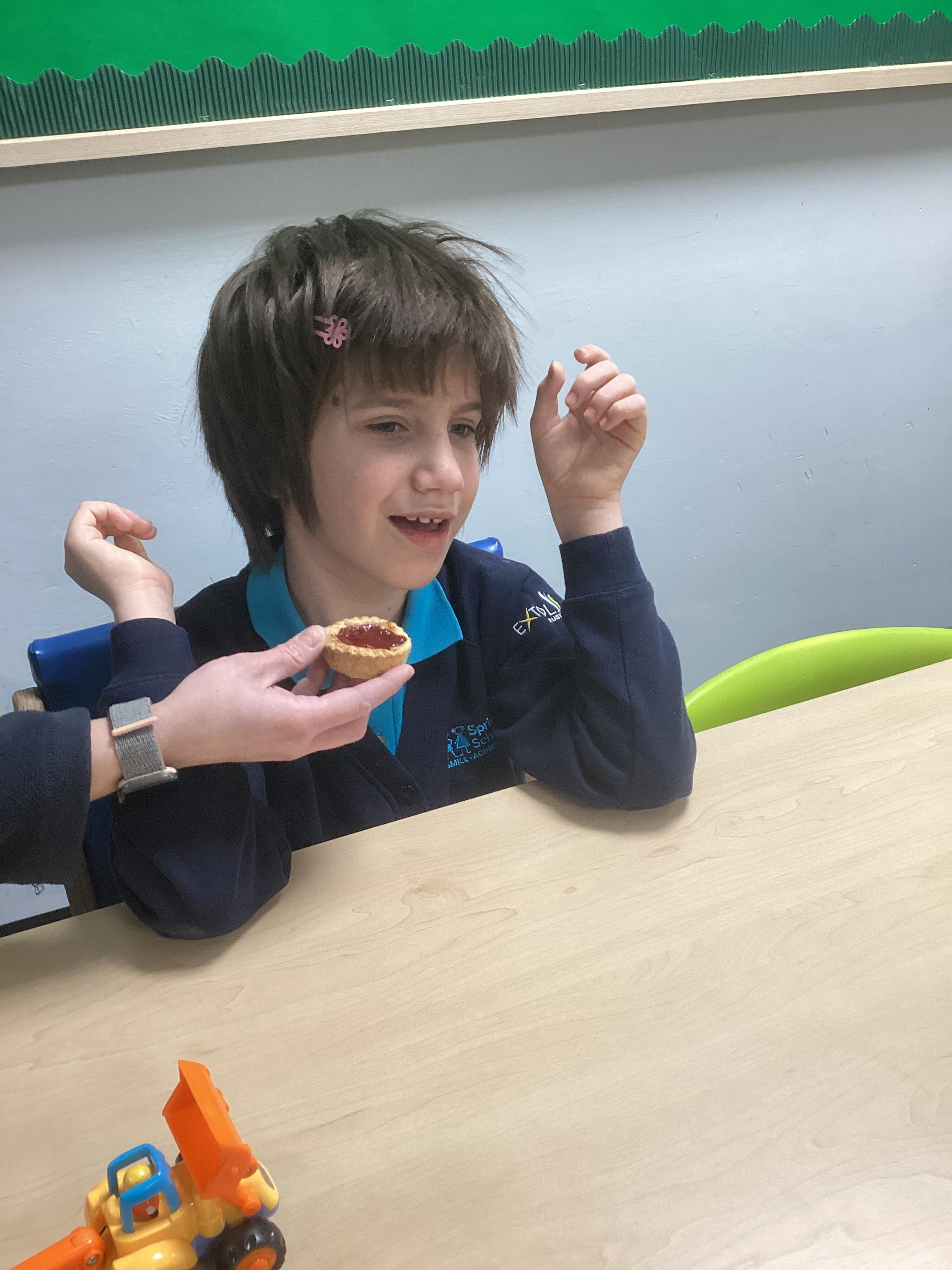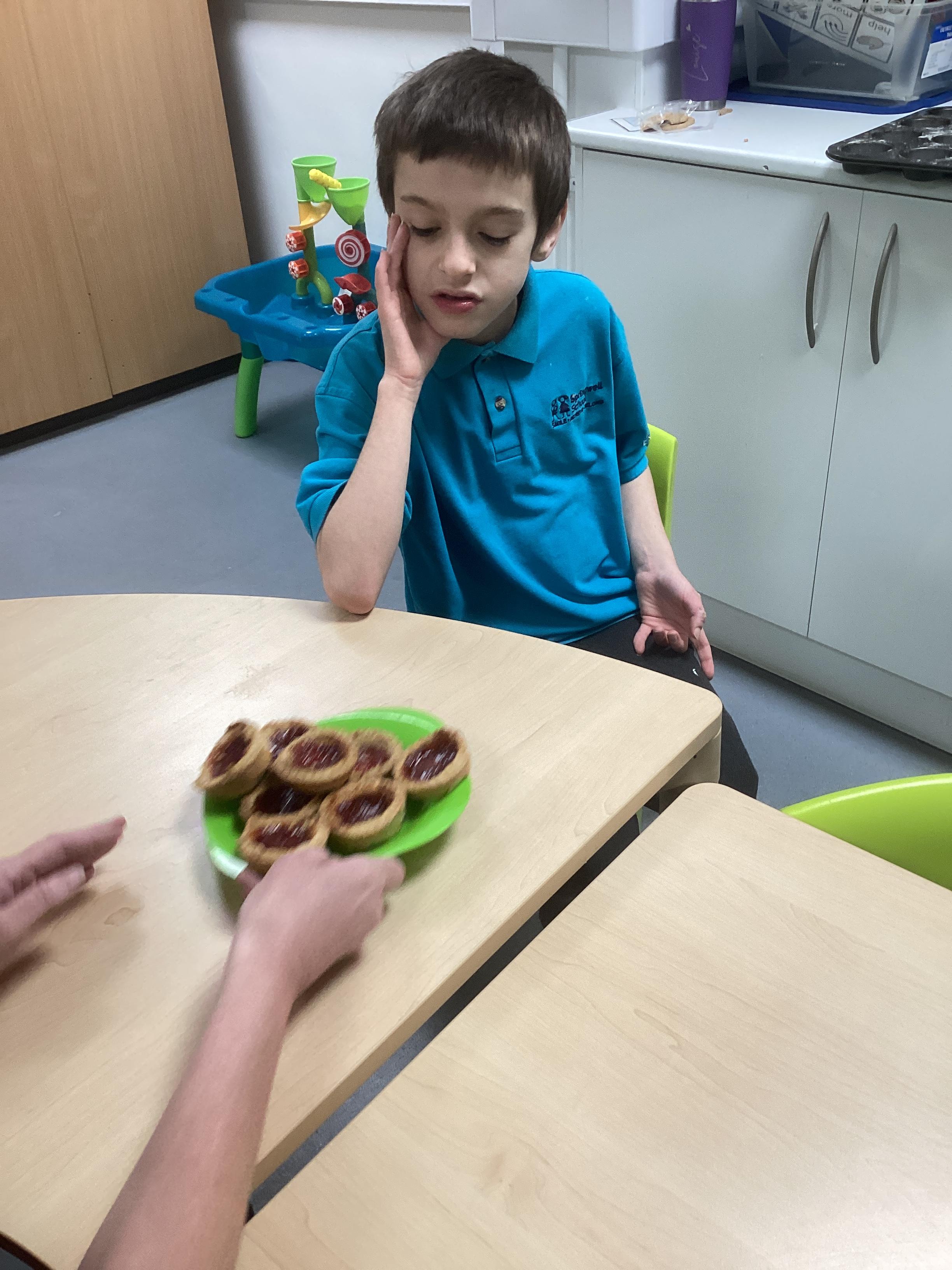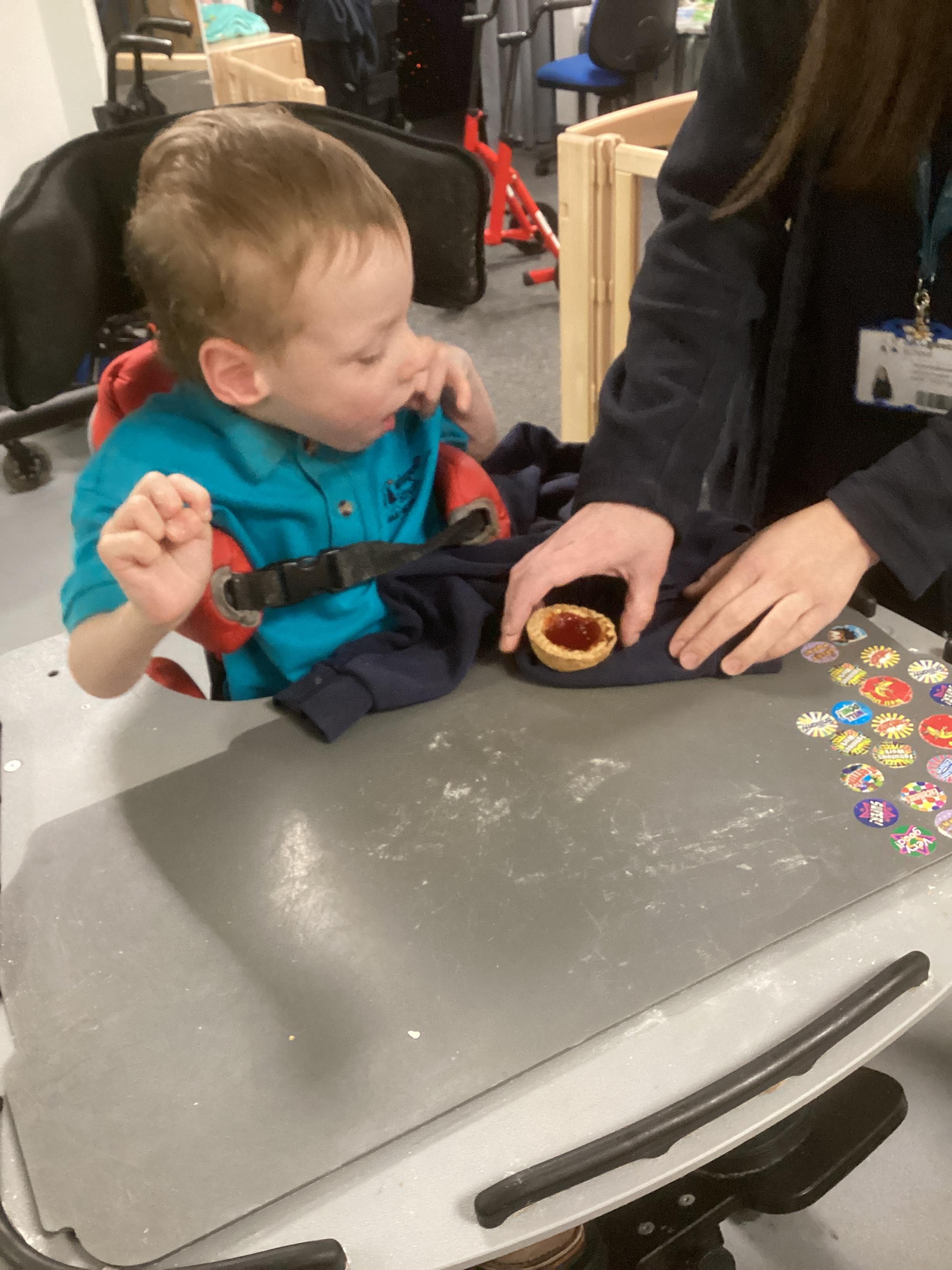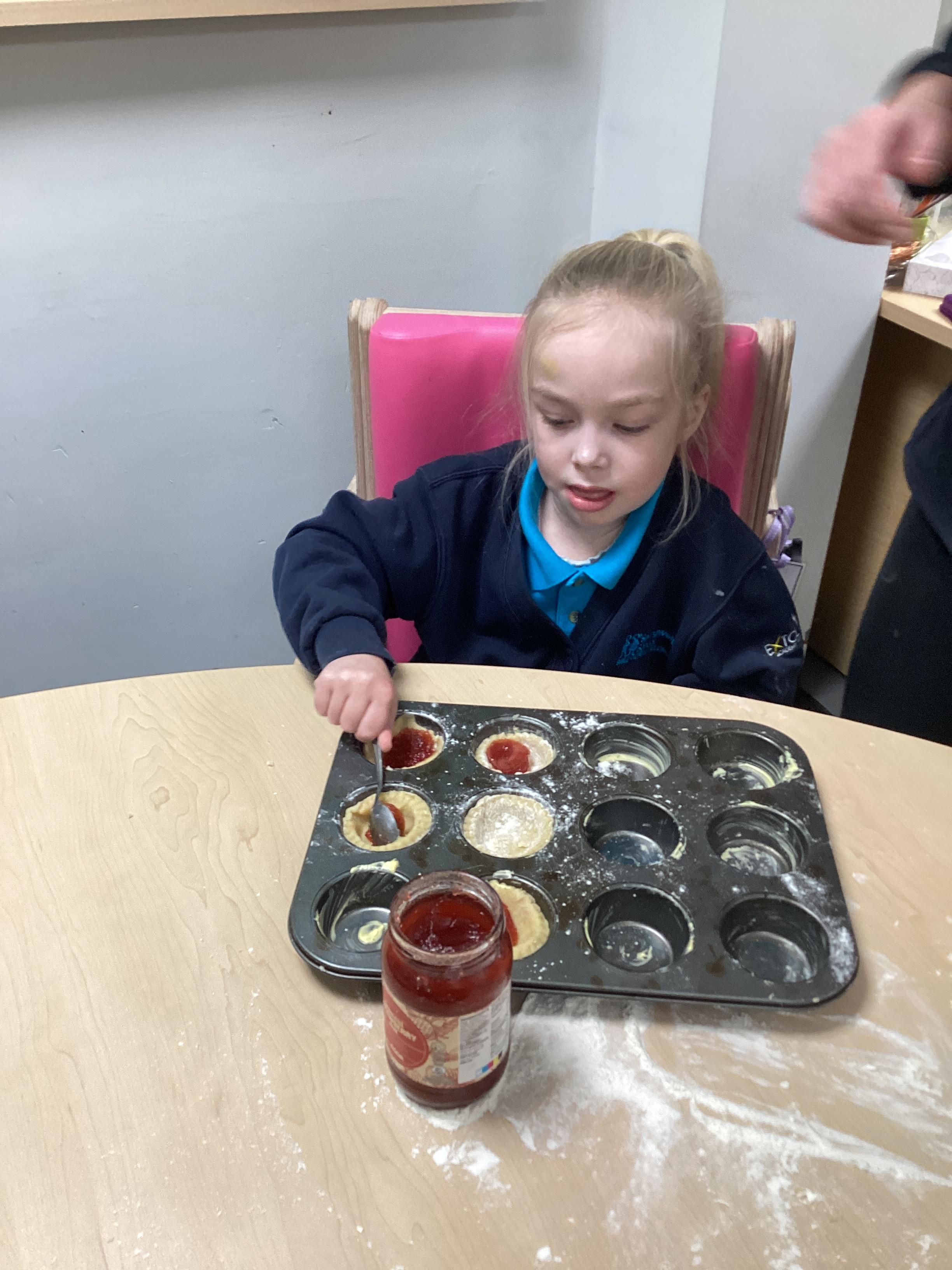 The children really enjoyed making strawberry jam tarts this morning. When they were cooked, all the children explored them using their senses and even had a taste of them. They said they were delicious!