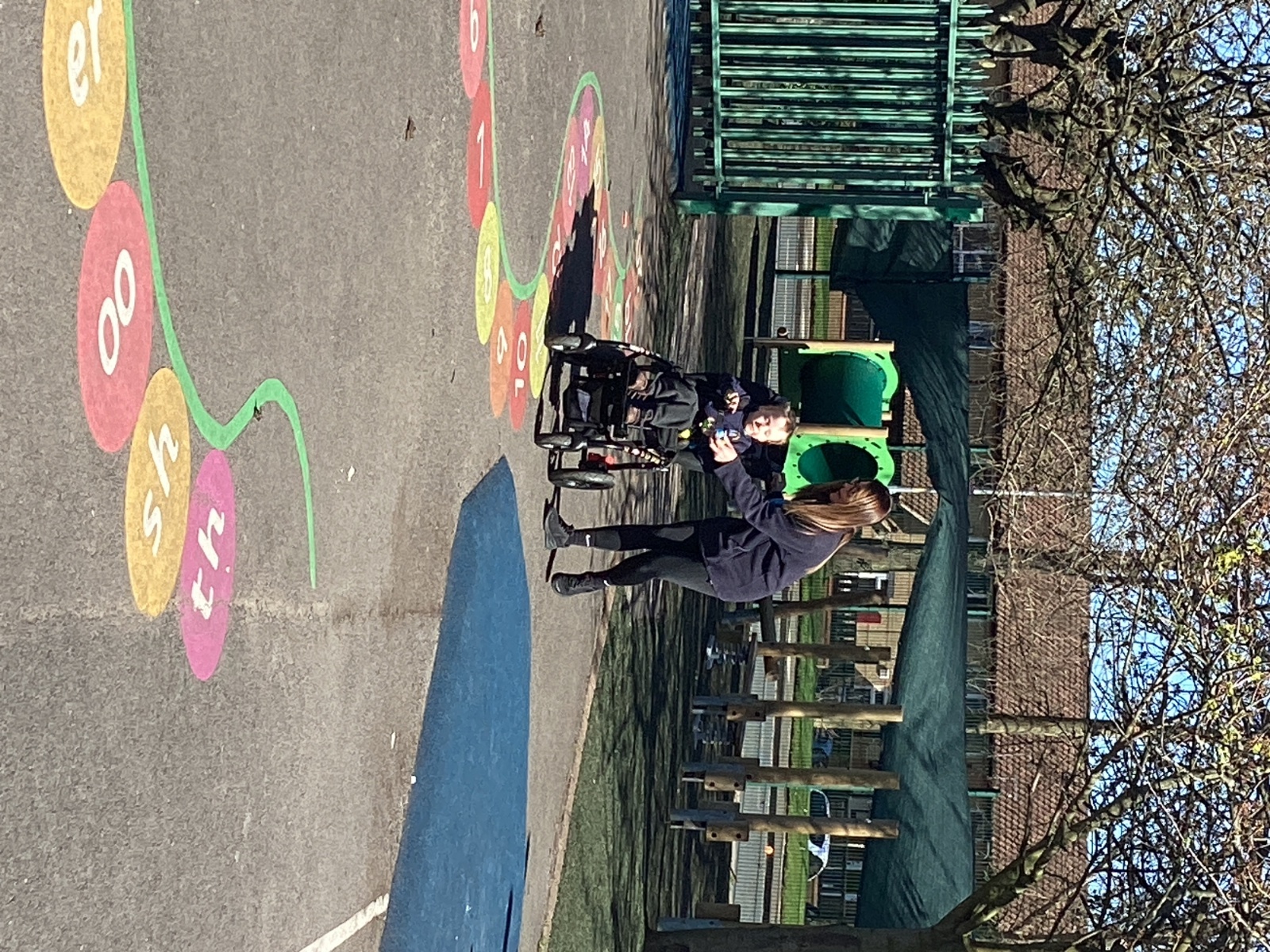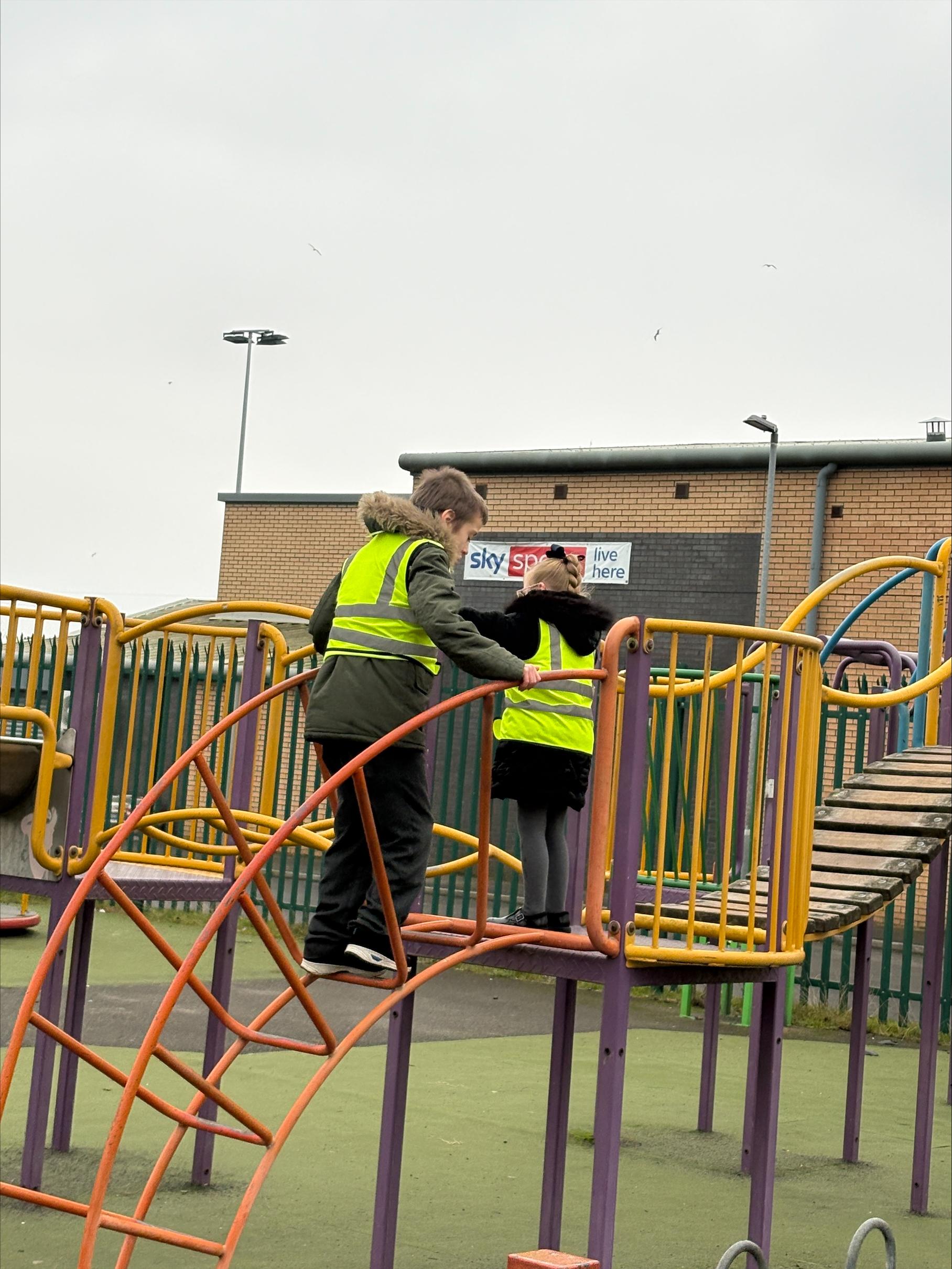 This afternoon, we had a walk to Grey Fields park. The children developed their physical skills as they played together on the different playground equipment.