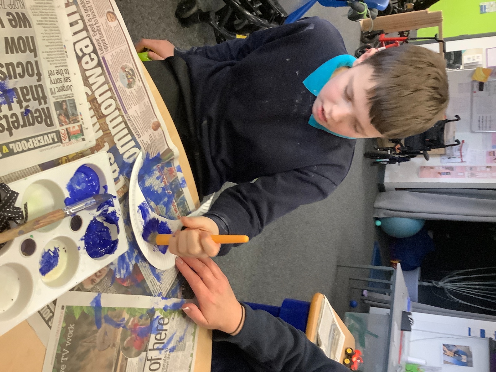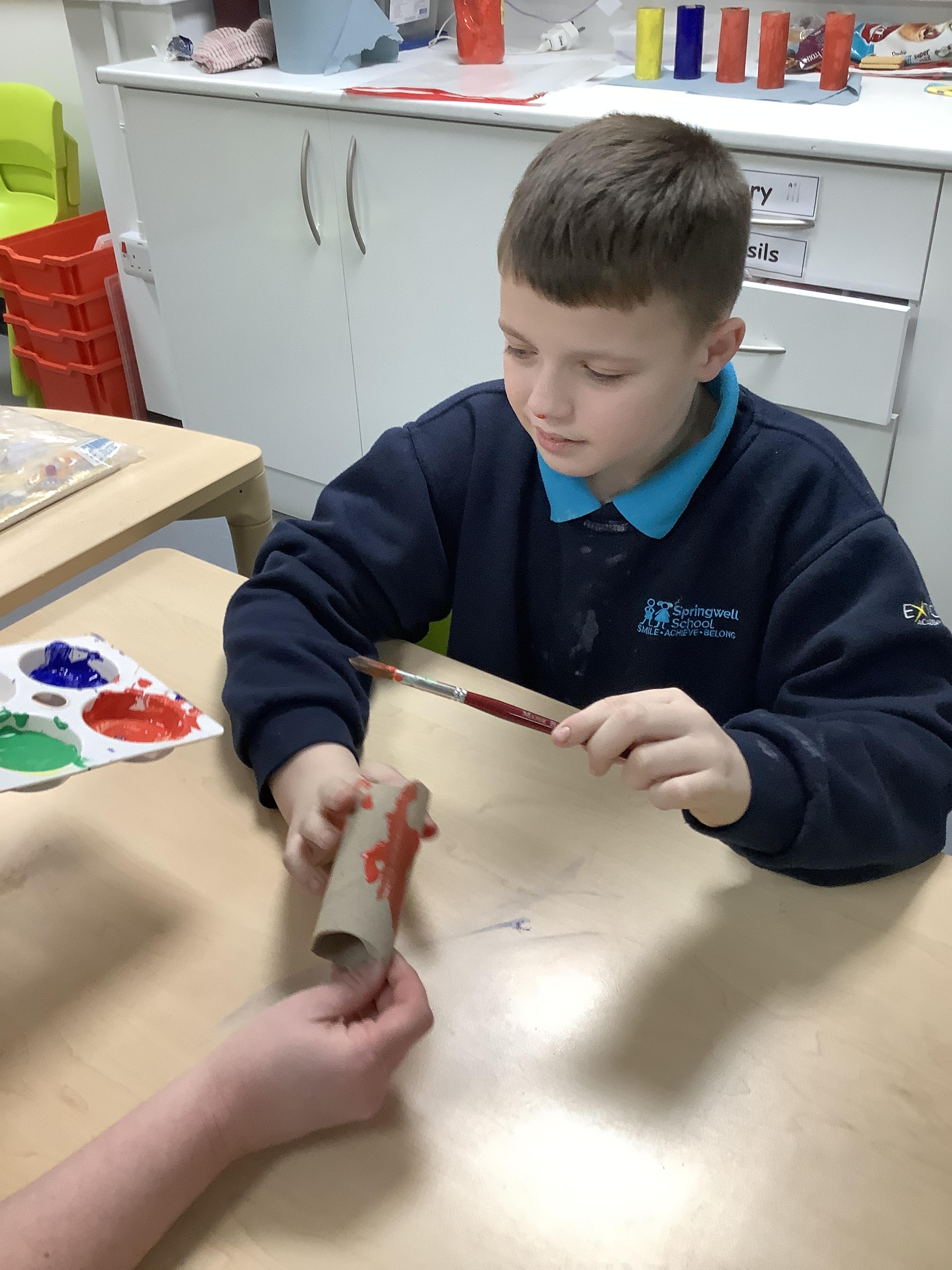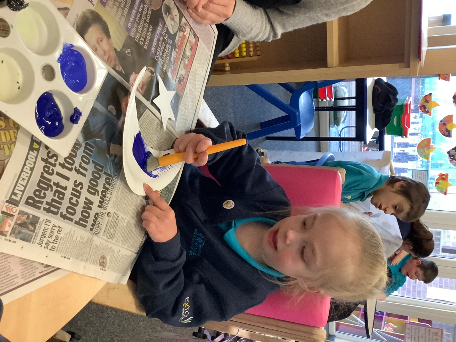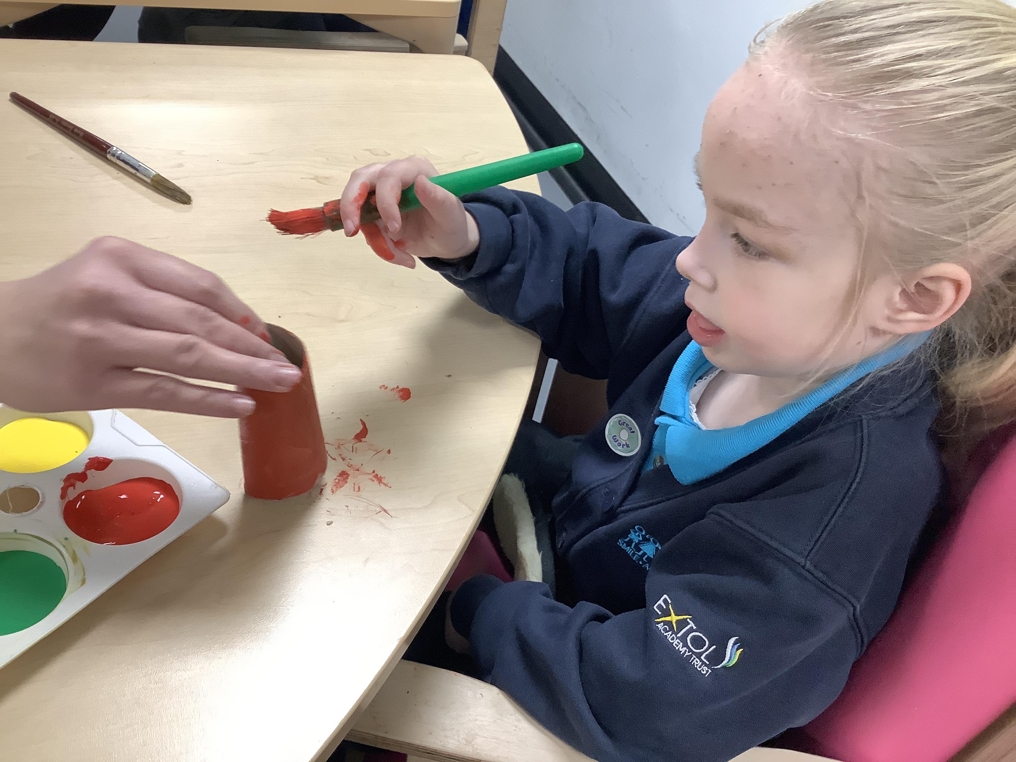 The children have been creating their own Easter cards by making an Easter bunny using their handprints.