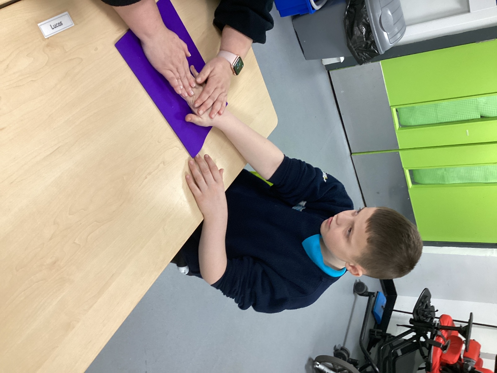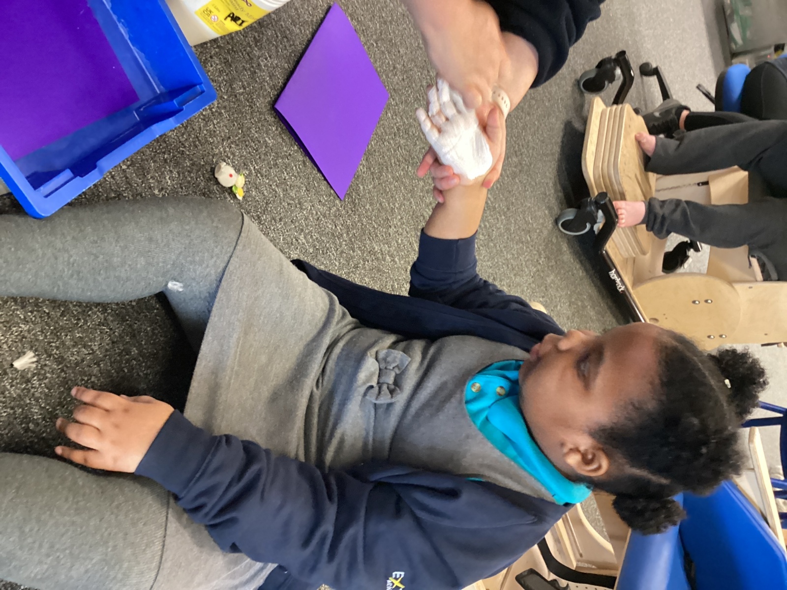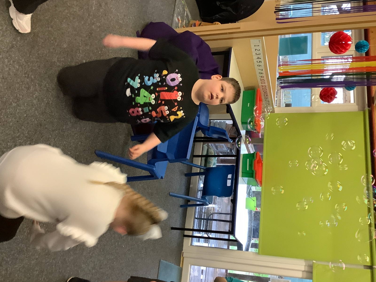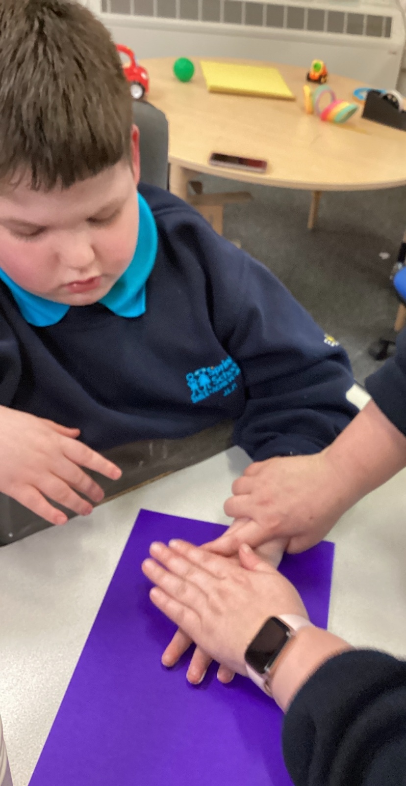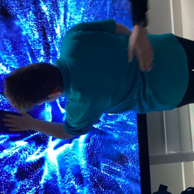 They have also been exploring the interactive whiteboard, using their hands to create colourful patterns and marks on the screen. The children were fascinated by how their movements changed the colours, lines and shapes, making it a fun and creative sensory experience.