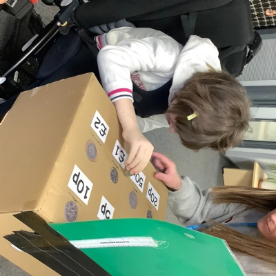 We took up  the challenge of ‘Dressing Up for Digits'. The children had the opportunity to come to school wearing an item of clothing with a number on it. Some children brought a donation in by bringing in some coins, identifying their value and posting them into our giant money box. The children participated in a variety of ‘number’ related activities all day.  We enjoyed singing the number rhyme: 'Five Fat Sausages' and then we made our own sausages in class!