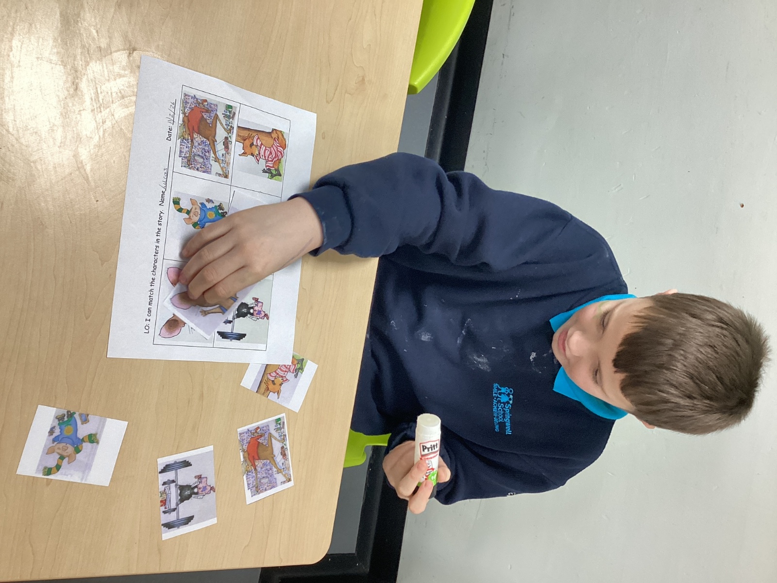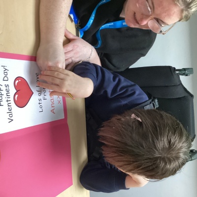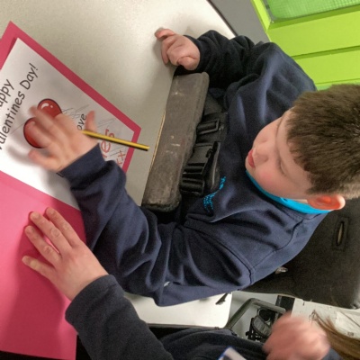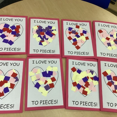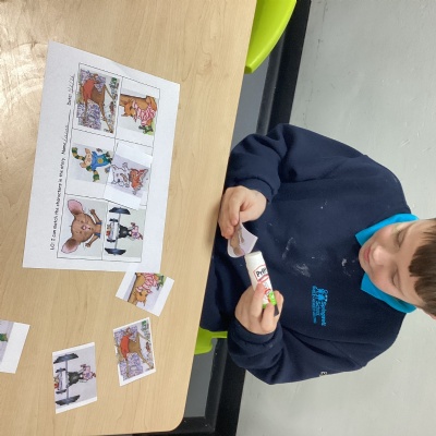 The children have been listening to the story 'Happy Valentine’s Day, Mouse'. They were able to identify all the different animal characters that appeared throughout the story. The children worked hard to match the pictures from the story, carefully looking at each image and thinking about where it belonged. In the book, the main character, Mouse, makes Valentine’s cards for all of his friends.