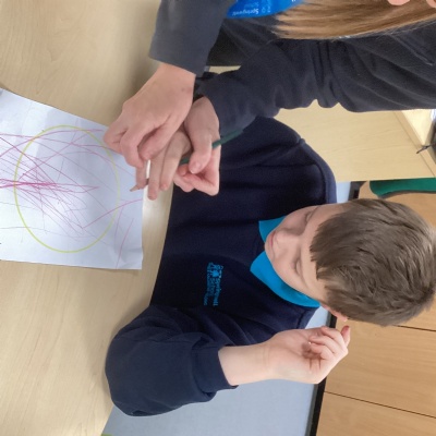 The children have been practising their handwriting skills, focusing on making continuous circular lines. They concentrated carefully as they repeated the round and round movements, helping to strengthen their fine motor control and develop the early skills needed for writing.