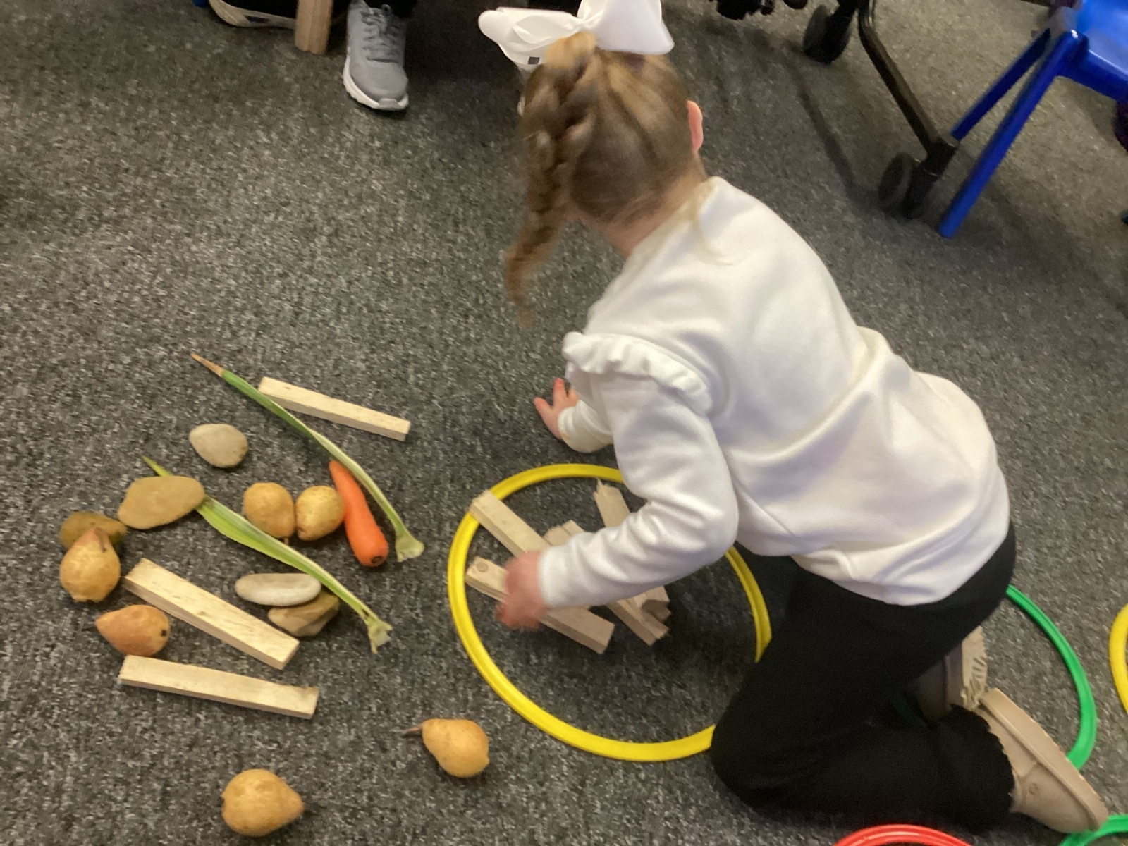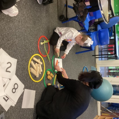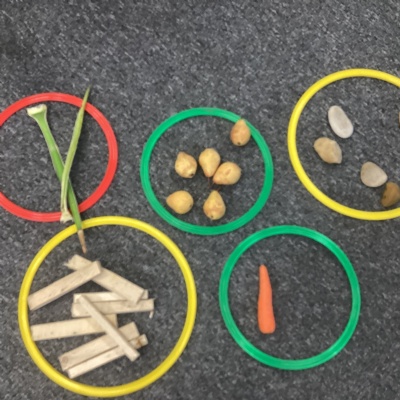 For our maths activity, the children took part in a 'walk, find, sort, and count' task. They walked around the room and outdoor area to find different objects, then worked together to sort them into groups. Once everything was sorted, the children counted how many items were in each group, practising their early number skills in a fun, active, and hands on way.