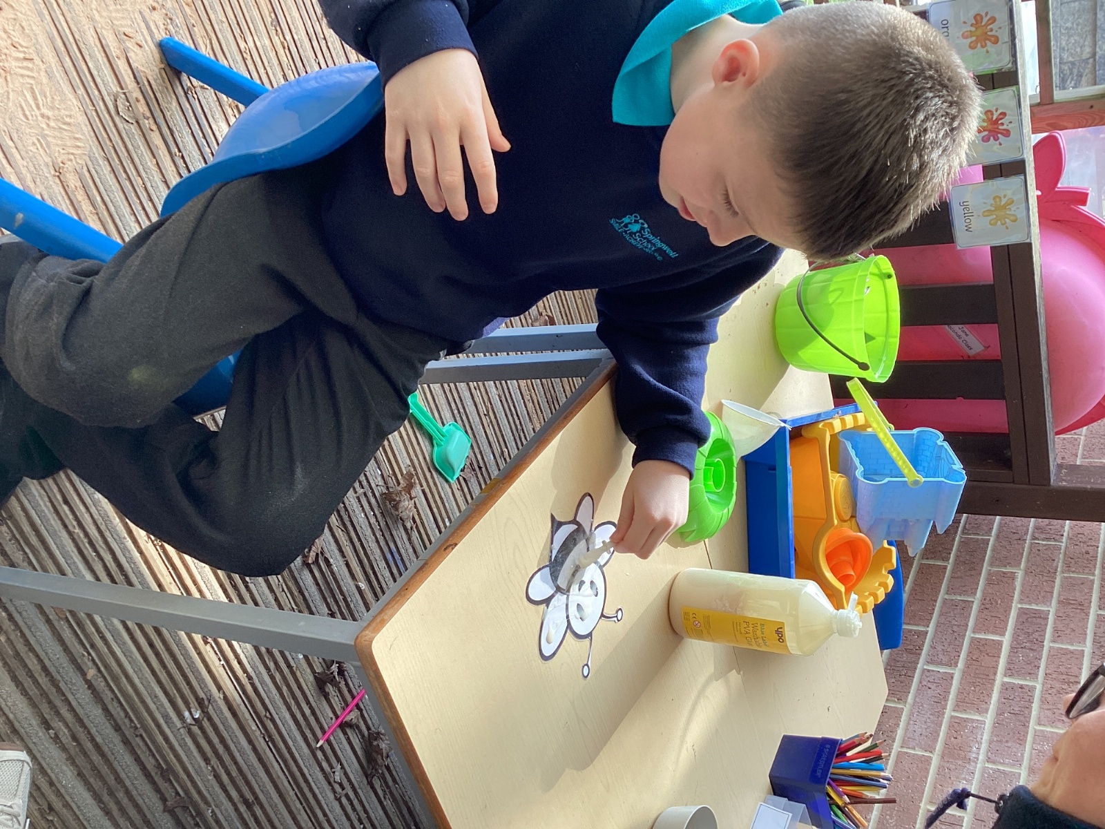 This morning we made a wonderful start. The children loved getting creative with their own bumblebee collages, carefully scrunching up black and yellow tissue paper to bring their bees to life.