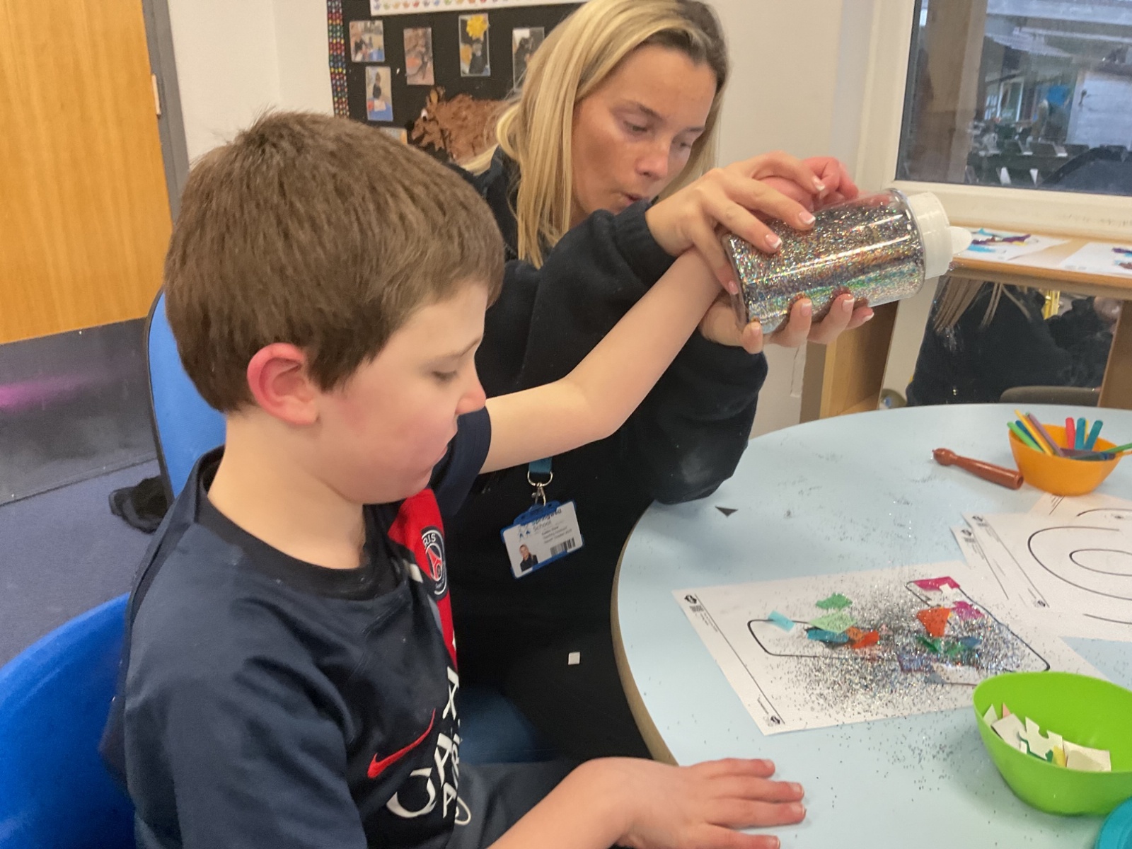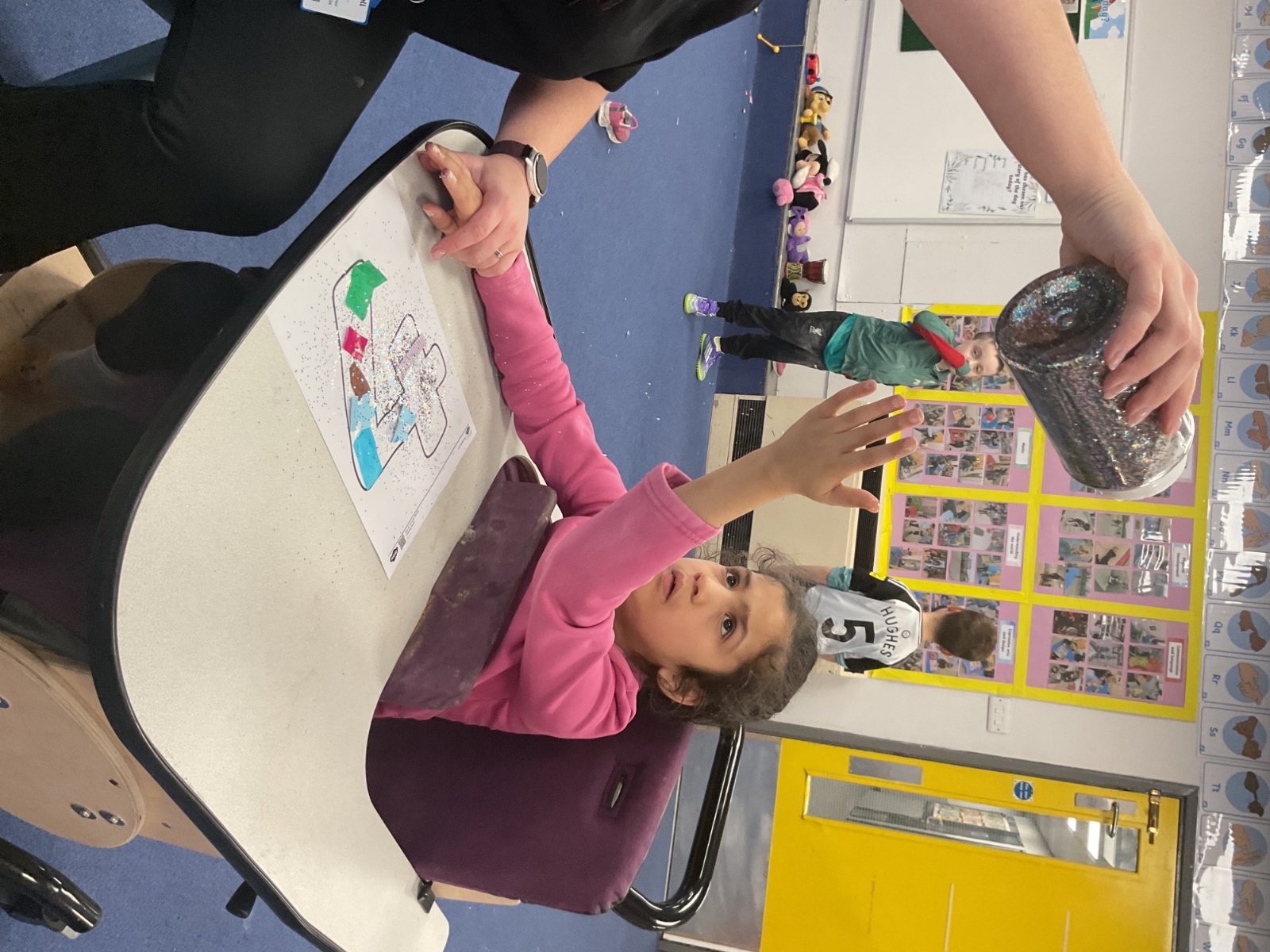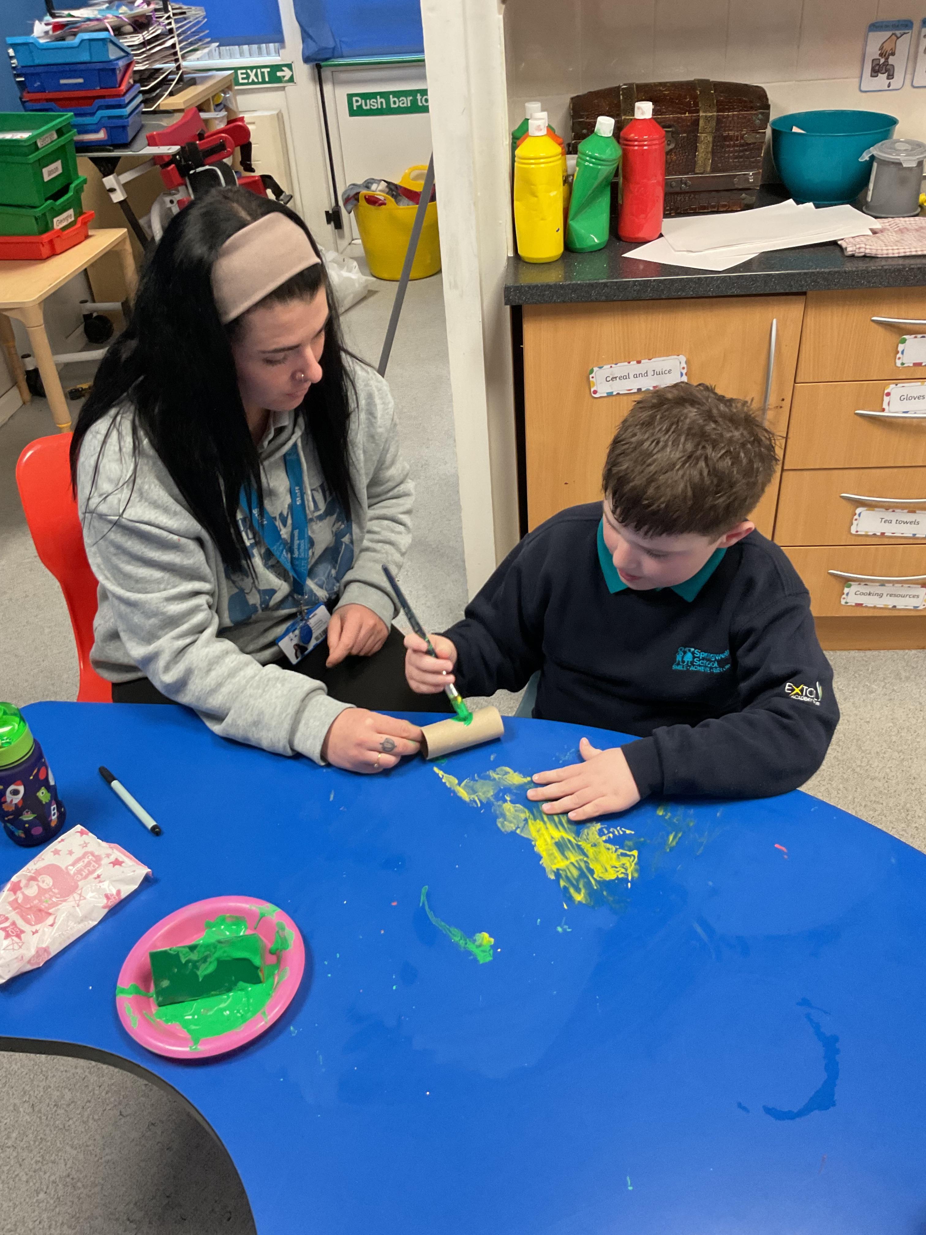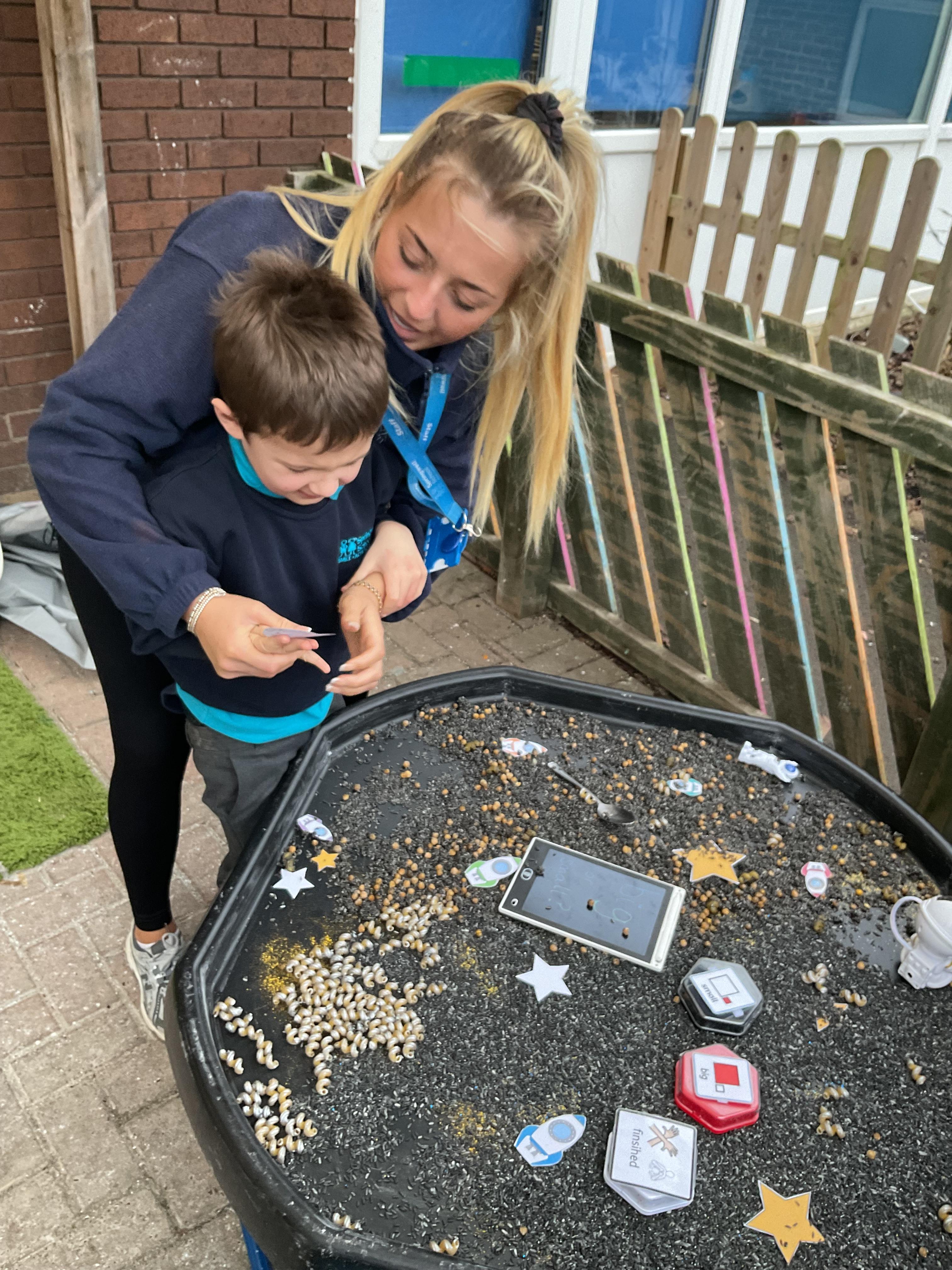 The children have had a wonderful creative and active week. We began the week with rebound bouncing on the trampoline, building confidence, coordination, and having plenty of fun. Their smiles said it all. In art, the children created their very own aliens, inspired by our current story. They explored shape, colour and imagination, producing some fantastic characters. We also continued practising our mark-making skills, using a palmar grasp to make lines and circles. Midweek, we ventured out into the community with a visit to Lidl to collect ingredients for cooking. The children loved the checkout process, watching items being scanned and even having a go at paying themselves. Back in class, everyone worked hard on their individual workbox activities, showing focus and independence. We finished the week with a relaxing swimming session, giving the children a calm and enjoyable end to a busy few days. It’s been a fantastic week of learning, exploring and having fun together.