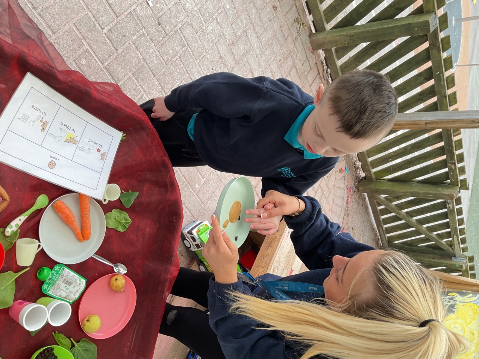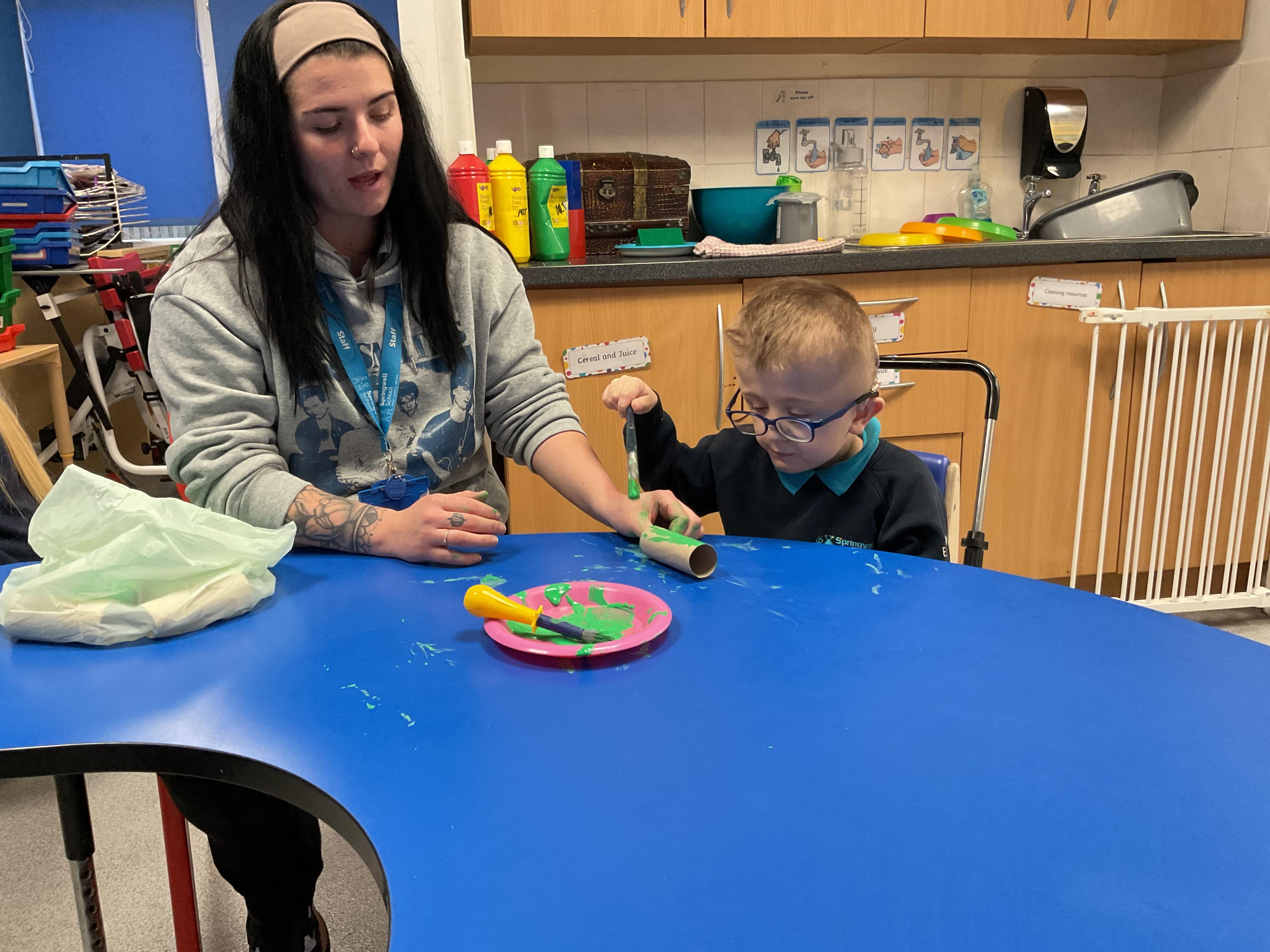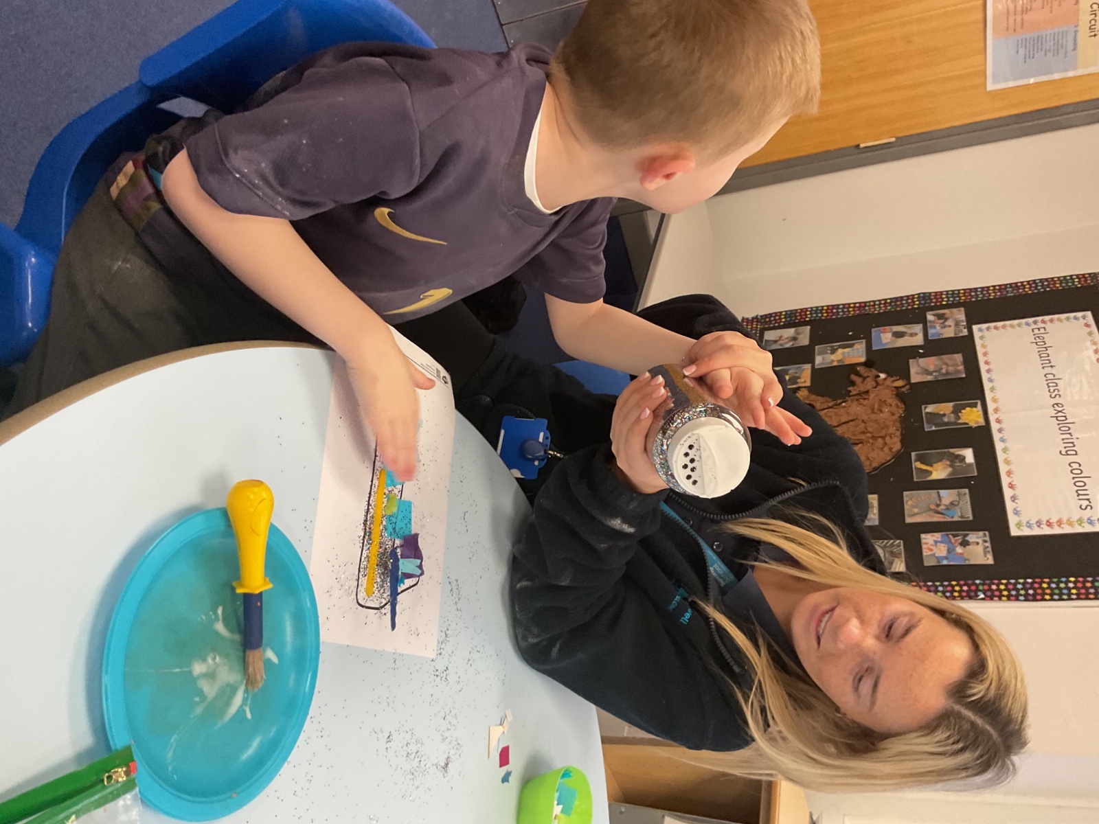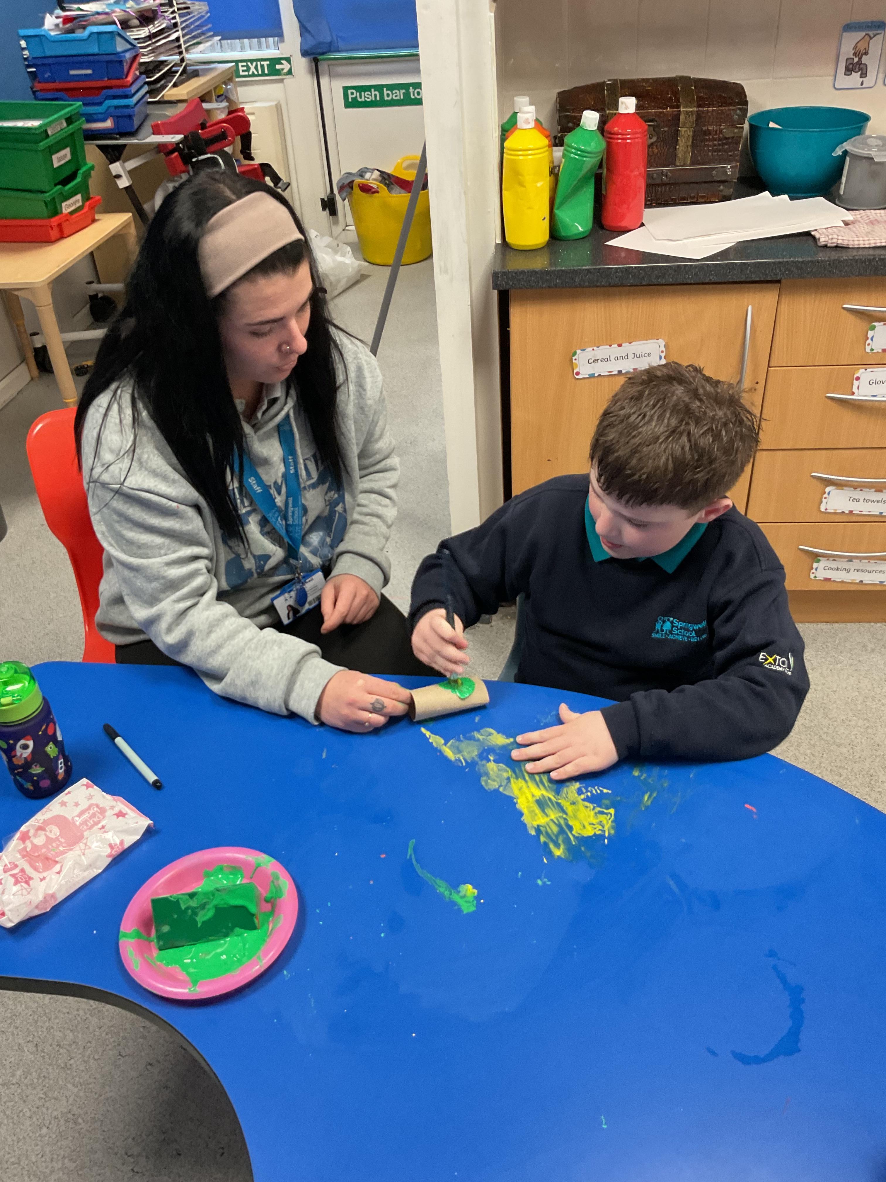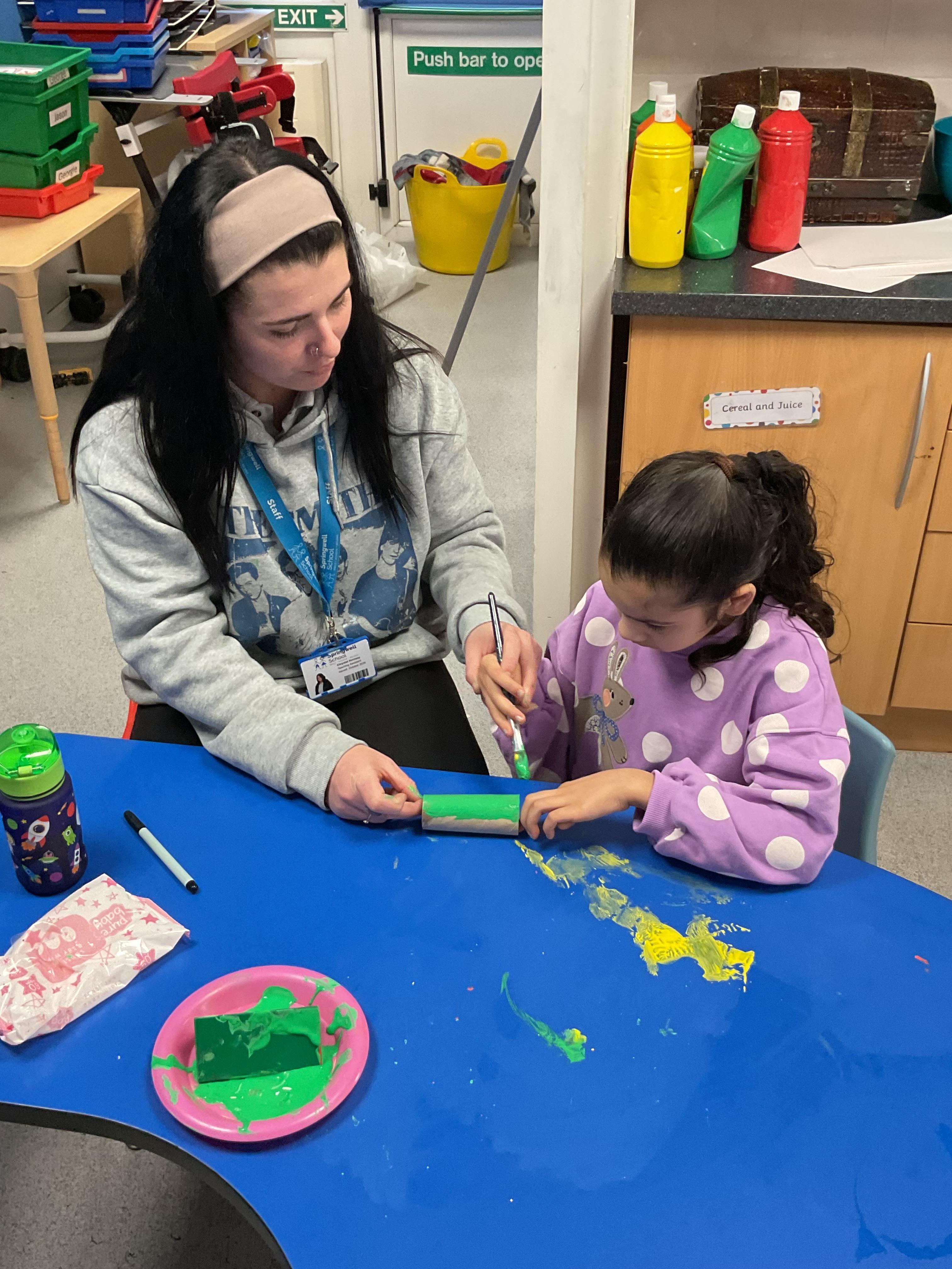 The children have had a wonderful creative and active week. We began the week with rebound bouncing on the trampoline, building confidence, coordination, and having plenty of fun. Their smiles said it all. In art, the children created their very own aliens, inspired by our current story. They explored shape, colour and imagination, producing some fantastic characters. We also continued practising our mark-making skills, using a palmar grasp to make lines and circles. Midweek, we ventured out into the community with a visit to Lidl to collect ingredients for cooking. The children loved the checkout process, watching items being scanned and even having a go at paying themselves. Back in class, everyone worked hard on their individual workbox activities, showing focus and independence. We finished the week with a relaxing swimming session, giving the children a calm and enjoyable end to a busy few days. It’s been a fantastic week of learning, exploring and having fun together.