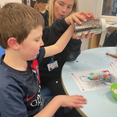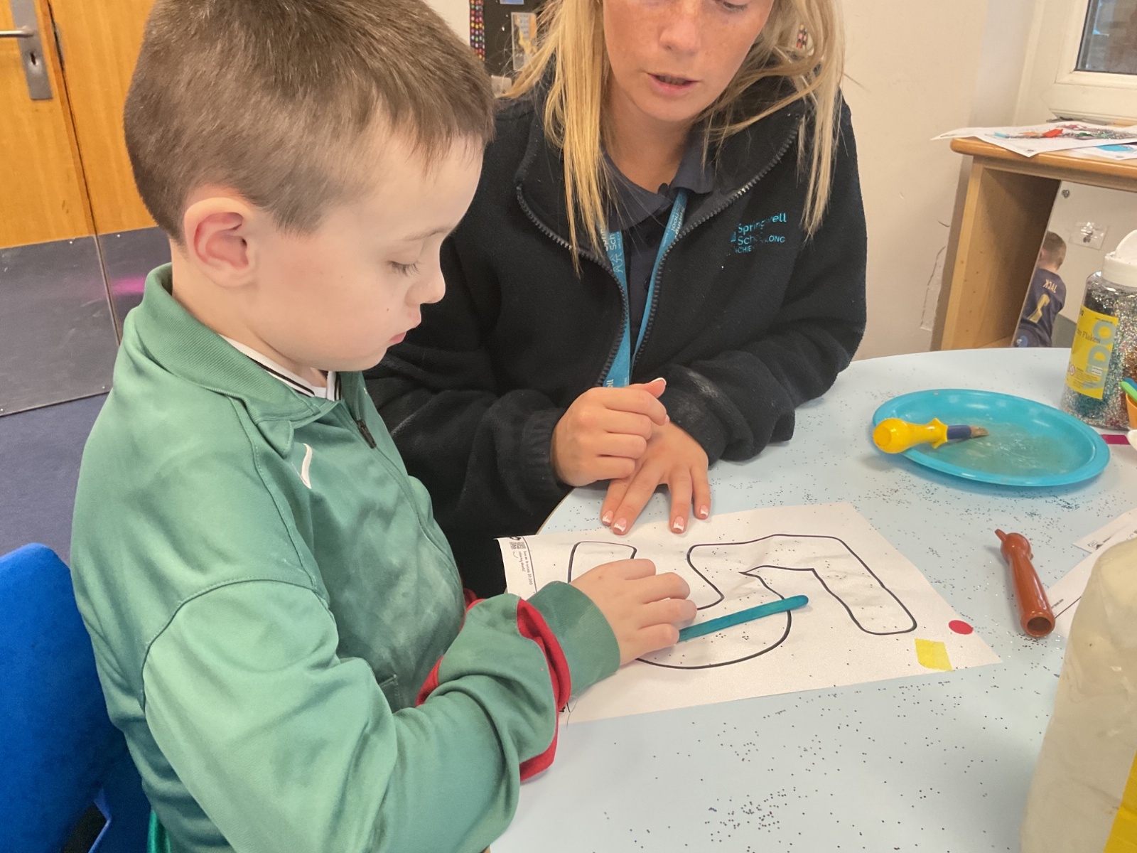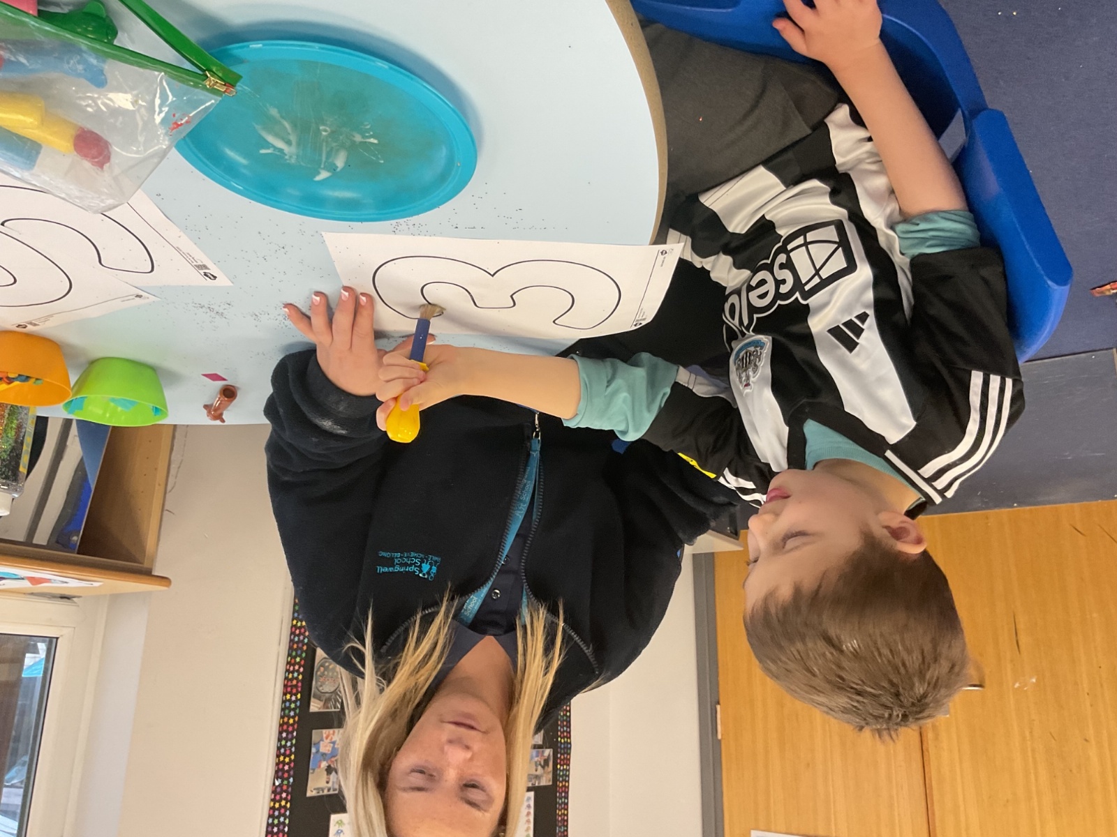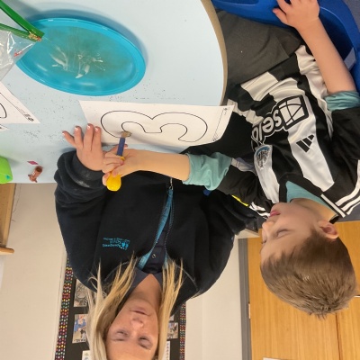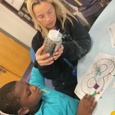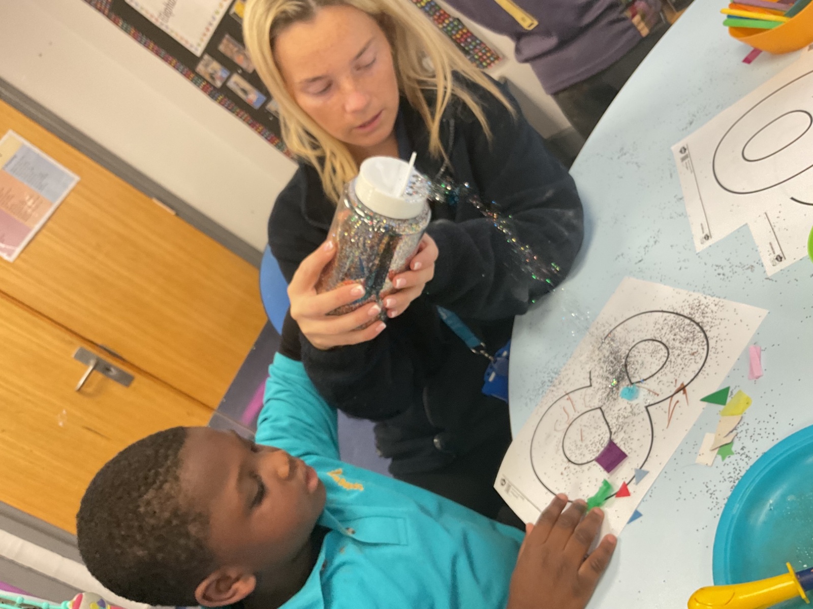 We also celebrated Number Day, which brought creativity into the classroom. The children proudly placed their donations into the box at the front of school. The children then enjoyed diving into a range of number‑themed activities. Using paint, glue, and plenty of glitter, they created their favourite numbers in bright, sparkling designs. It was messy, joyful and full of learning.