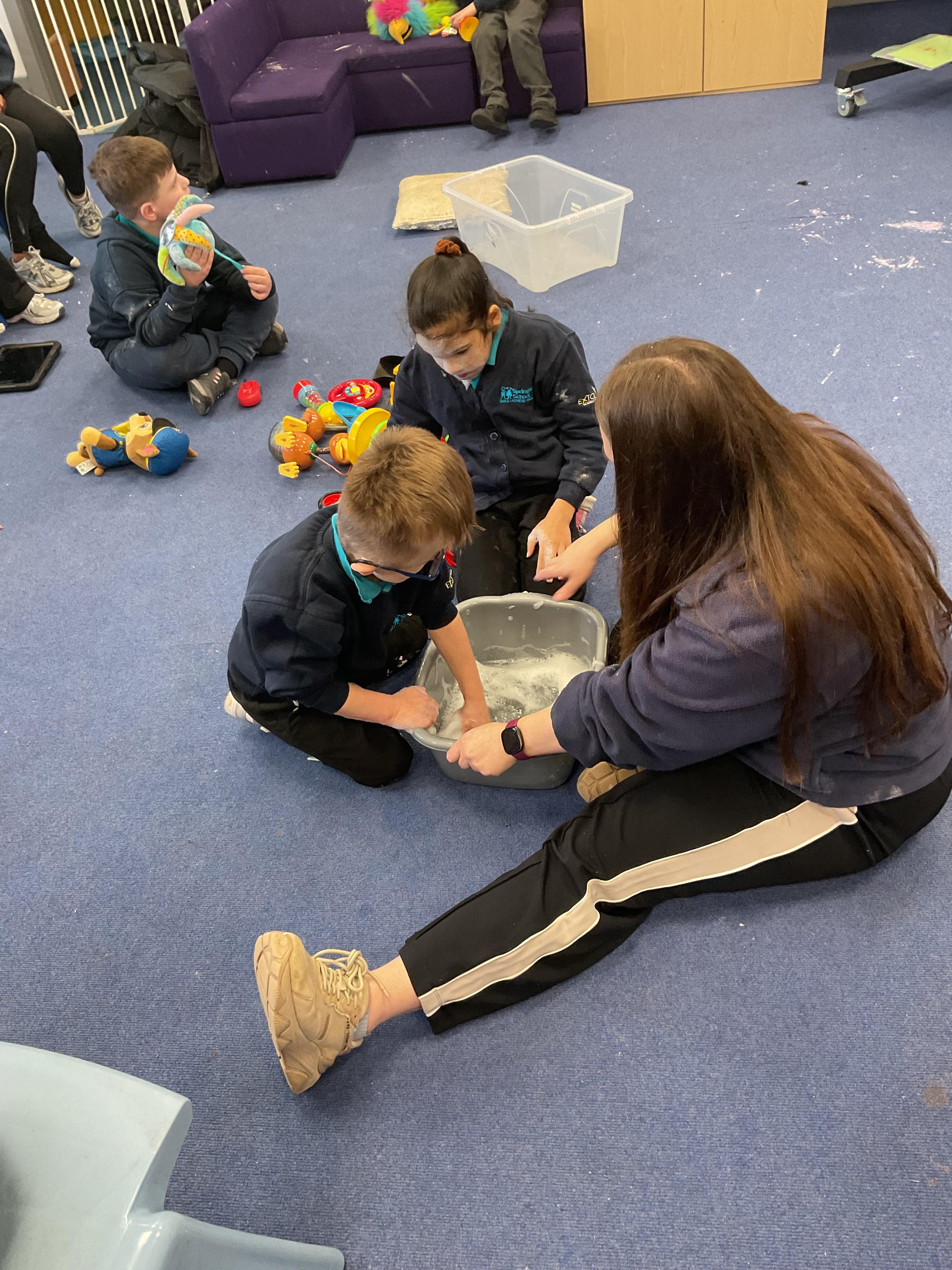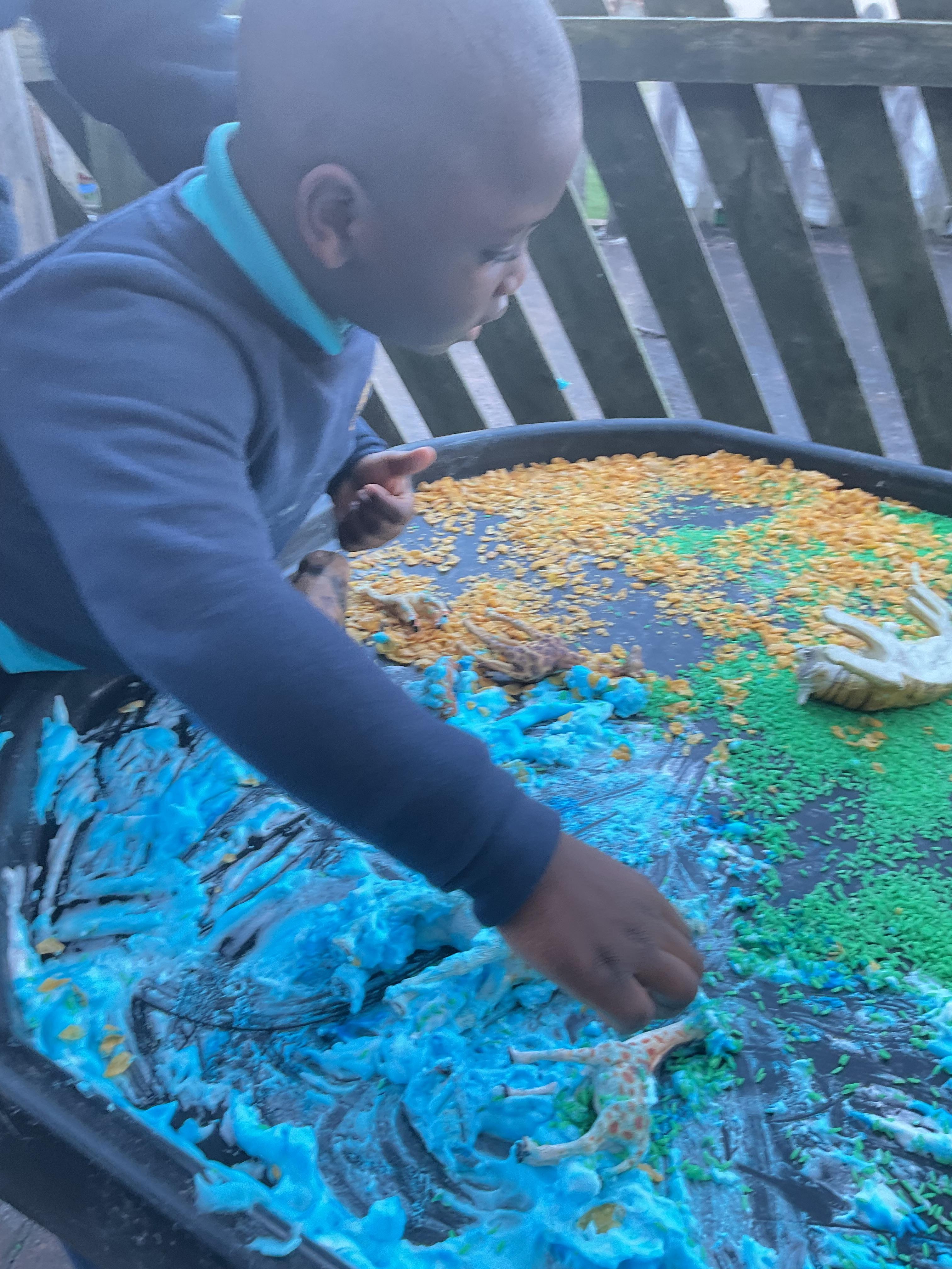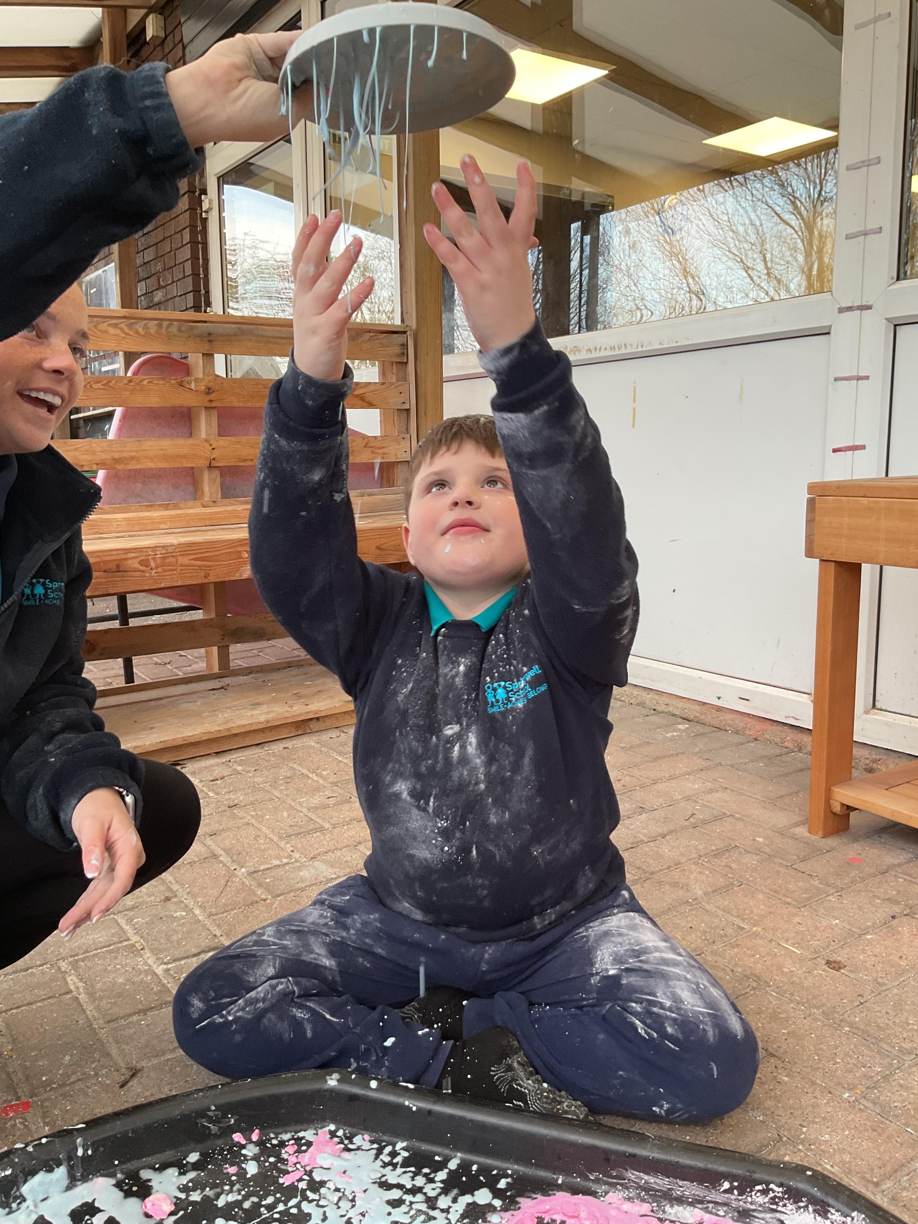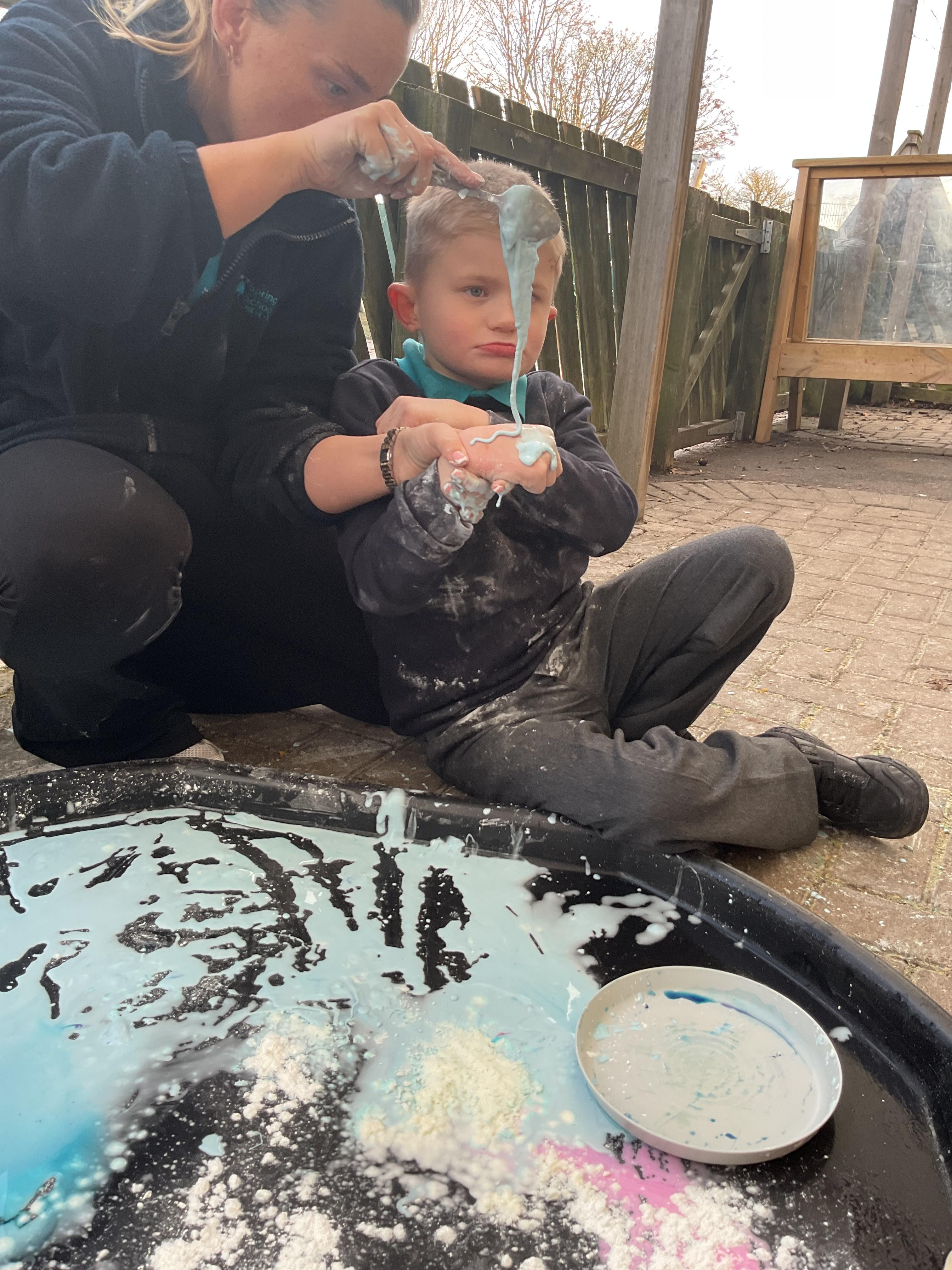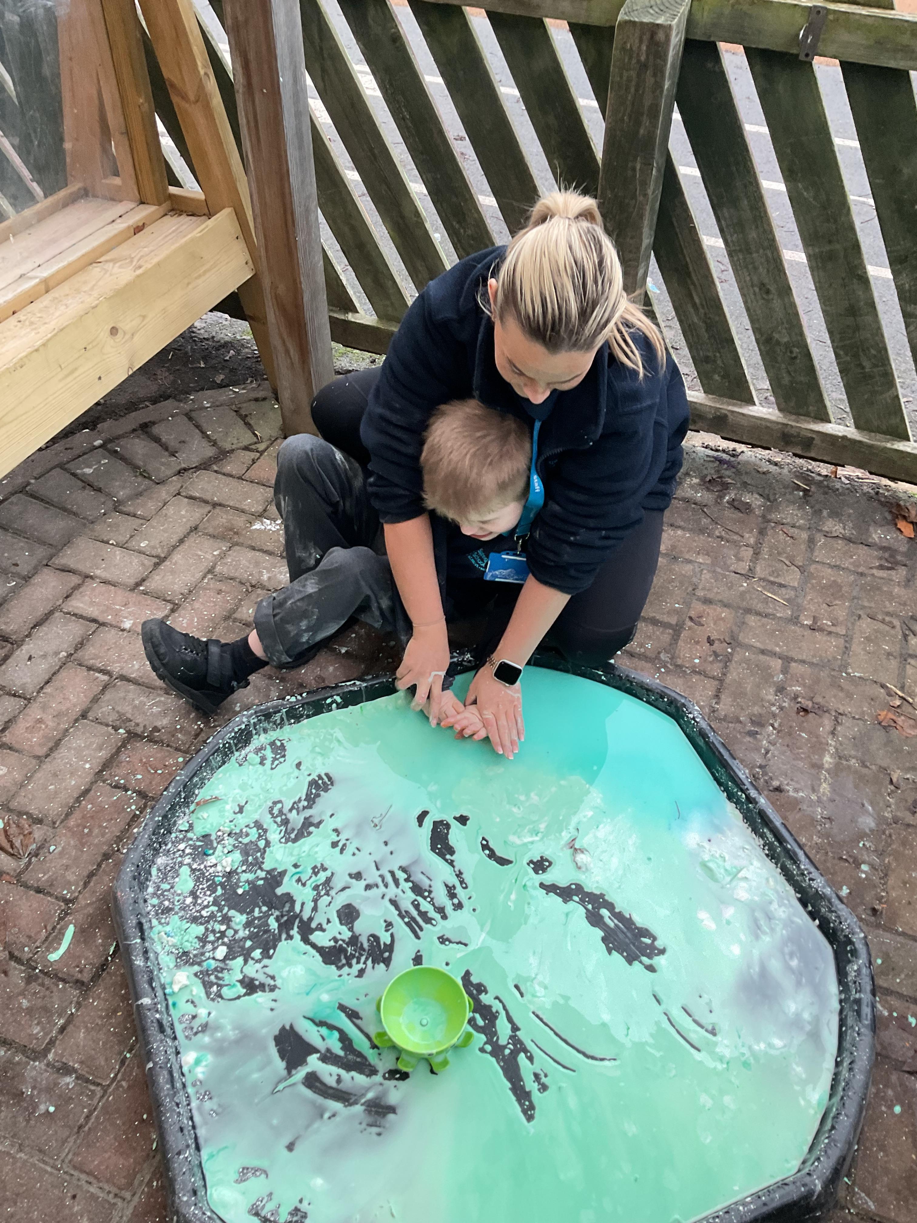 Our focus this week was the seasons, and we explored them through all of our senses. From icy textures to warm colours, the children got hands‑on with lots of sensory materials — including some wonderfully messy gloop that everyone was excited to dive into.