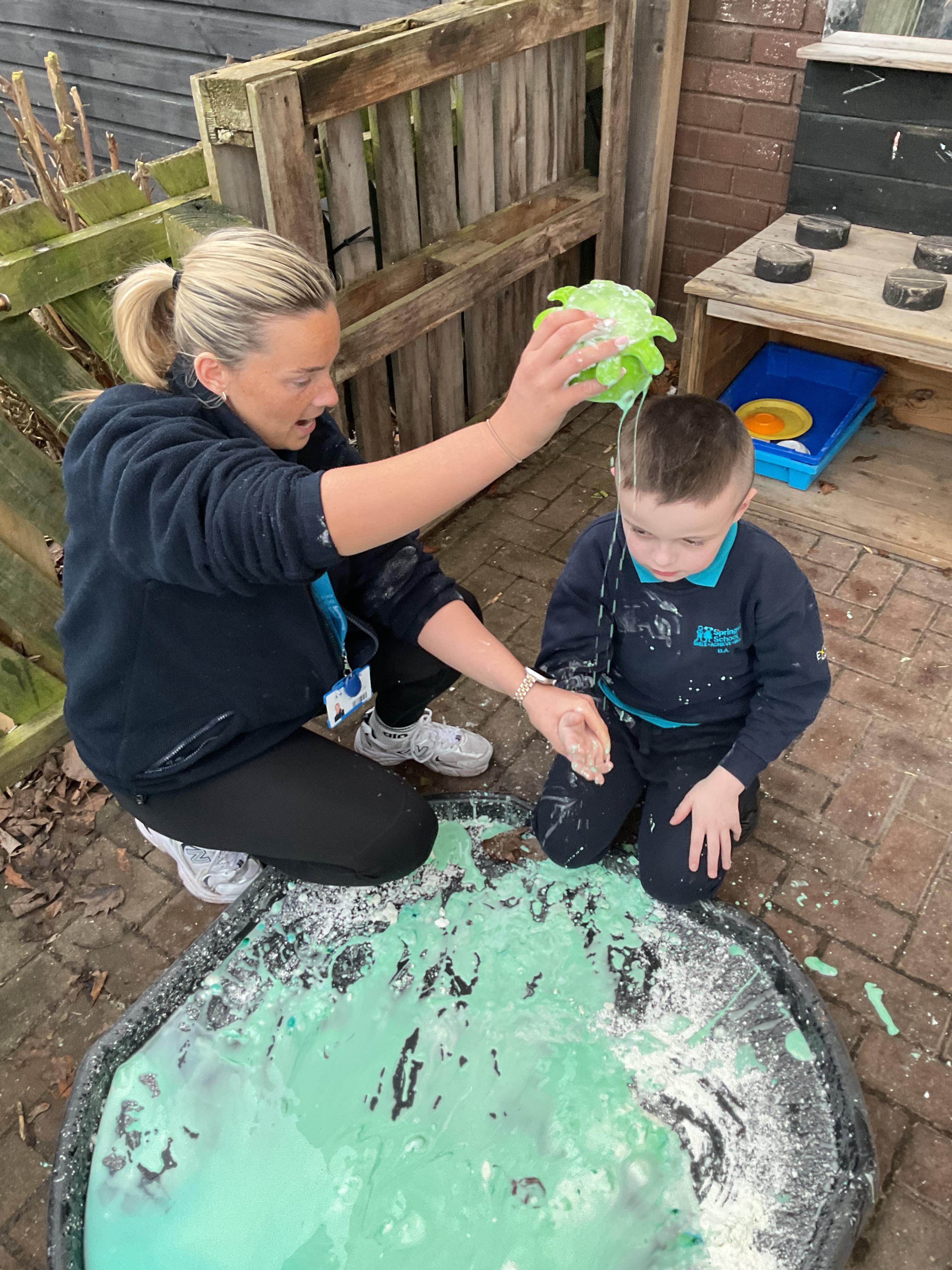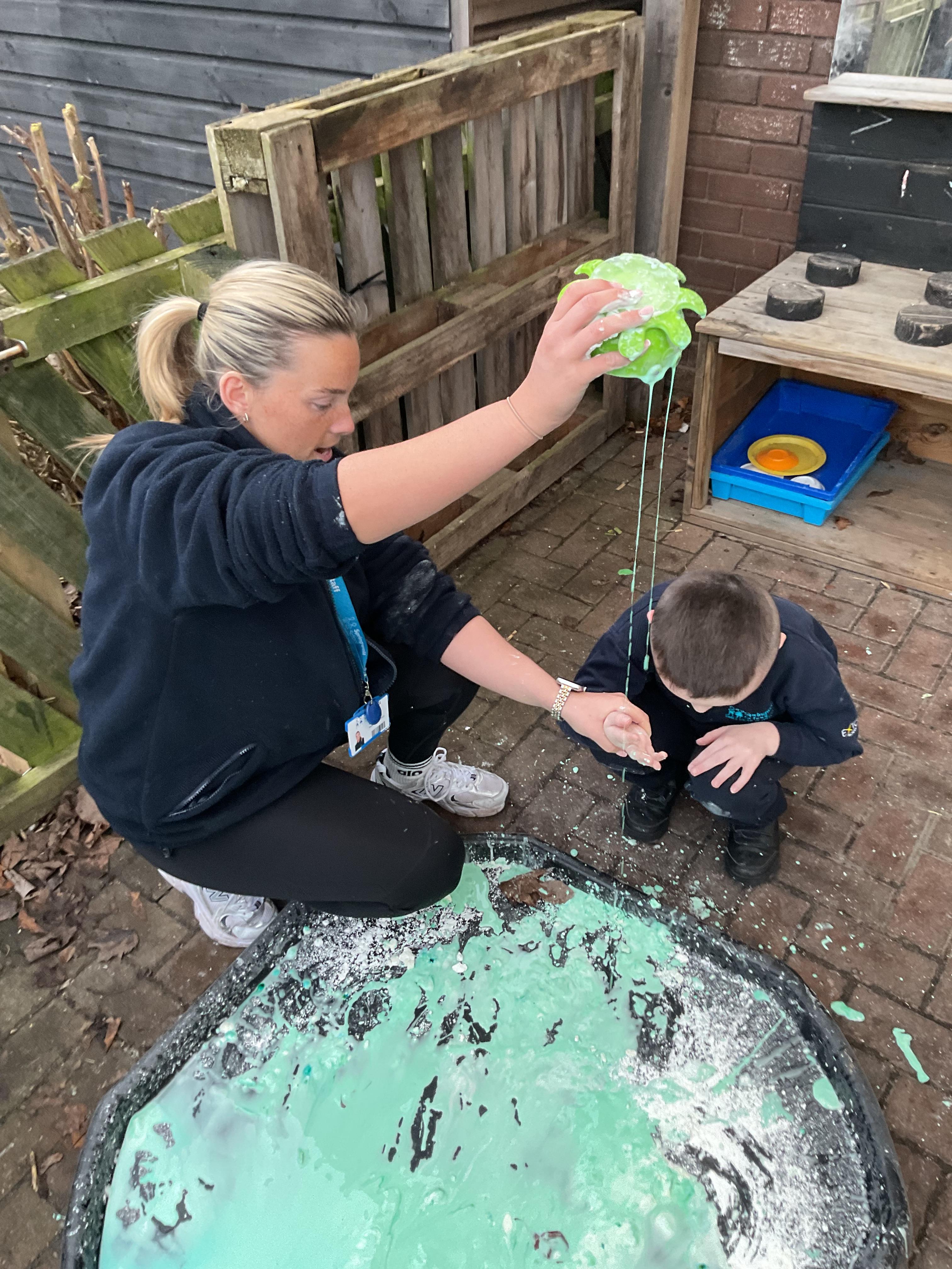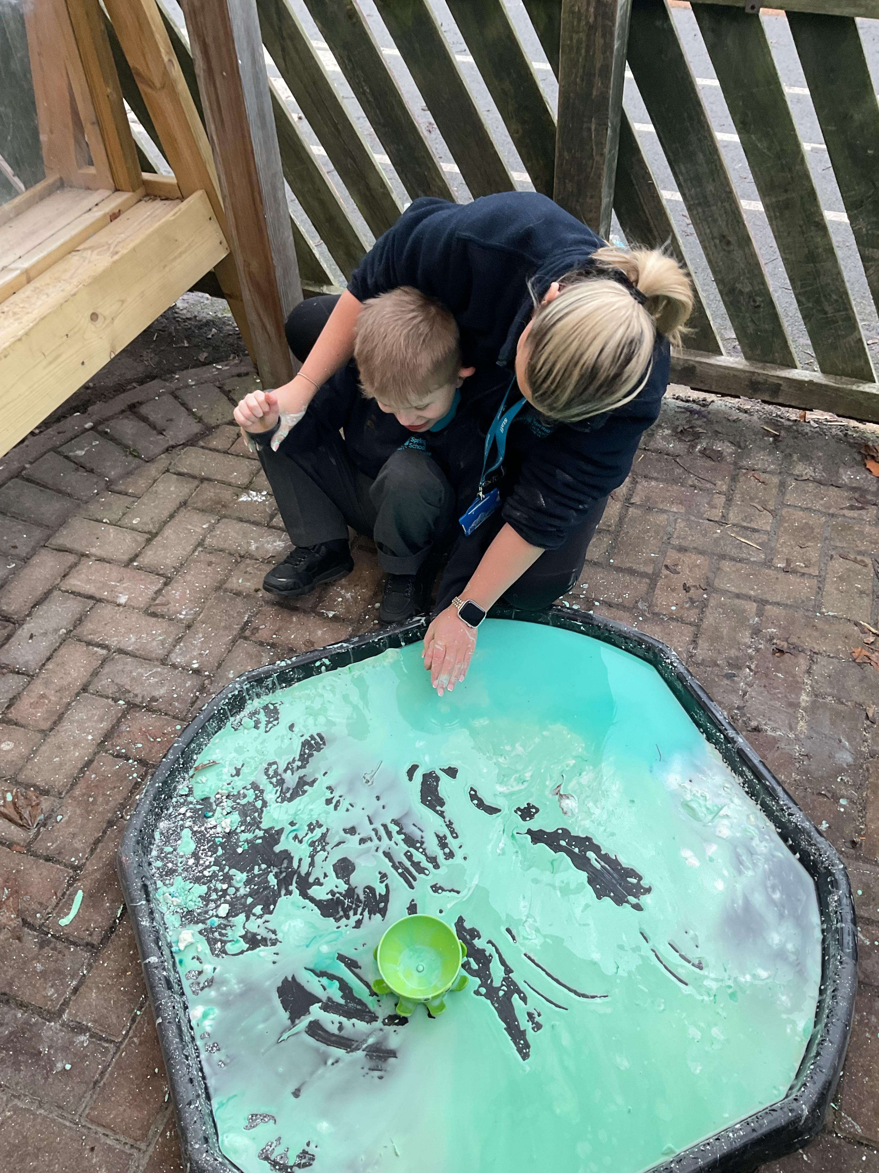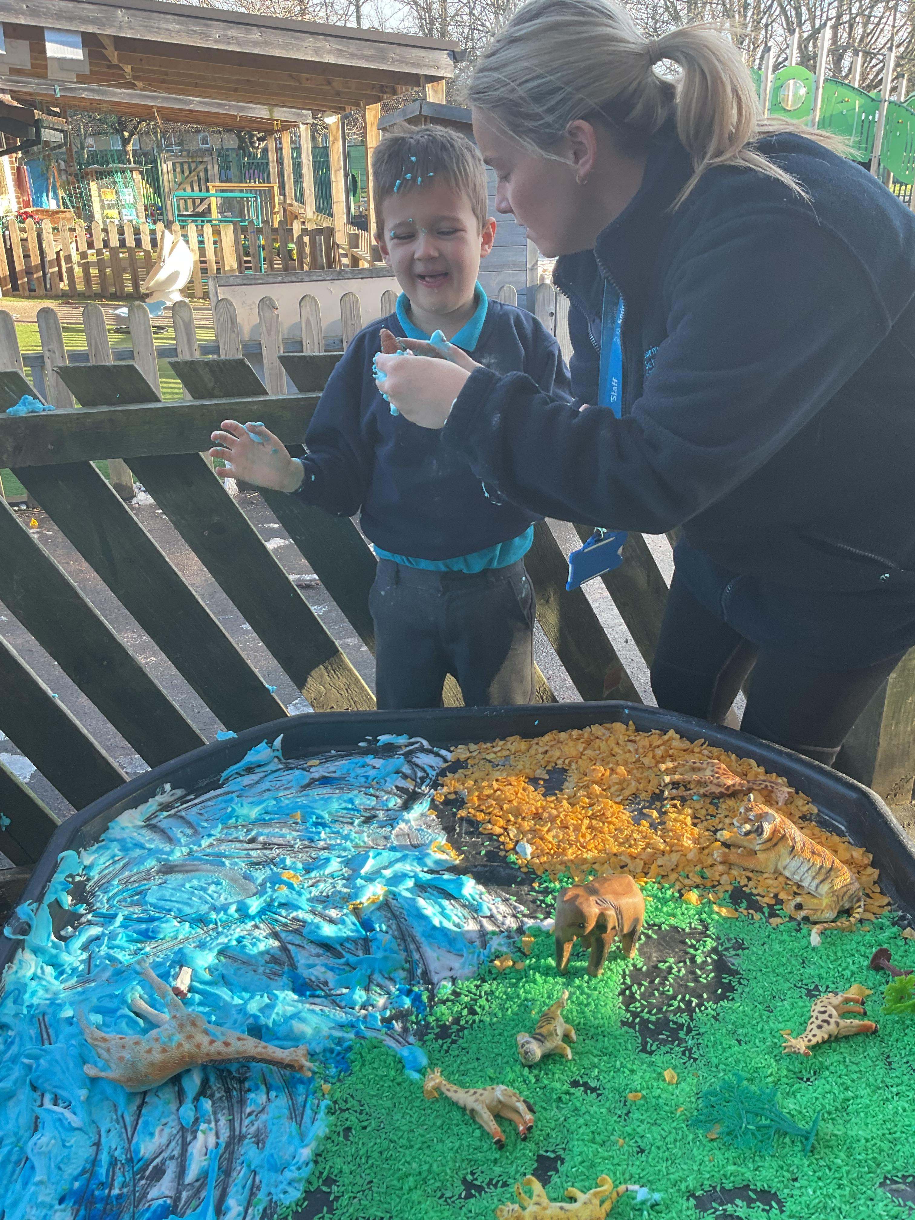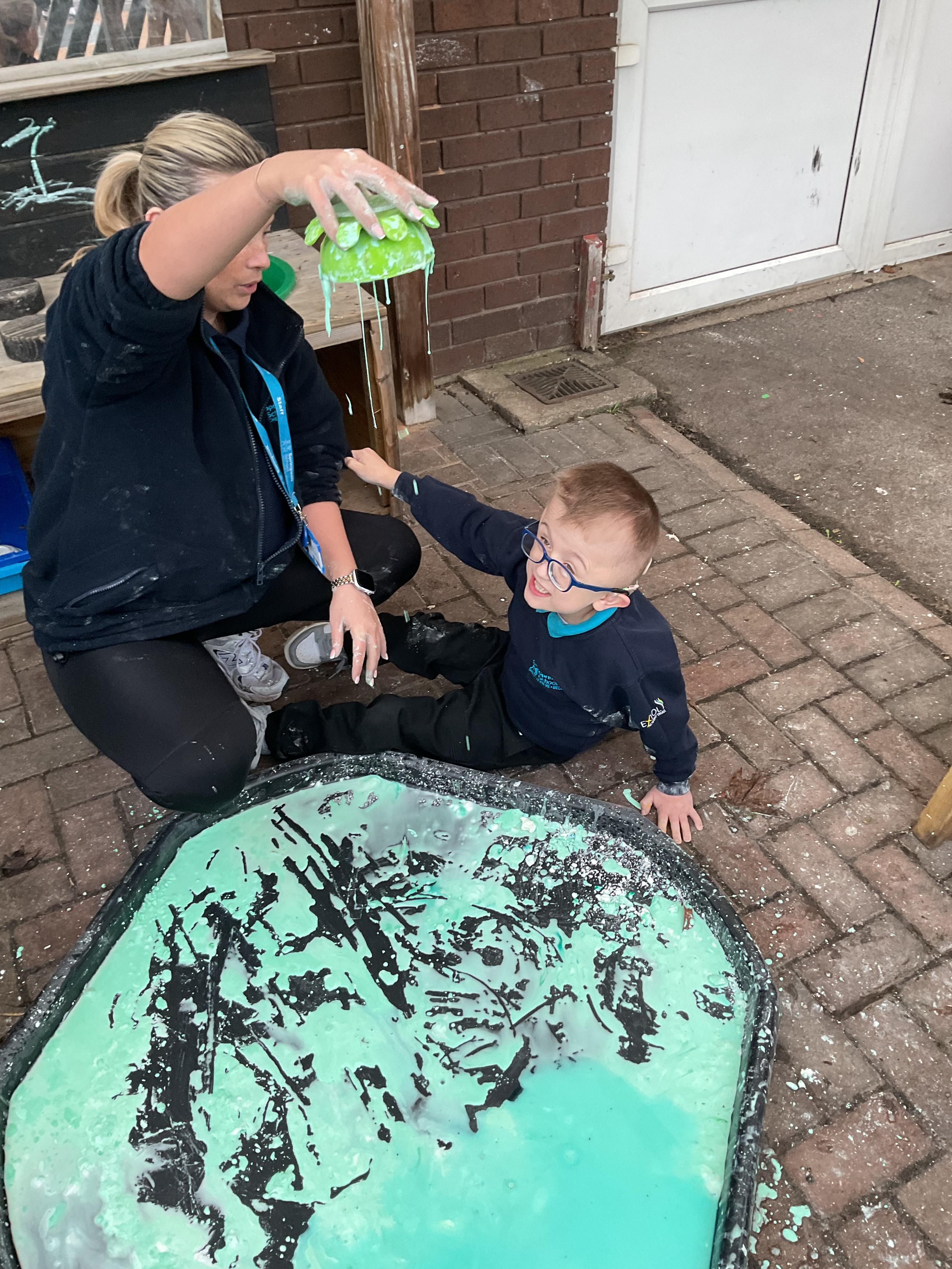 Our focus this week was the seasons, and we explored them through all of our senses. From icy textures to warm colours, the children got hands‑on with lots of sensory materials — including some wonderfully messy gloop that everyone was excited to dive into.