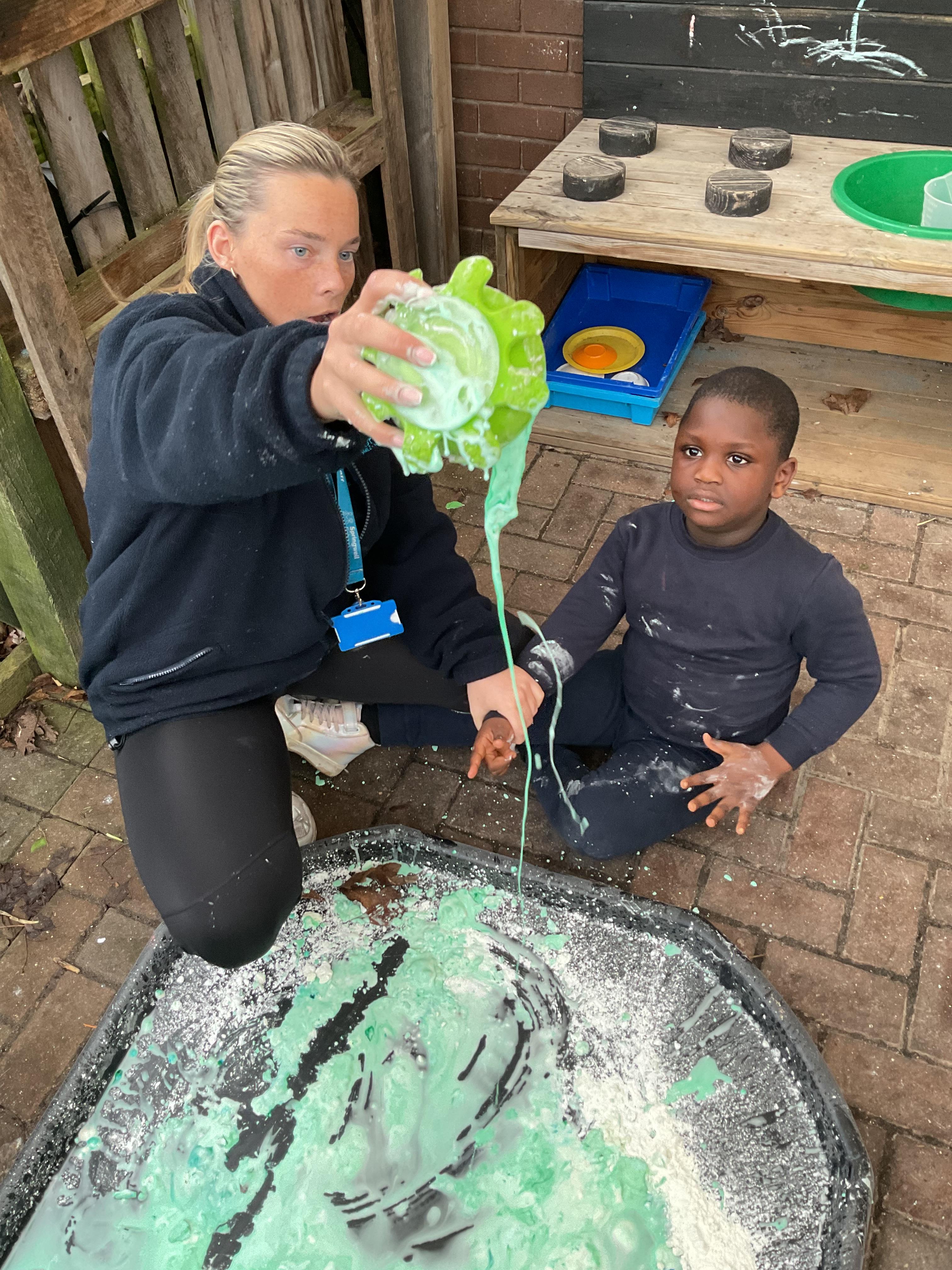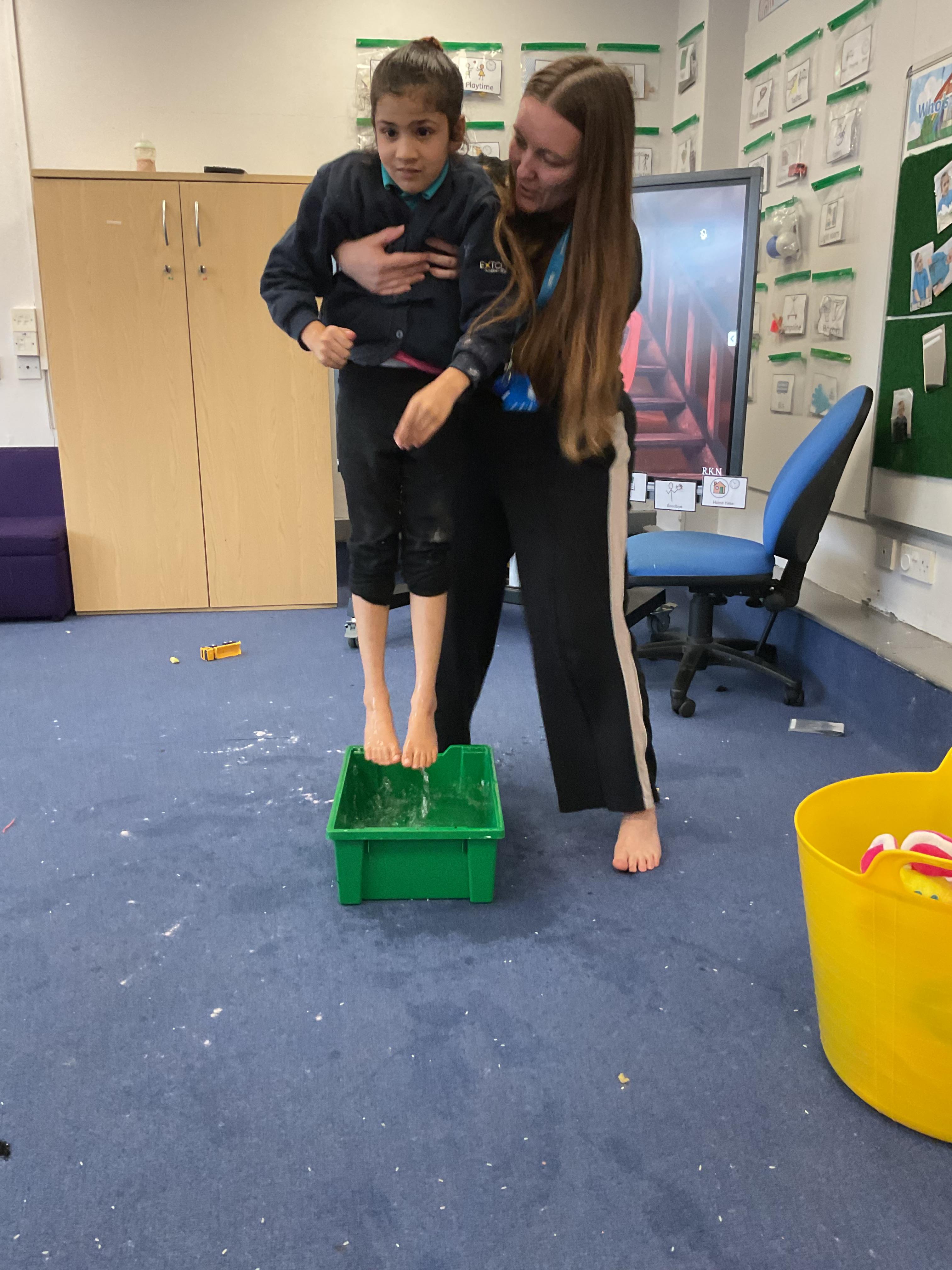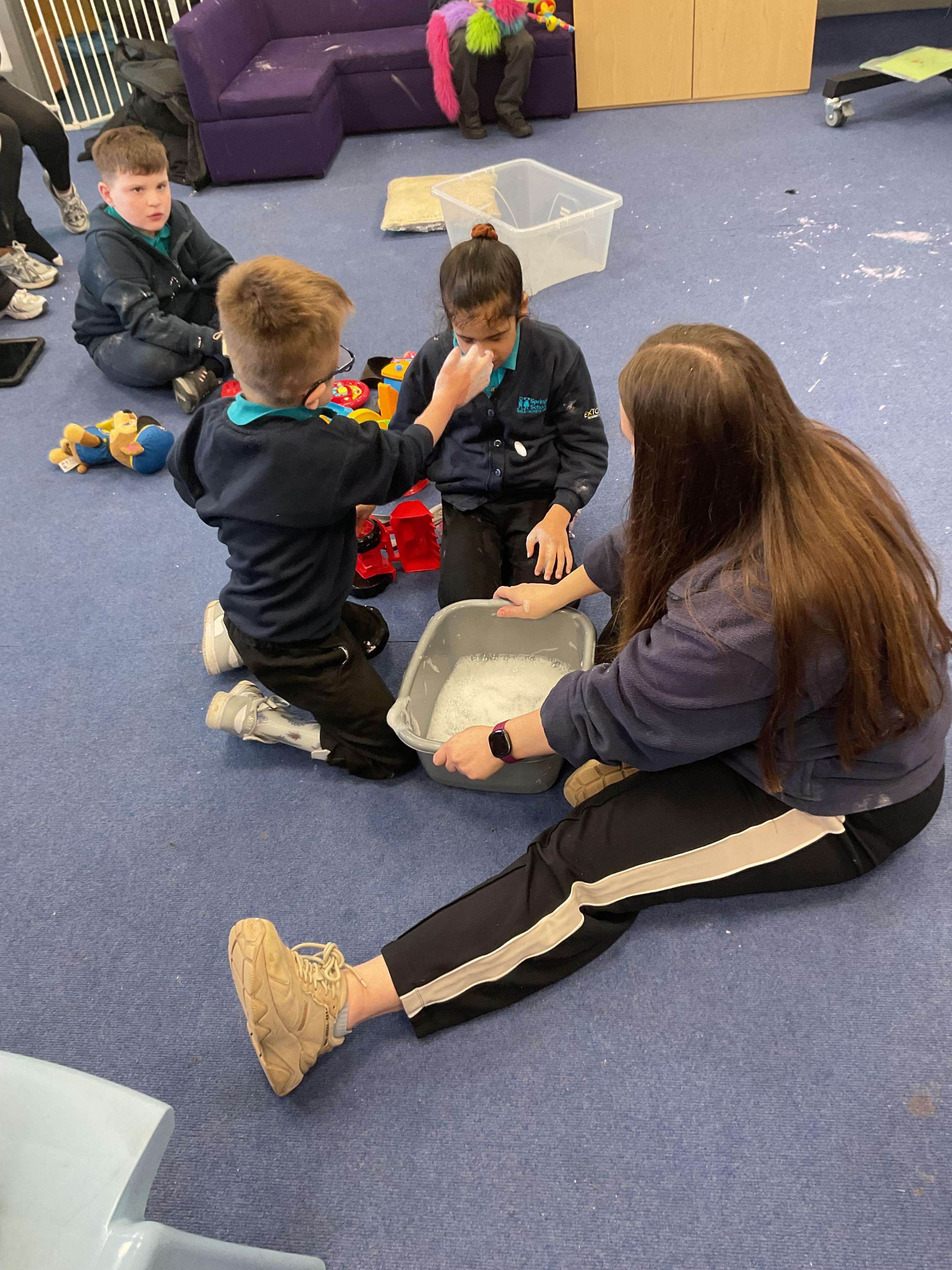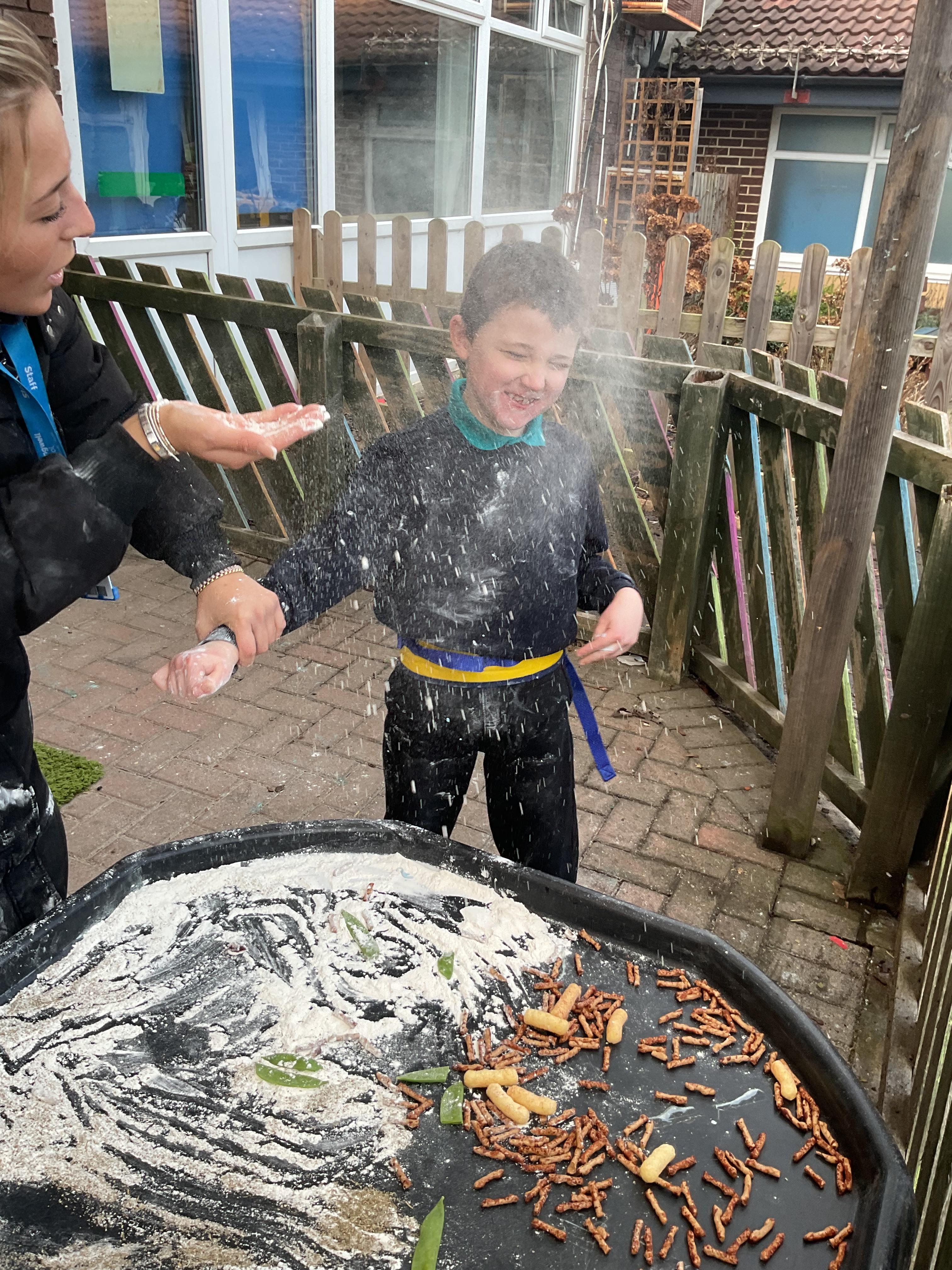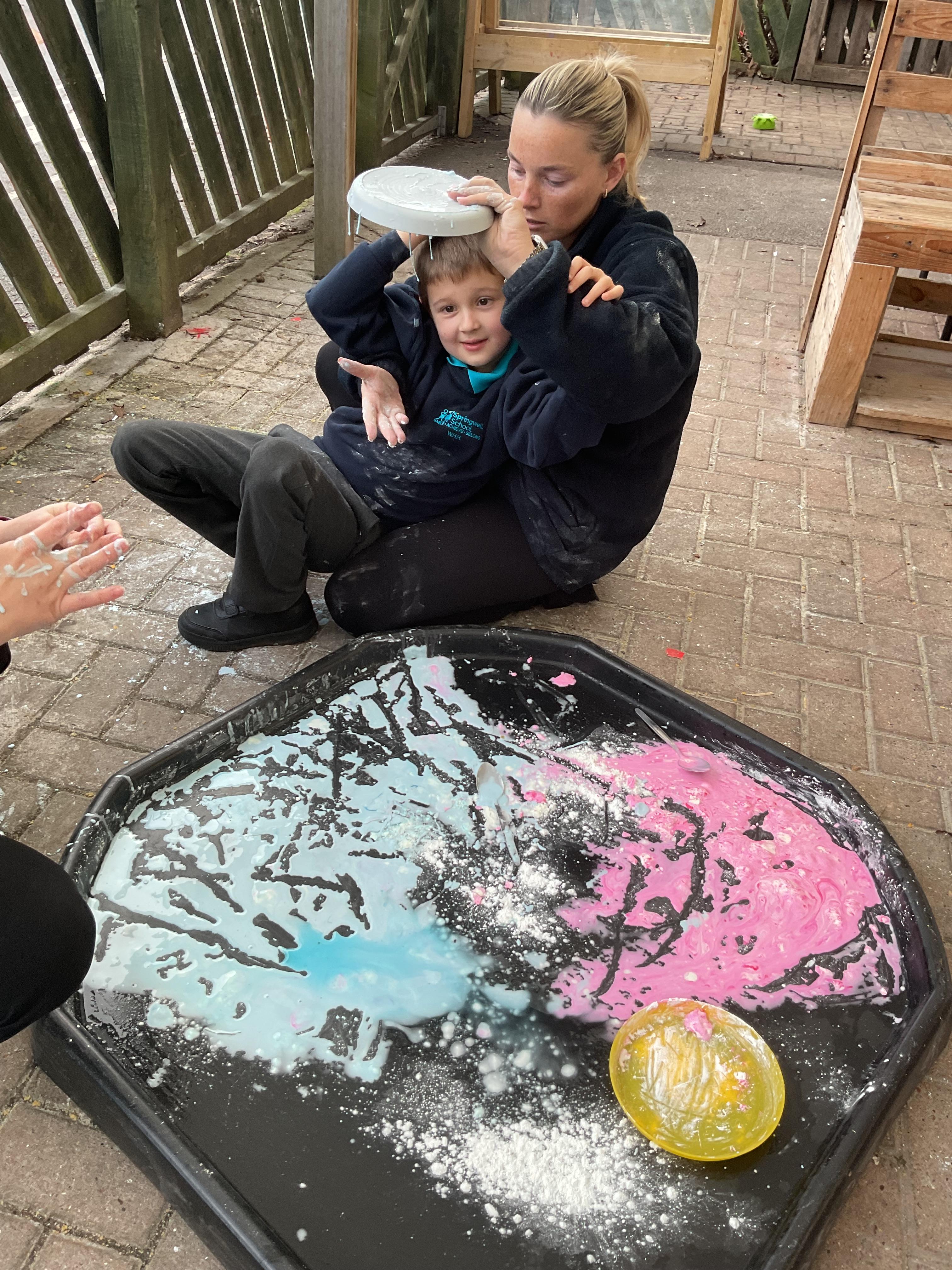 Our focus this week was the seasons, and we explored them through all of our senses. From icy textures to warm colours, the children got hands‑on with lots of sensory materials — including some wonderfully messy gloop that everyone was excited to dive into.
