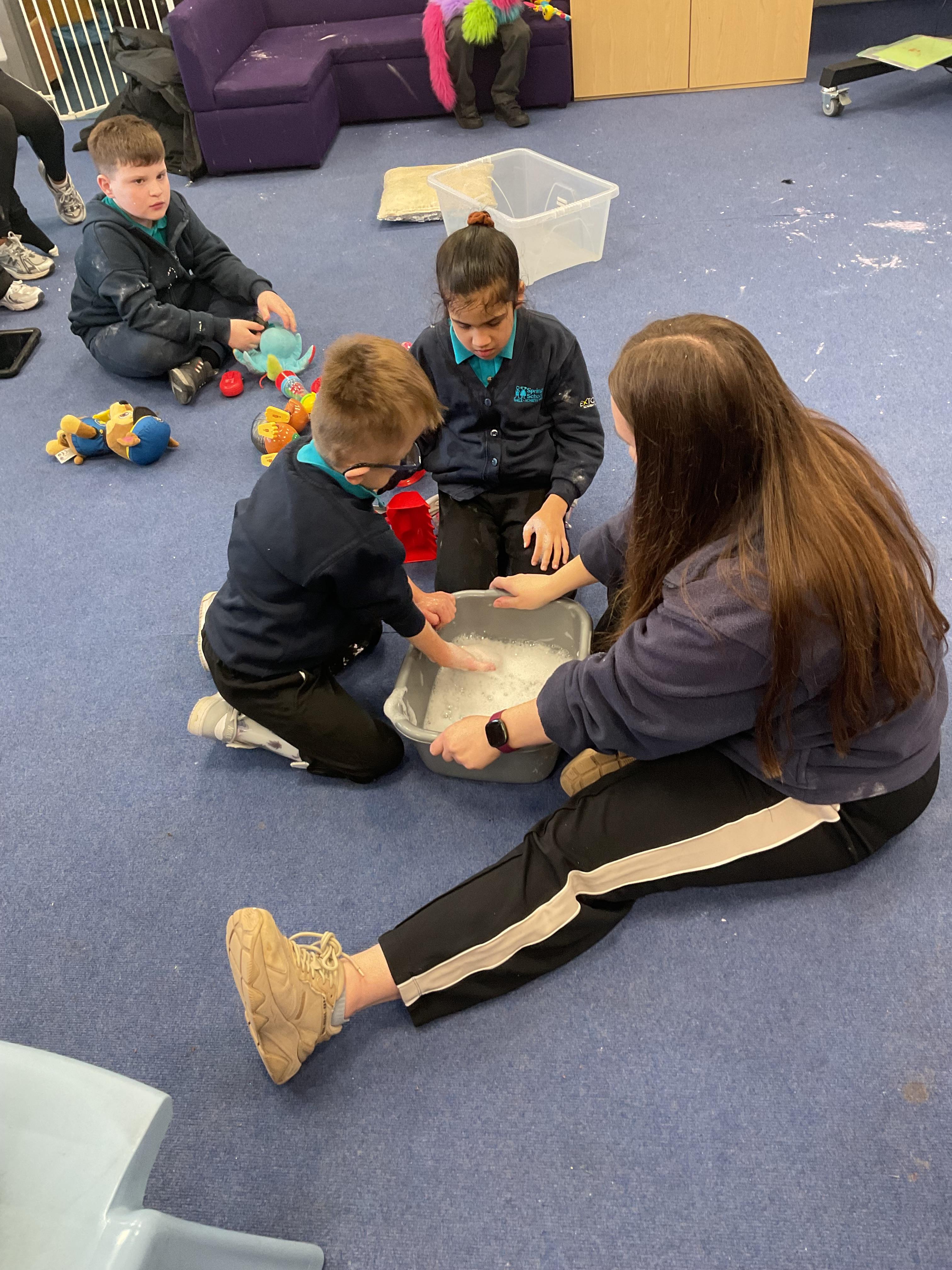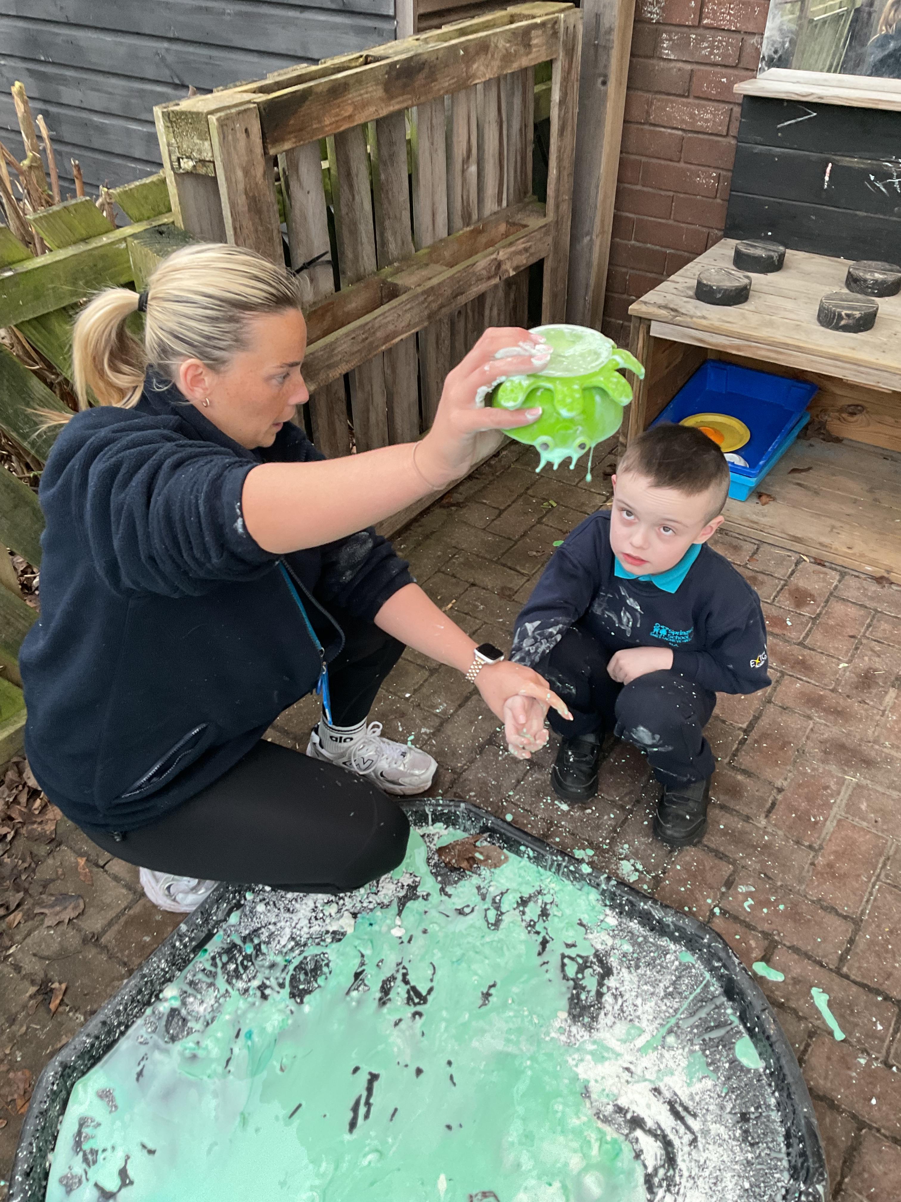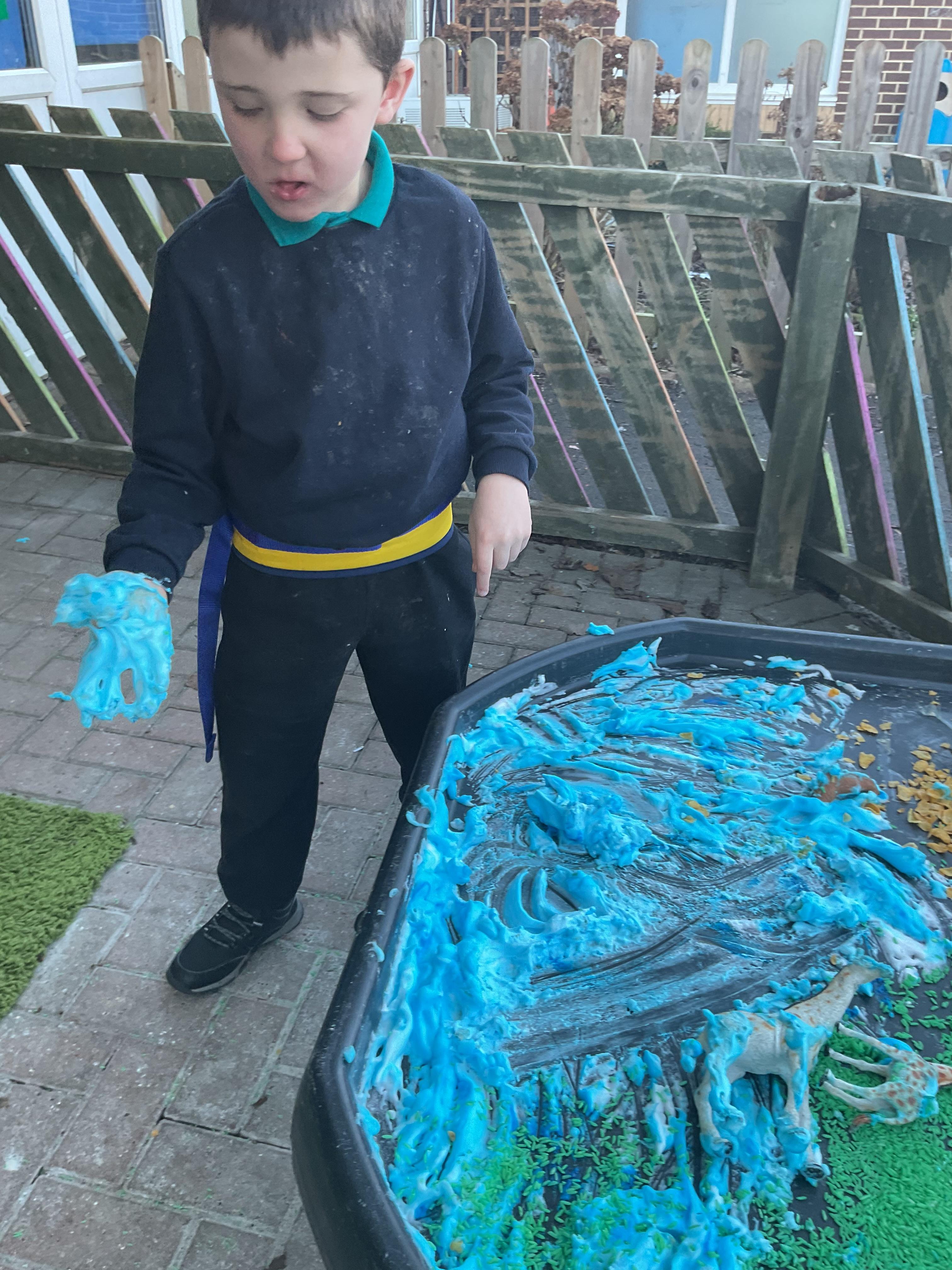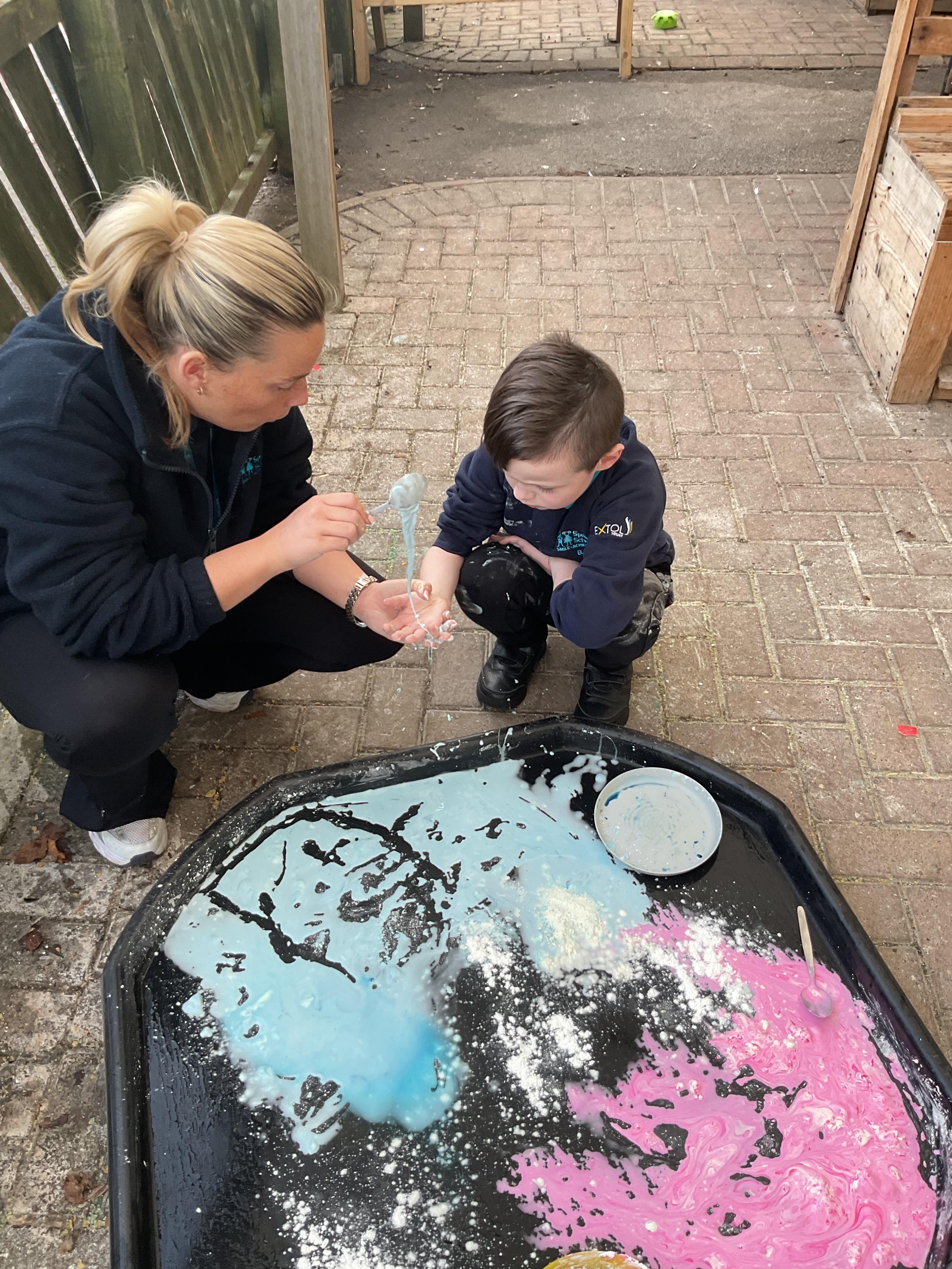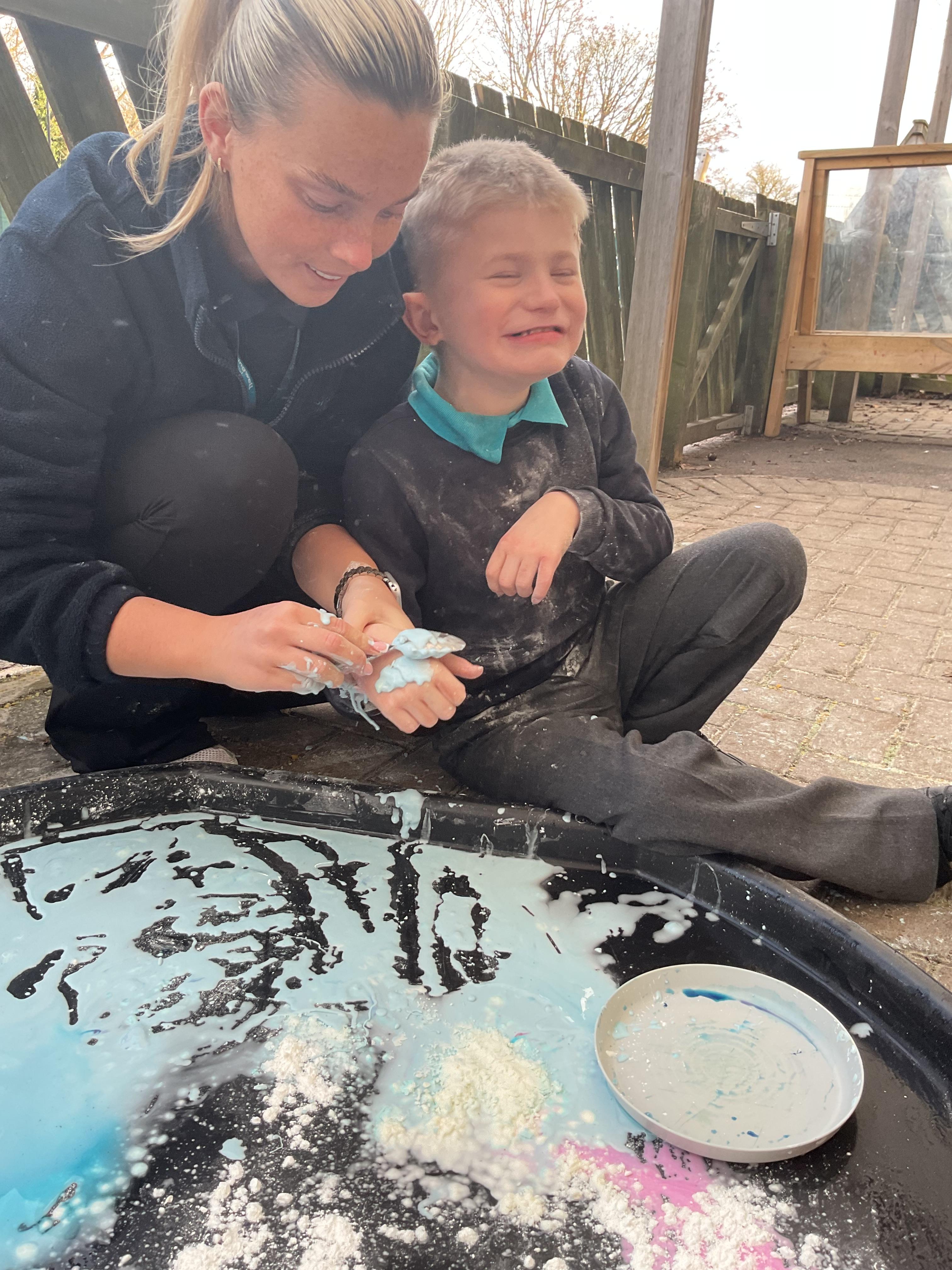 Our focus this week was the seasons, and we explored them through all of our senses. From icy textures to warm colours, the children got hands‑on with lots of sensory materials — including some wonderfully messy gloop that everyone was excited to dive into.