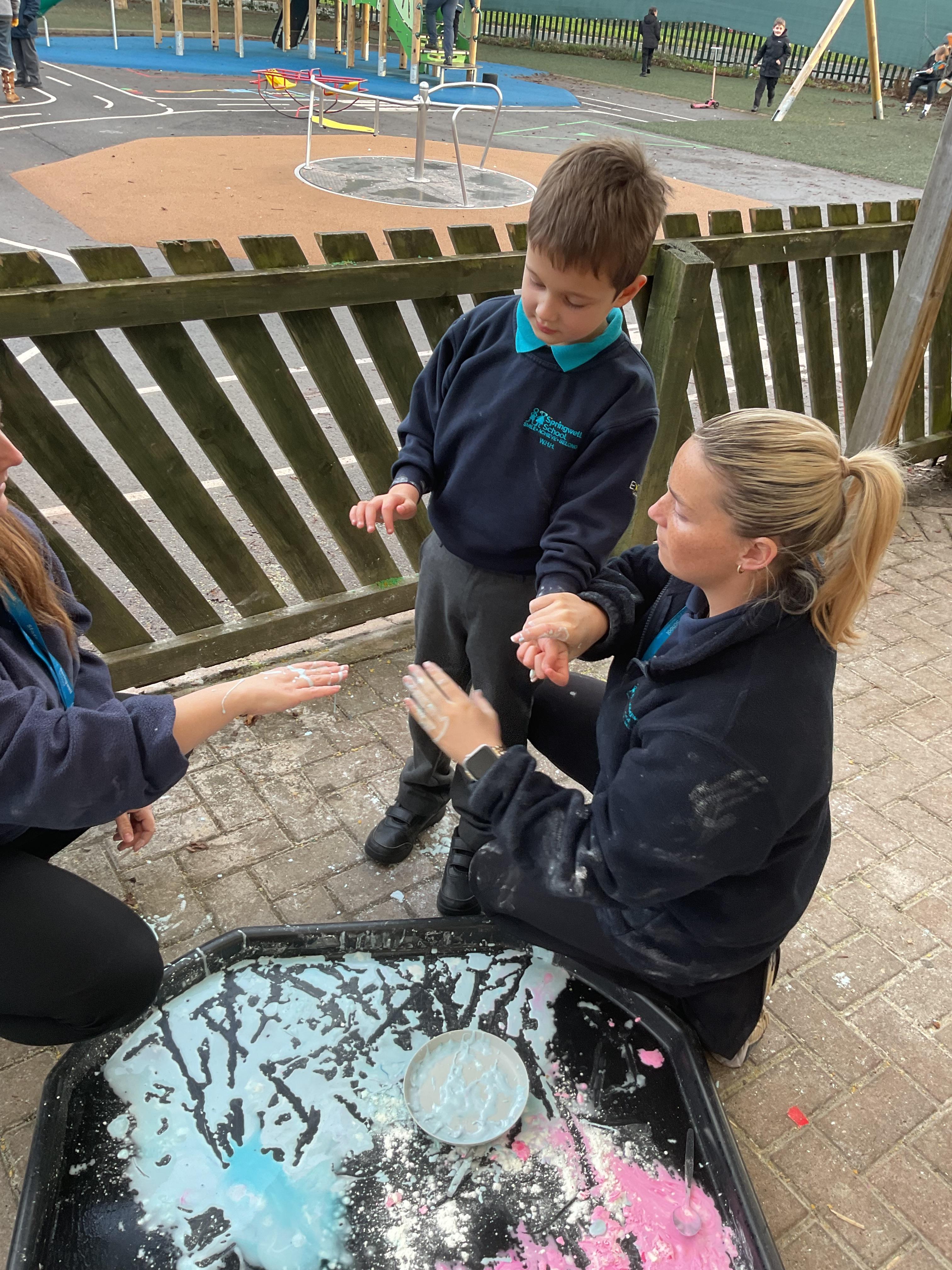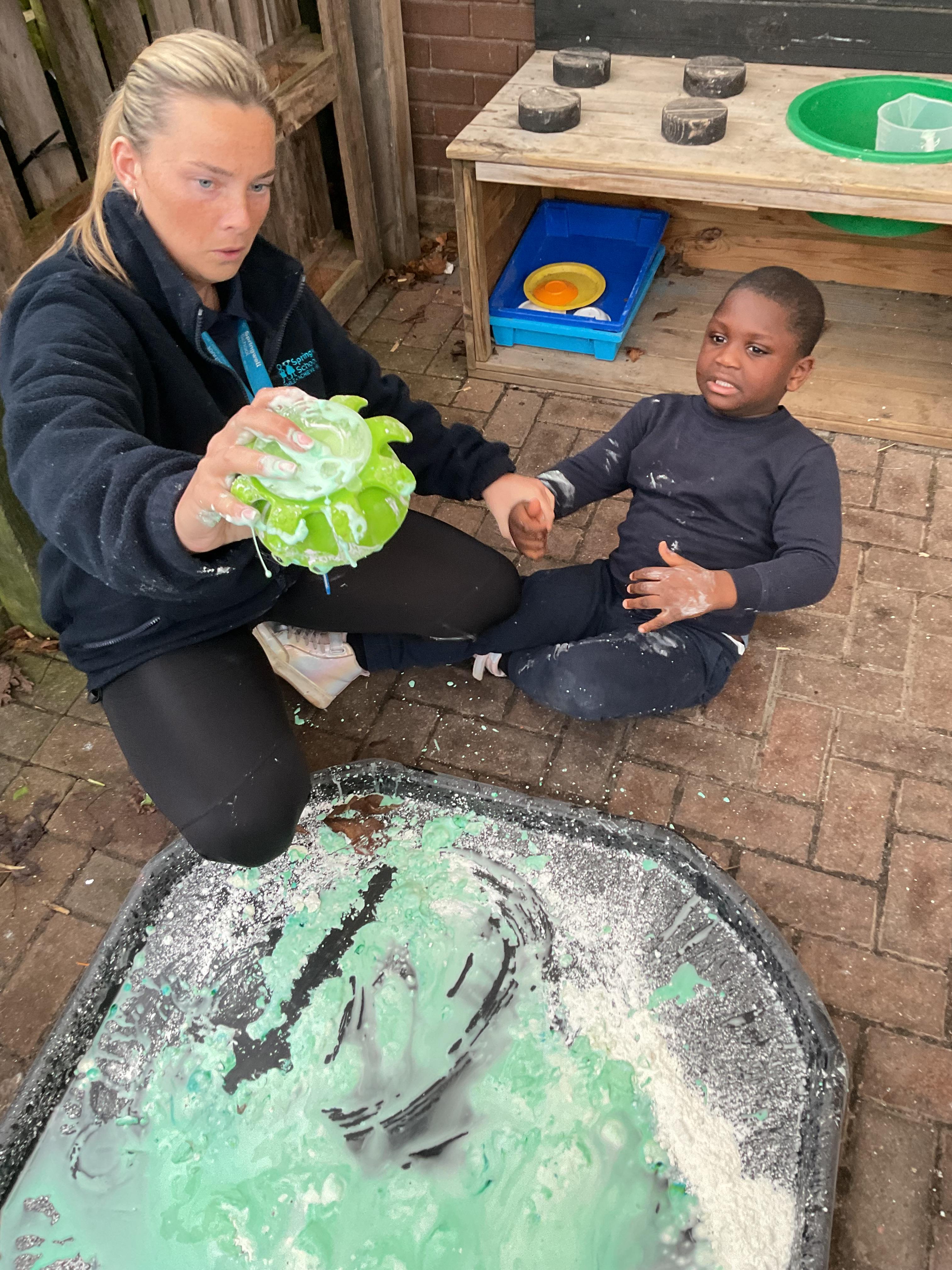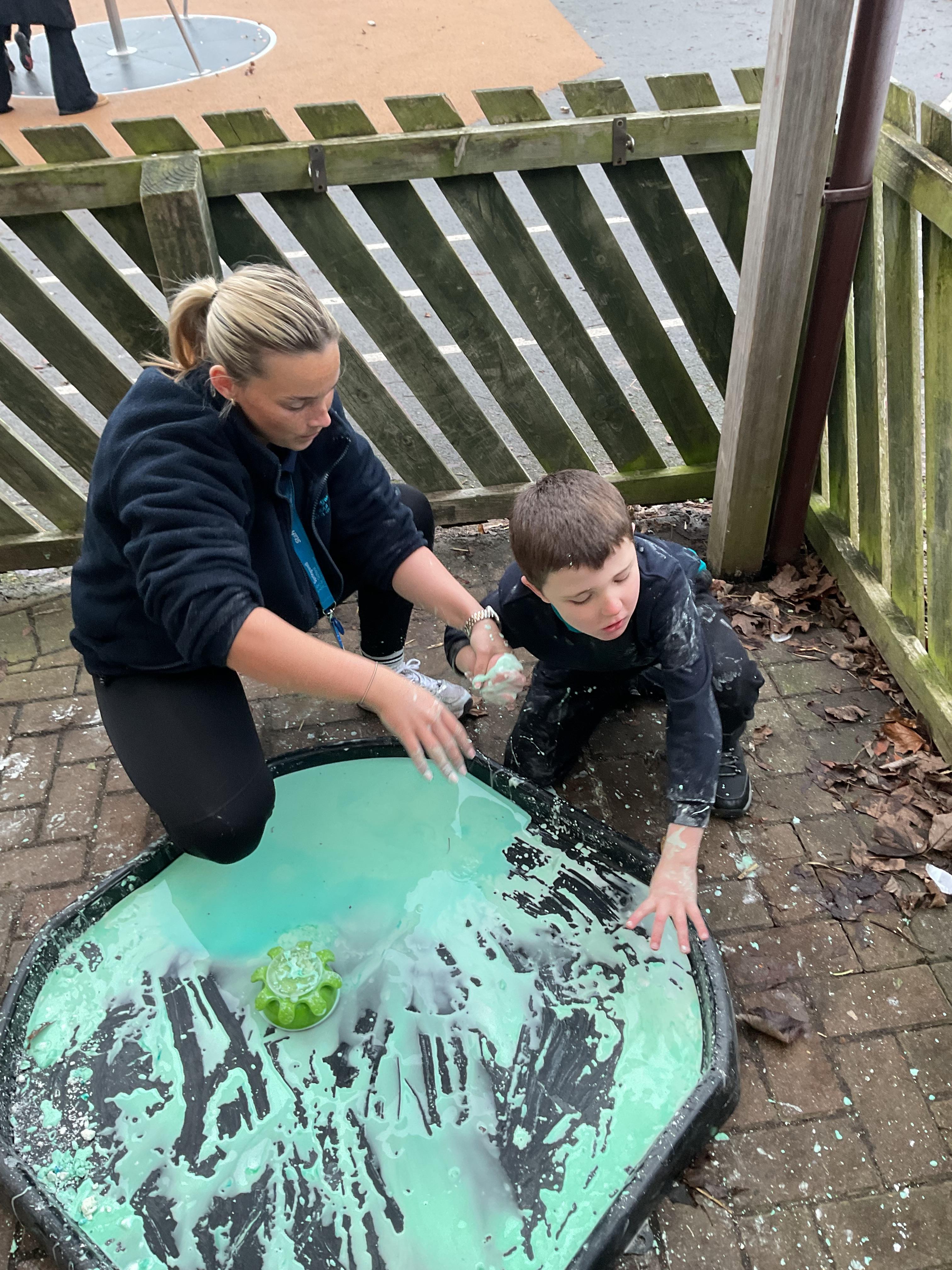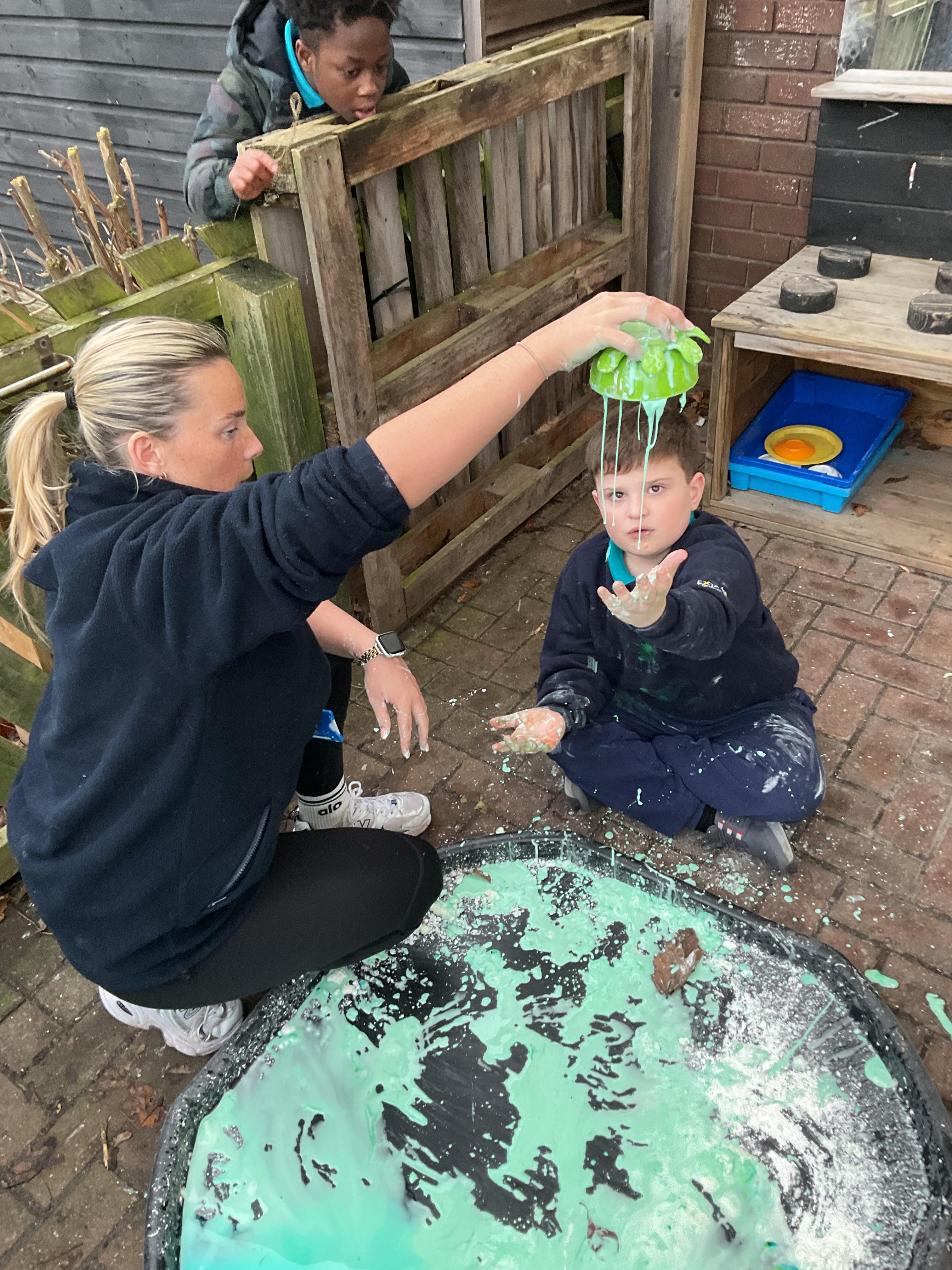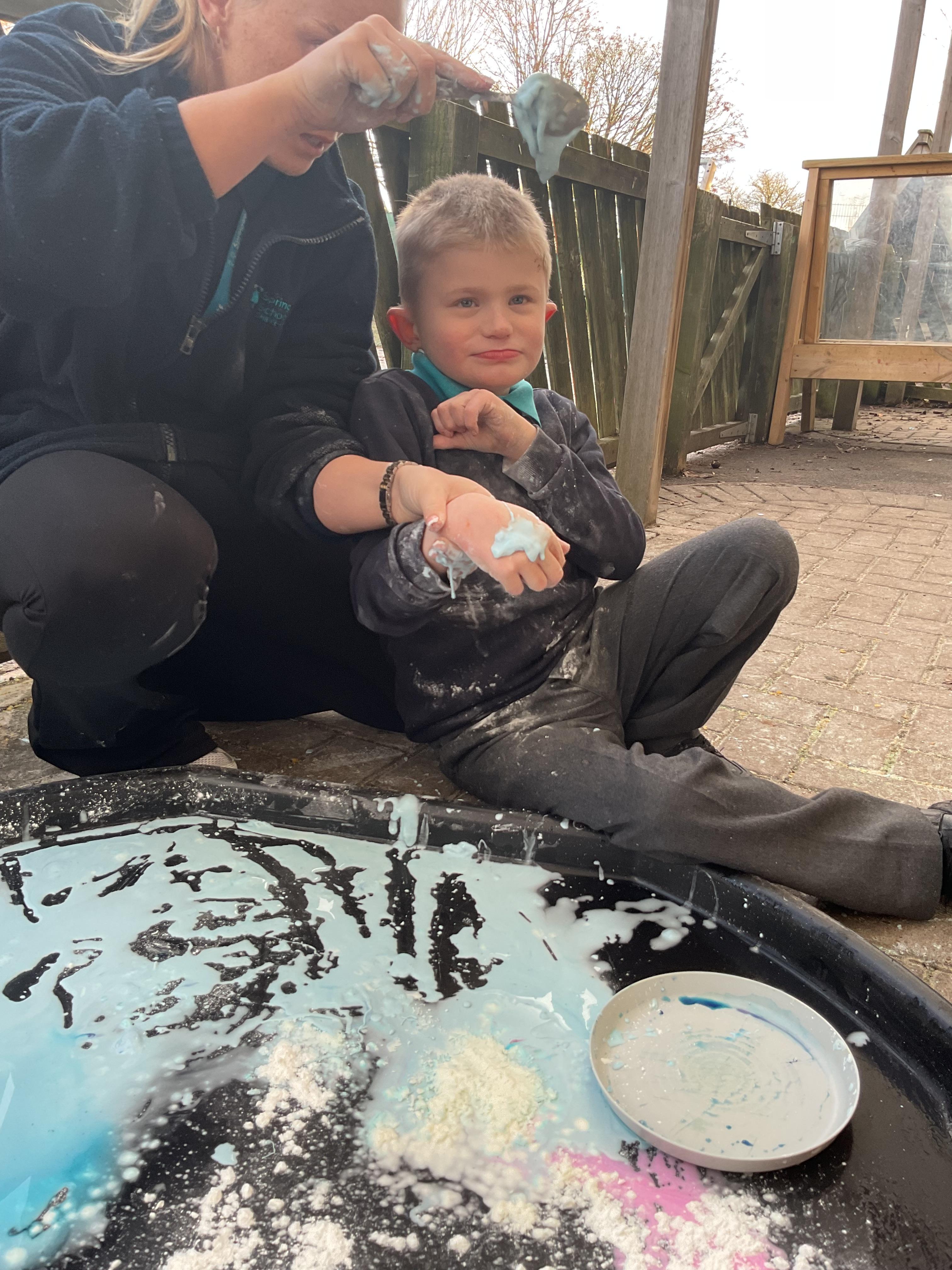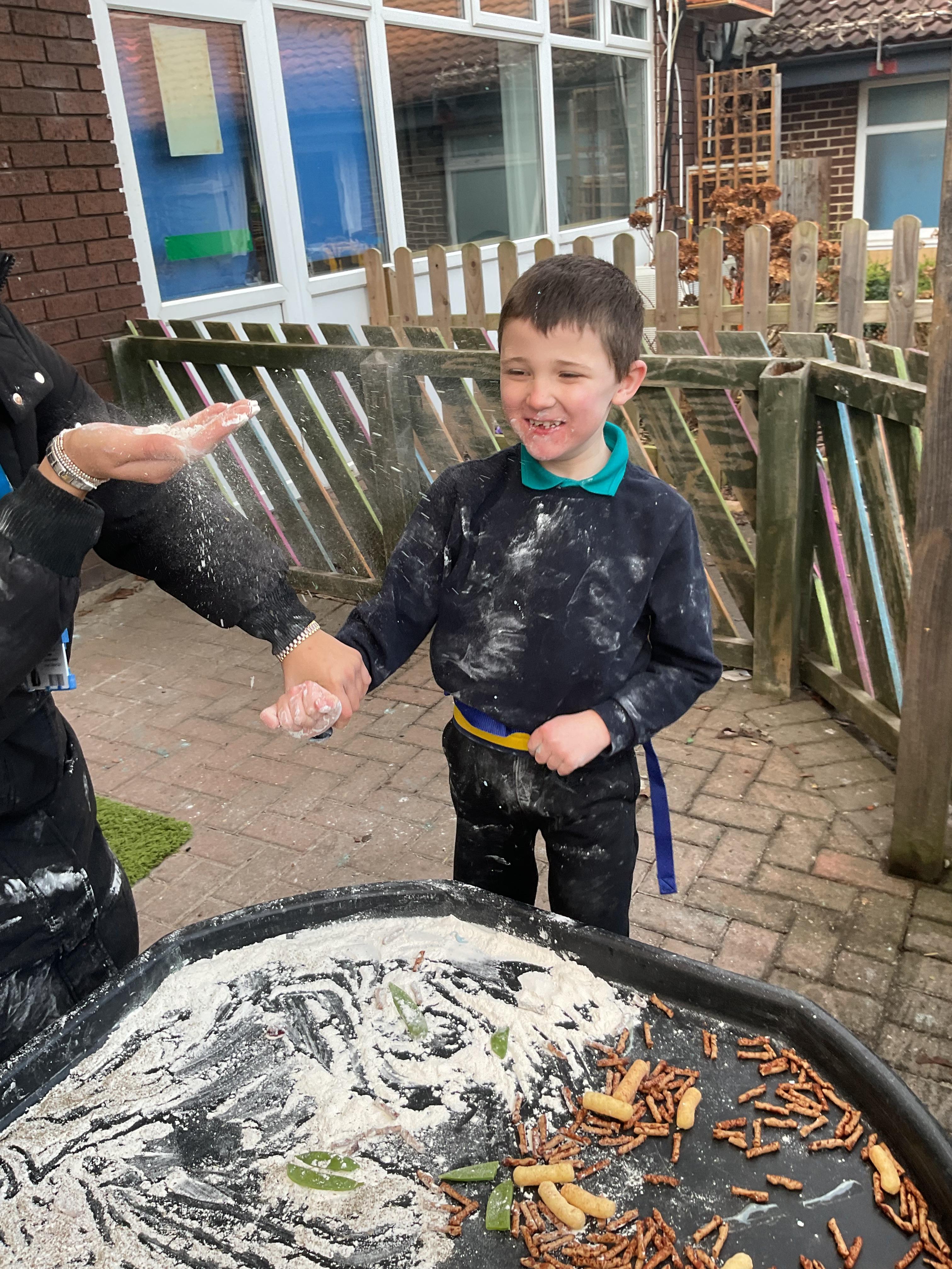 Our focus this week was the seasons, and we explored them through all of our senses. From icy textures to warm colours, the children got hands‑on with lots of sensory materials — including some wonderfully messy gloop that everyone was excited to dive into.
