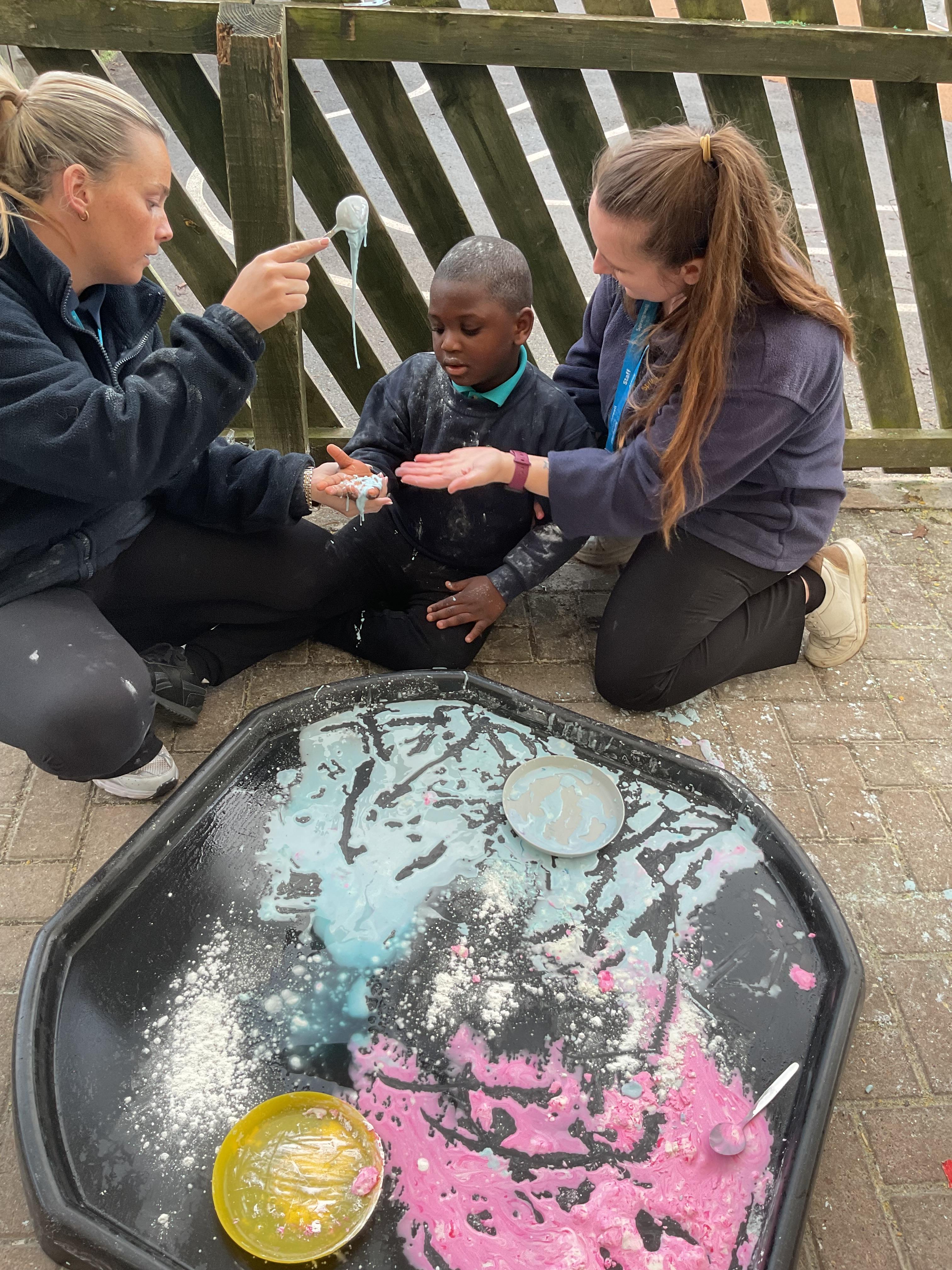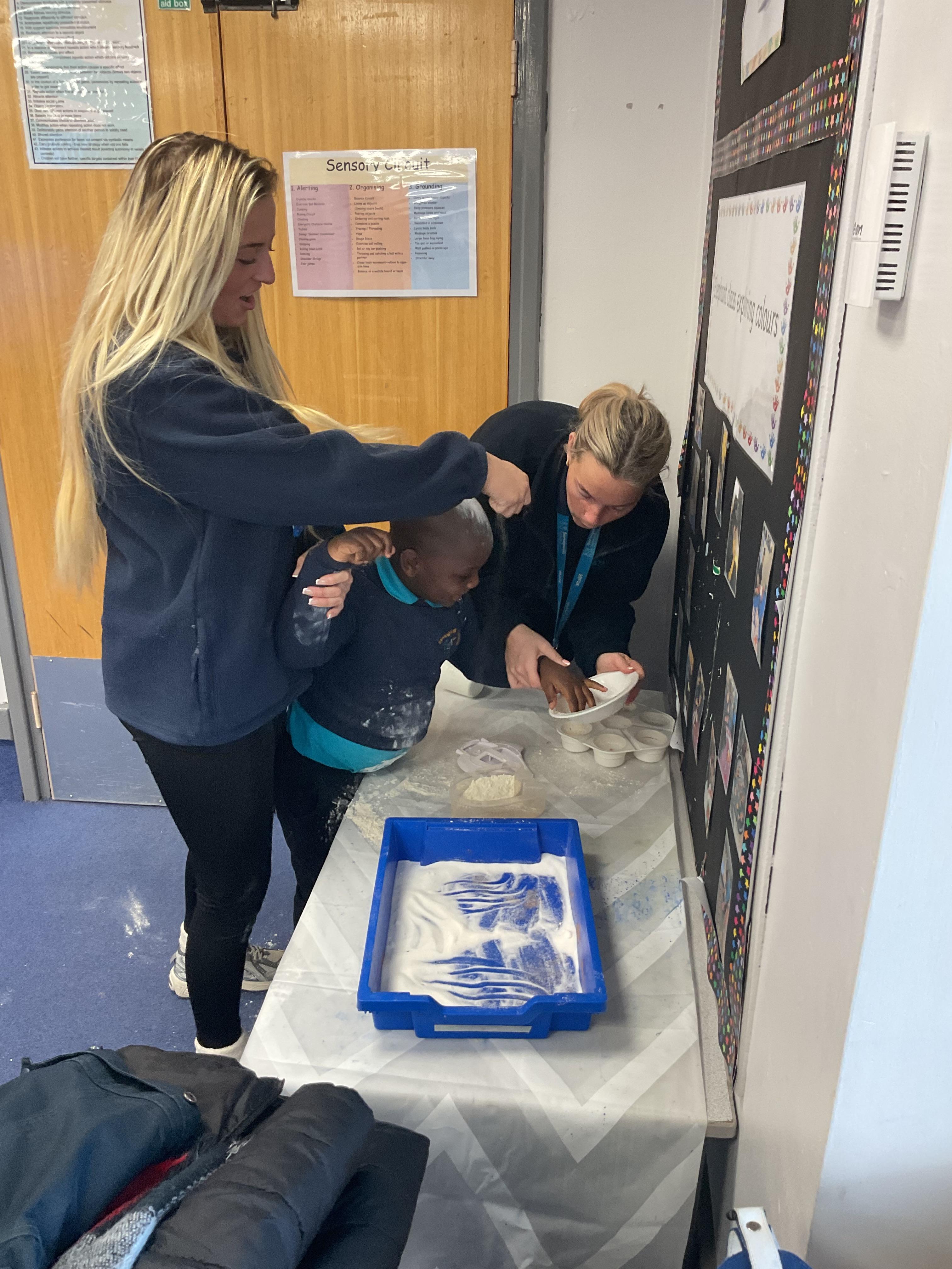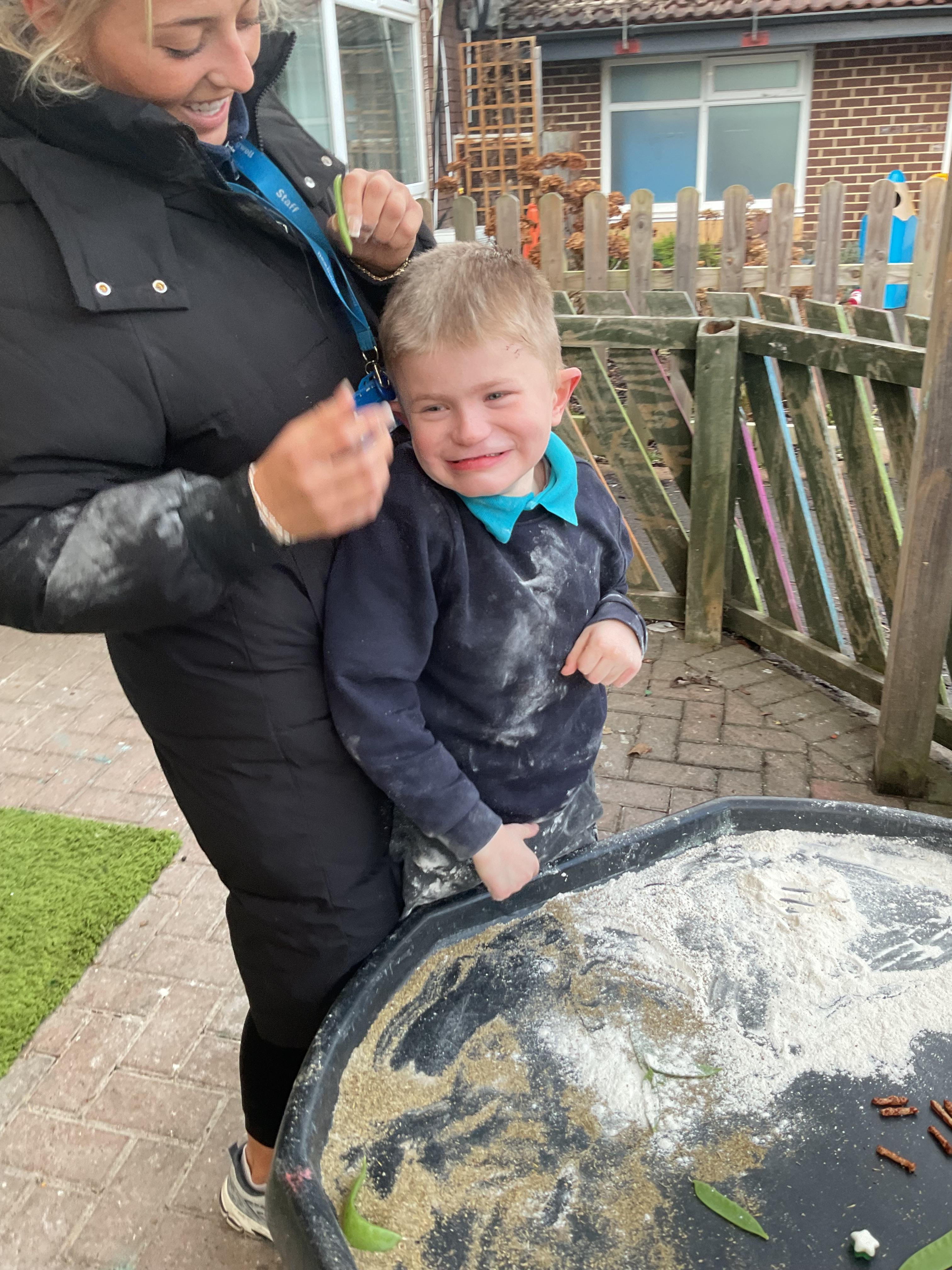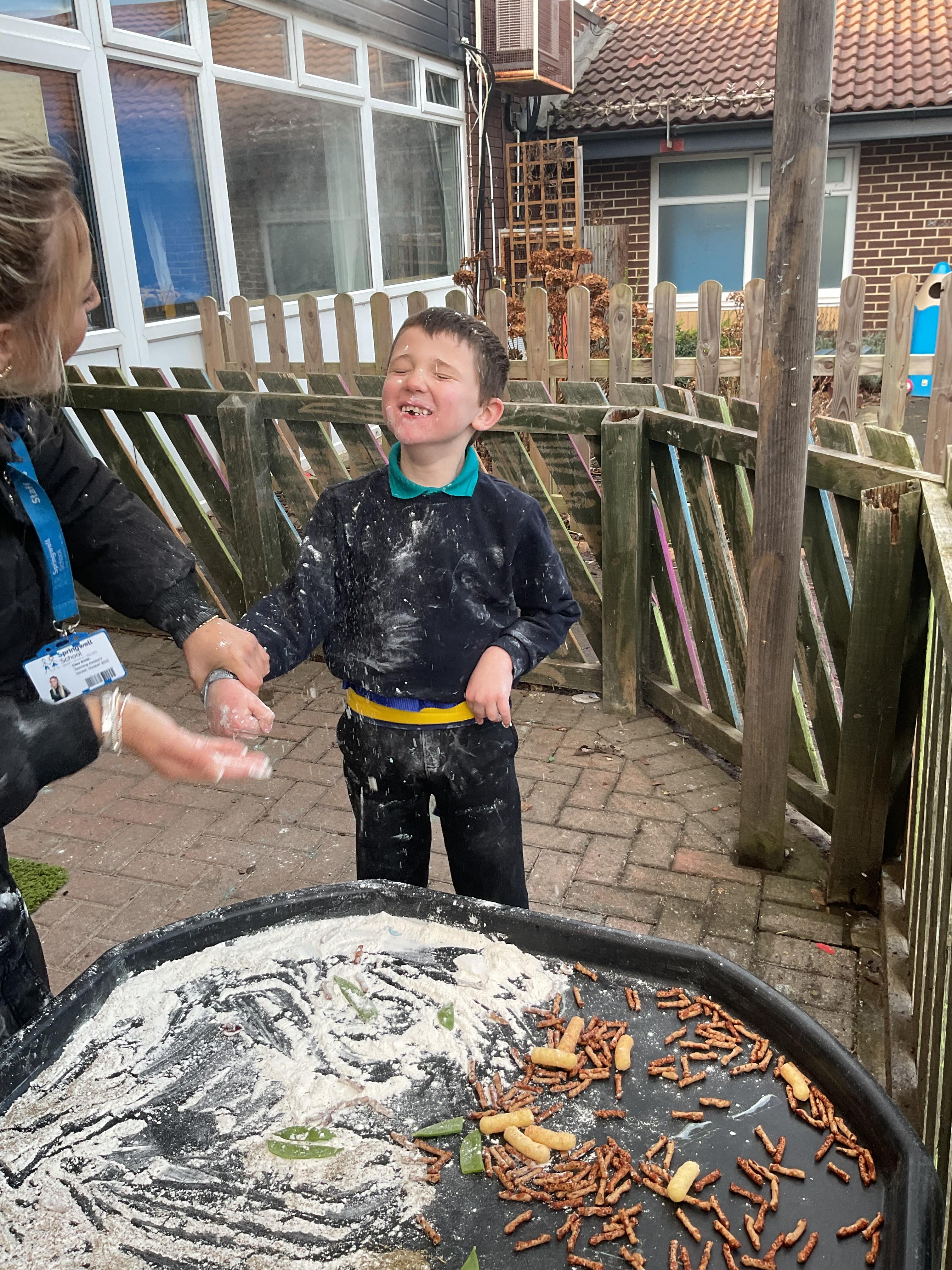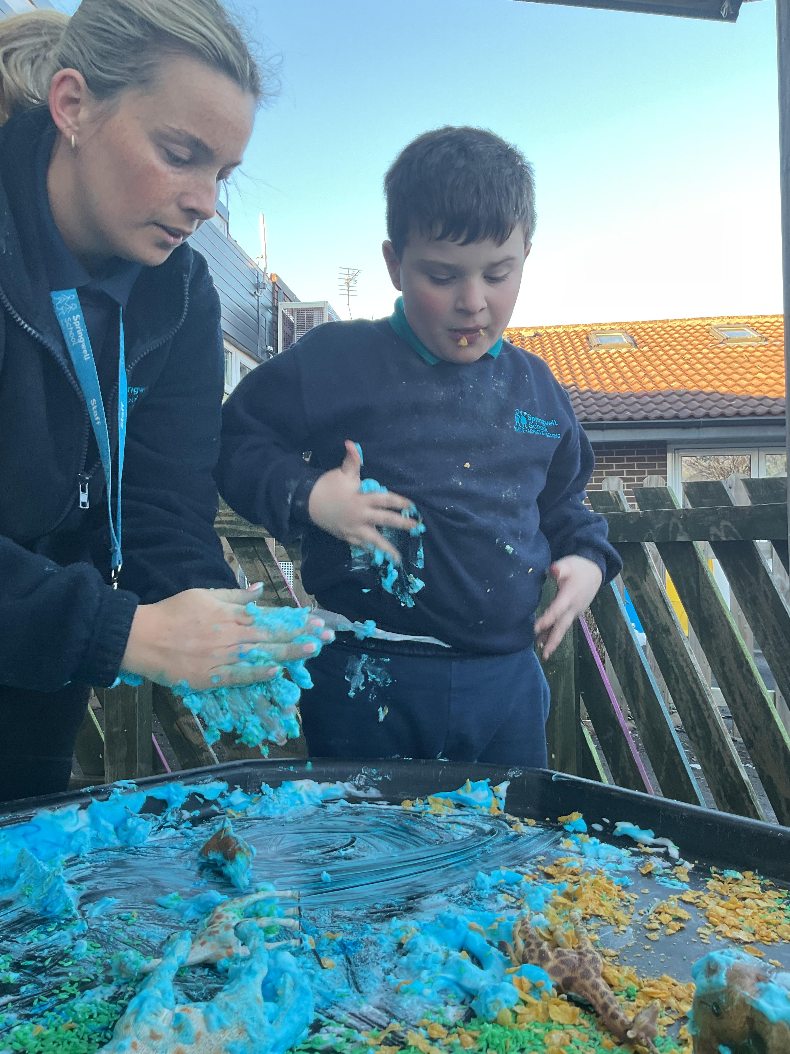 Our focus this week was the seasons, and we explored them through all of our senses. From icy textures to warm colours, the children got hands‑on with lots of sensory materials — including some wonderfully messy gloop that everyone was excited to dive into.