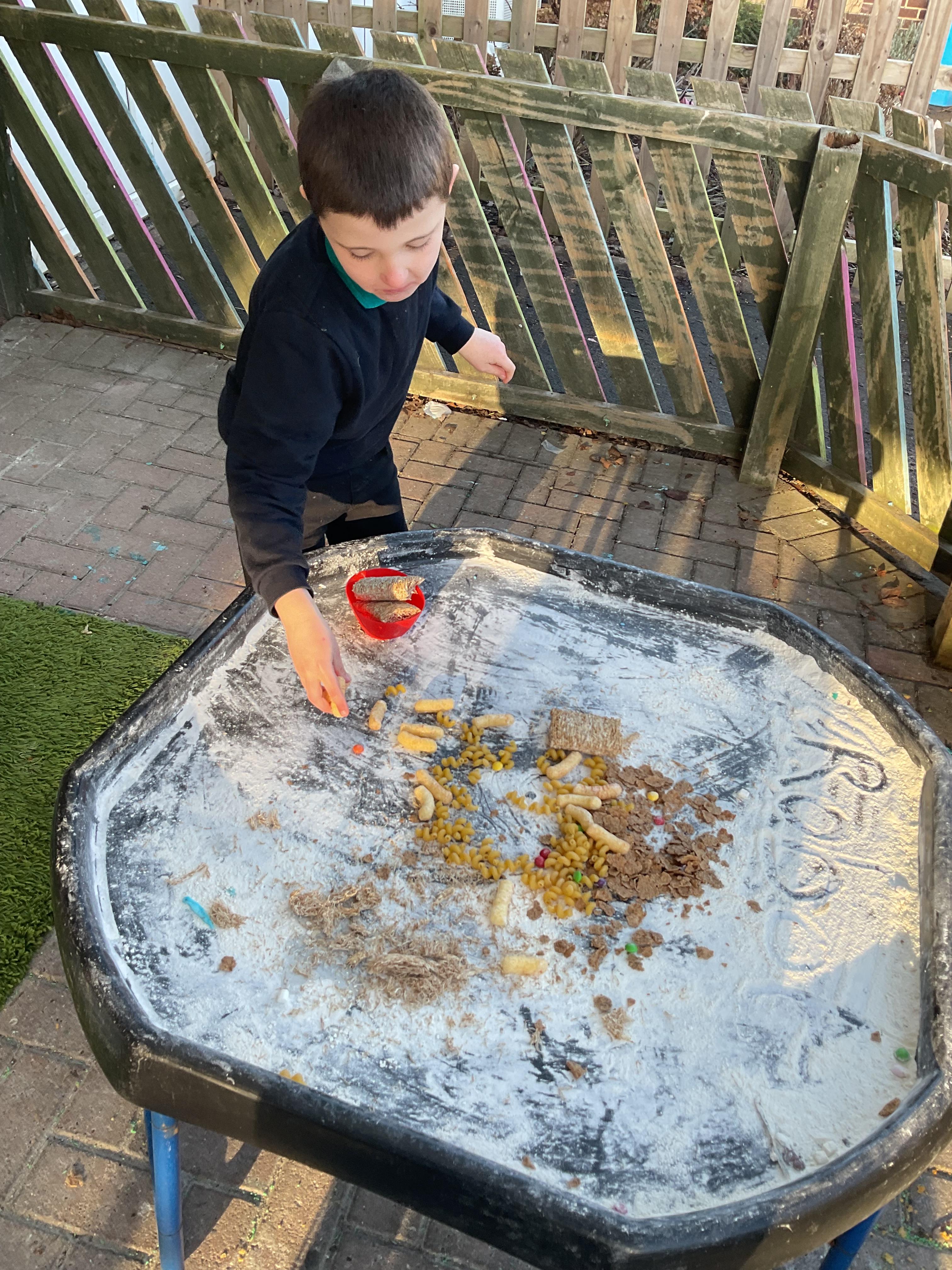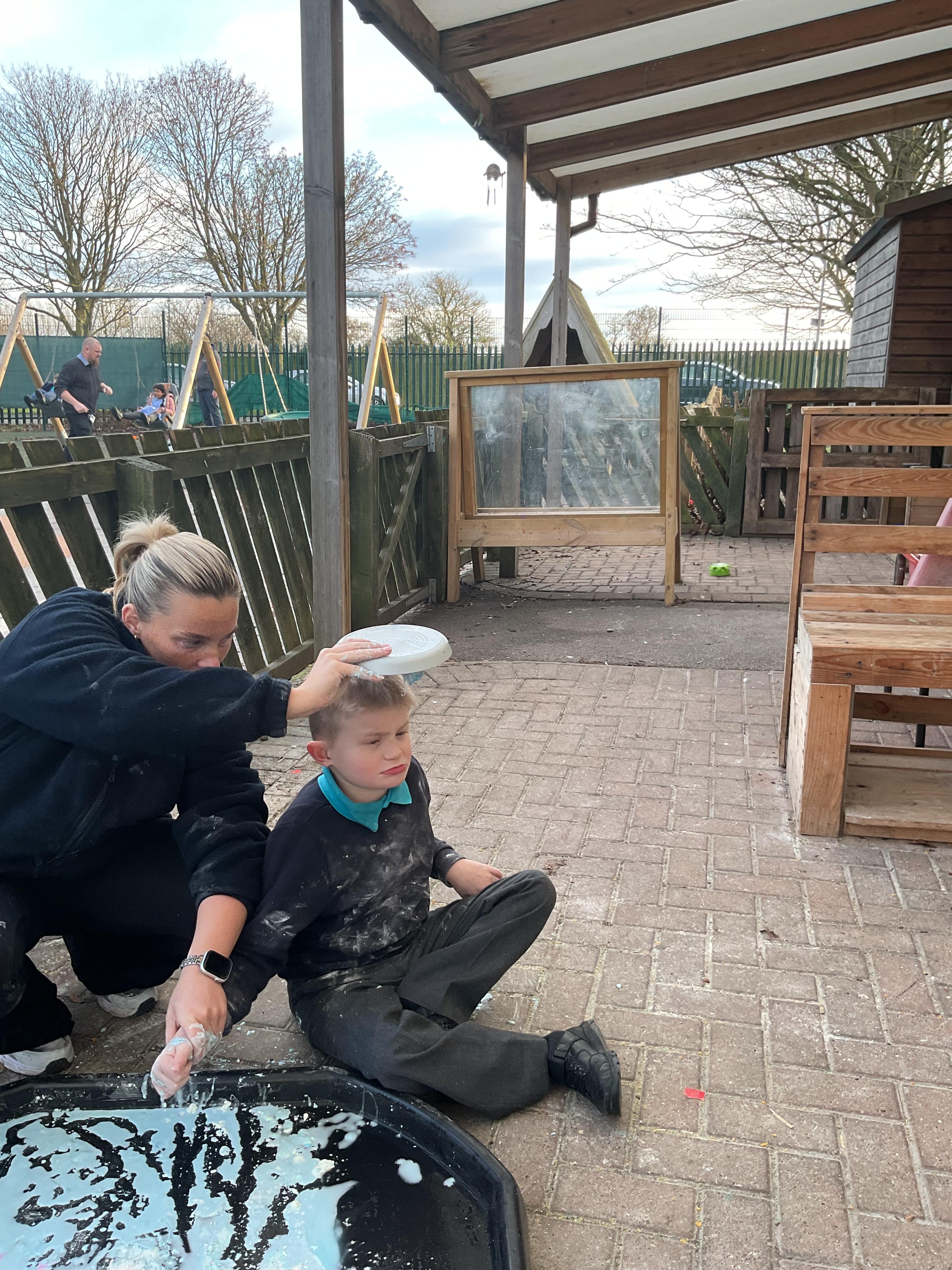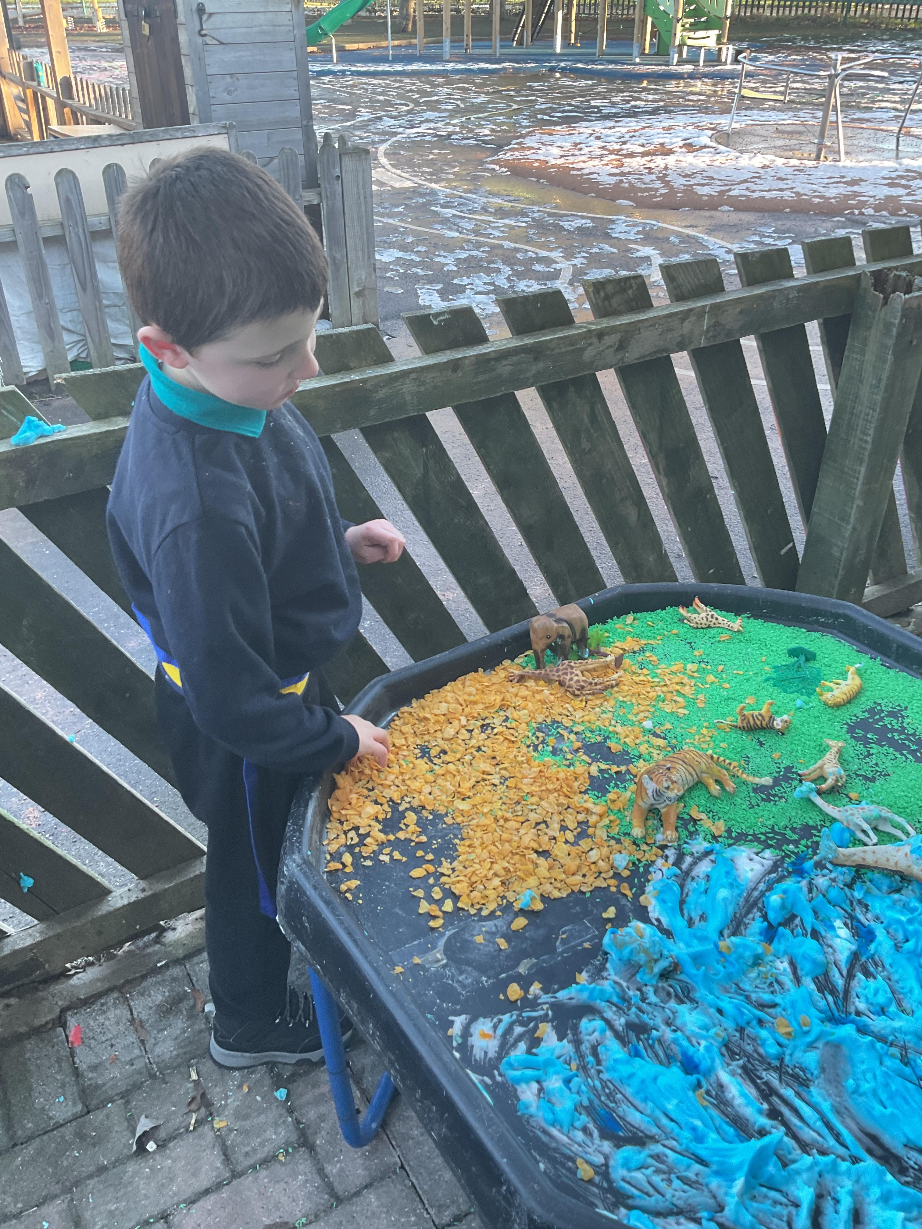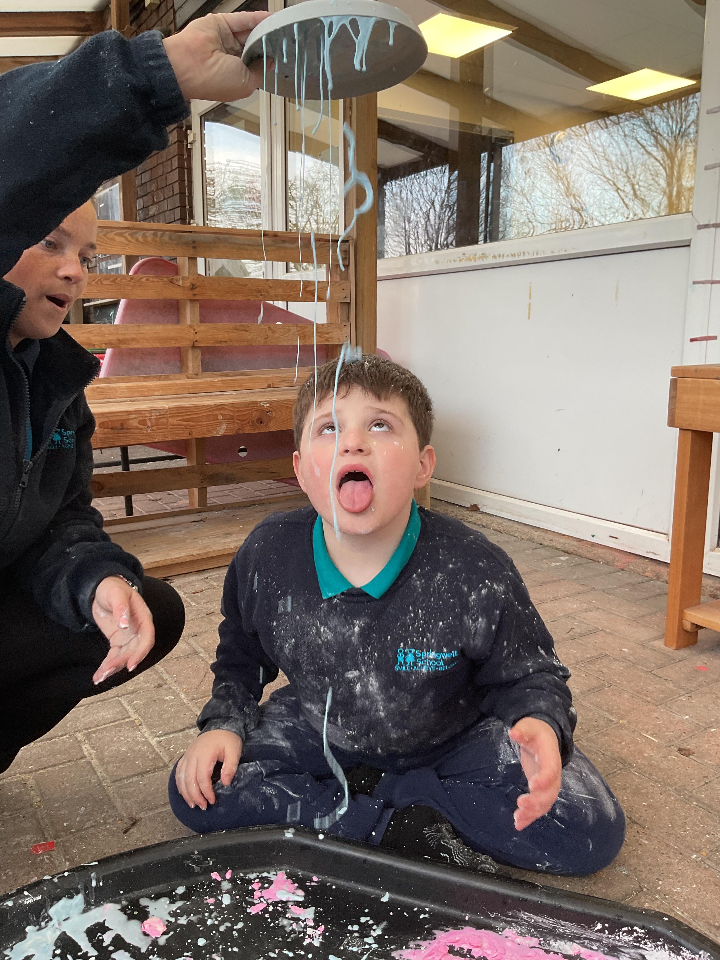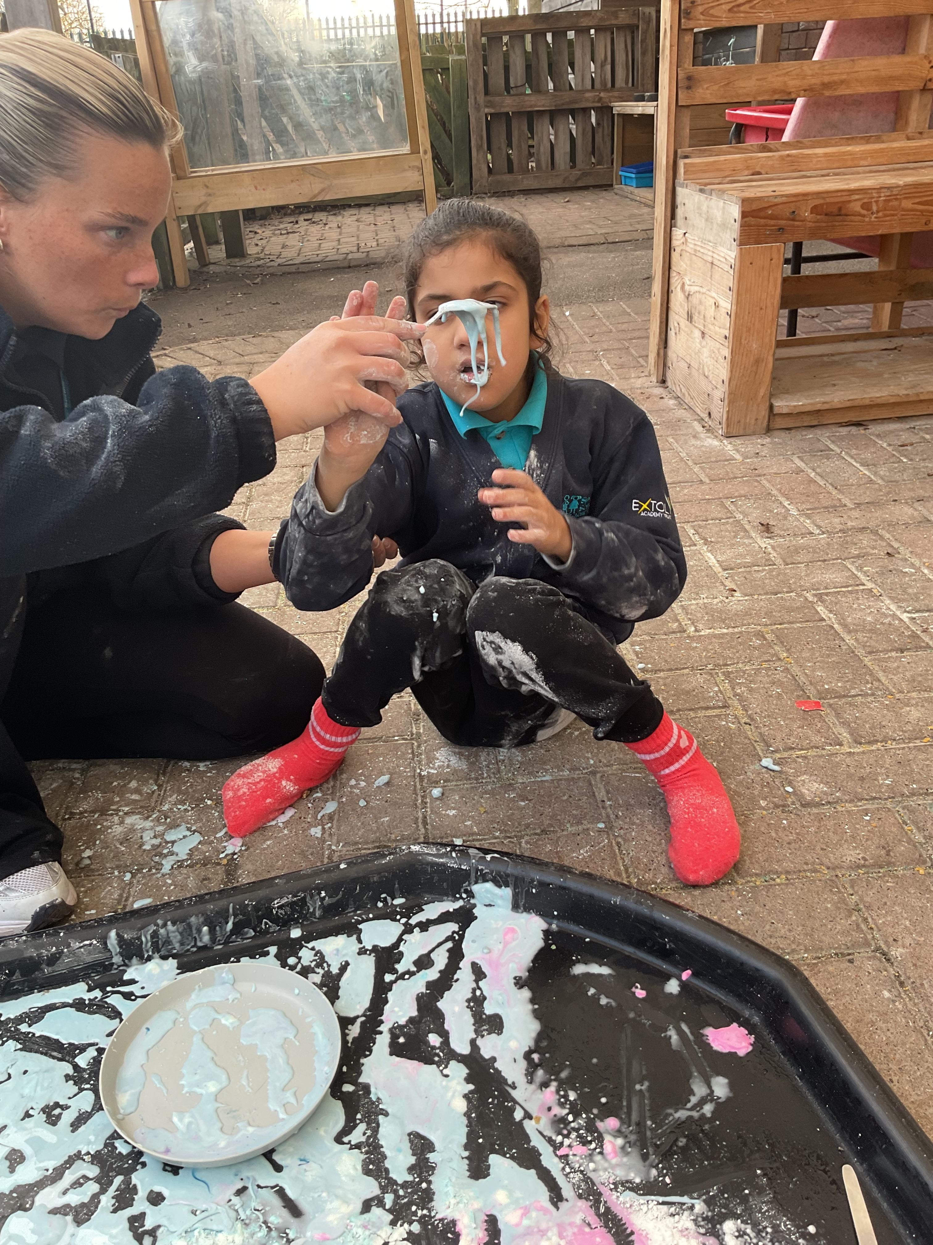 Our focus this week was the seasons, and we explored them through all of our senses. From icy textures to warm colours, the children got hands‑on with lots of sensory materials — including some wonderfully messy gloop that everyone was excited to dive into.