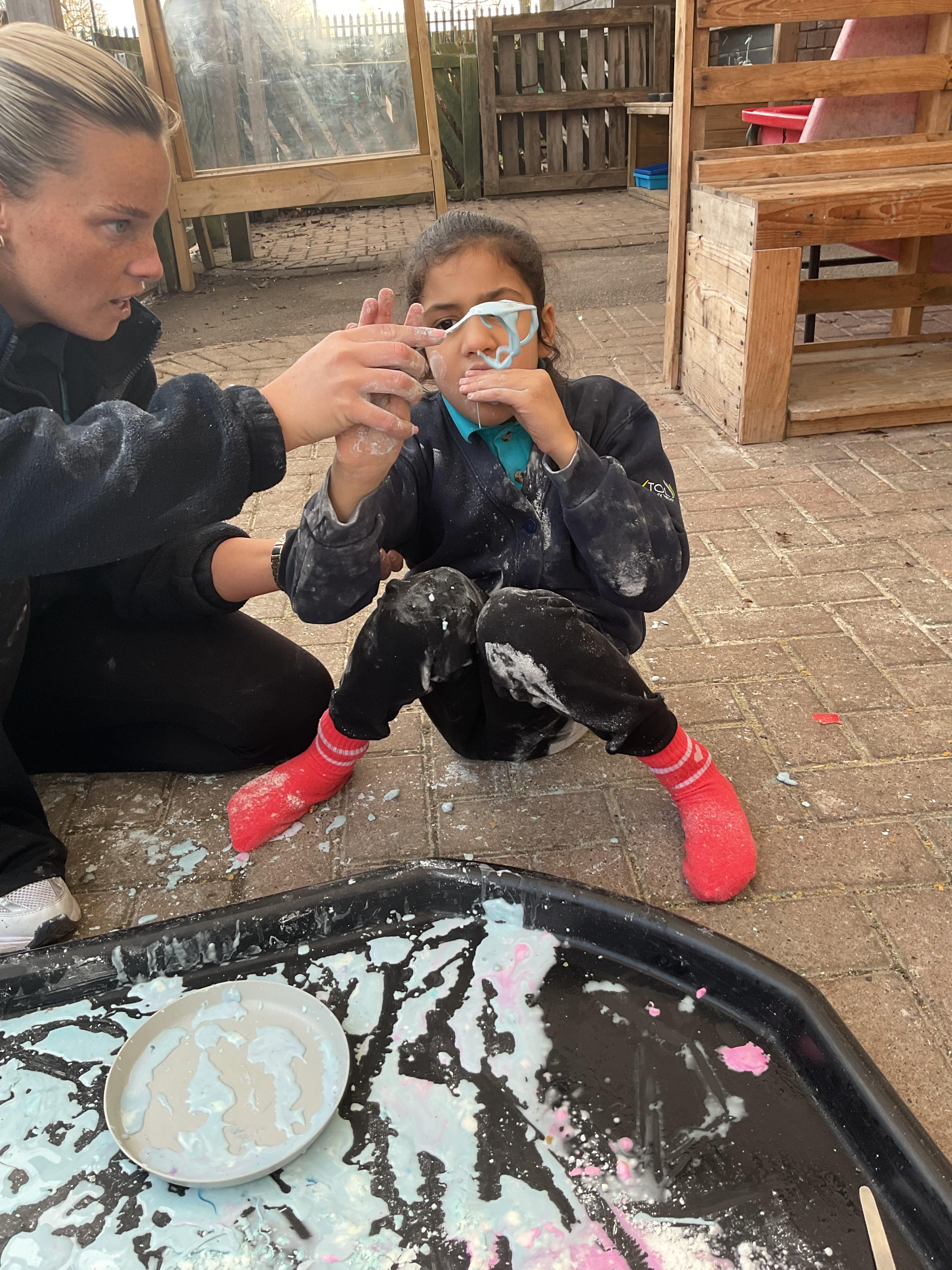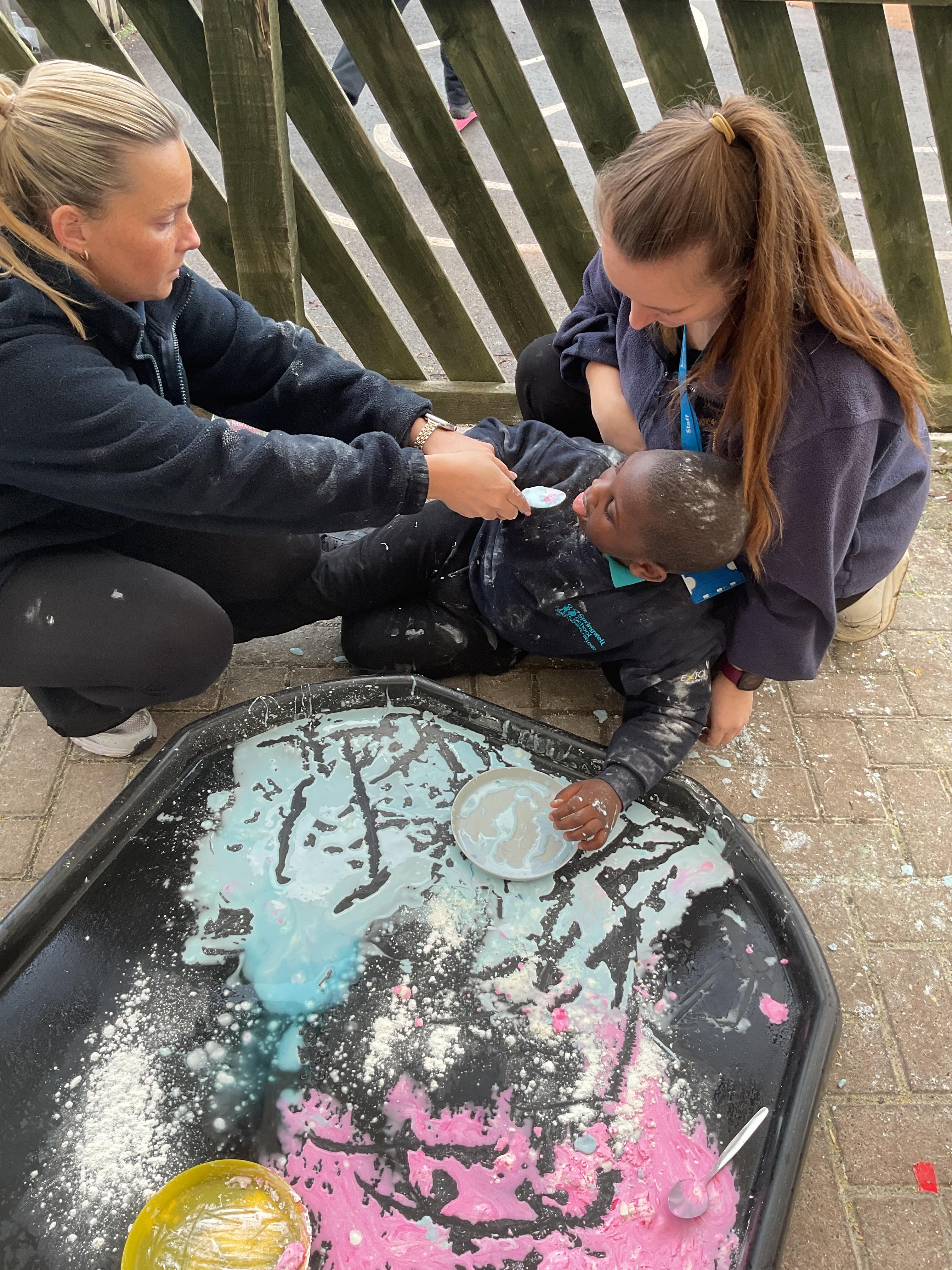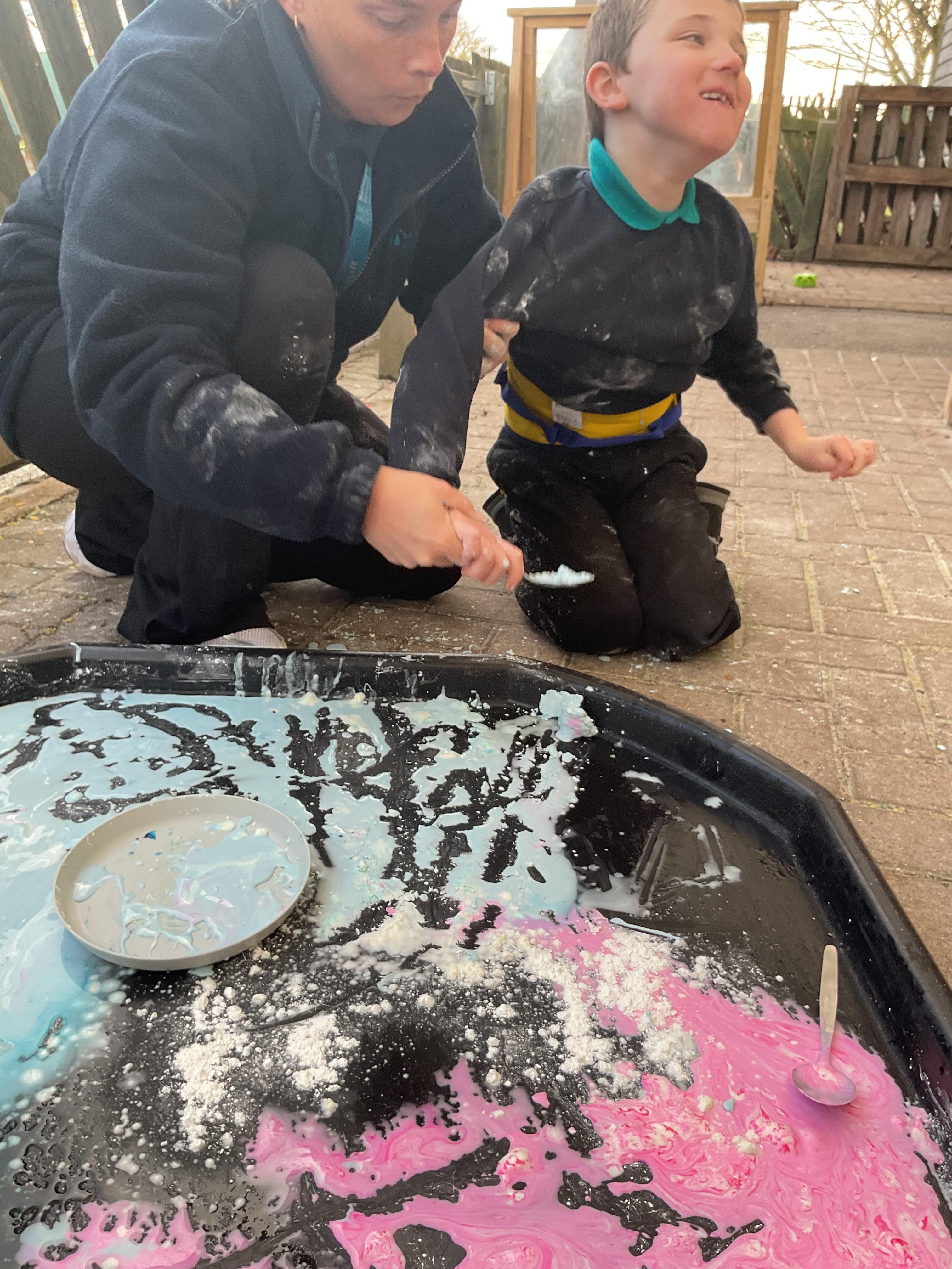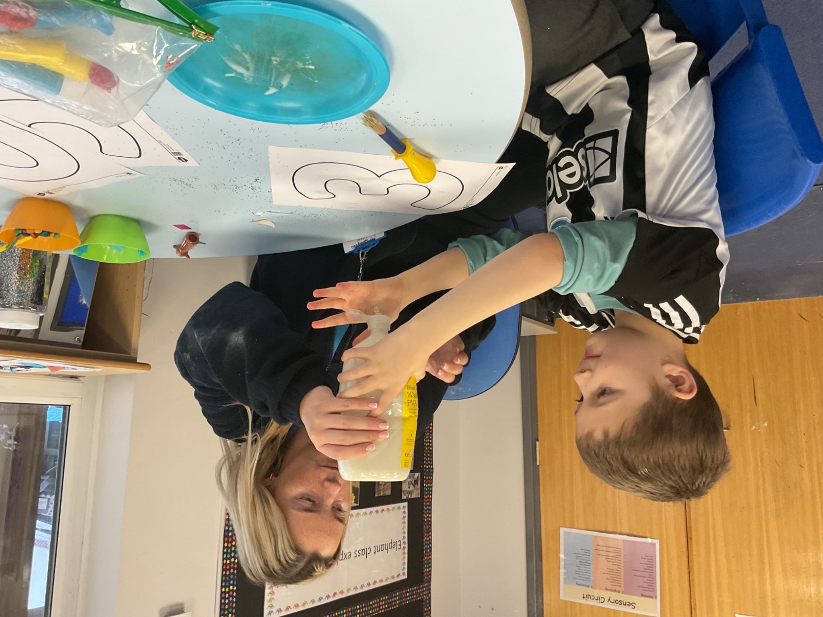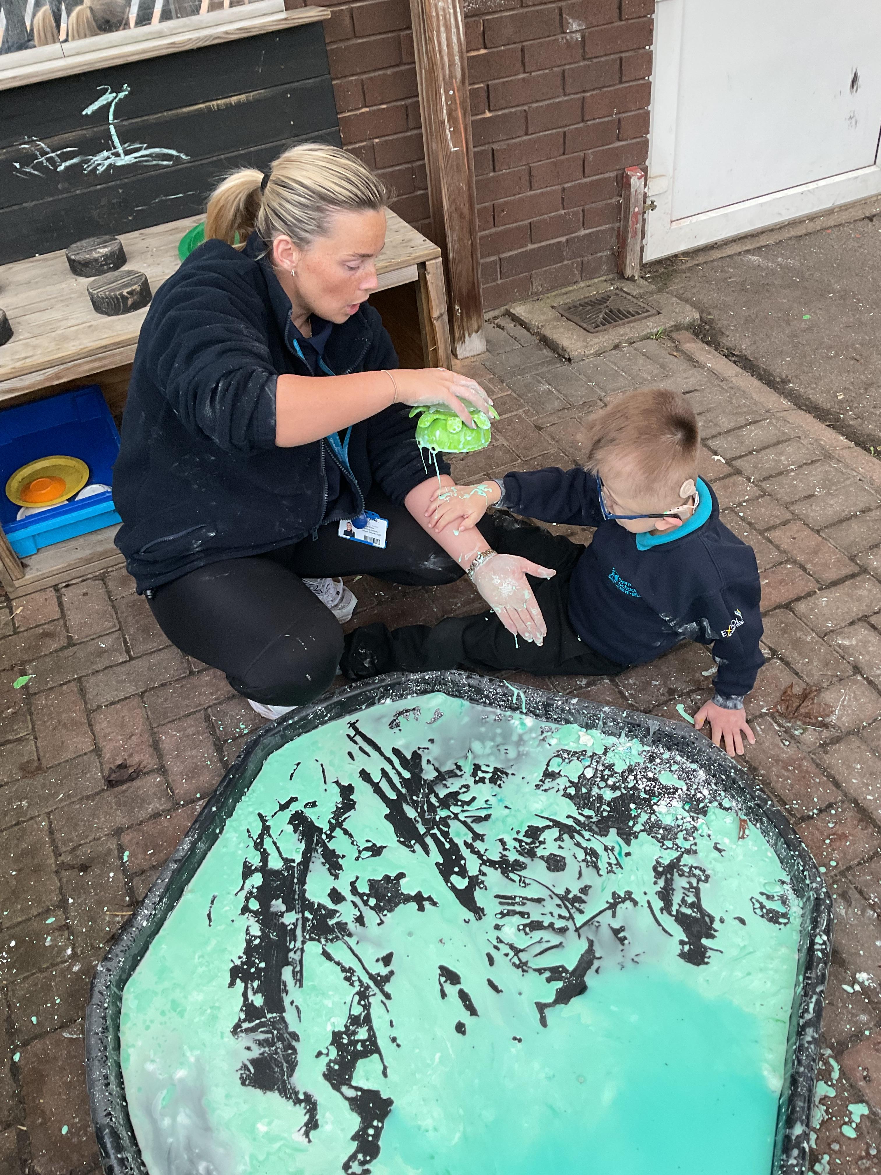 Our focus this week was the seasons, and we explored them through all of our senses. From icy textures to warm colours, the children got hands‑on with lots of sensory materials — including some wonderfully messy gloop that everyone was excited to dive into.