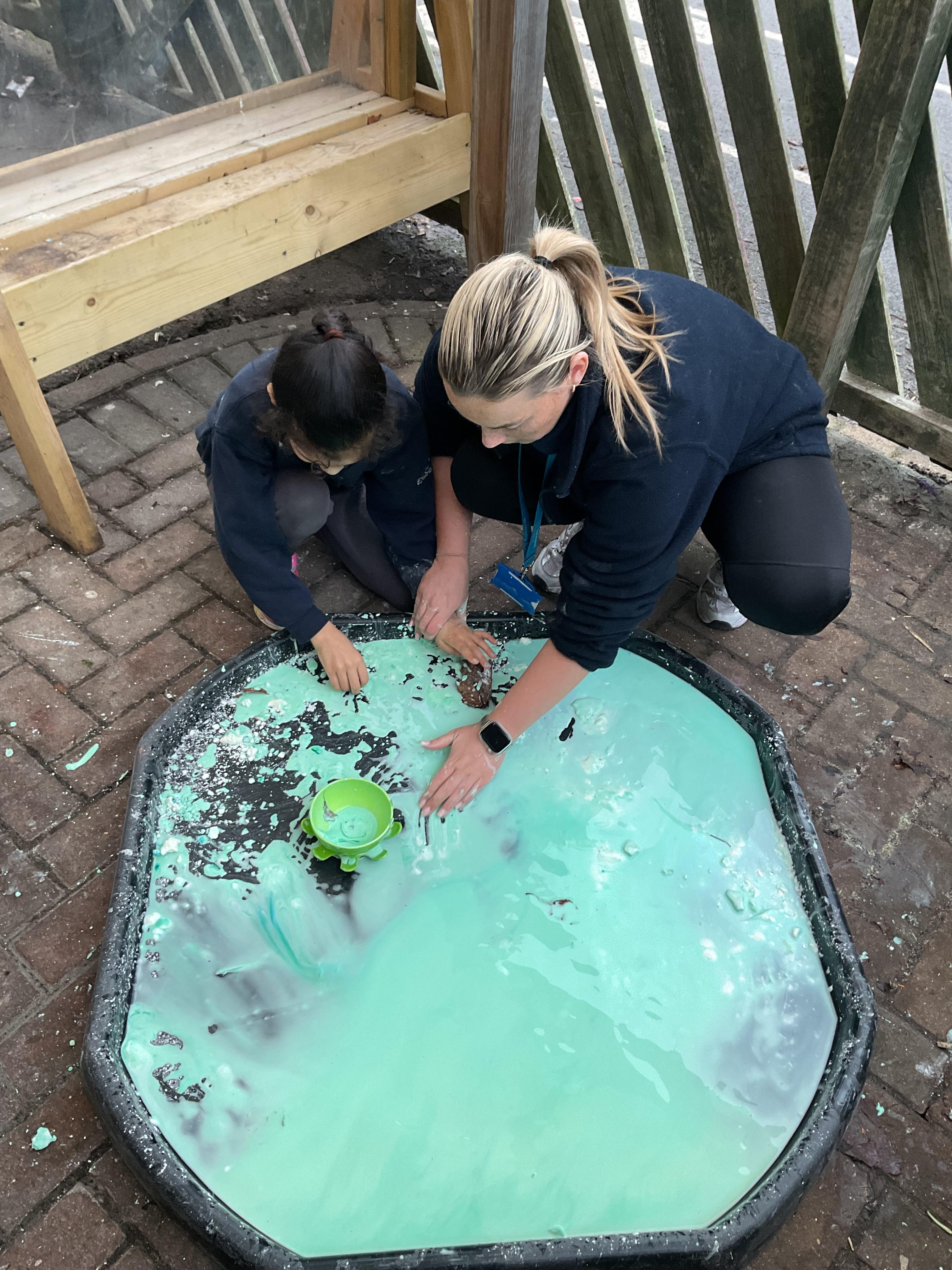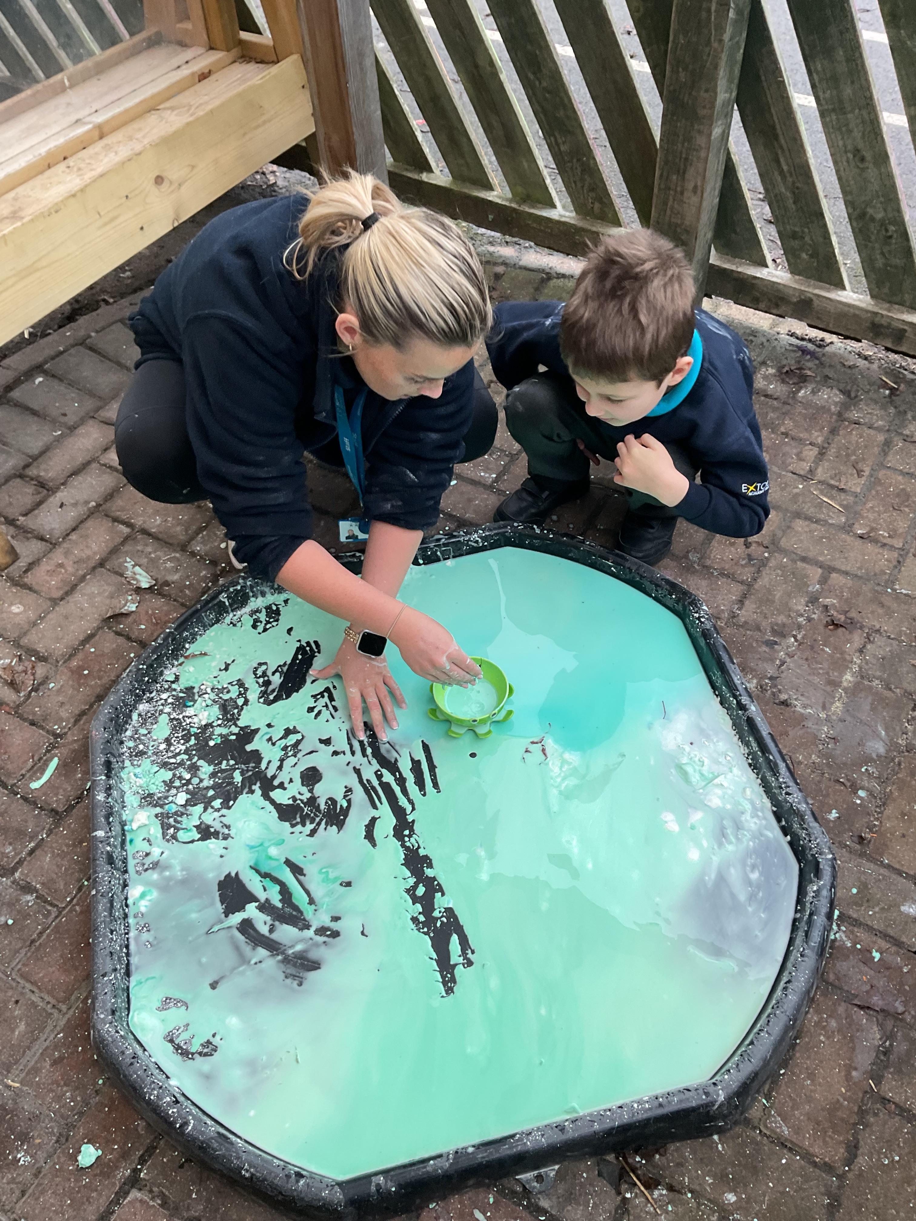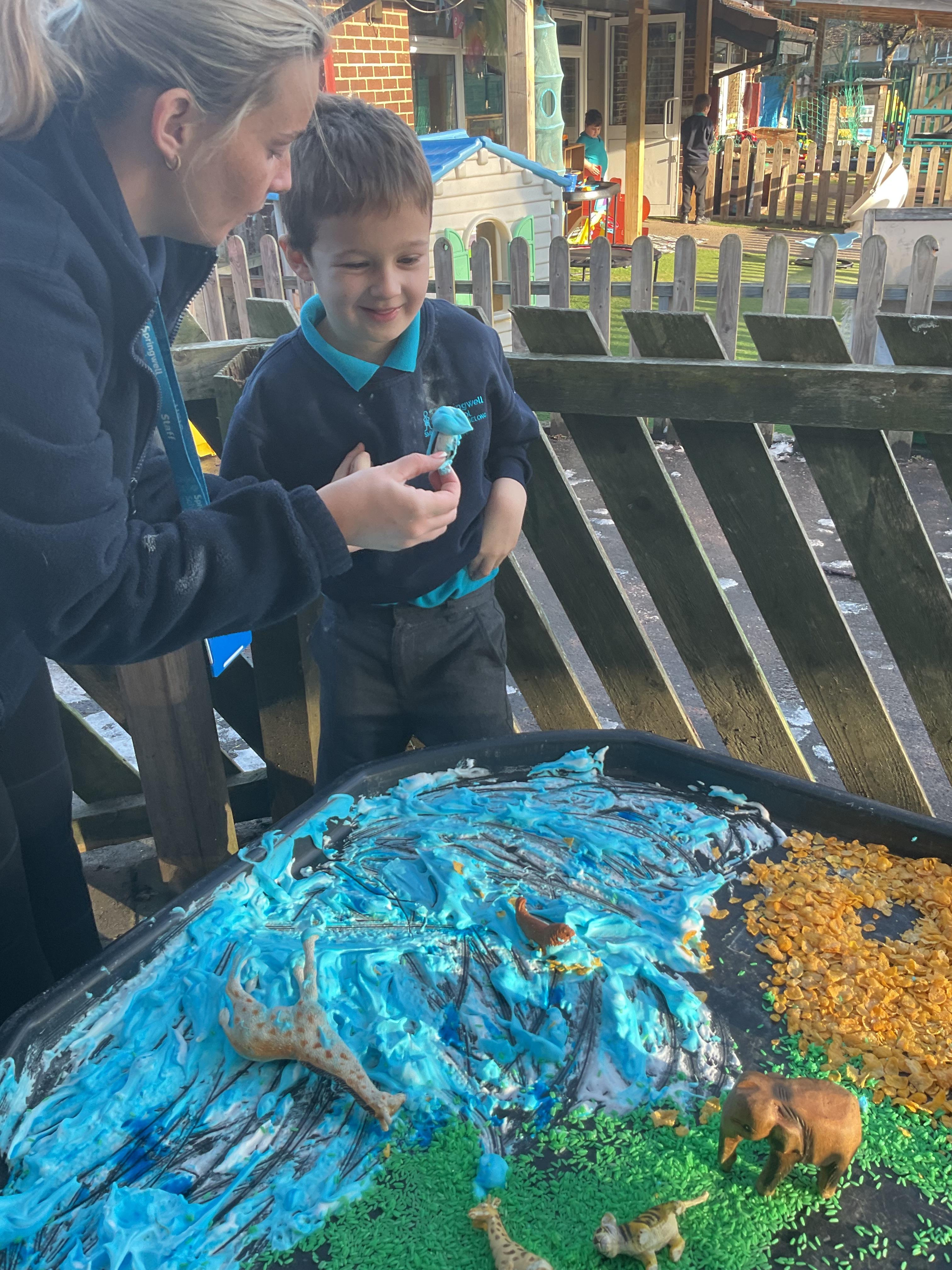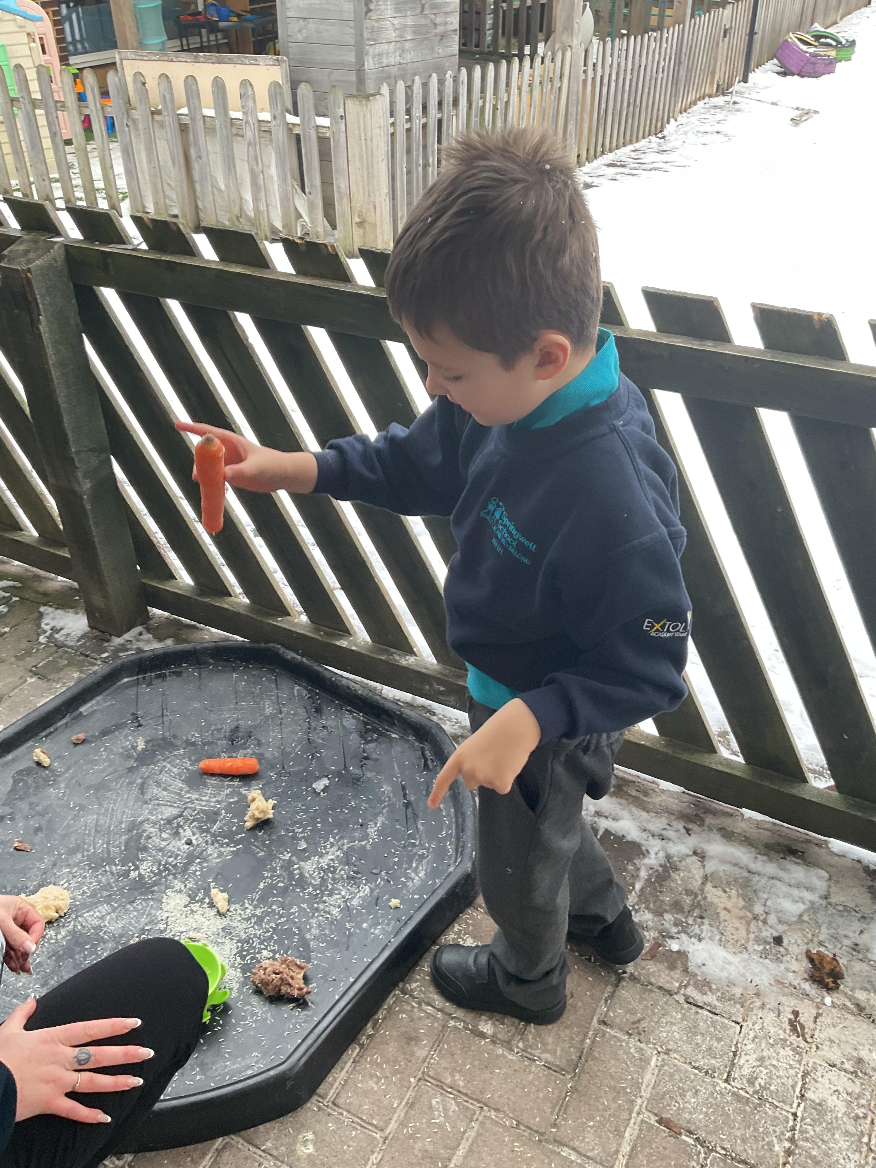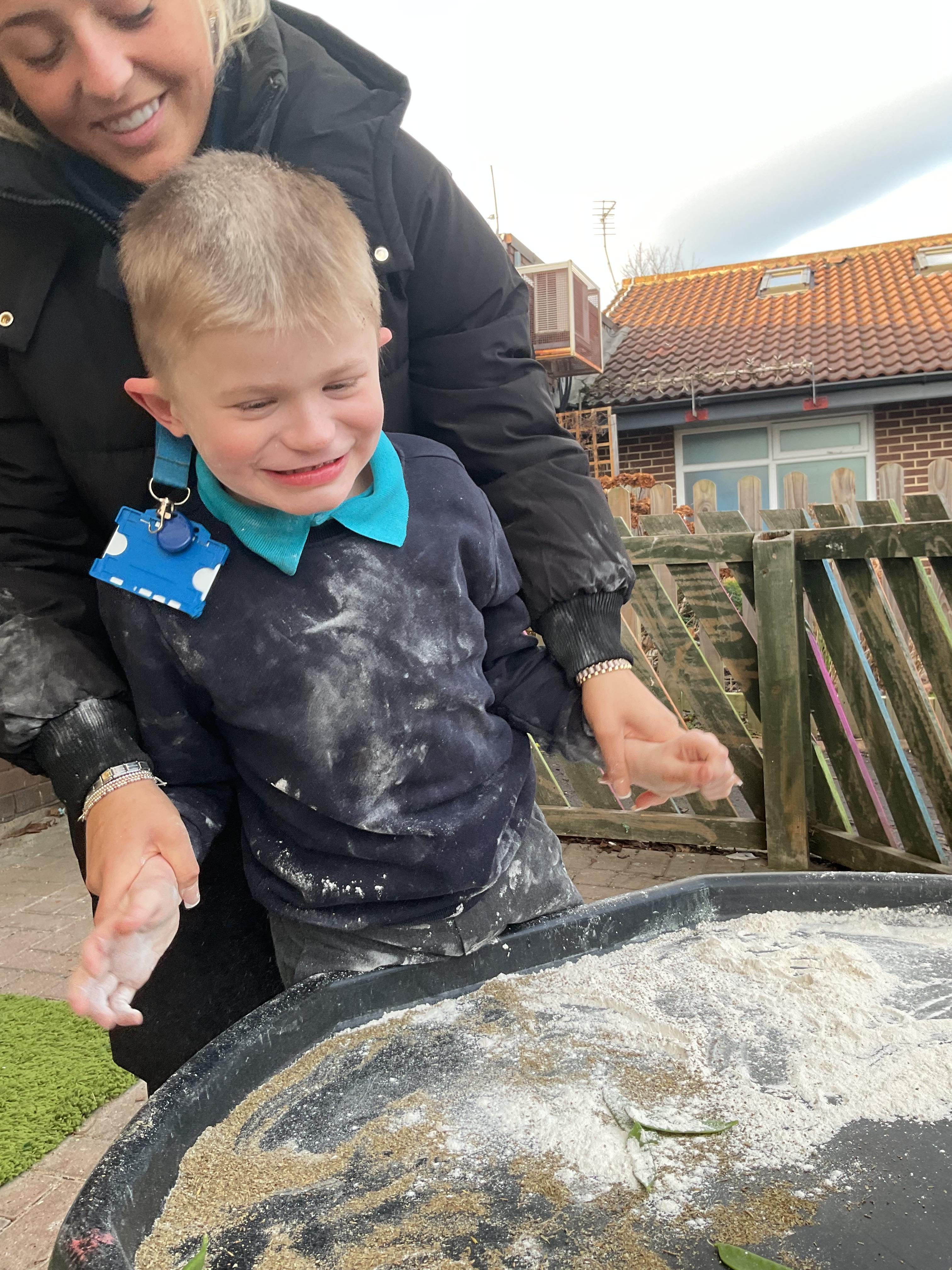 Our focus this week was the seasons, and we explored them through all of our senses. From icy textures to warm colours, the children got hands‑on with lots of sensory materials — including some wonderfully messy gloop that everyone was excited to dive into.