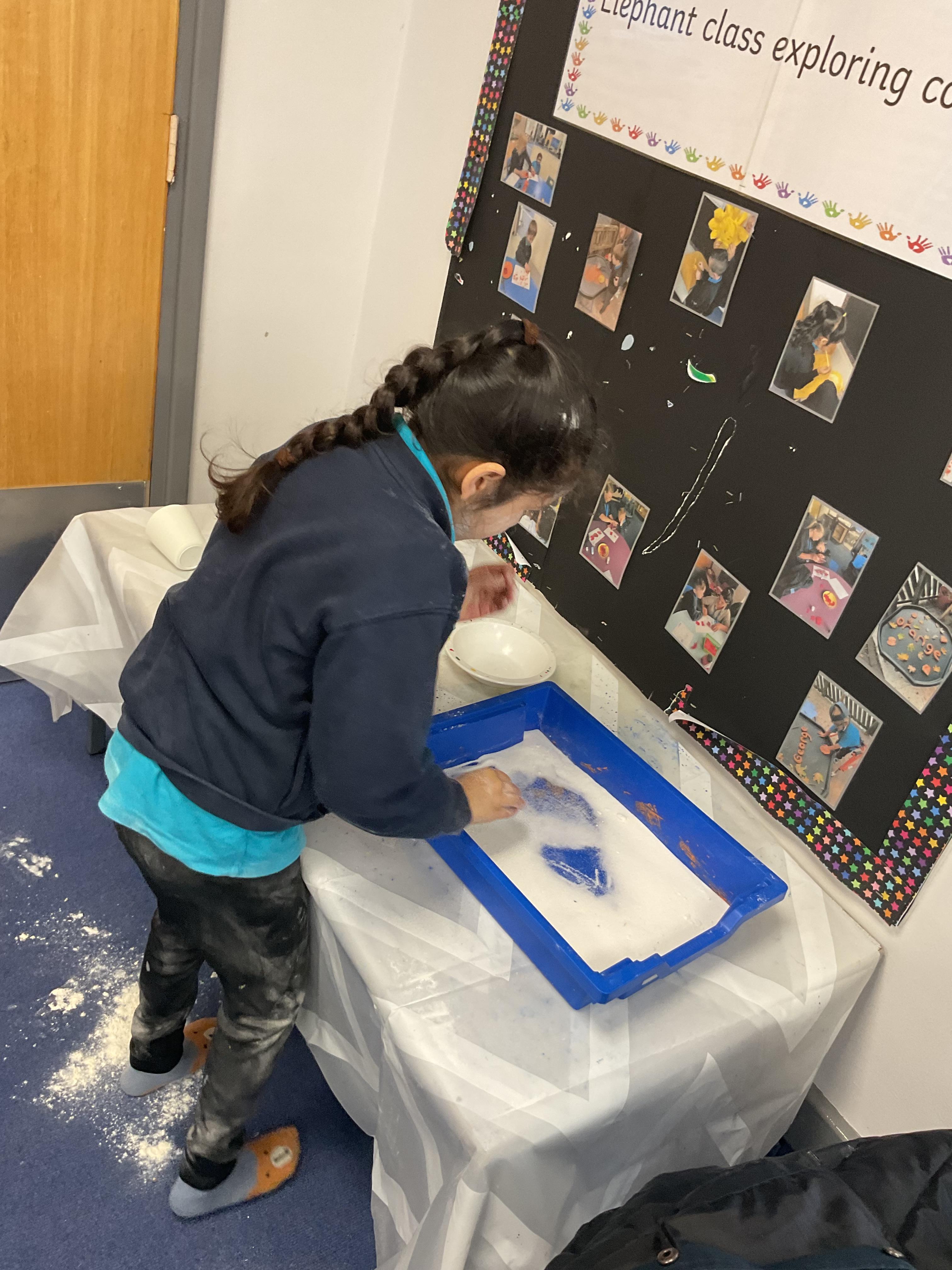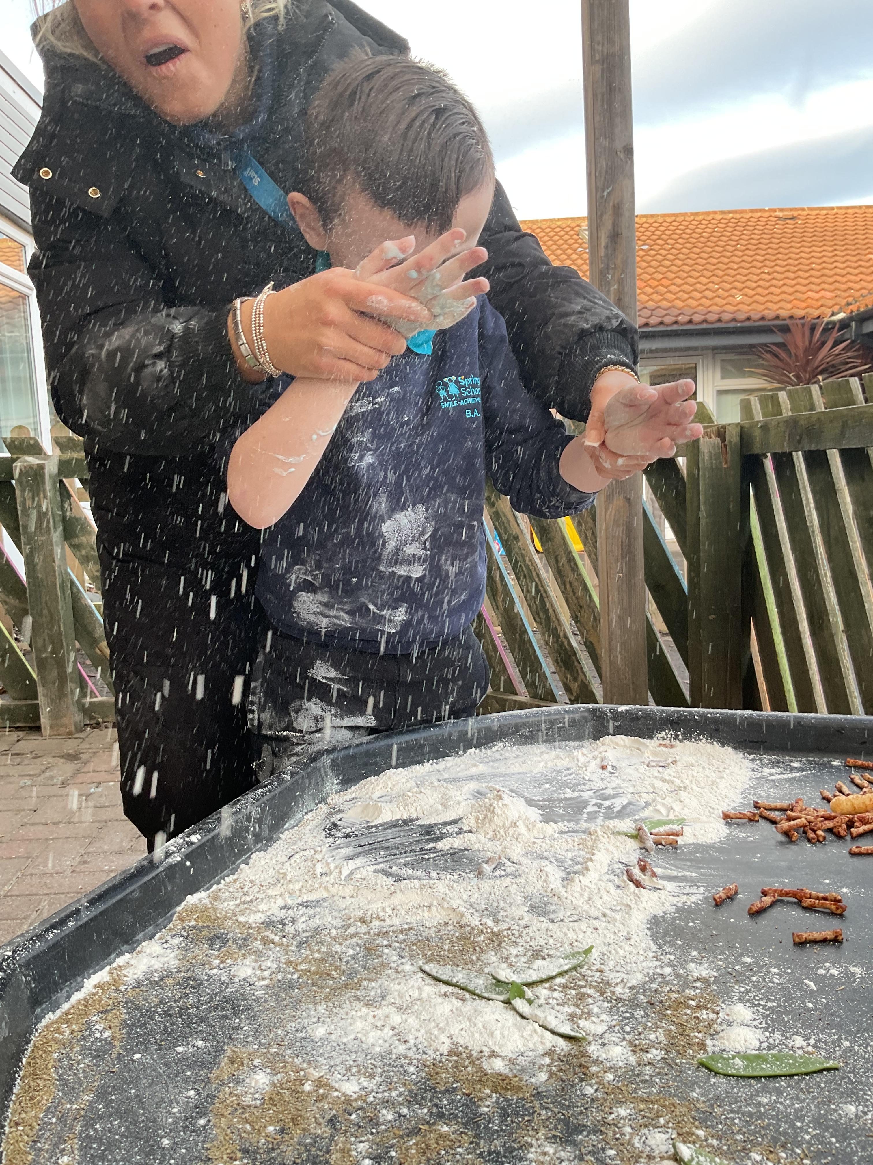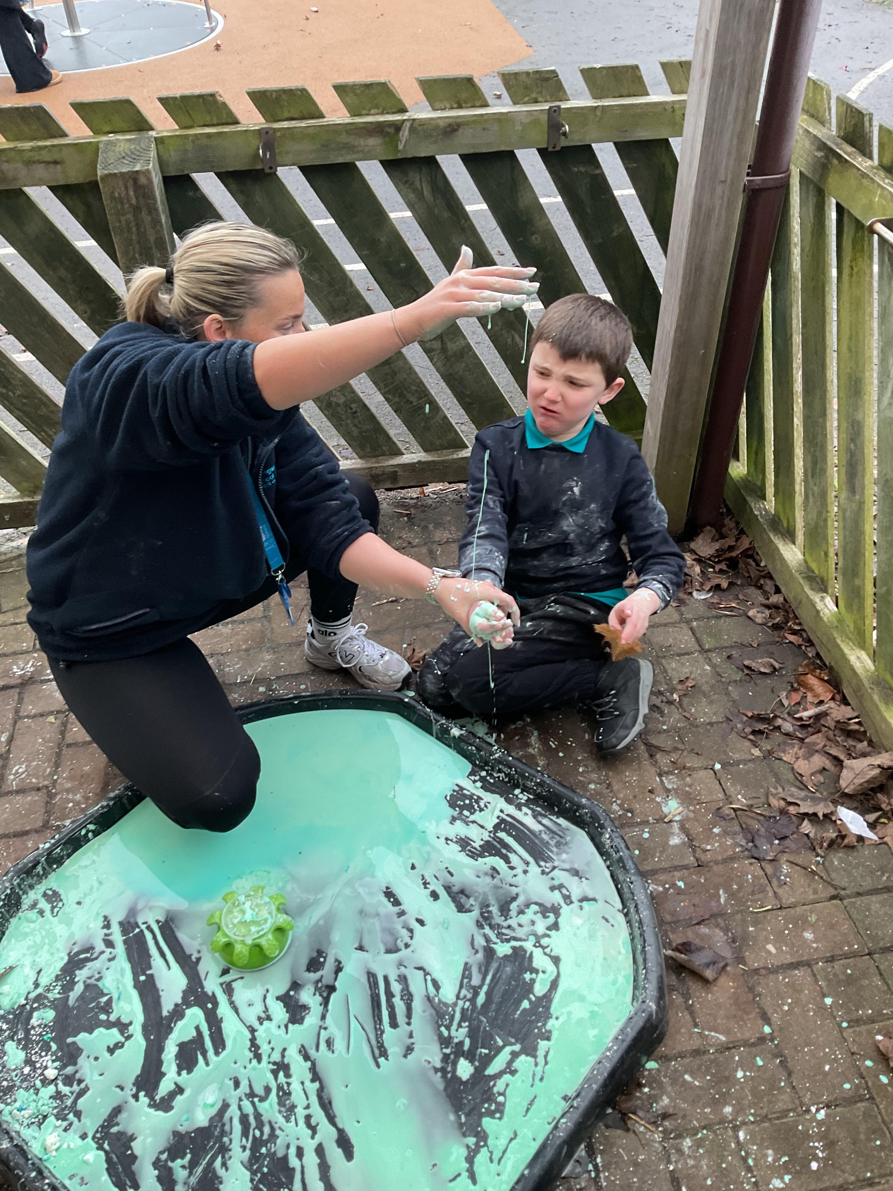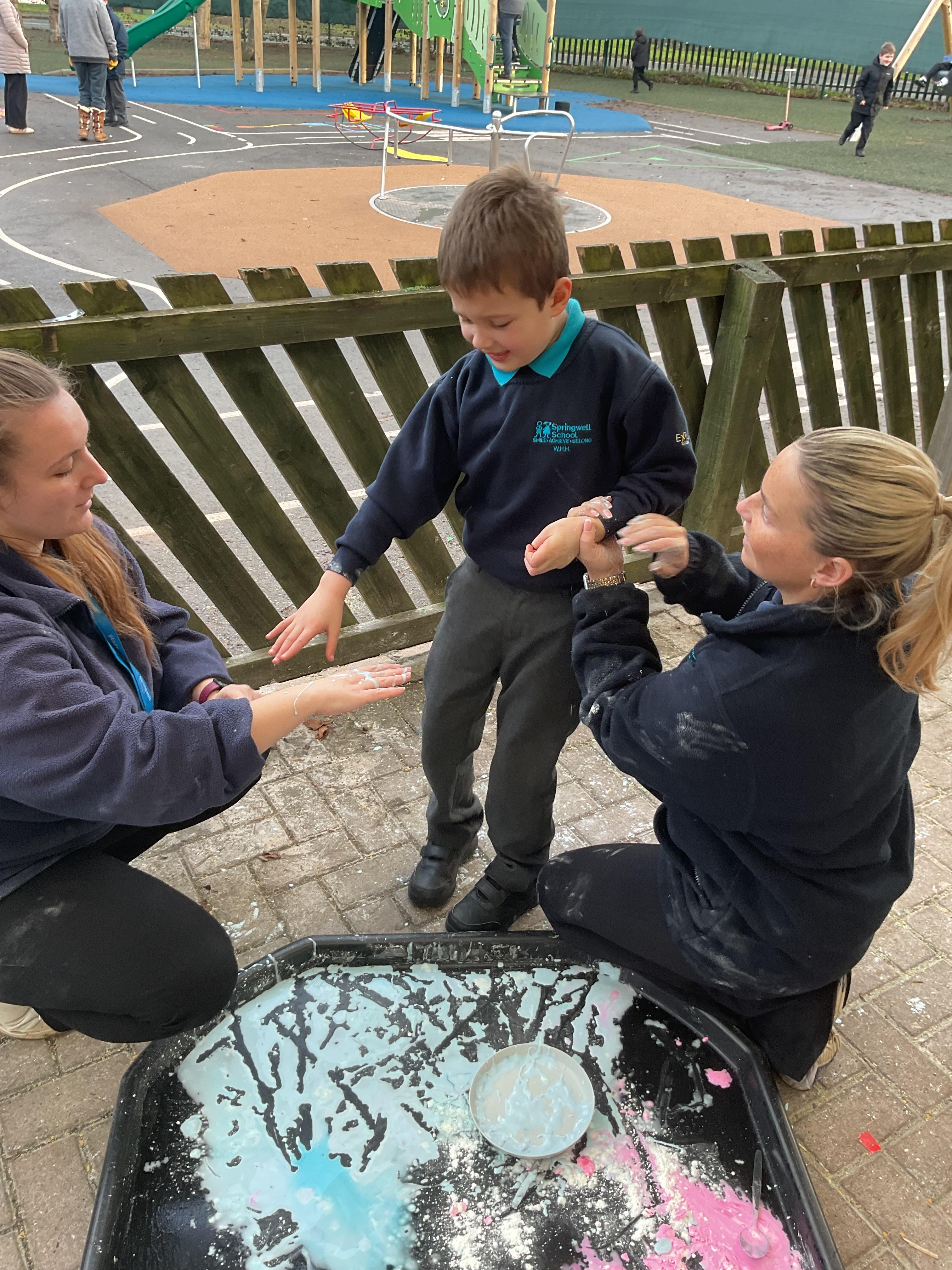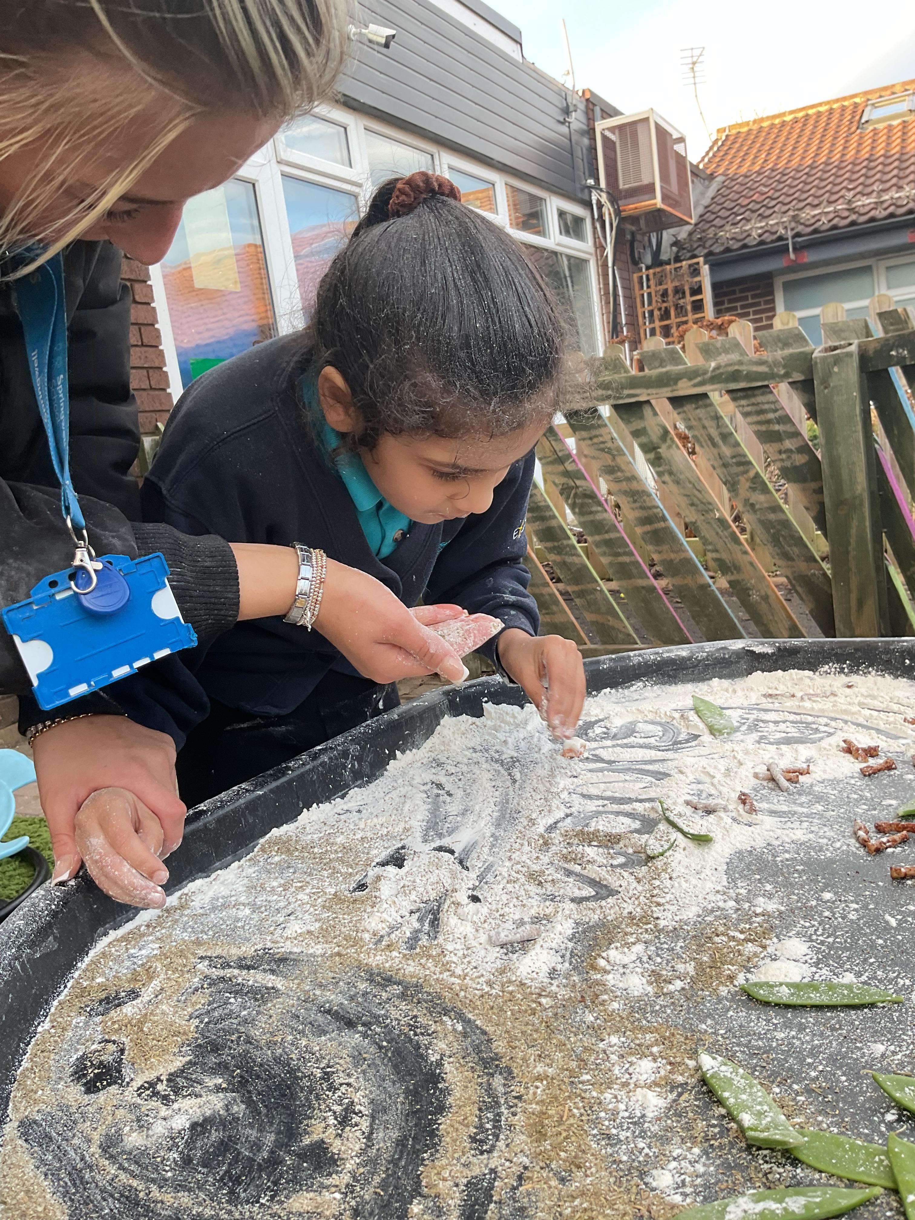 Our focus this week was the seasons, and we explored them through all of our senses. From icy textures to warm colours, the children got hands‑on with lots of sensory materials — including some wonderfully messy gloop that everyone was excited to dive into.