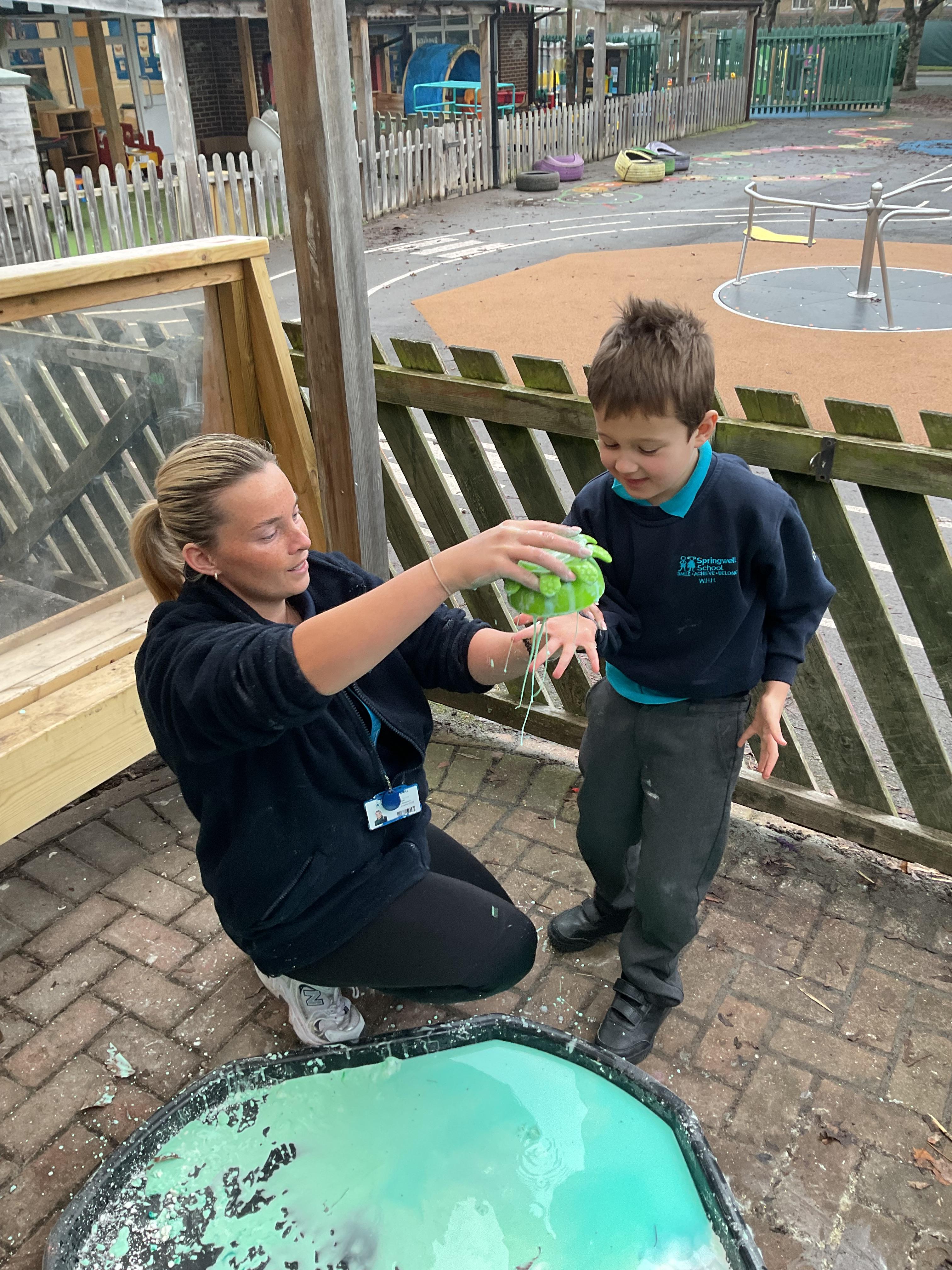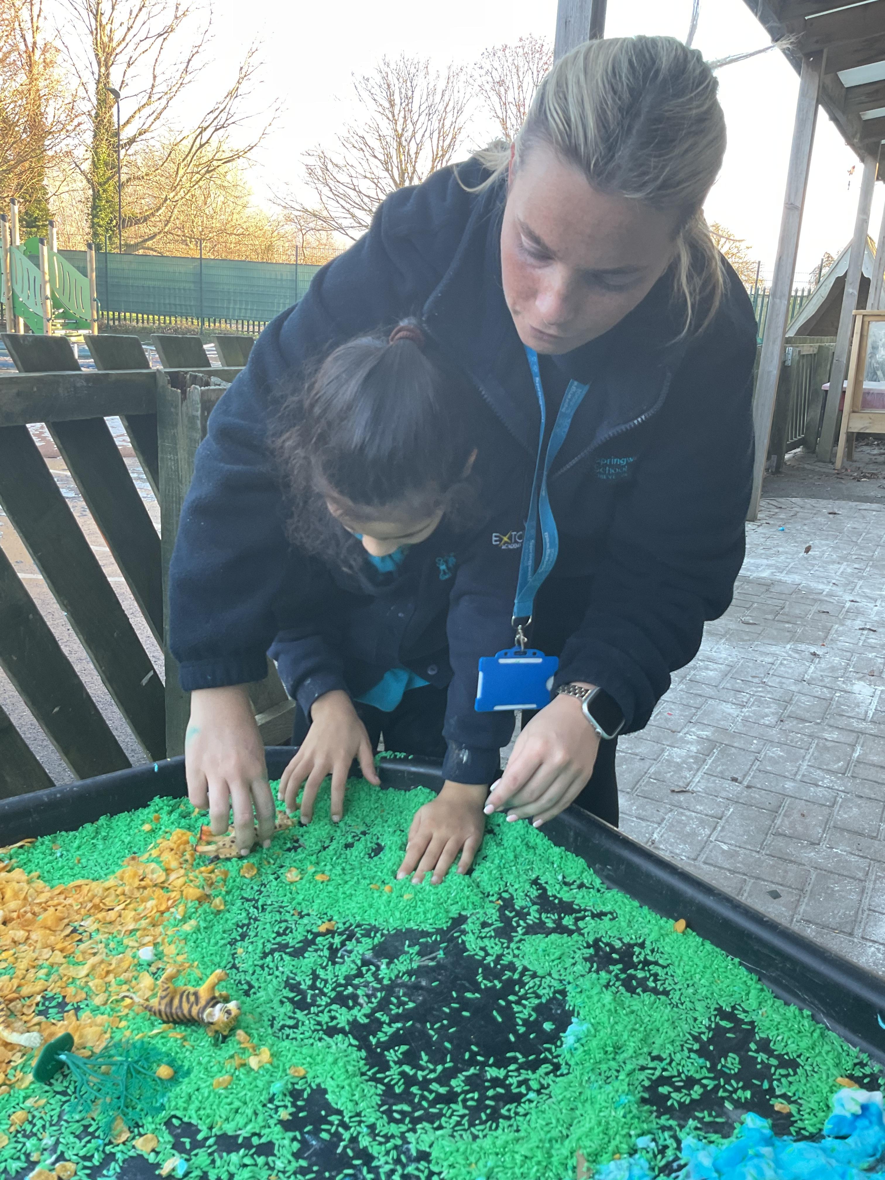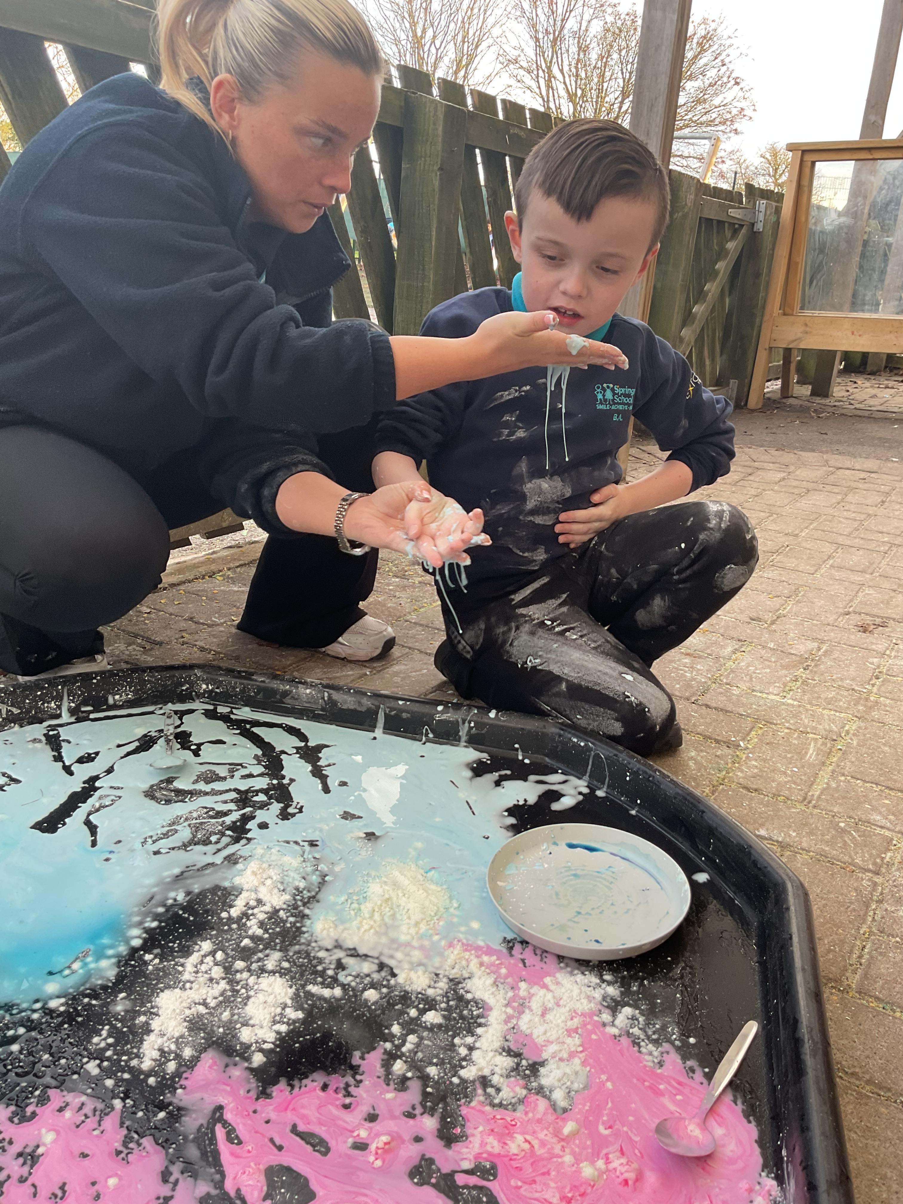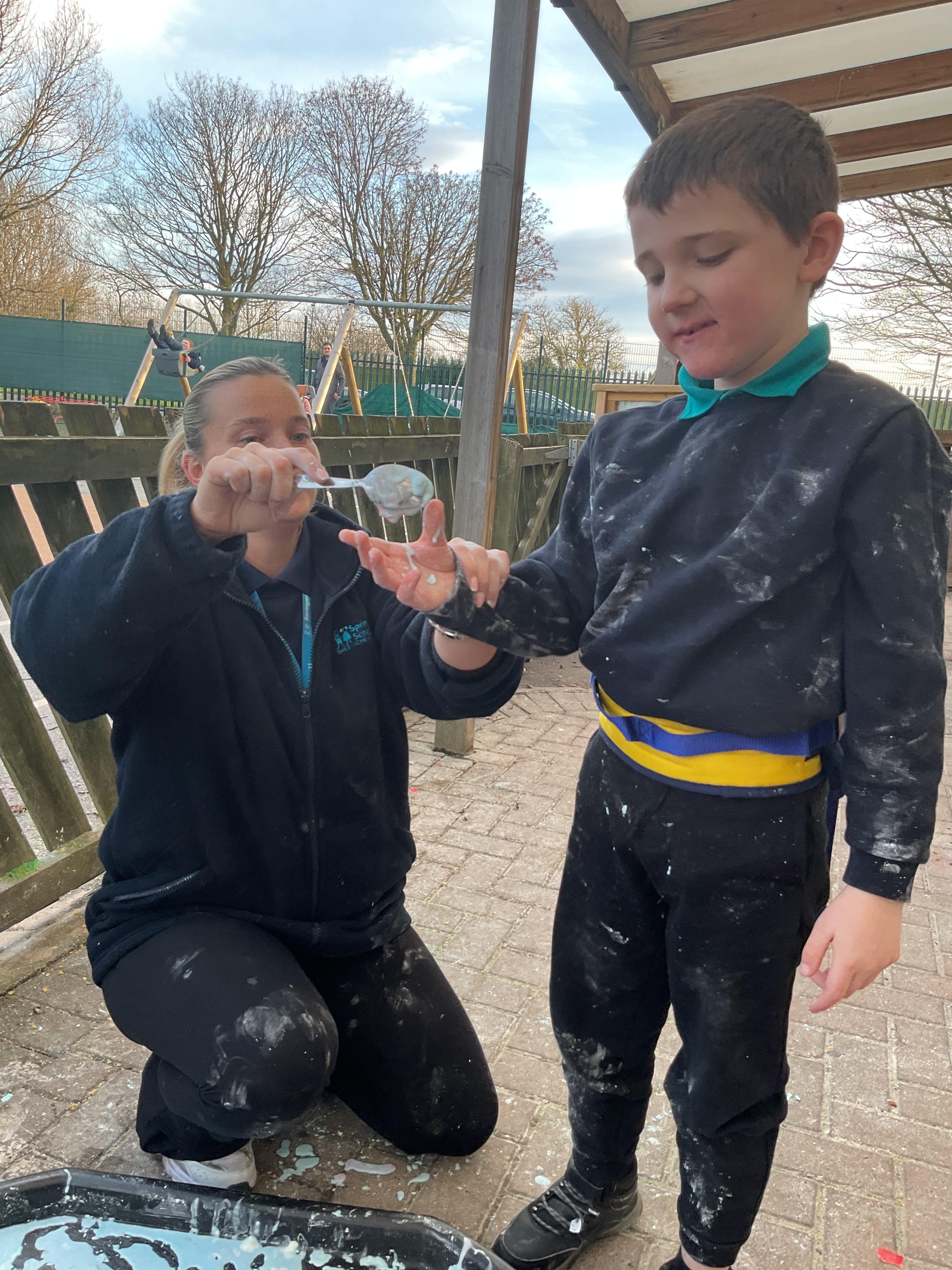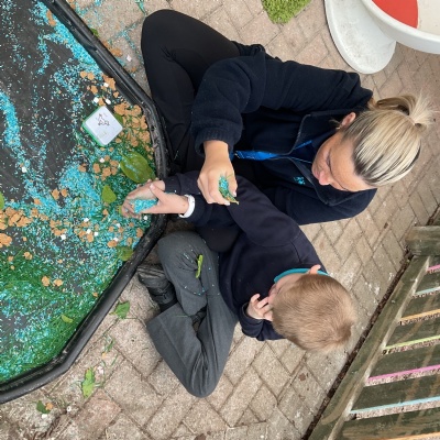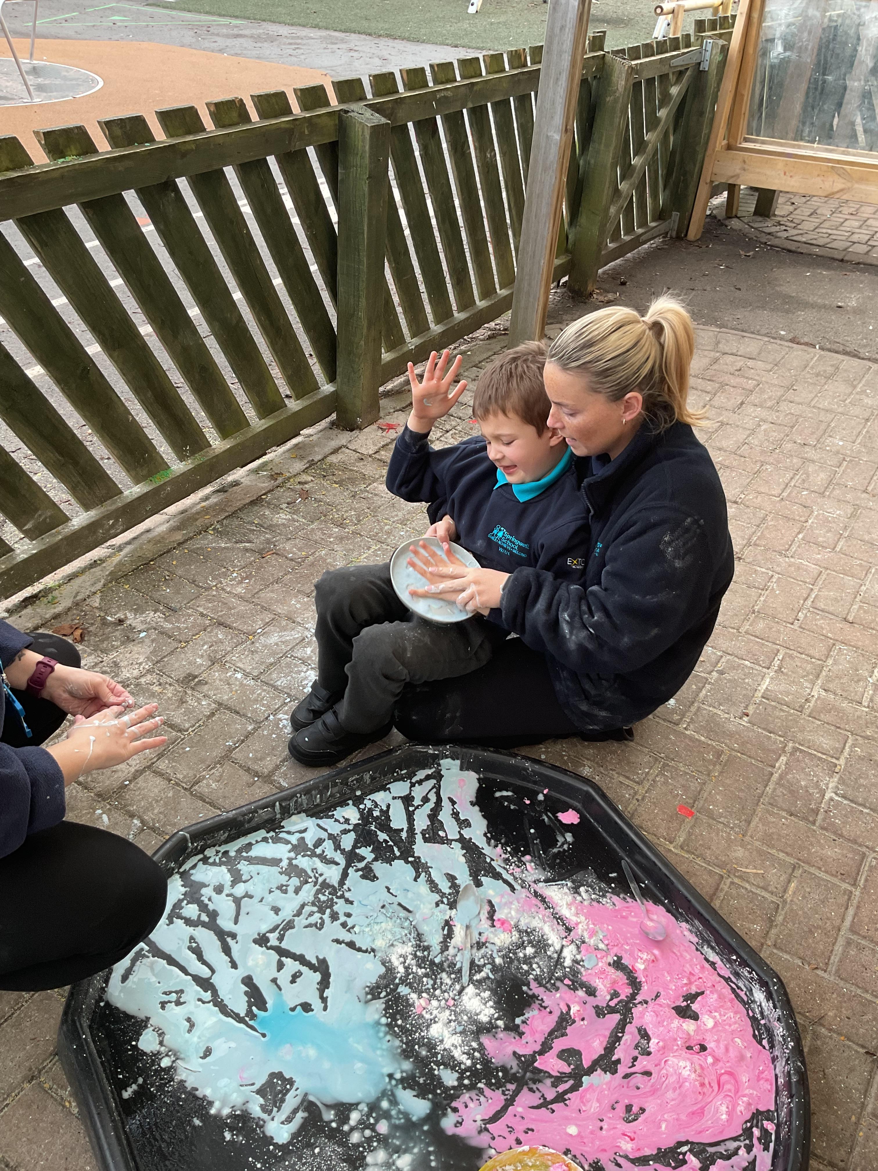 Our focus this week was the seasons, and we explored them through all of our senses. From icy textures to warm colours, the children got hands‑on with lots of sensory materials — including some wonderfully messy gloop that everyone was excited to dive into.