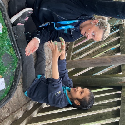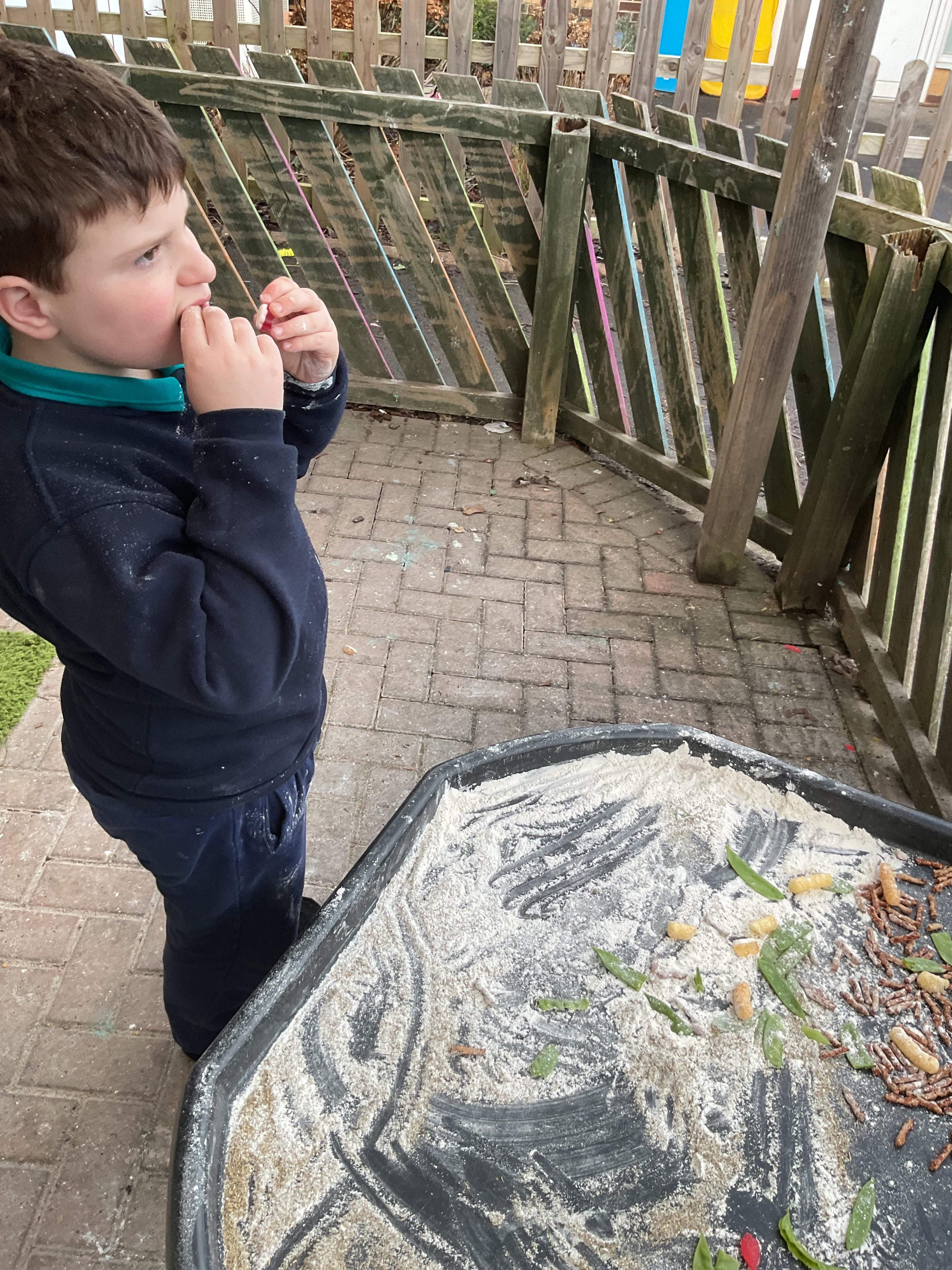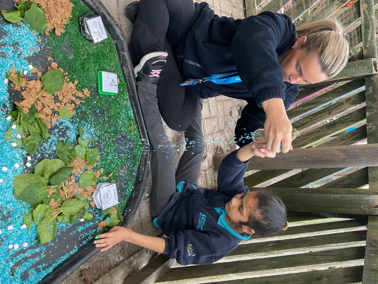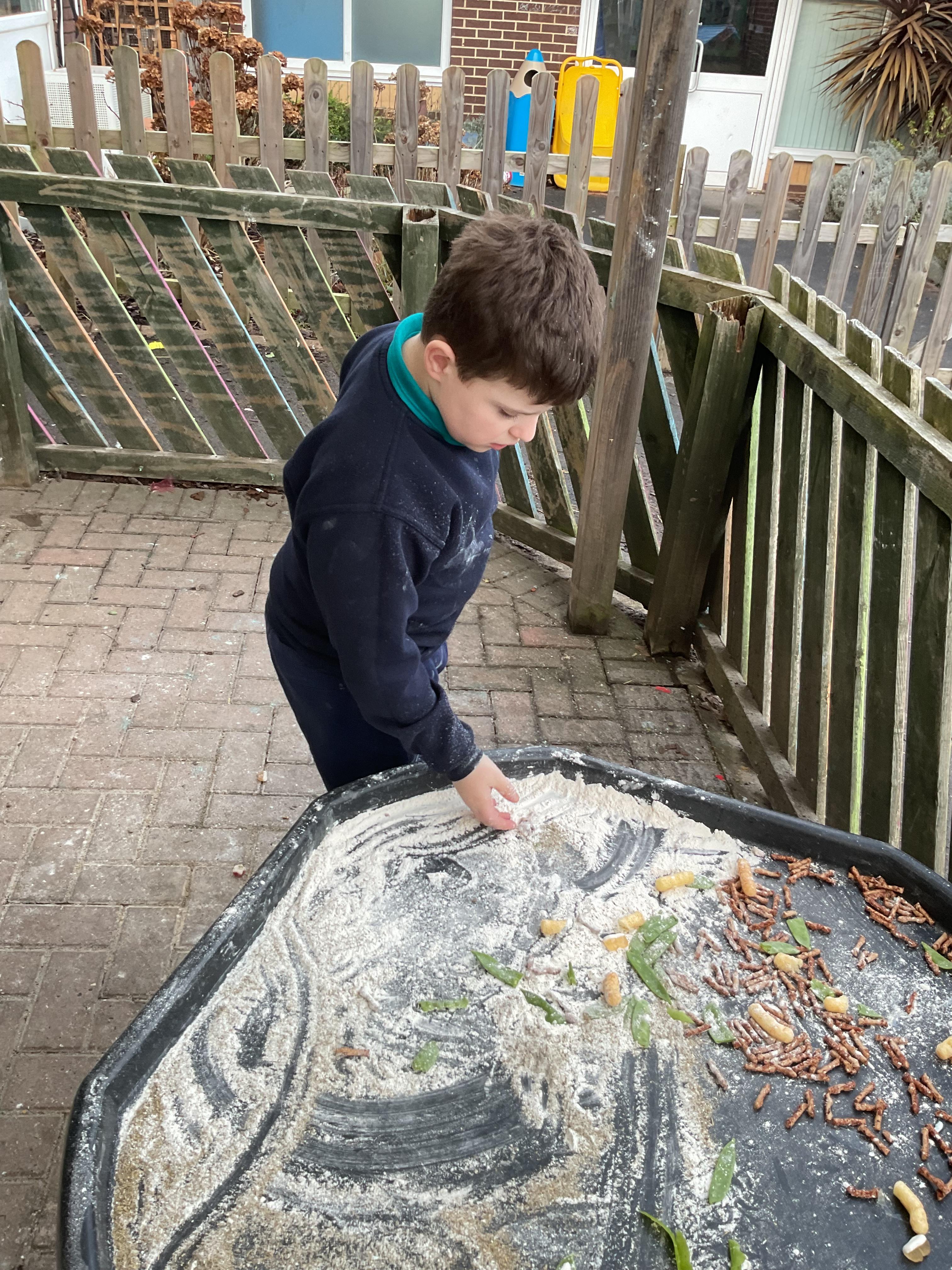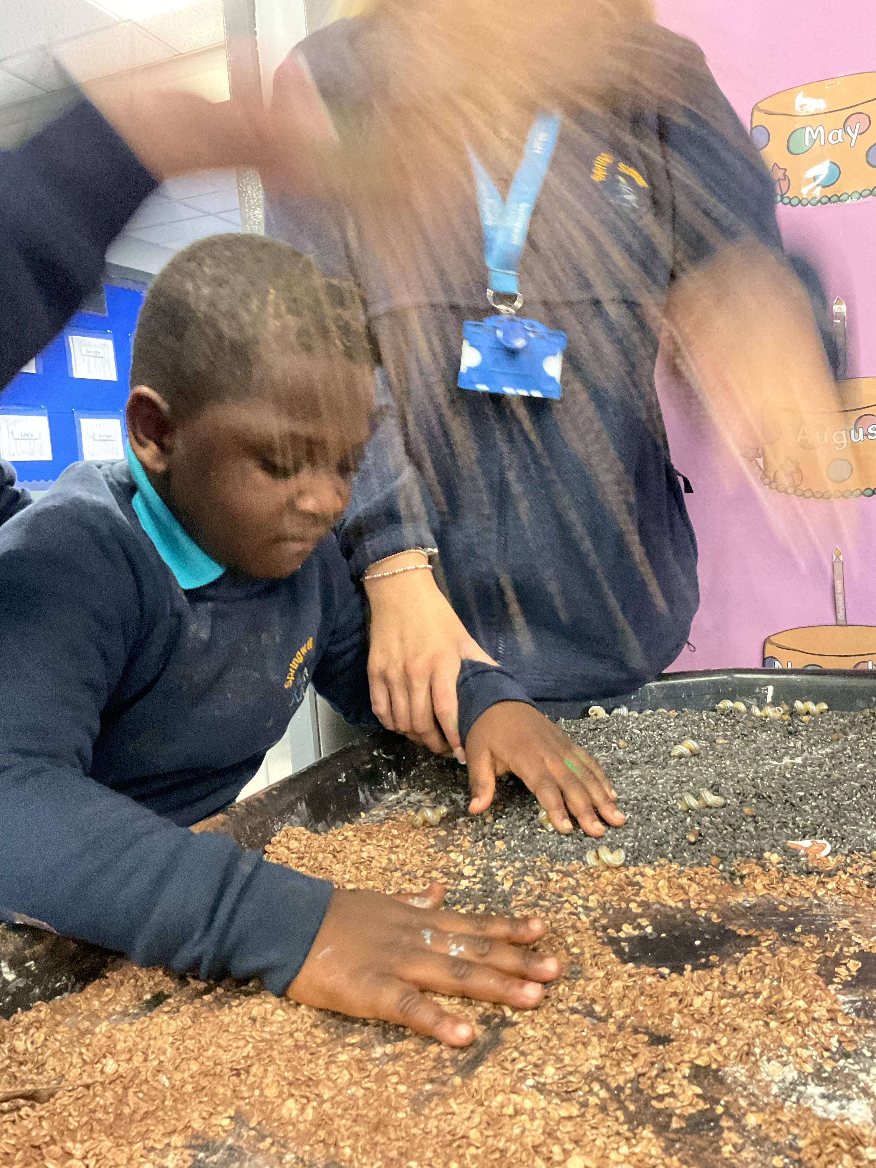This week has been full of excitement as we continued our learning all about the future. The children loved revisiting our sensory story “Tomorrow, Tomorrow” and engaged brilliantly with all the interactive element. Our colour of the week was black and we explored a range of black objects on our themed table while also learning the Makaton sign for black. In maths, we investigated big and small rockets using a messy play tuff tray filled with rice, pasta and chickpeas. We also had great fun making green gloop, watching how it moved and noticing the sensory experience as it dripped from the plate. Everyone has worked incredibly hard on their workbox tasks, including building with blocks, matching activities and mark making.