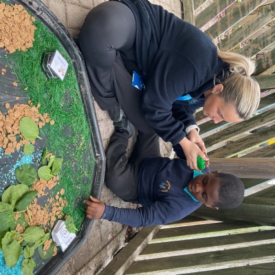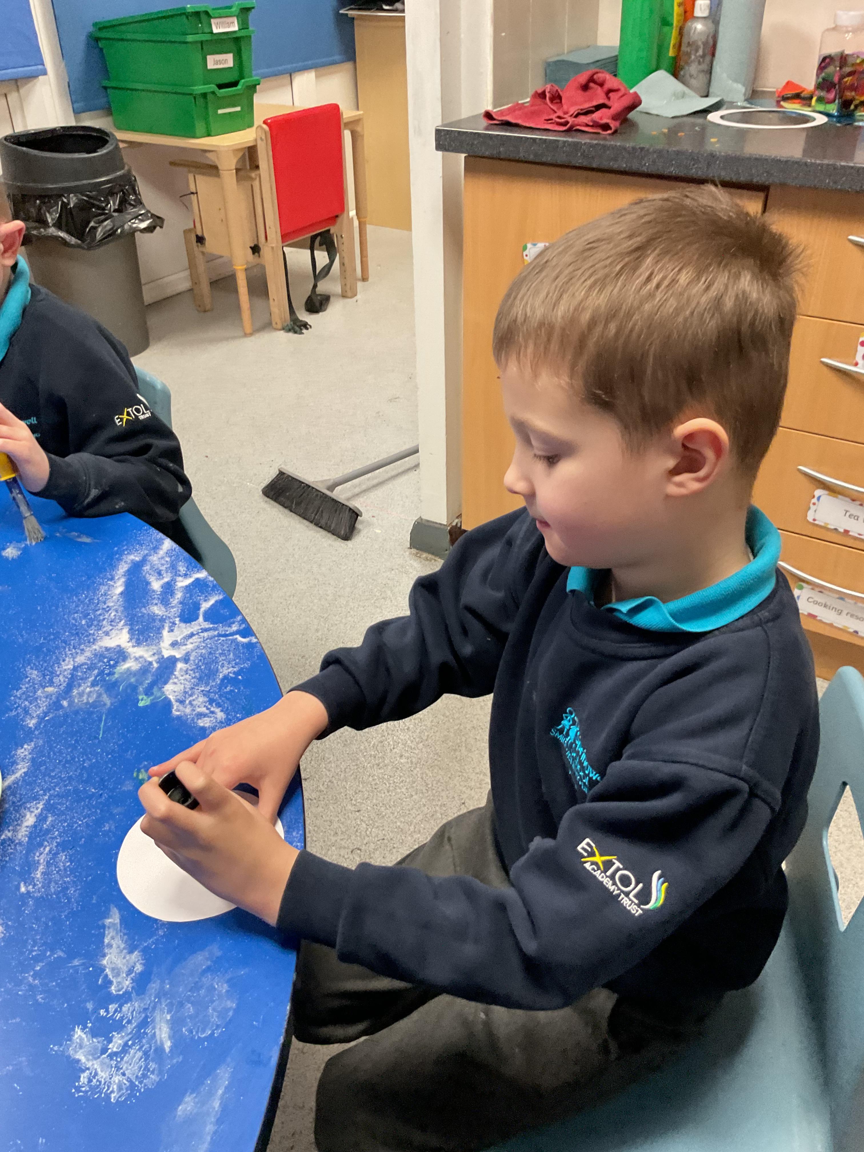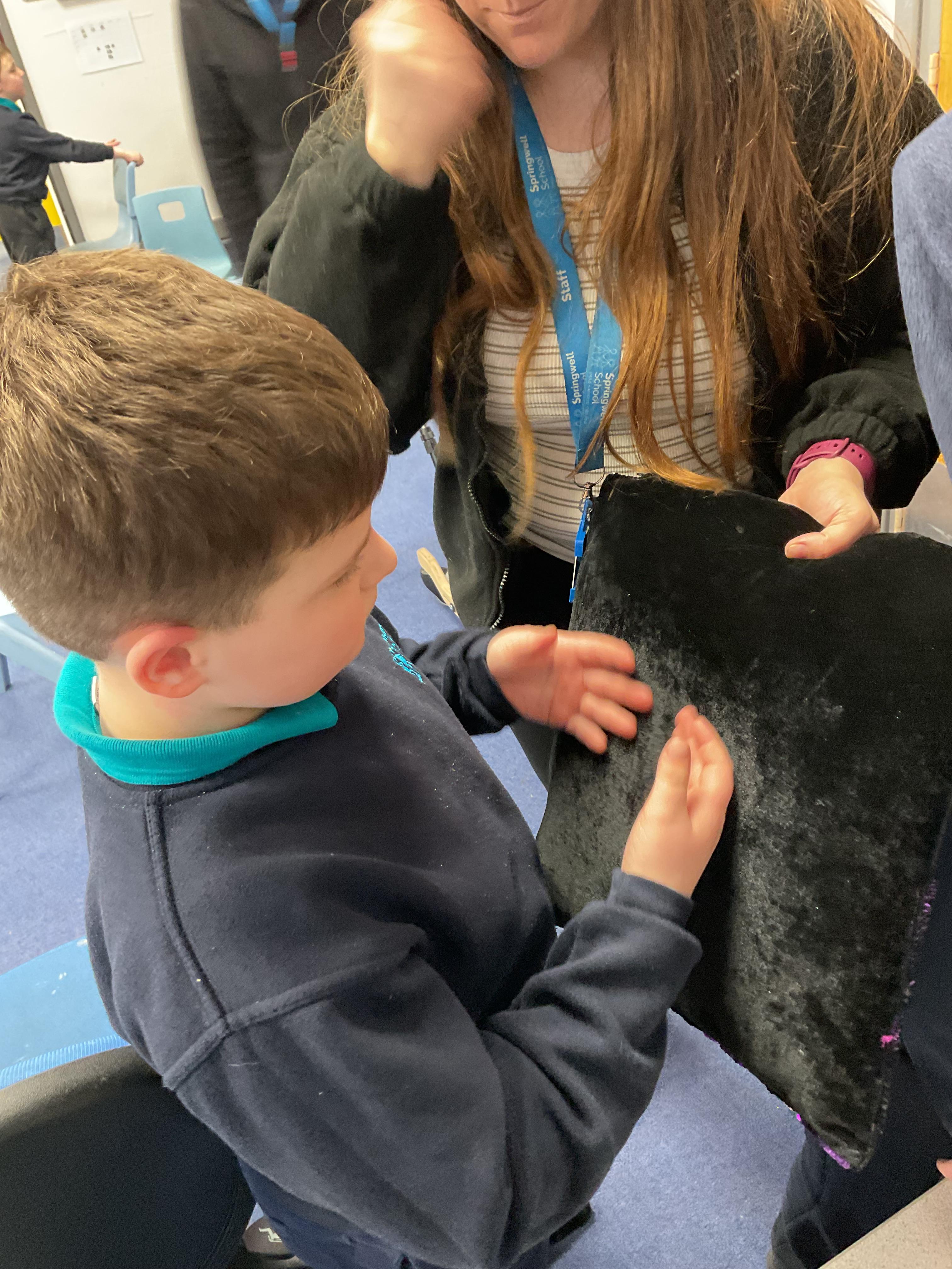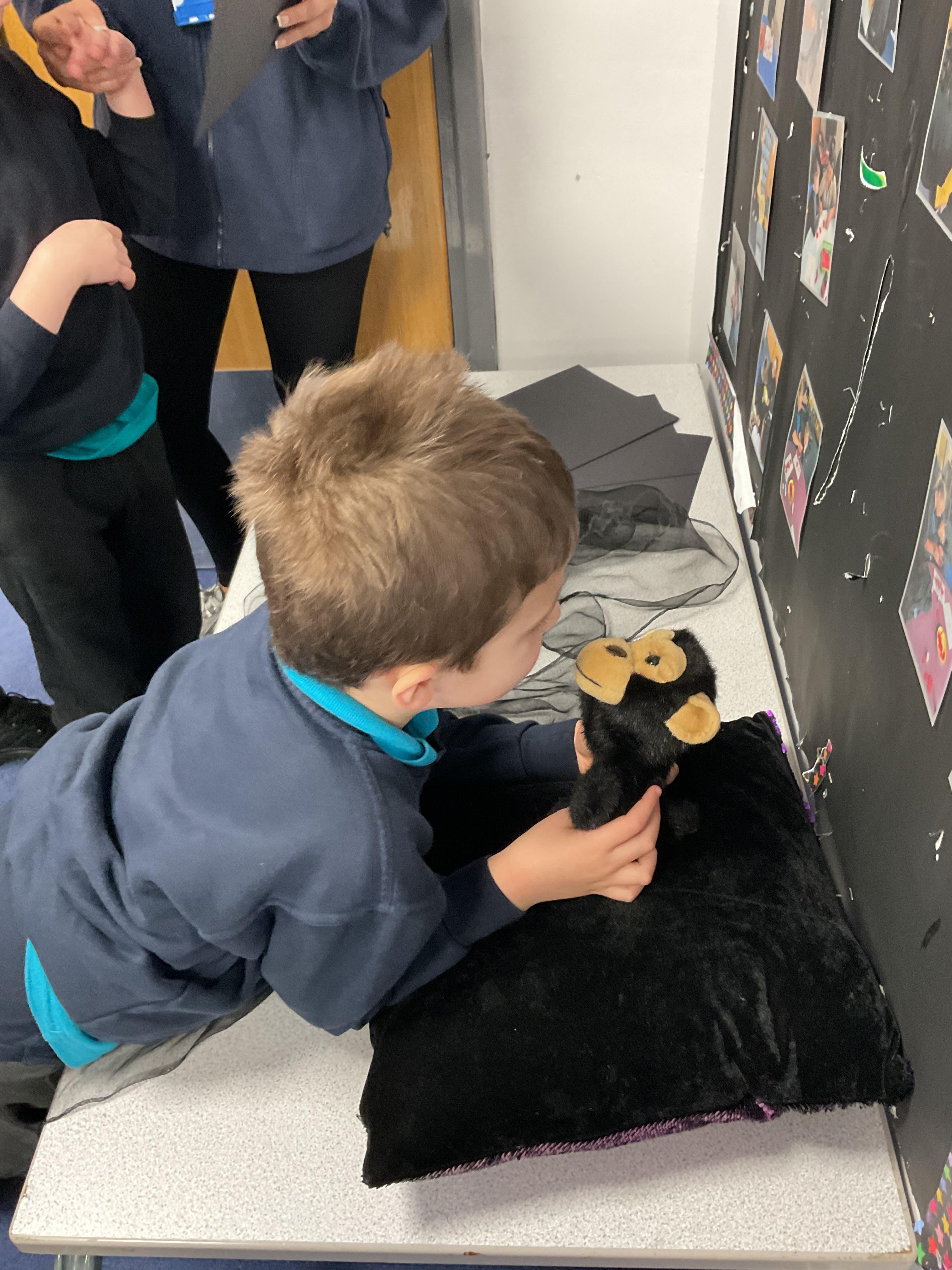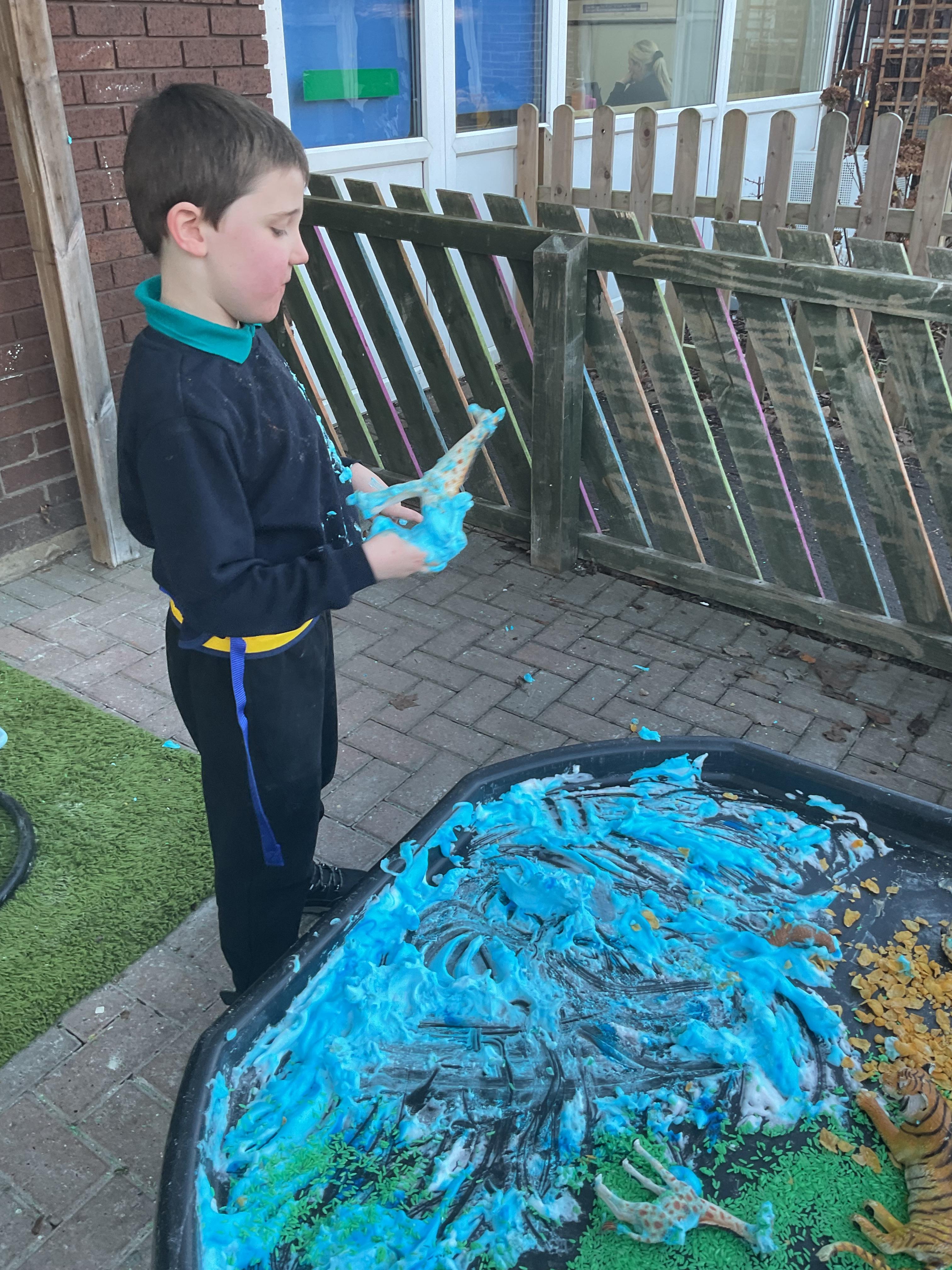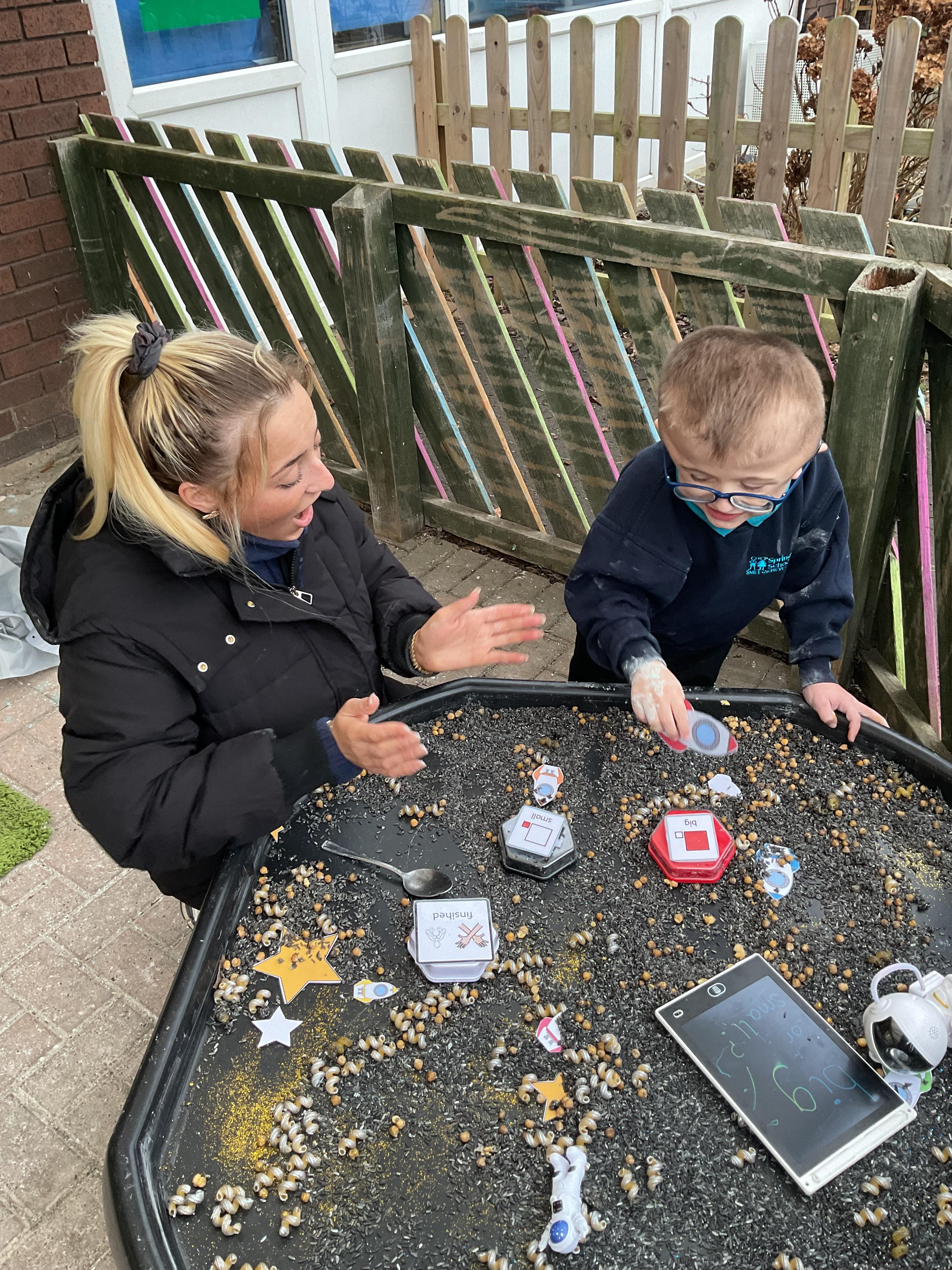 This week has been full of excitement as we continued our learning all about the future. The children loved revisiting our sensory story “Tomorrow, Tomorrow” and engaged brilliantly with all the interactive element. Our colour of the week was black and we explored a range of black objects on our themed table while also learning the Makaton sign for black. In maths, we investigated big and small rockets using a messy play tuff tray filled with rice, pasta and chickpeas. We also had great fun making green gloop, watching how it moved and noticing the sensory experience as it dripped from the plate. Everyone has worked incredibly hard on their workbox tasks, including building with blocks, matching activities and mark making.