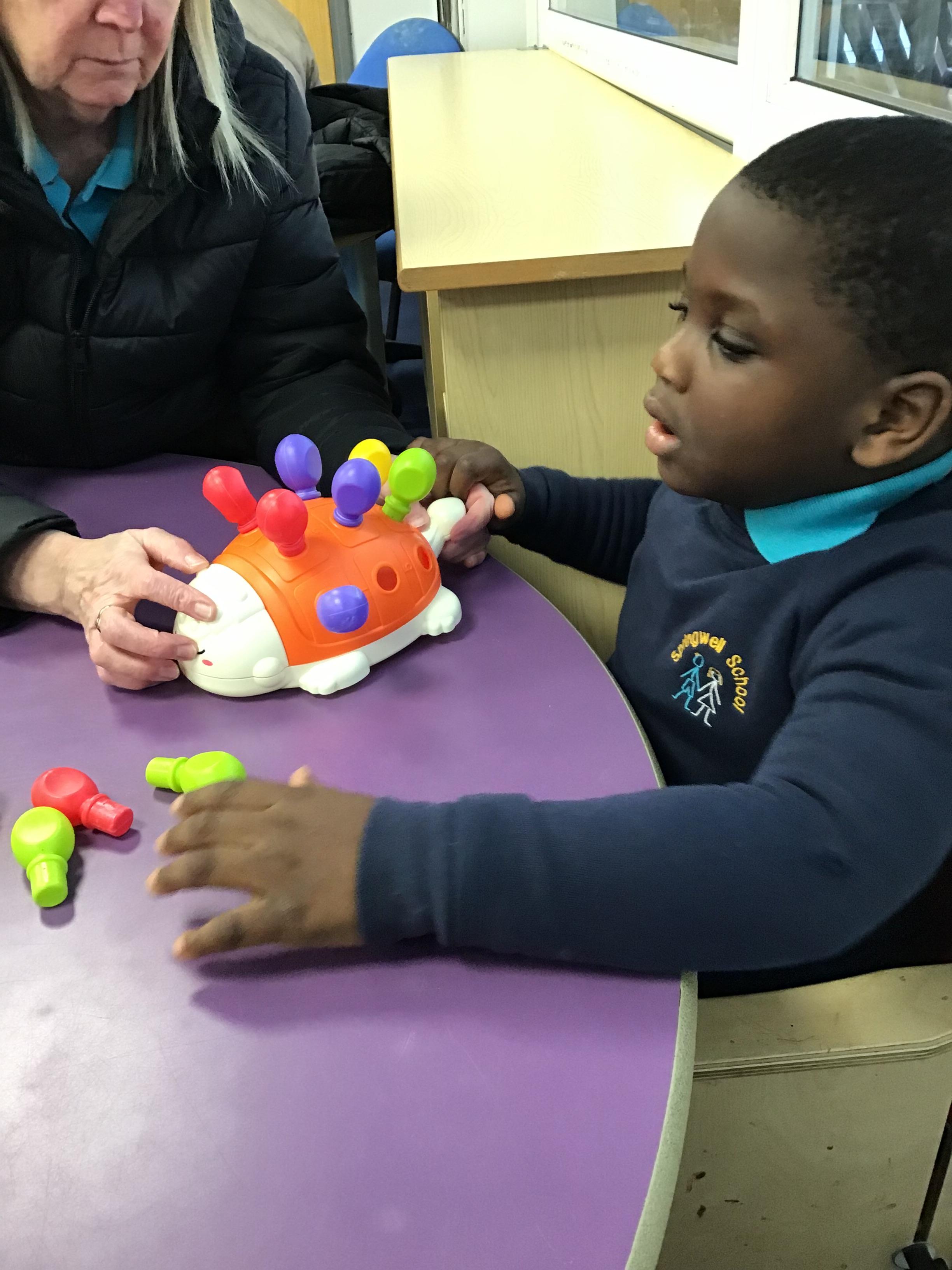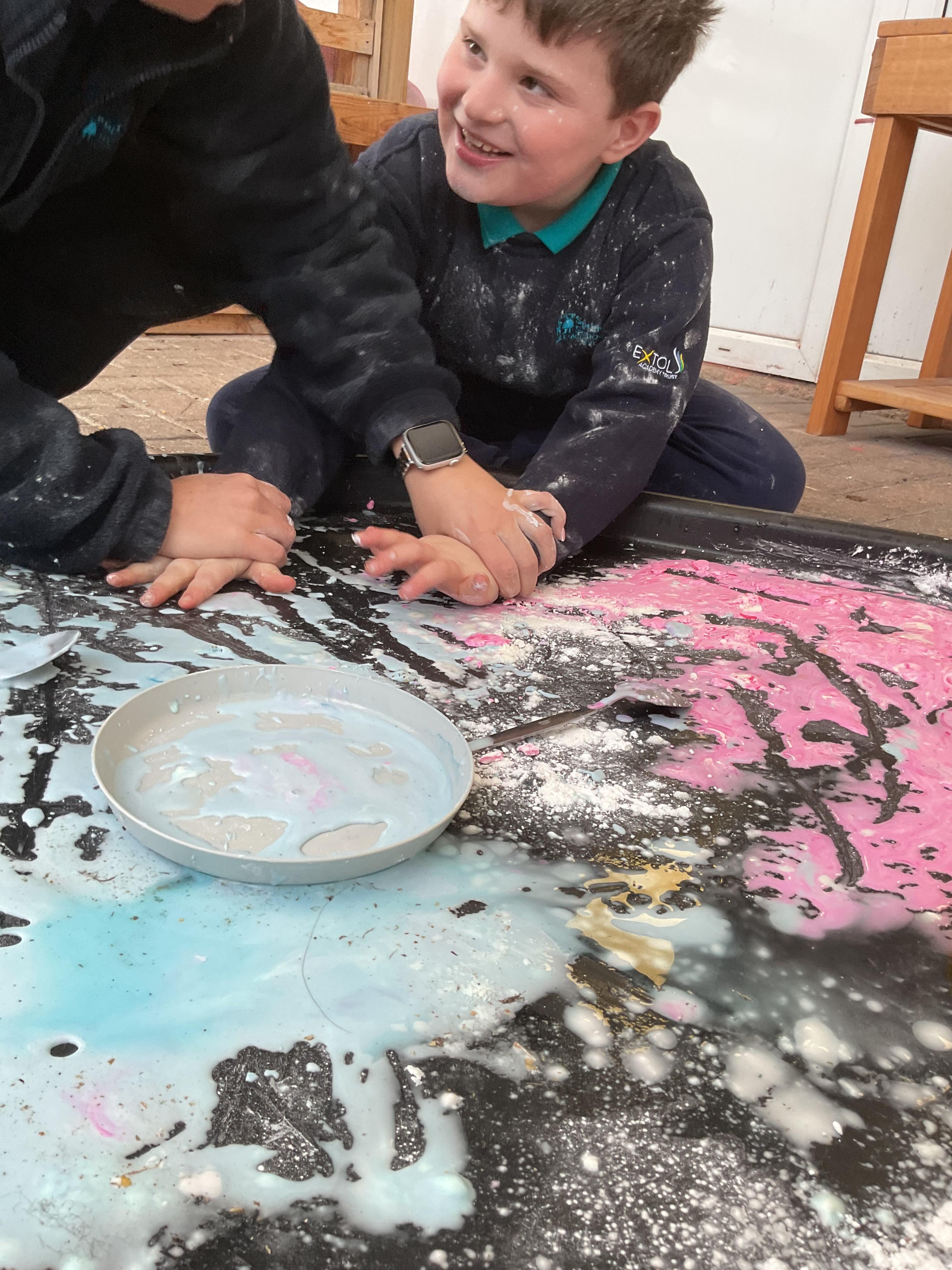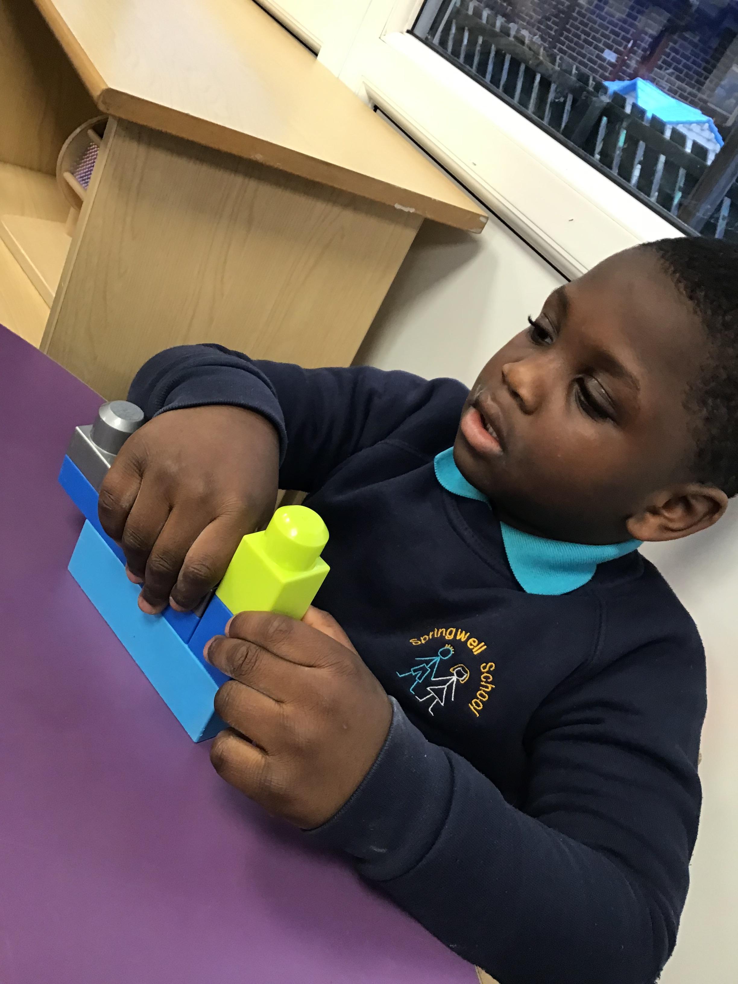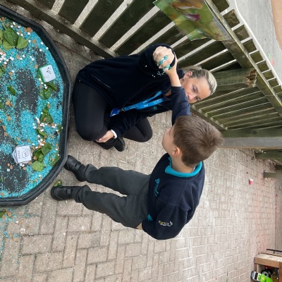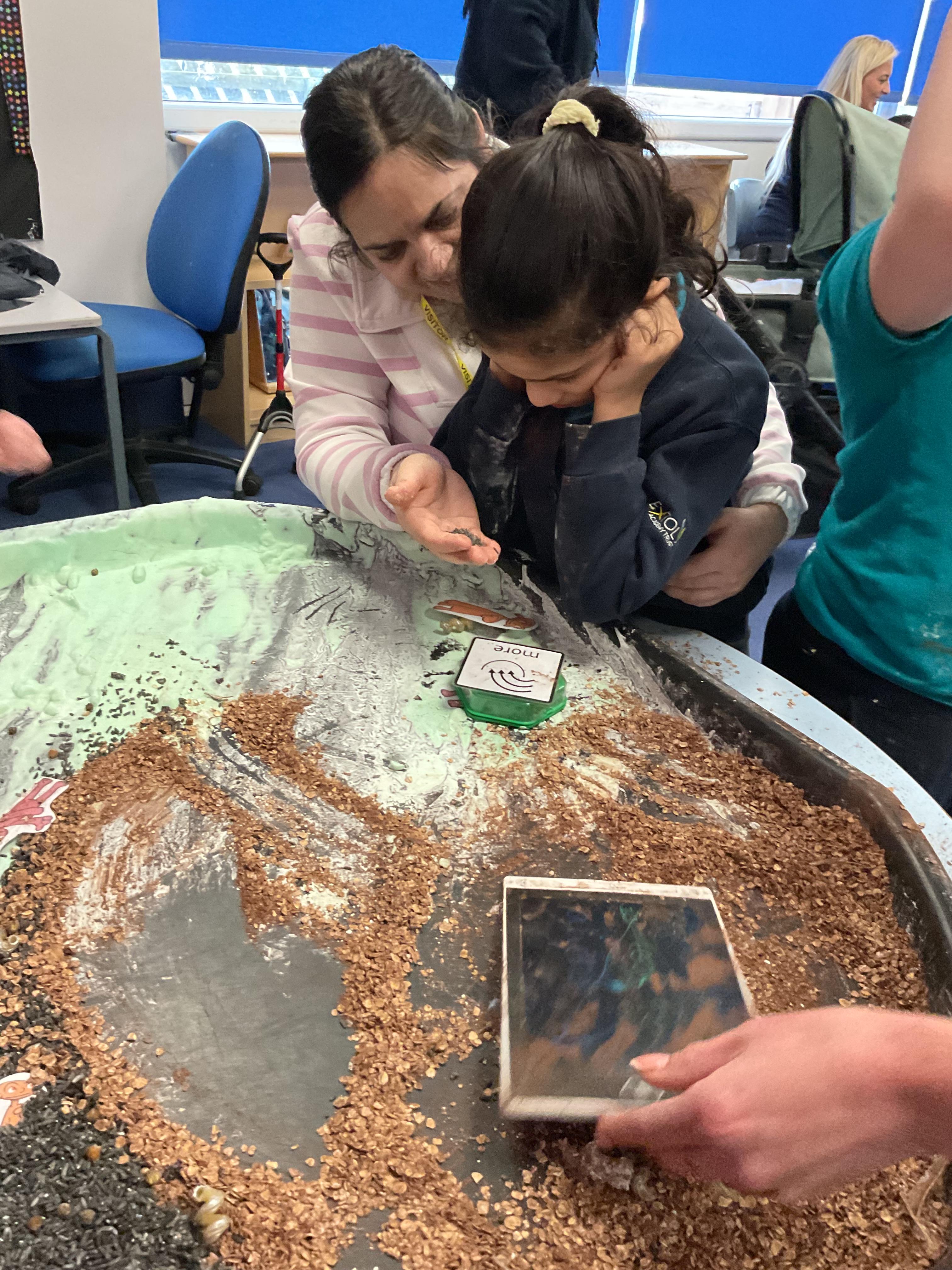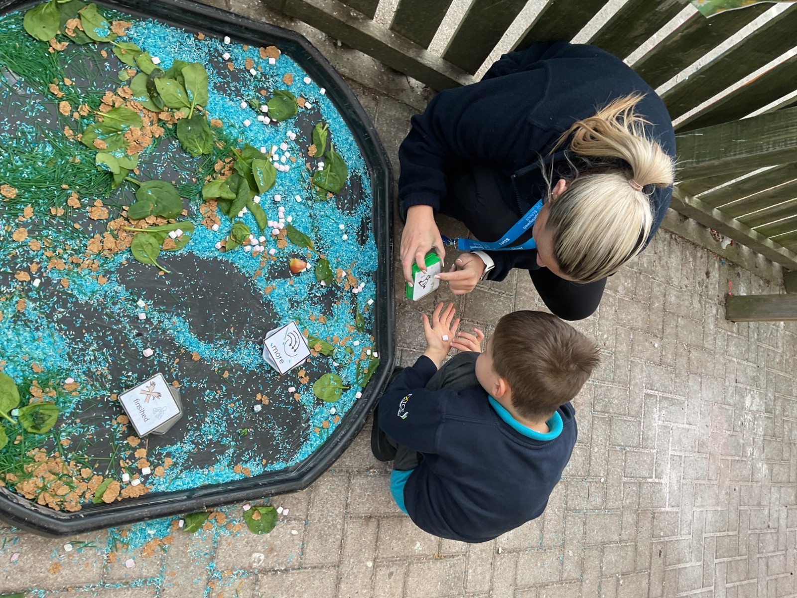 This week has been full of excitement as we continued our learning all about the future. The children loved revisiting our sensory story “Tomorrow, Tomorrow” and engaged brilliantly with all the interactive element. Our colour of the week was black and we explored a range of black objects on our themed table while also learning the Makaton sign for black. In maths, we investigated big and small rockets using a messy play tuff tray filled with rice, pasta and chickpeas. We also had great fun making green gloop, watching how it moved and noticing the sensory experience as it dripped from the plate. Everyone has worked incredibly hard on their workbox tasks, including building with blocks, matching activities and mark making.