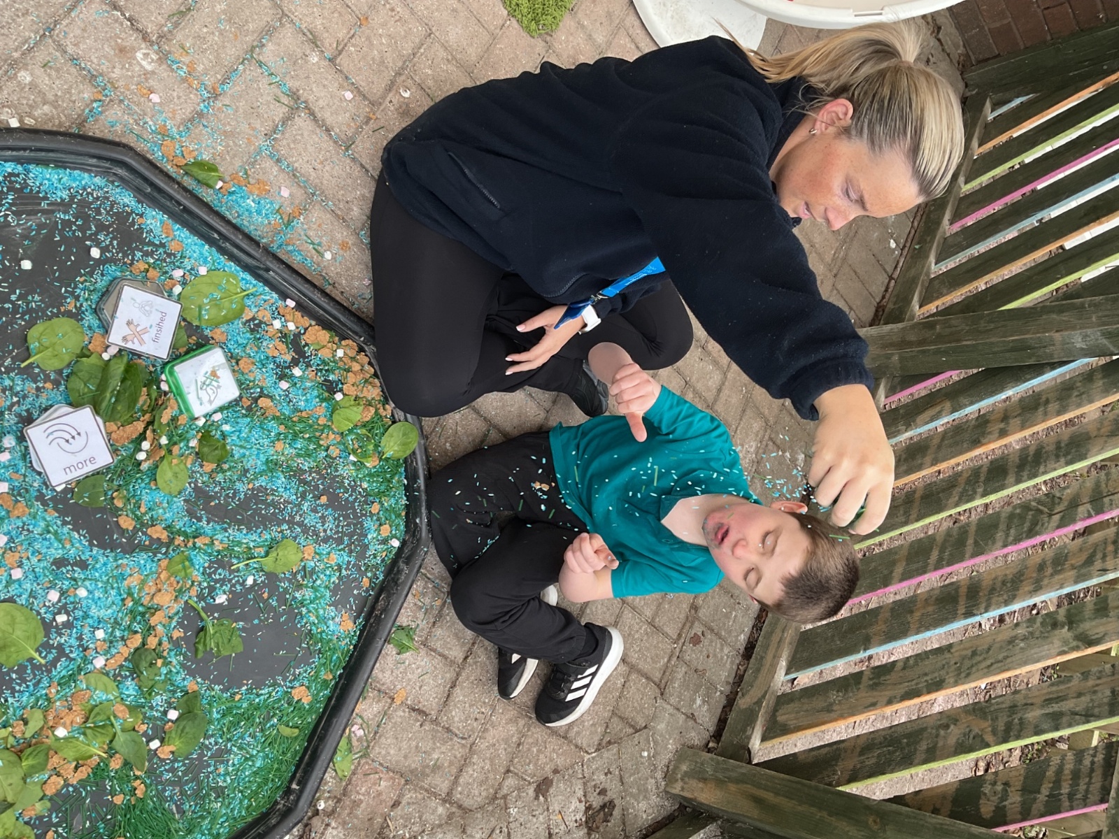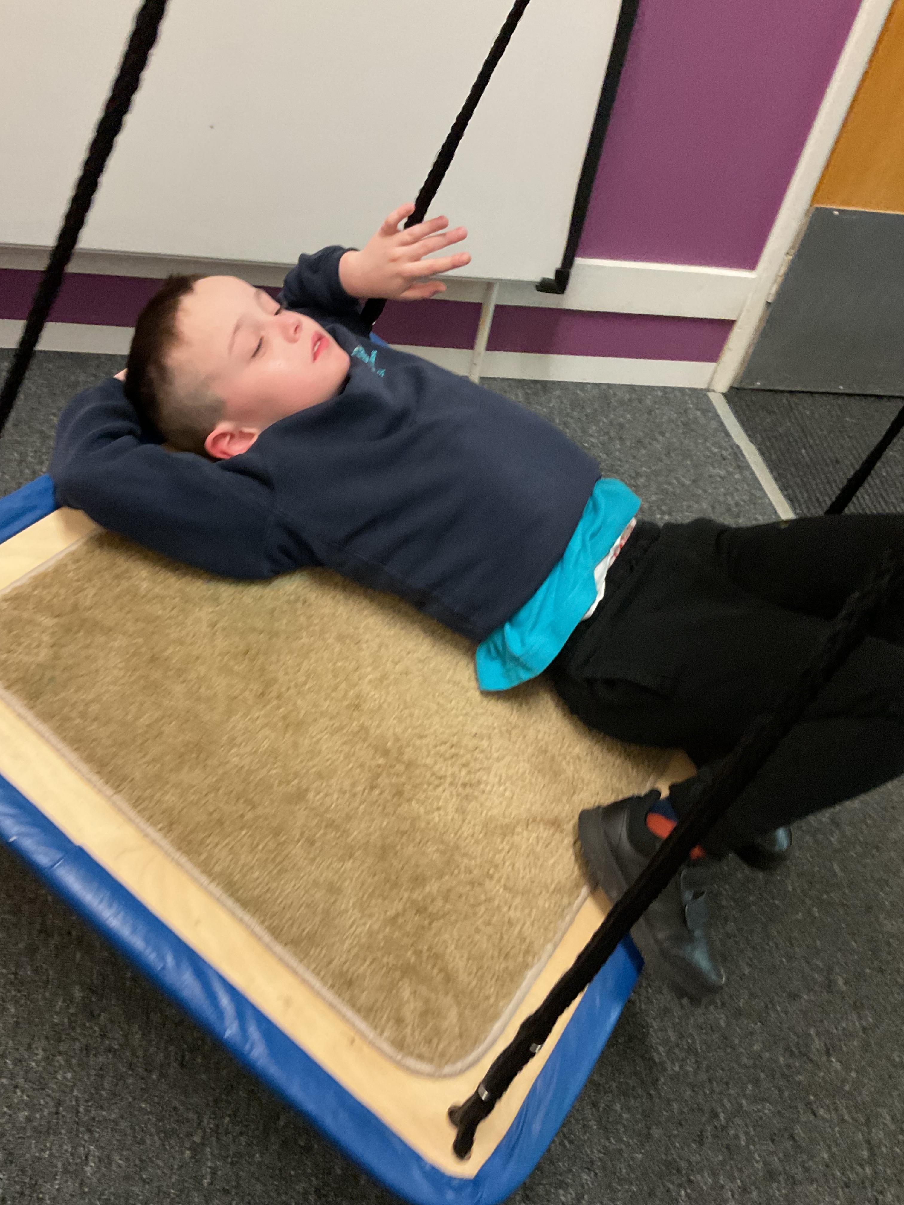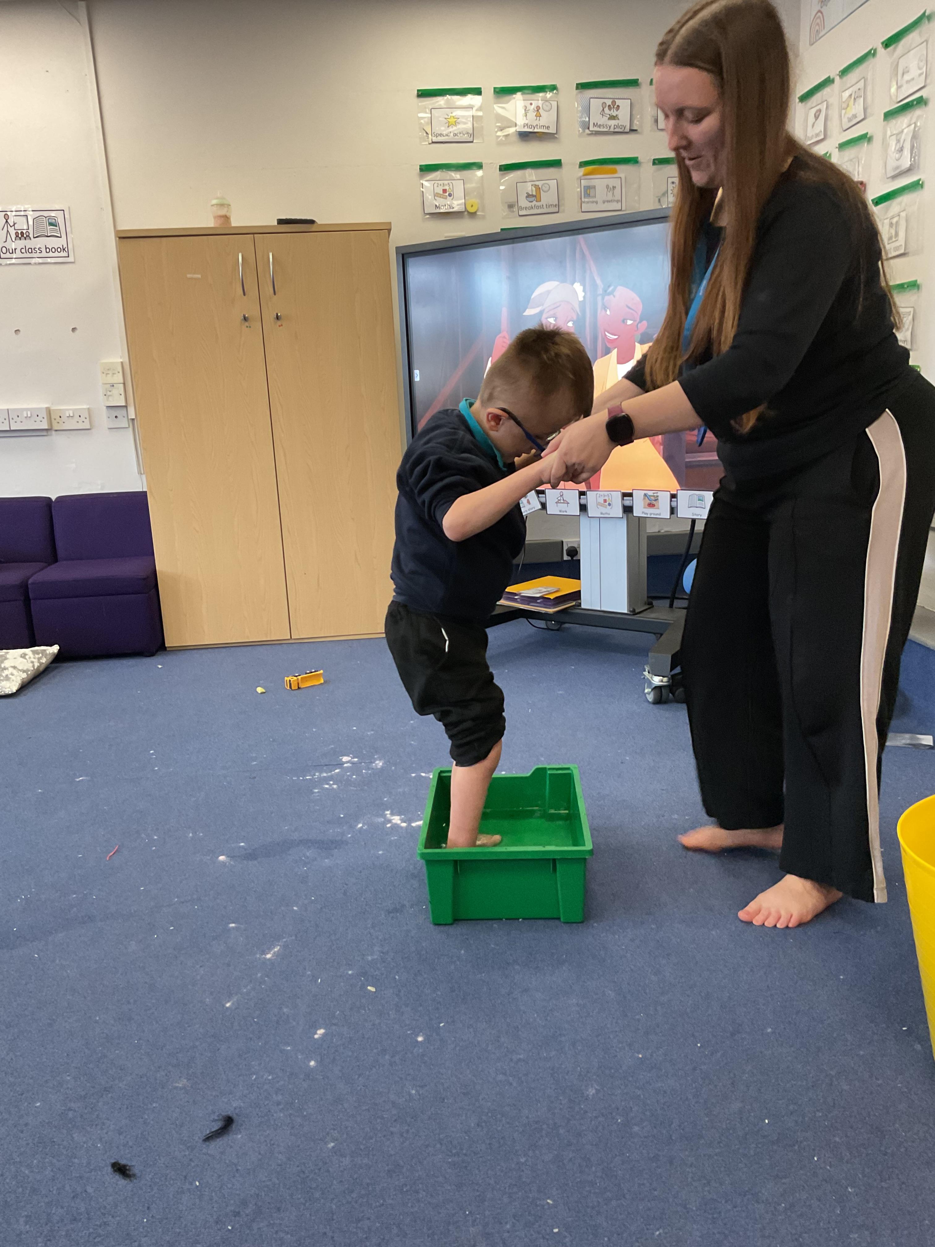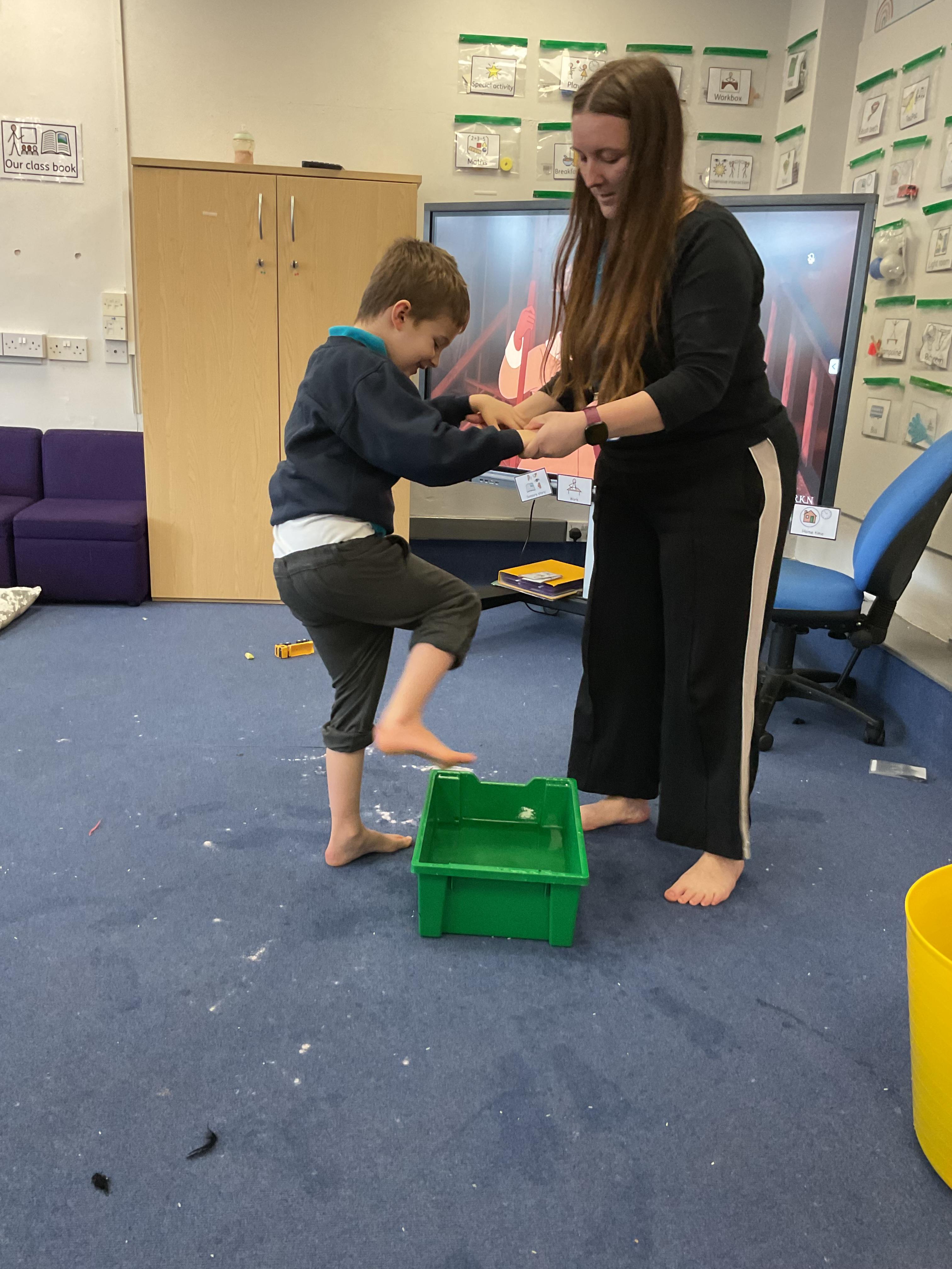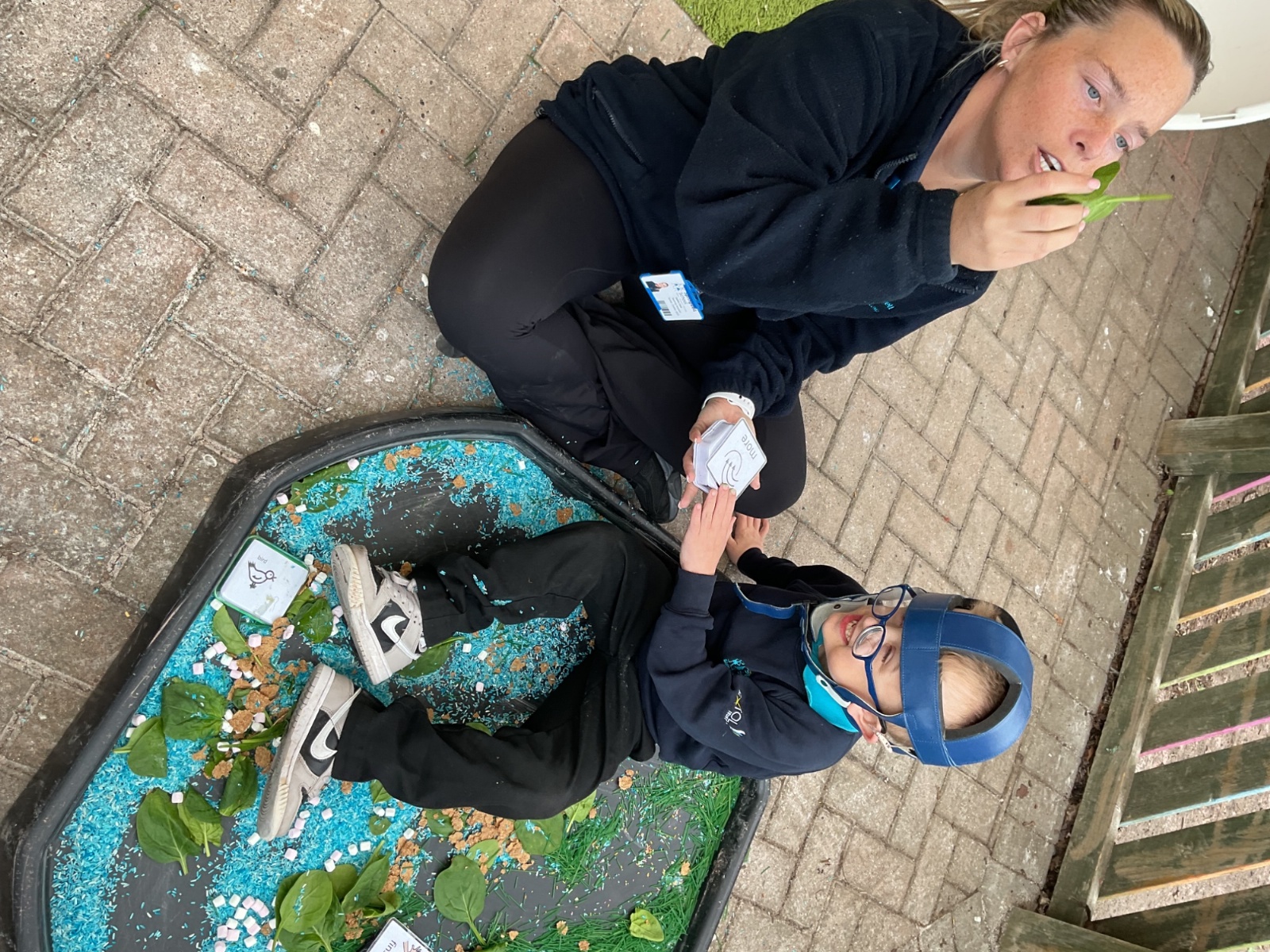 We have had a wonderful week filled with movement, sensory experiences and lots of focused learning. On Monday, the children took part in their rebound session, working hard on their gross motor skills and making great progress towards their individual targets. We also enjoyed some peaceful relaxation time, snuggling up with blankets and taking part in a calming sensory massage. It was a lovely opportunity for everyone to unwind and regulate. The children showed brilliant attention during our Attention Autism session, watching carefully and engaging beautifully throughout. Their focus and curiosity were fantastic. To finish the week, we explored two exciting tuff trays. One tray encouraged the children to try a variety of different foods, while the other supported their cutting skills as they chopped fruits and vegetables. We also had a sensory spring‑themed tray, where the children explored foods representing grass, sky, leaves, and clouds — a fun and creative way to learn through touch, smell and play.