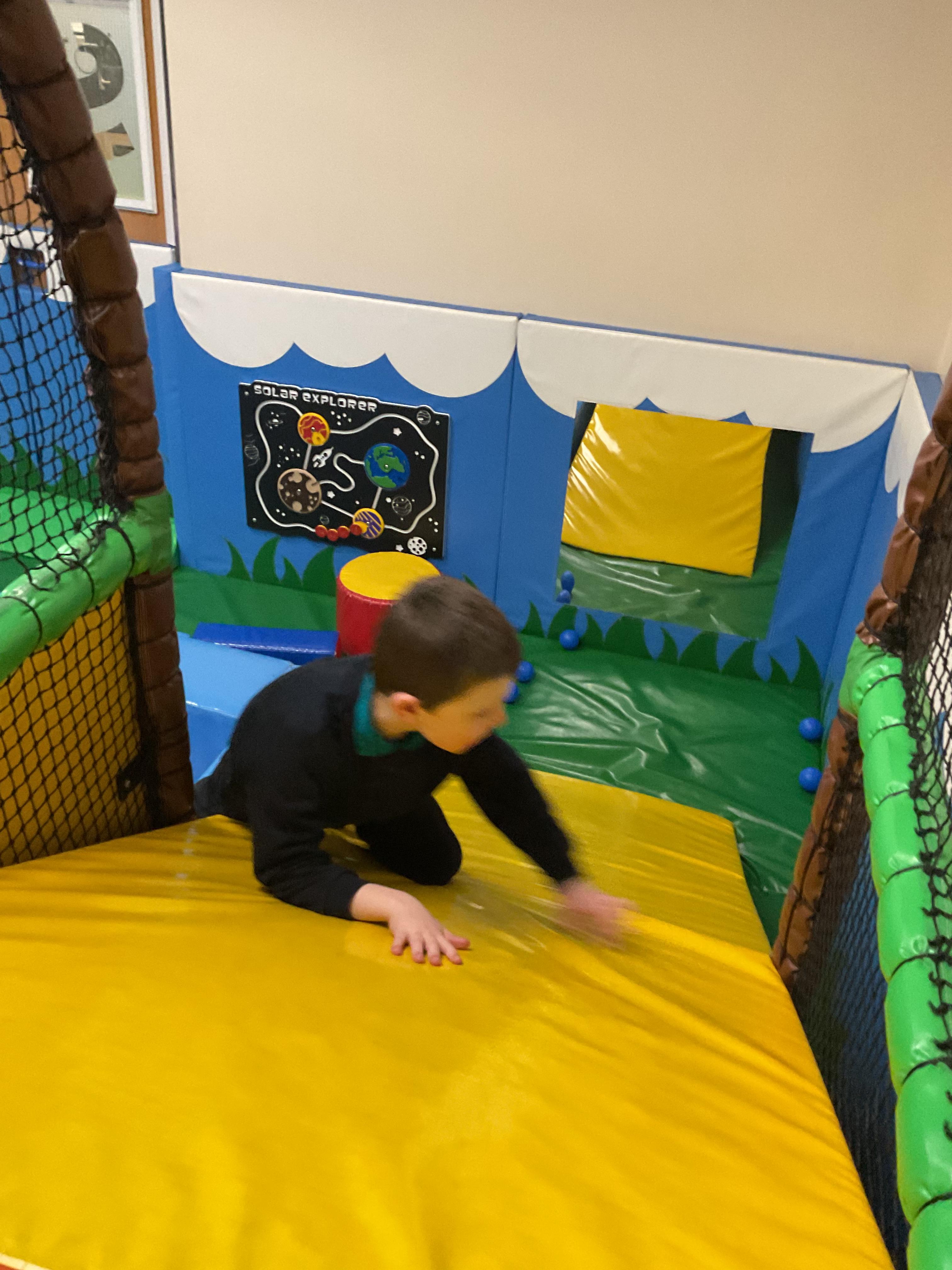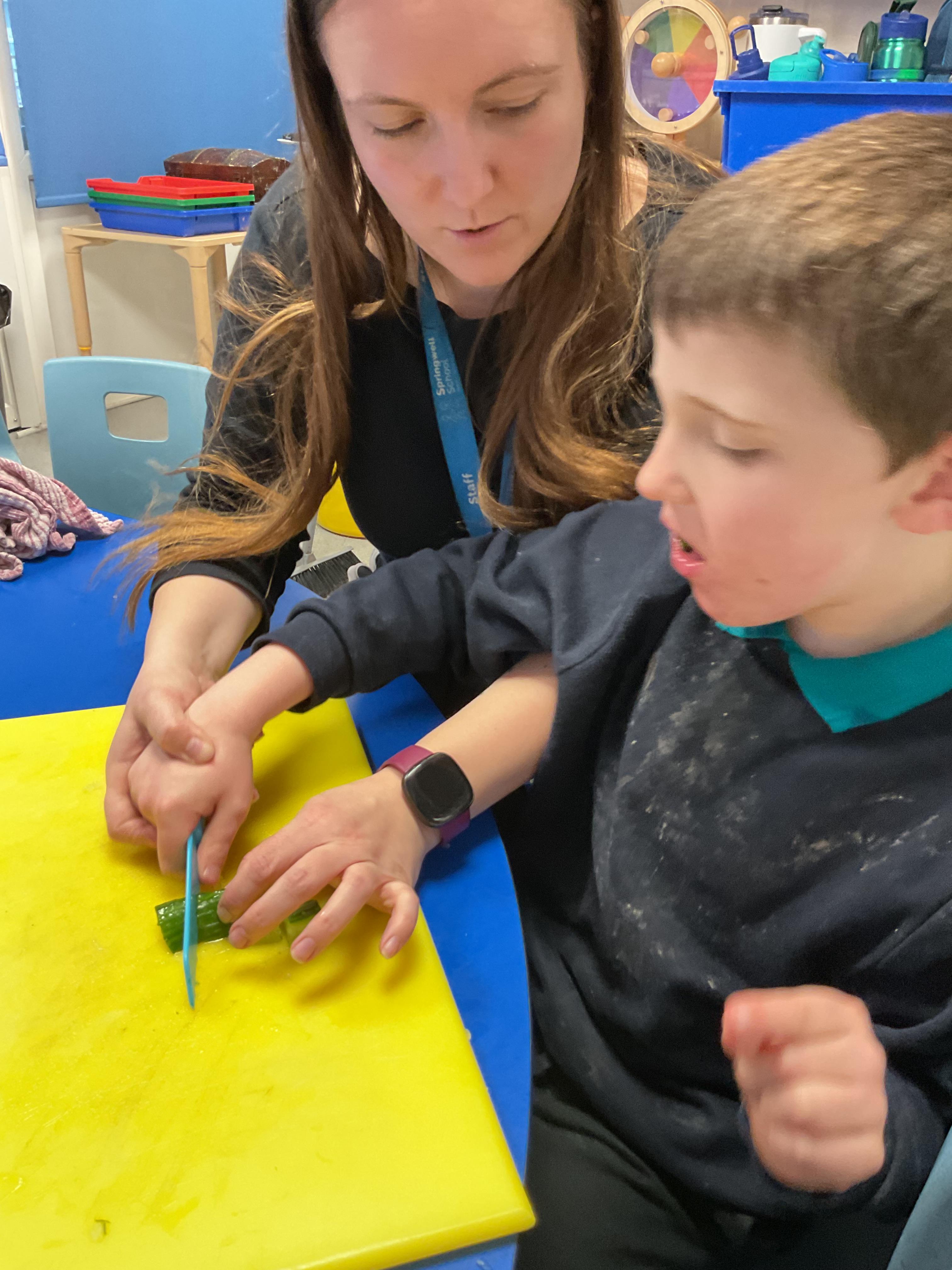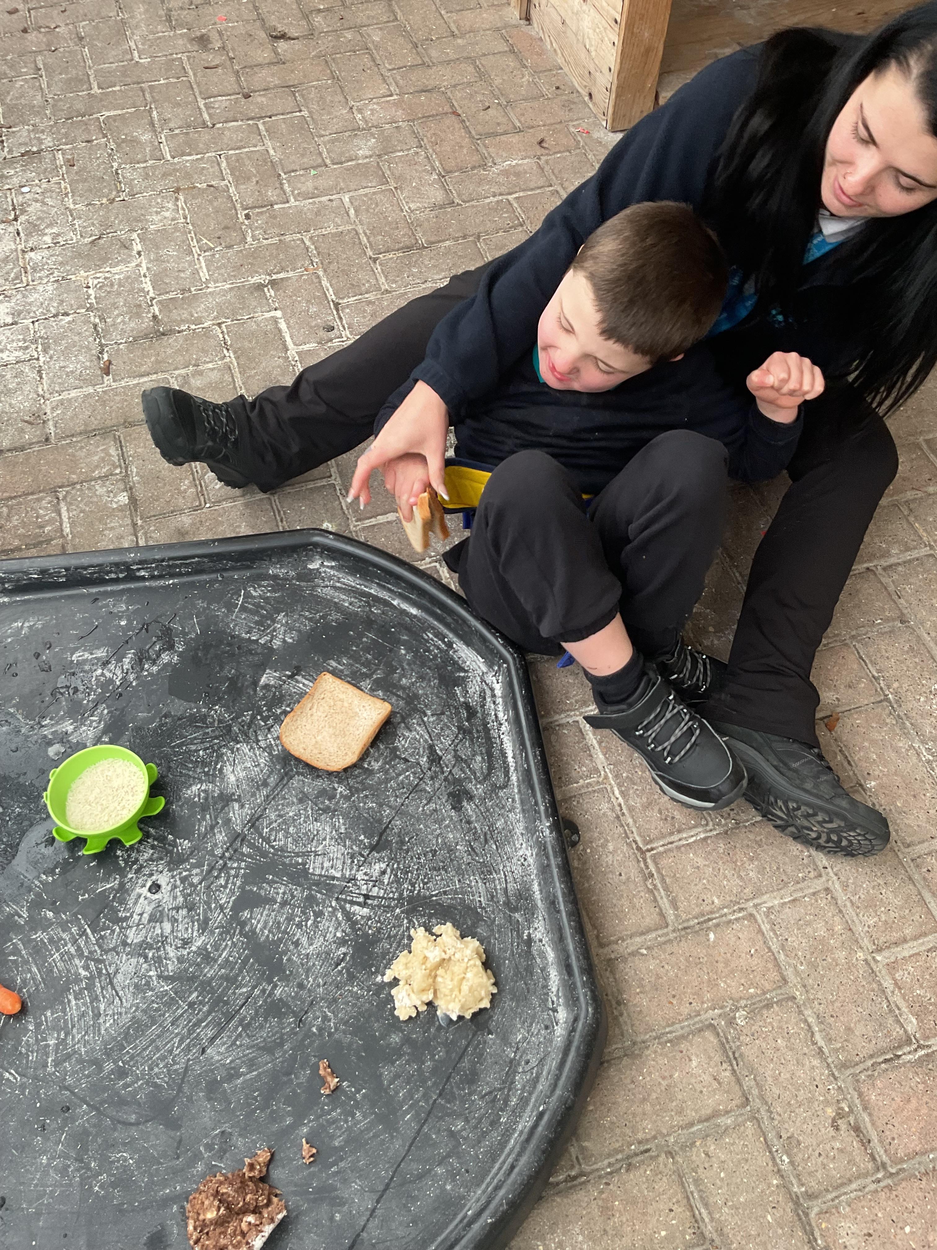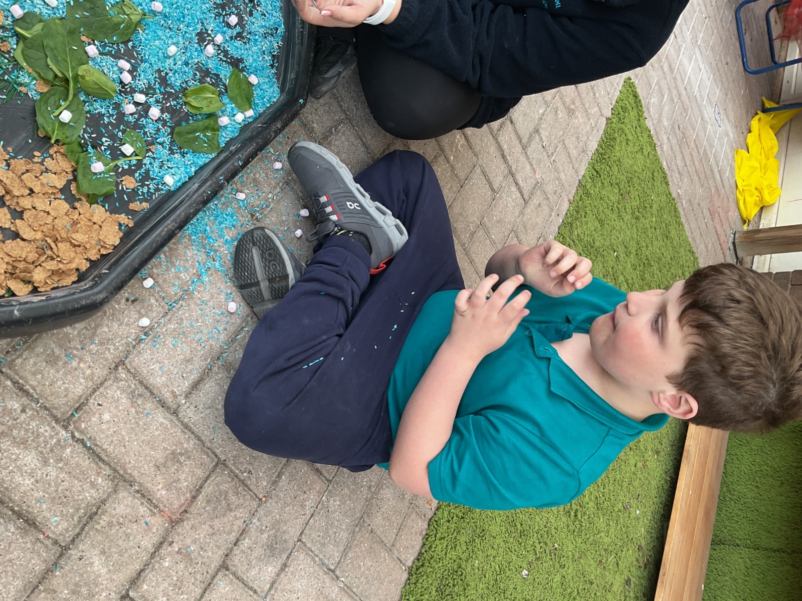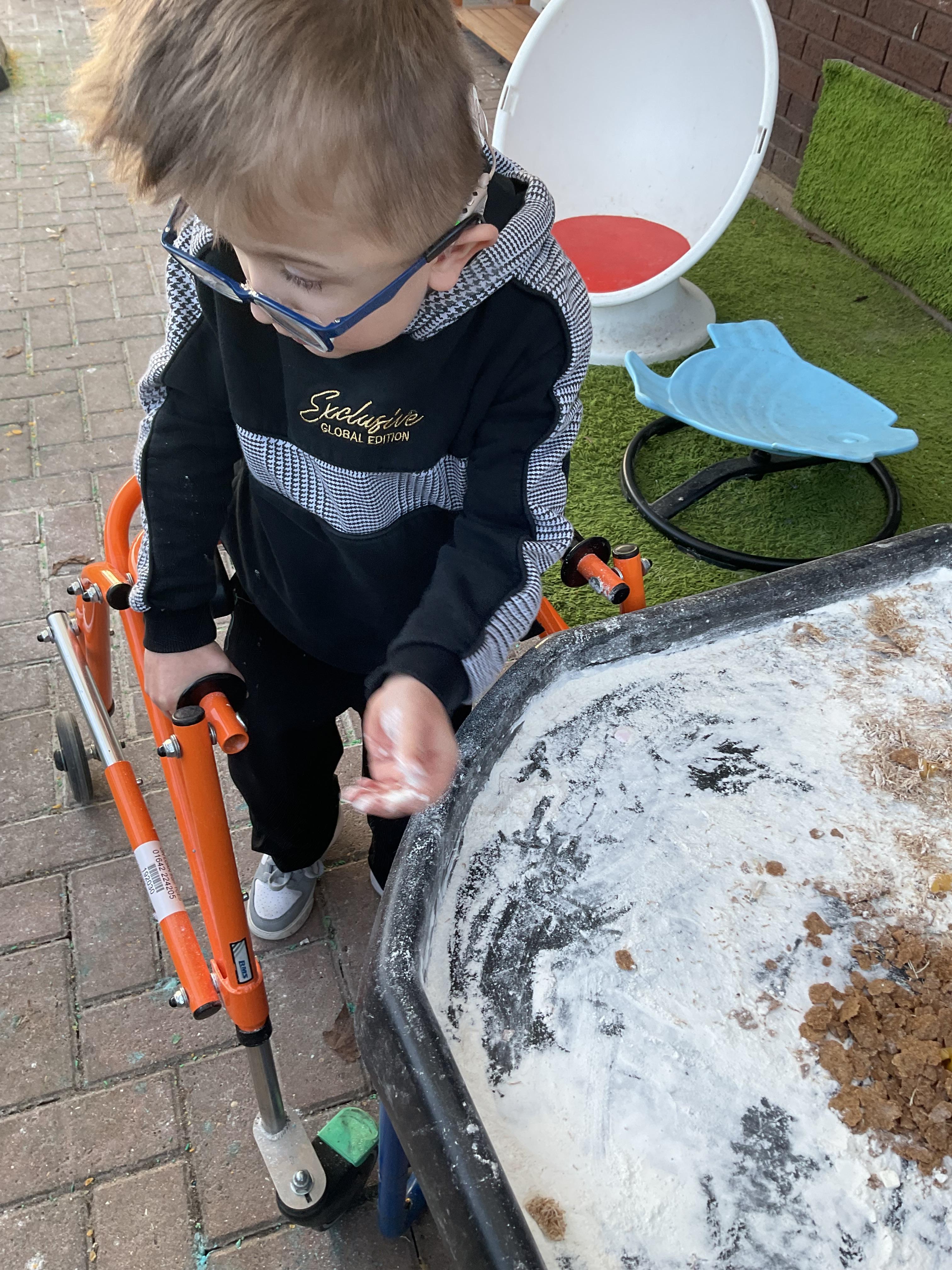 We have had a wonderful week filled with movement, sensory experiences and lots of focused learning. On Monday, the children took part in their rebound session, working hard on their gross motor skills and making great progress towards their individual targets. We also enjoyed some peaceful relaxation time, snuggling up with blankets and taking part in a calming sensory massage. It was a lovely opportunity for everyone to unwind and regulate. The children showed brilliant attention during our Attention Autism session, watching carefully and engaging beautifully throughout. Their focus and curiosity were fantastic. To finish the week, we explored two exciting tuff trays. One tray encouraged the children to try a variety of different foods, while the other supported their cutting skills as they chopped fruits and vegetables. We also had a sensory spring‑themed tray, where the children explored foods representing grass, sky, leaves, and clouds — a fun and creative way to learn through touch, smell and play.
