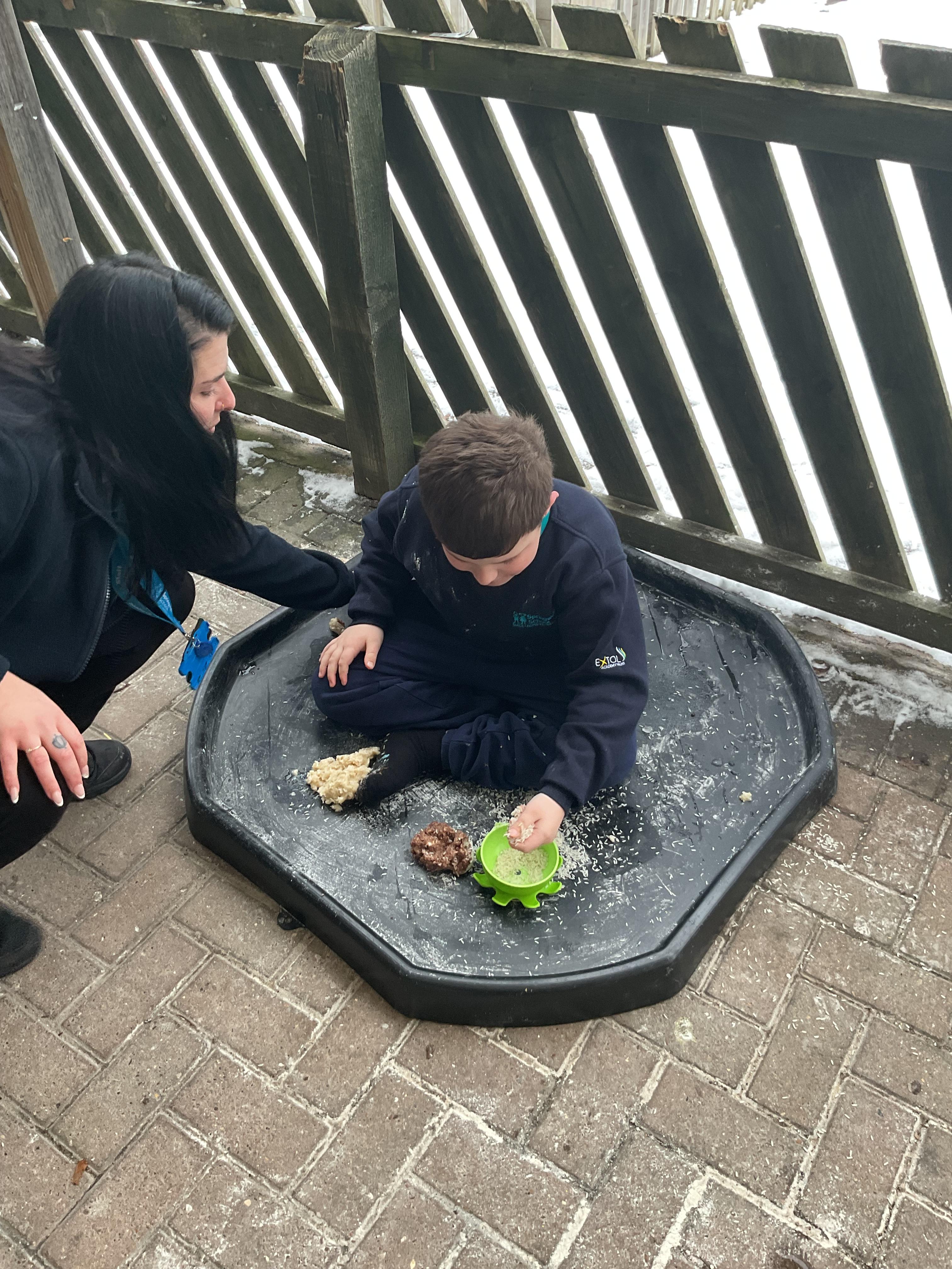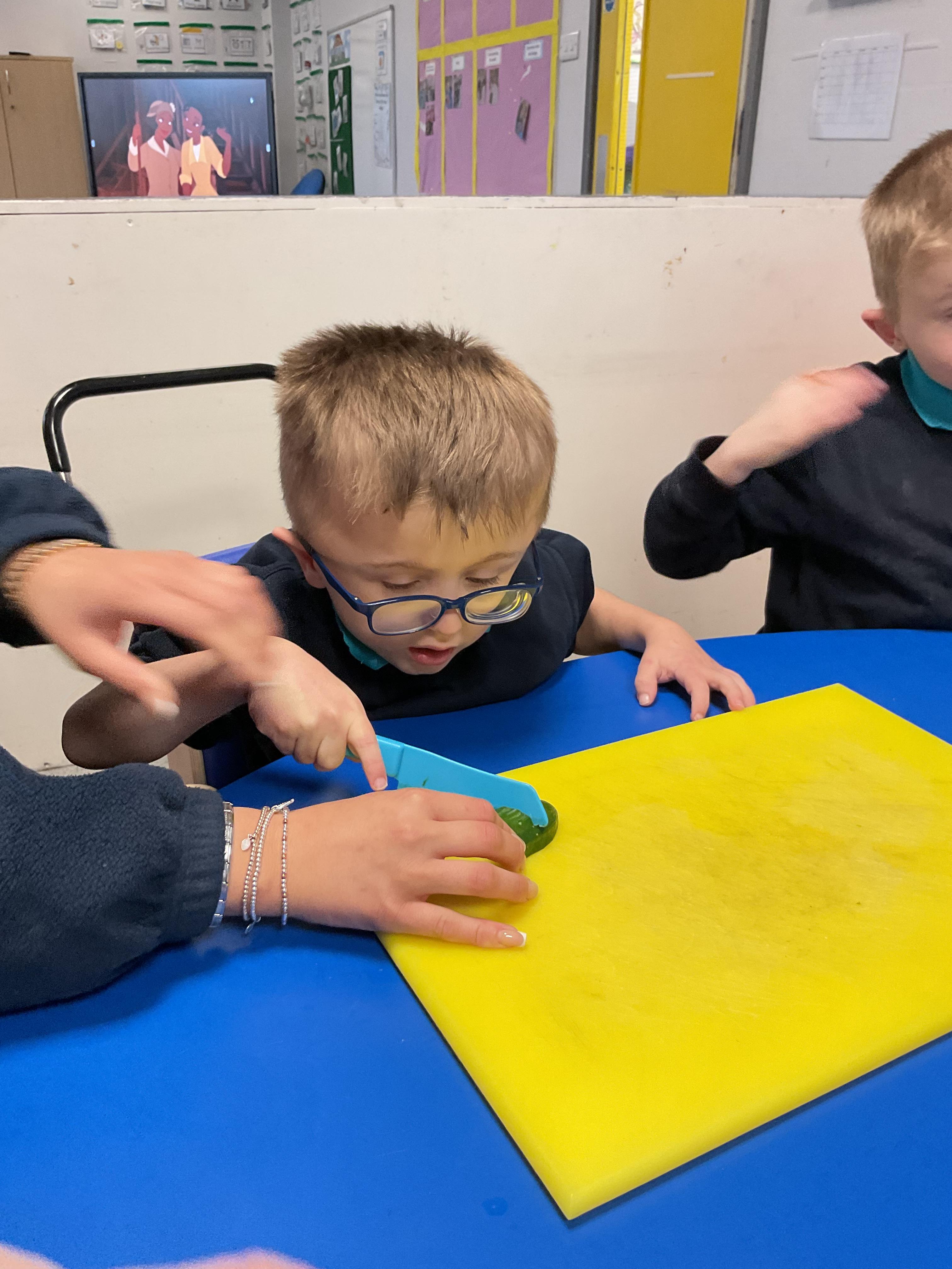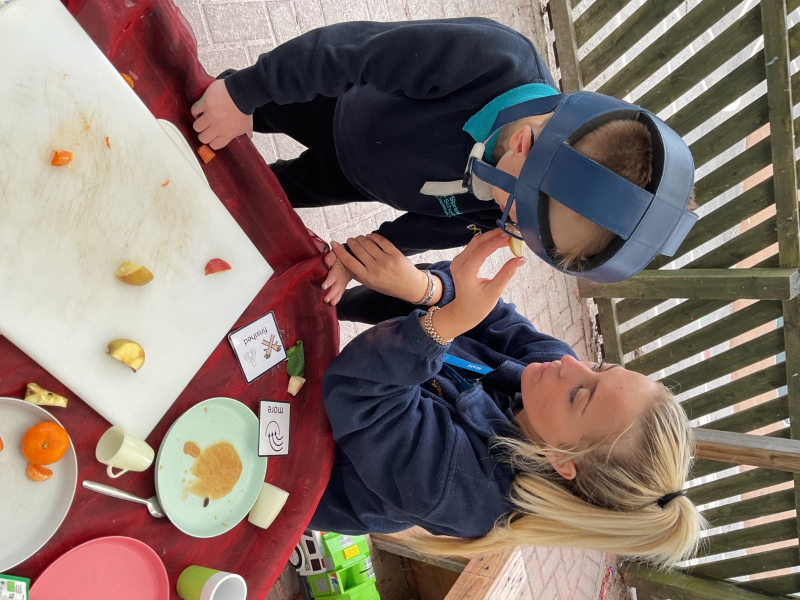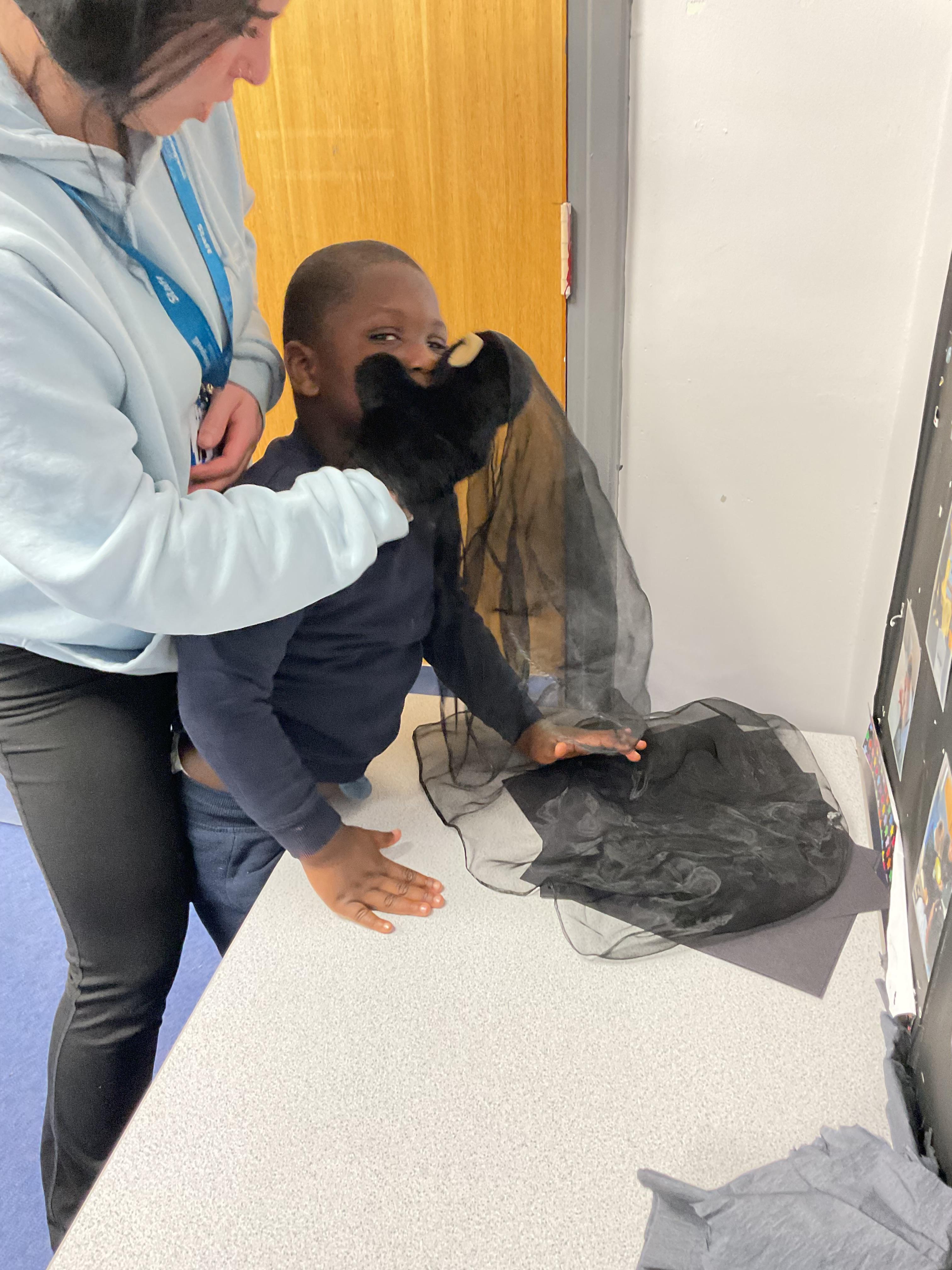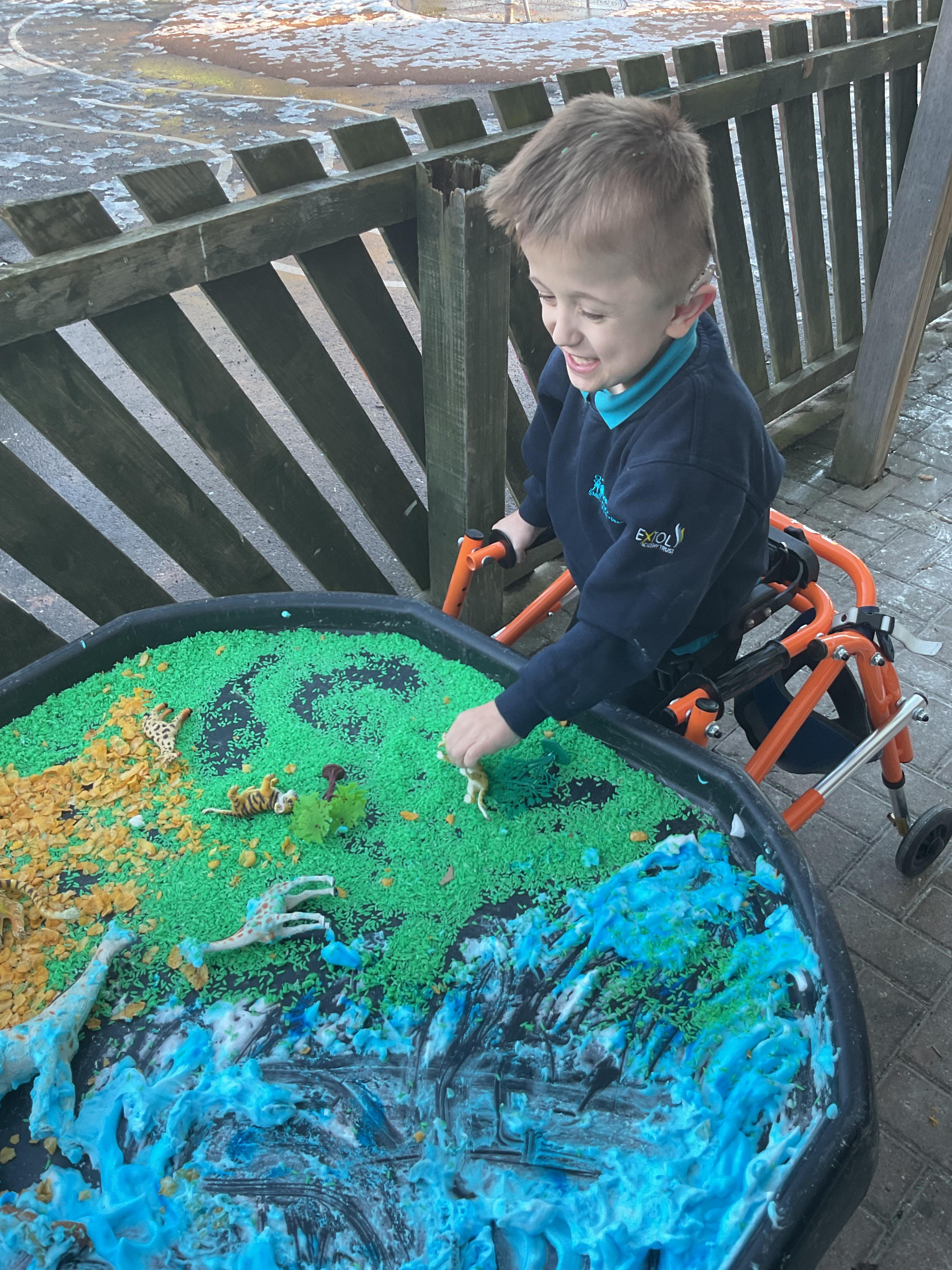 We have had a wonderful week filled with movement, sensory experiences and lots of focused learning. On Monday, the children took part in their rebound session, working hard on their gross motor skills and making great progress towards their individual targets. We also enjoyed some peaceful relaxation time, snuggling up with blankets and taking part in a calming sensory massage. It was a lovely opportunity for everyone to unwind and regulate. The children showed brilliant attention during our Attention Autism session, watching carefully and engaging beautifully throughout. Their focus and curiosity were fantastic. To finish the week, we explored two exciting tuff trays. One tray encouraged the children to try a variety of different foods, while the other supported their cutting skills as they chopped fruits and vegetables. We also had a sensory spring‑themed tray, where the children explored foods representing grass, sky, leaves, and clouds — a fun and creative way to learn through touch, smell and play.