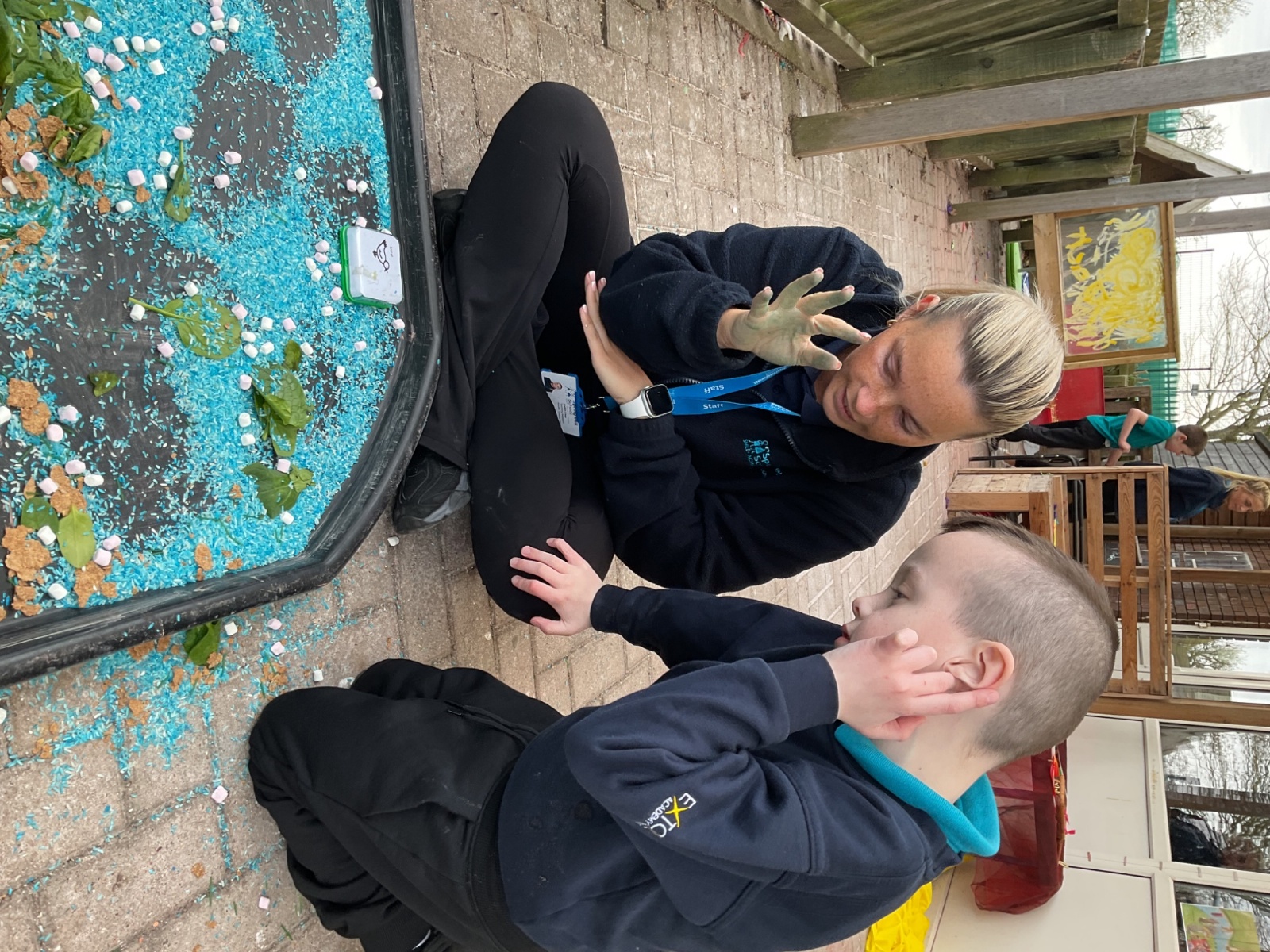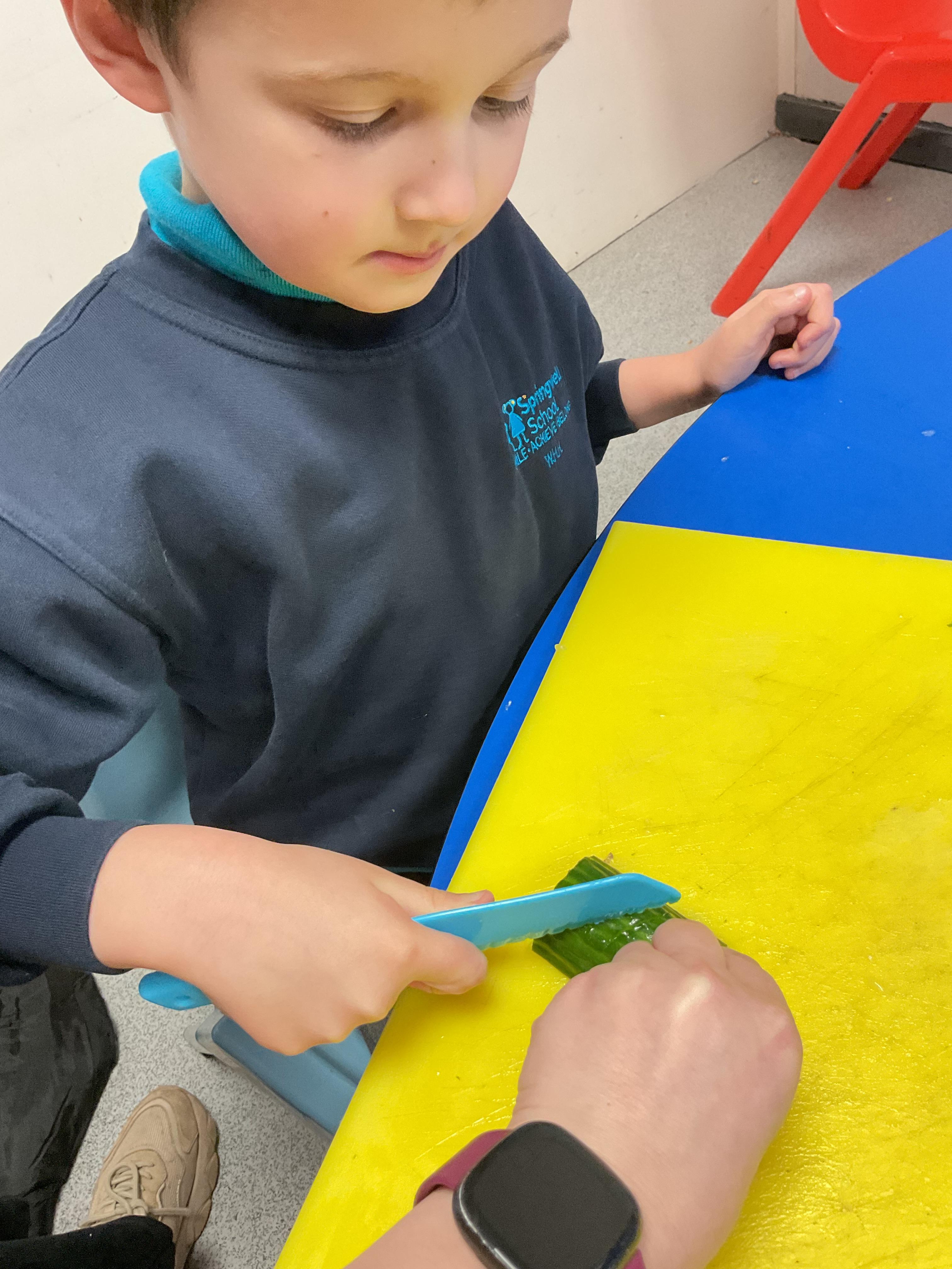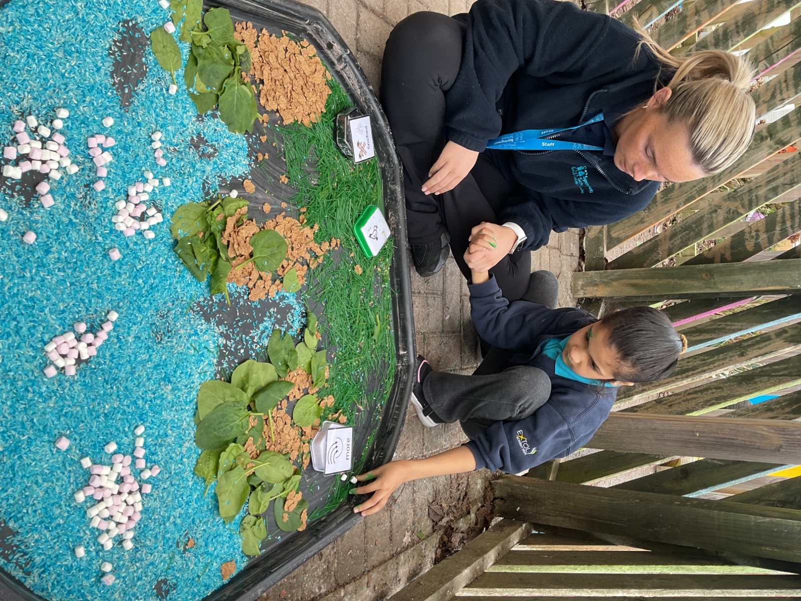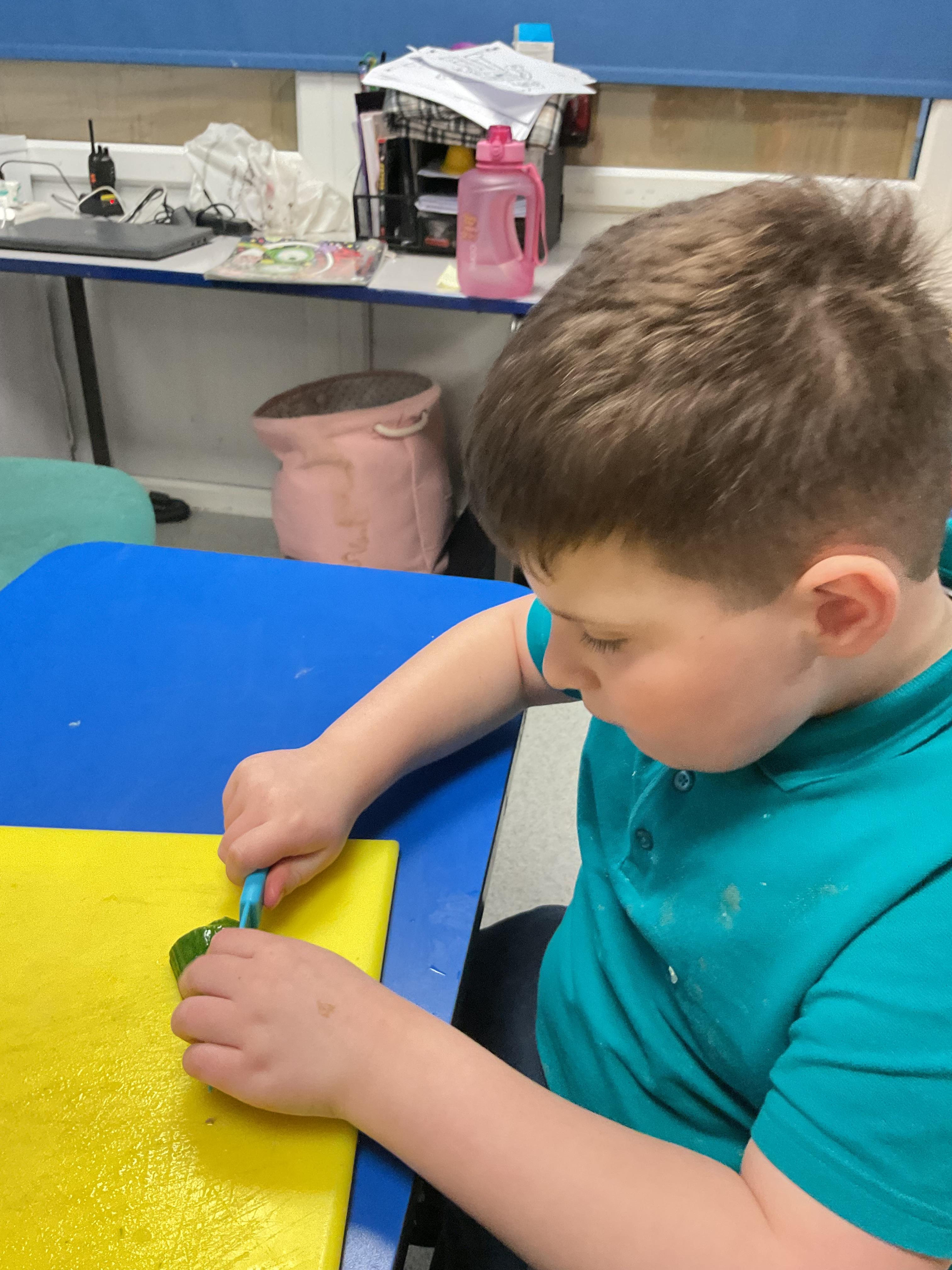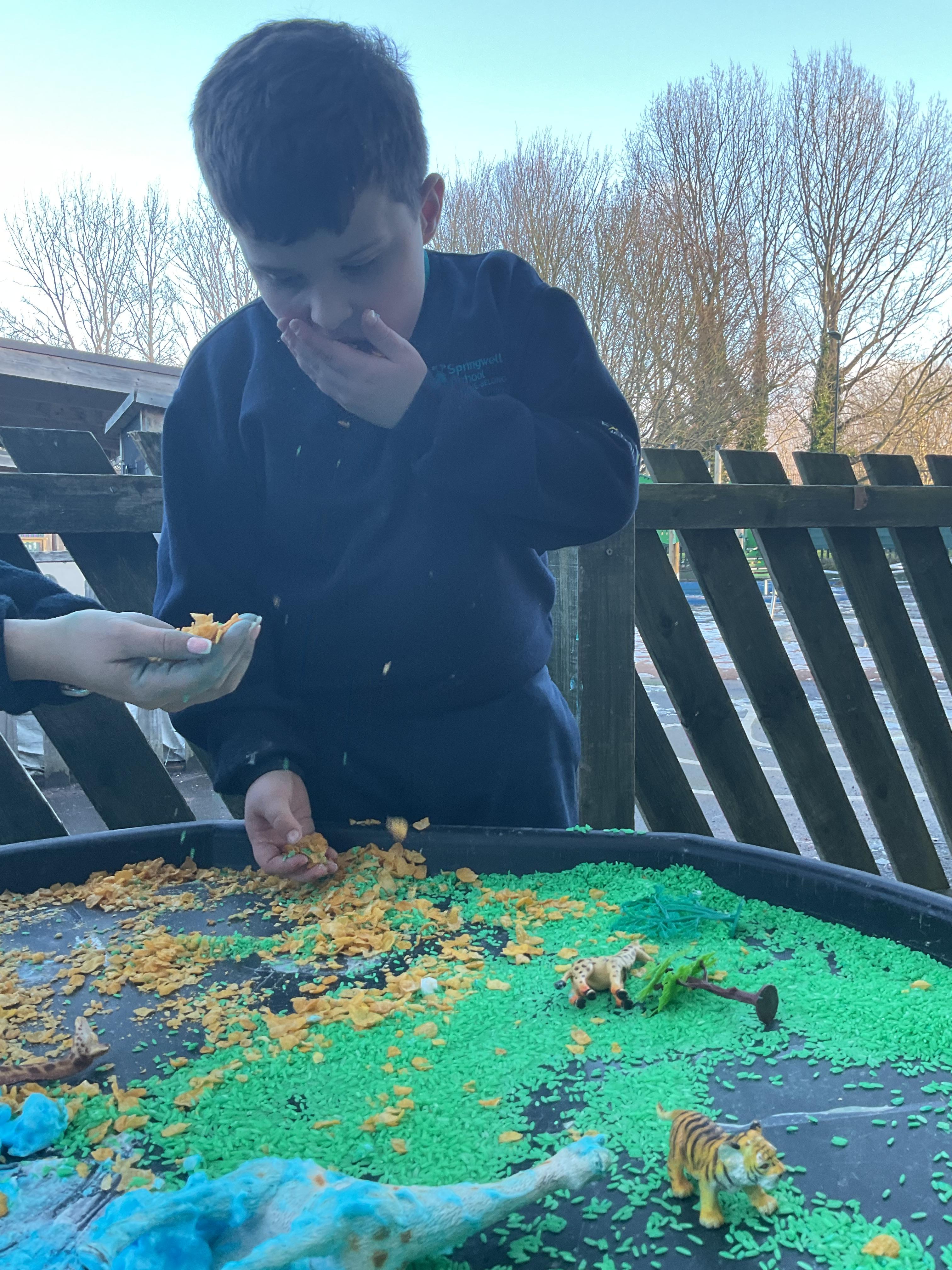 We have had a wonderful week filled with movement, sensory experiences and lots of focused learning. On Monday, the children took part in their rebound session, working hard on their gross motor skills and making great progress towards their individual targets. We also enjoyed some peaceful relaxation time, snuggling up with blankets and taking part in a calming sensory massage. It was a lovely opportunity for everyone to unwind and regulate. The children showed brilliant attention during our Attention Autism session, watching carefully and engaging beautifully throughout. Their focus and curiosity were fantastic. To finish the week, we explored two exciting tuff trays. One tray encouraged the children to try a variety of different foods, while the other supported their cutting skills as they chopped fruits and vegetables. We also had a sensory spring‑themed tray, where the children explored foods representing grass, sky, leaves, and clouds — a fun and creative way to learn through touch, smell and play.