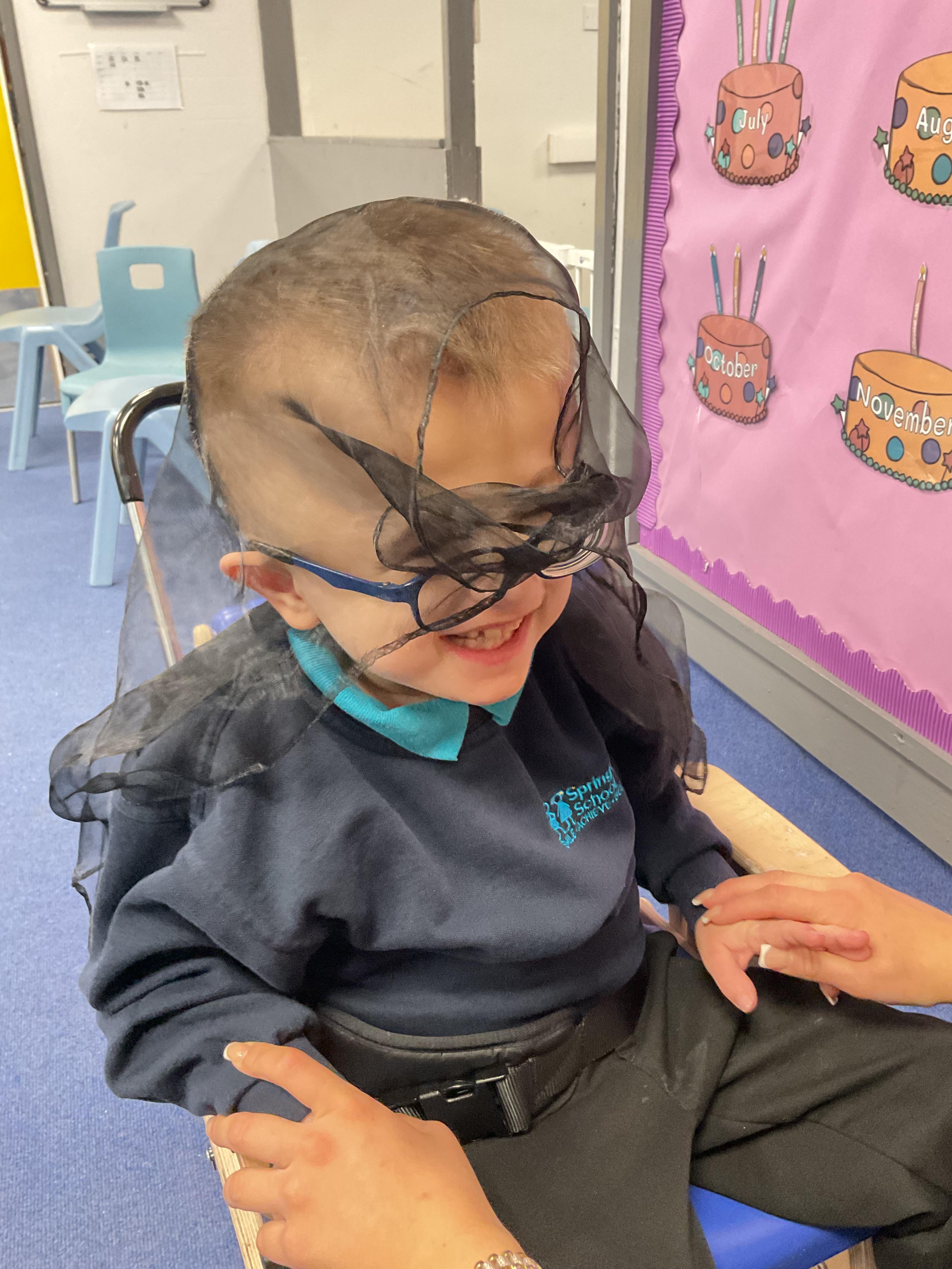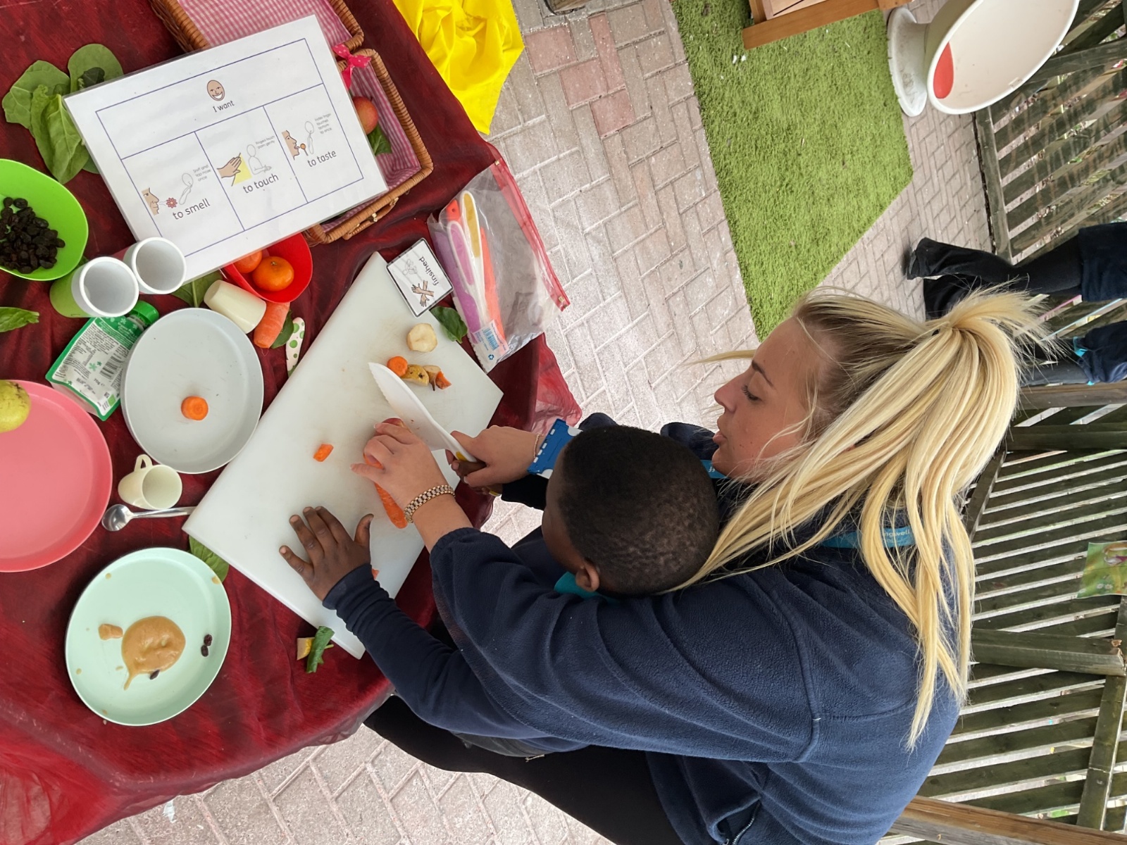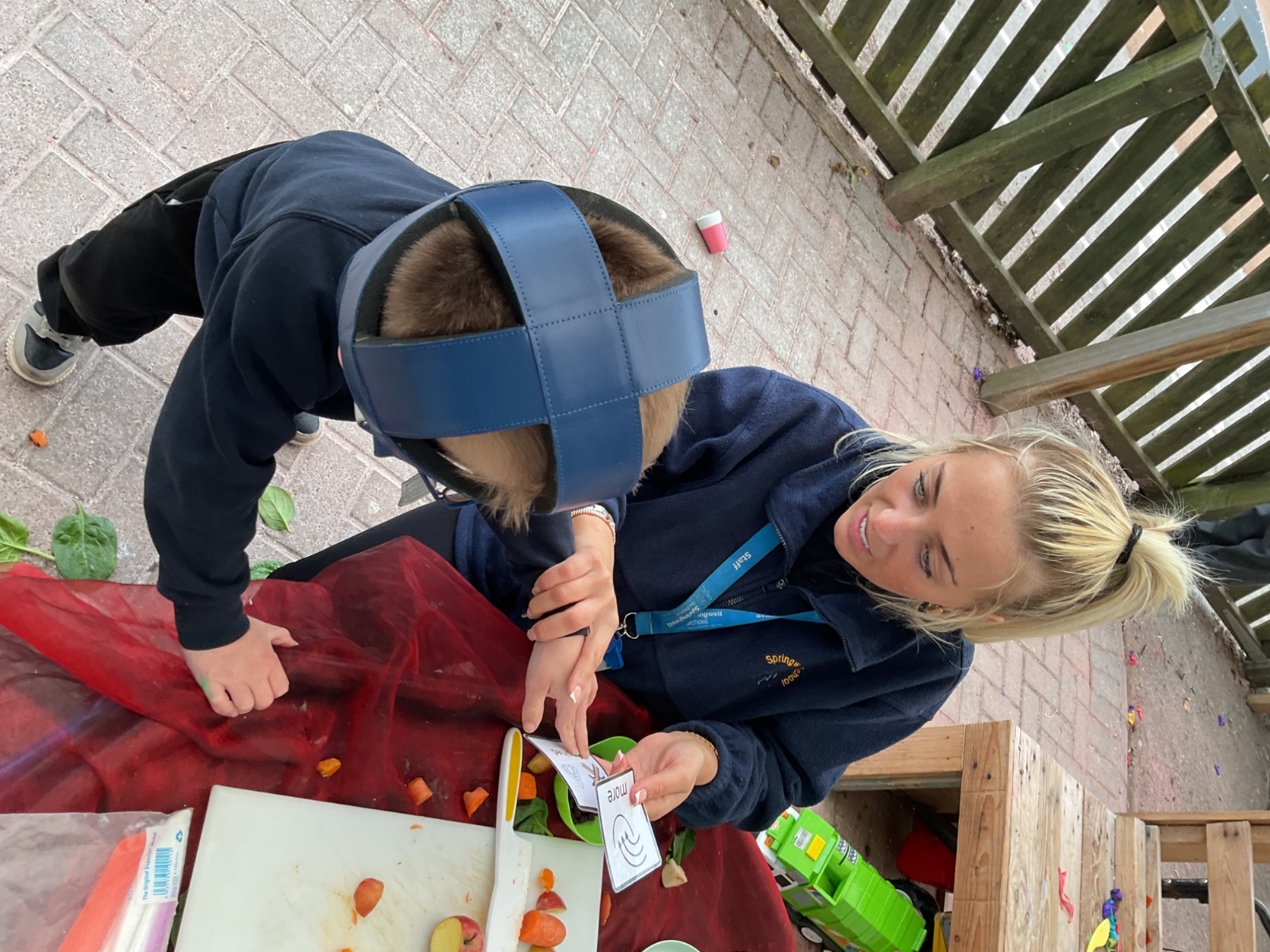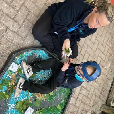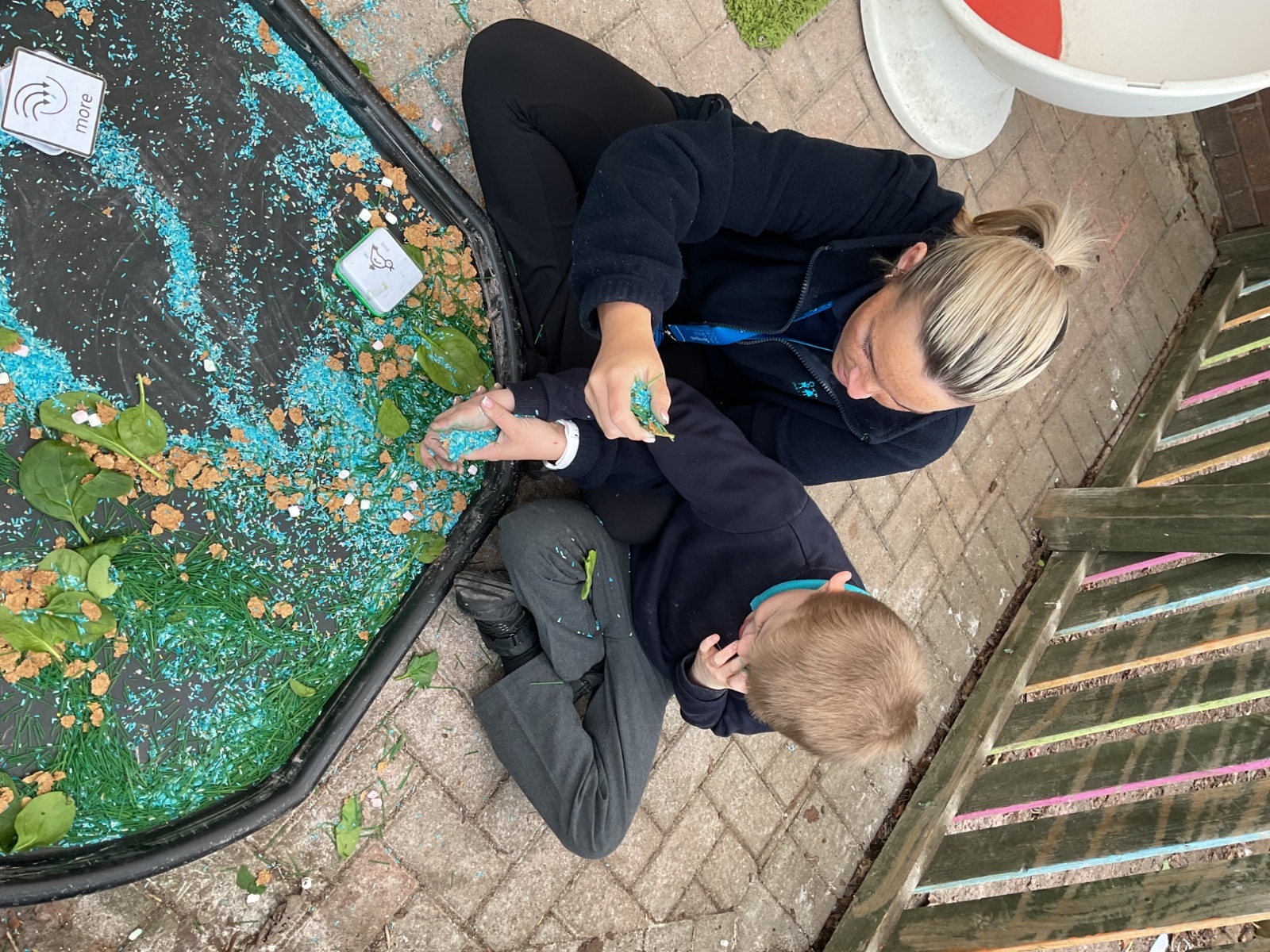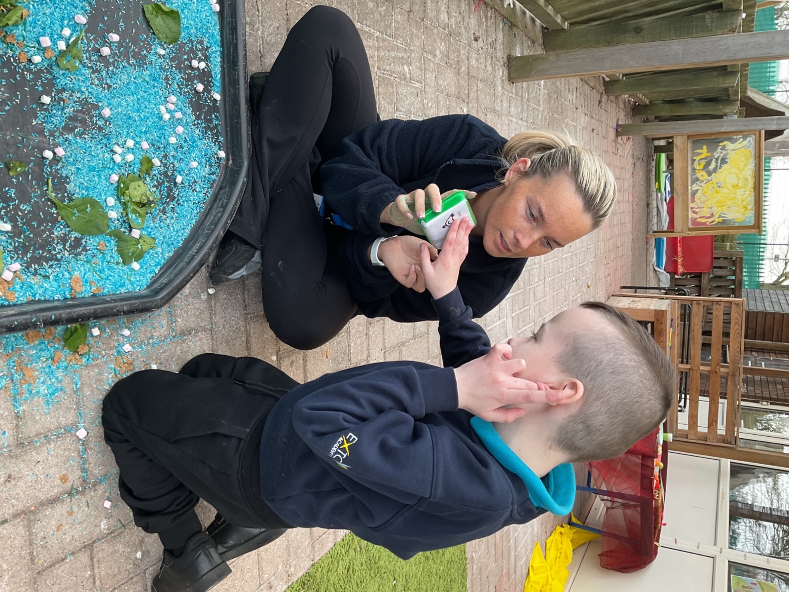 We have had a wonderful week filled with movement, sensory experiences and lots of focused learning. On Monday, the children took part in their rebound session, working hard on their gross motor skills and making great progress towards their individual targets. We also enjoyed some peaceful relaxation time, snuggling up with blankets and taking part in a calming sensory massage. It was a lovely opportunity for everyone to unwind and regulate. The children showed brilliant attention during our Attention Autism session, watching carefully and engaging beautifully throughout. Their focus and curiosity were fantastic. To finish the week, we explored two exciting tuff trays. One tray encouraged the children to try a variety of different foods, while the other supported their cutting skills as they chopped fruits and vegetables. We also had a sensory spring‑themed tray, where the children explored foods representing grass, sky, leaves, and clouds — a fun and creative way to learn through touch, smell and play.