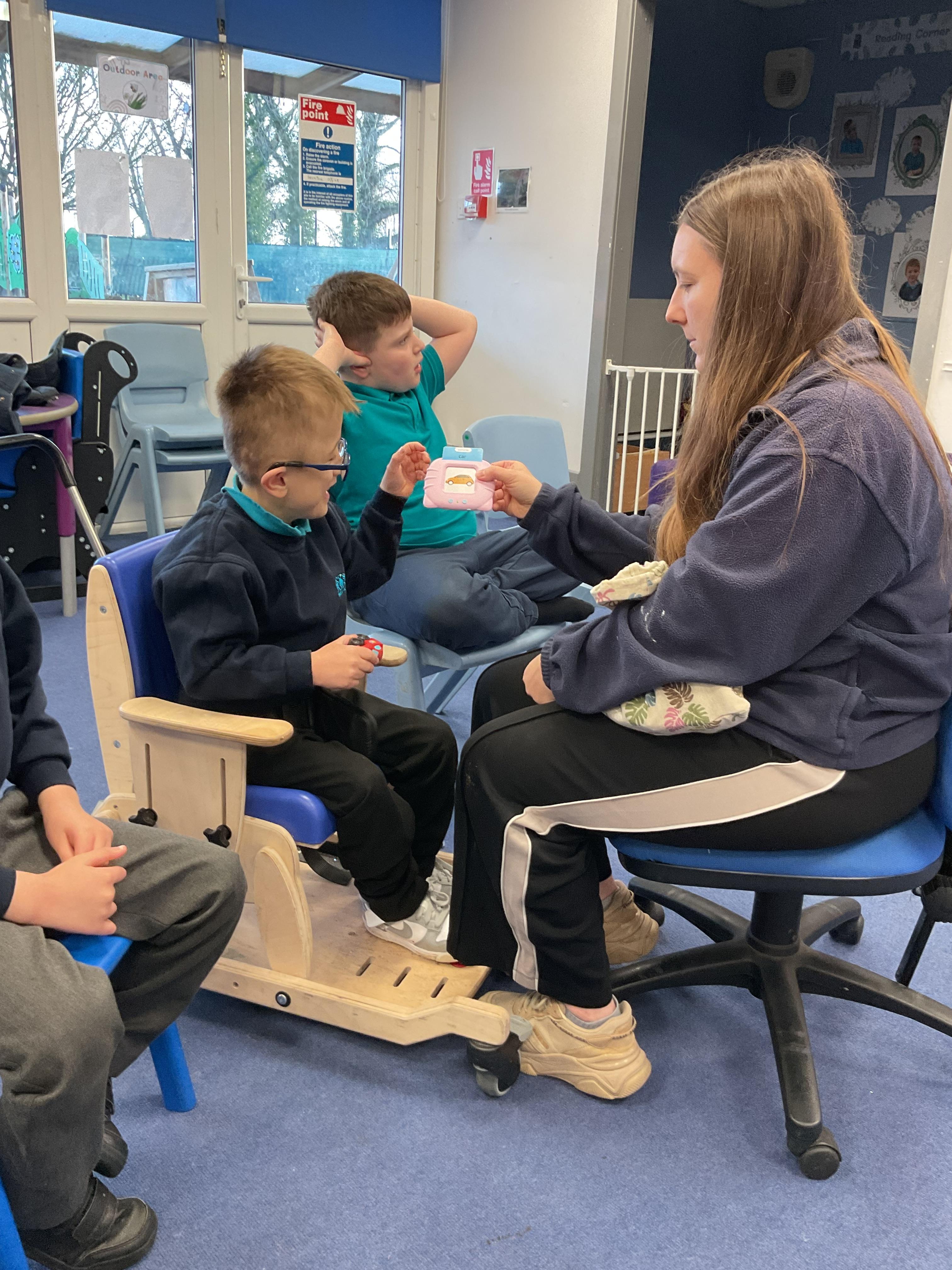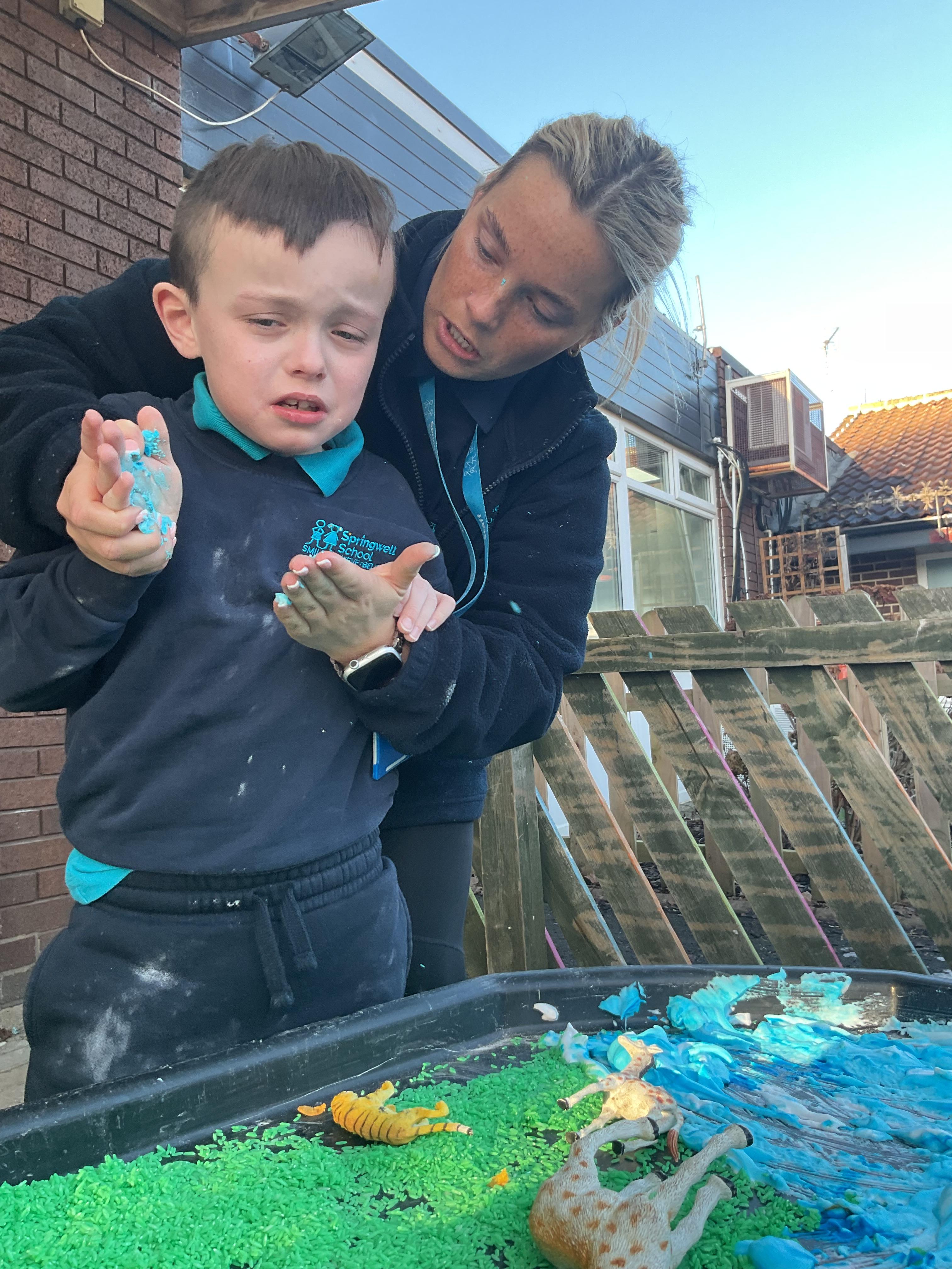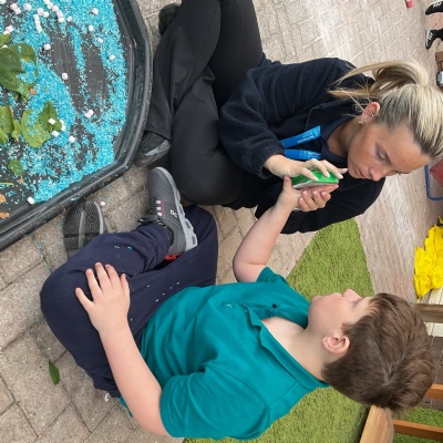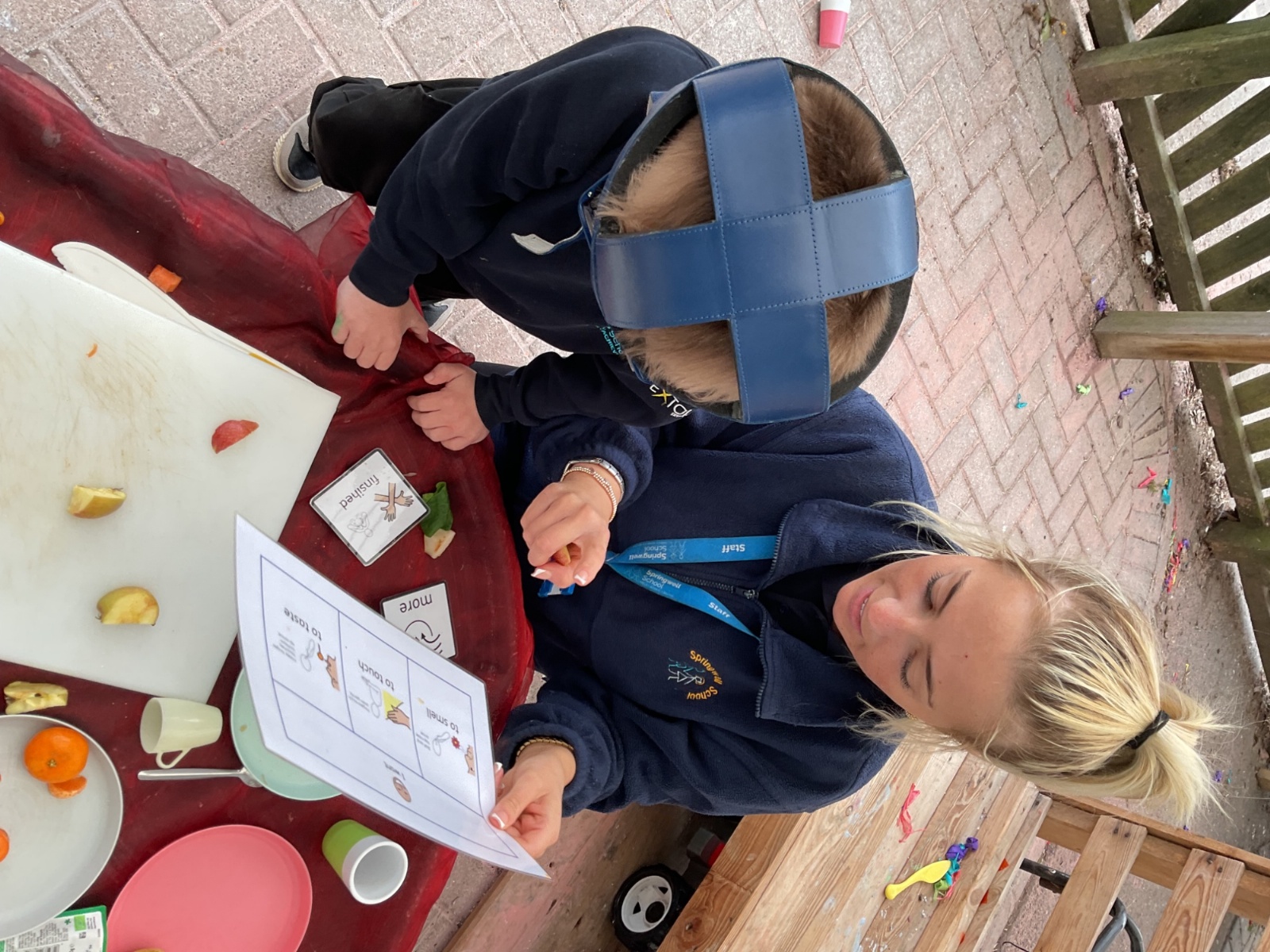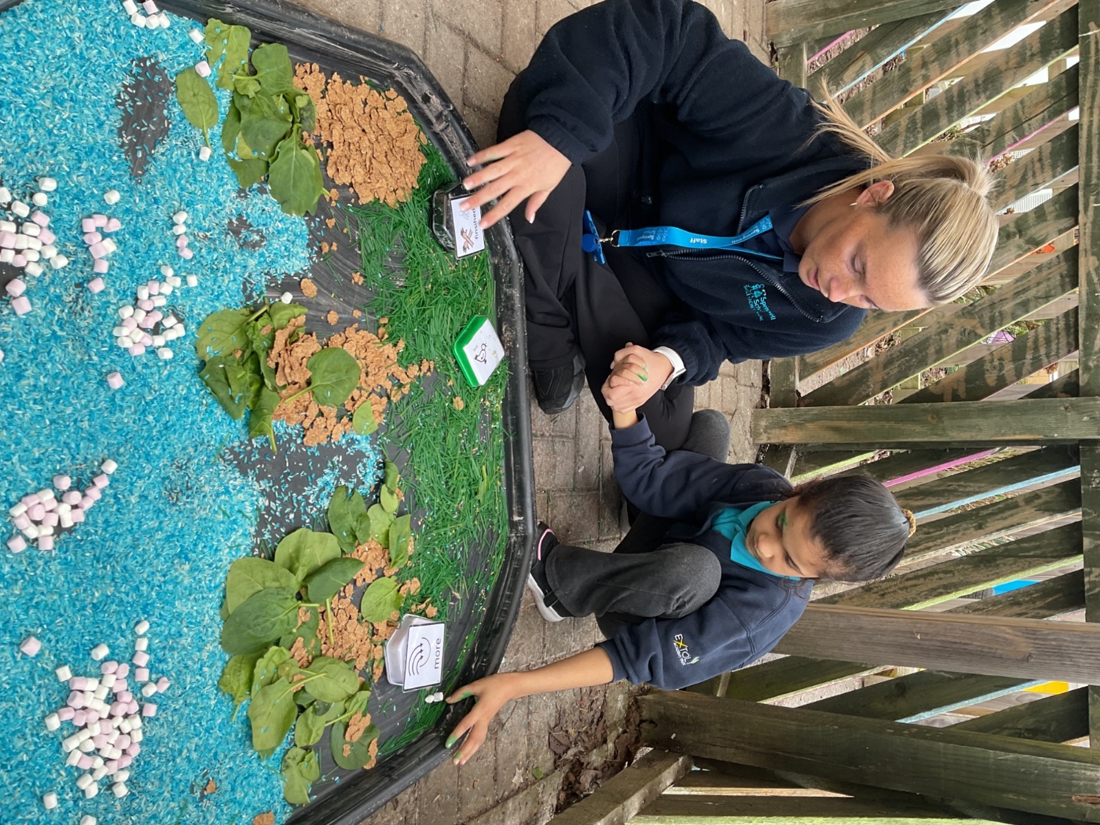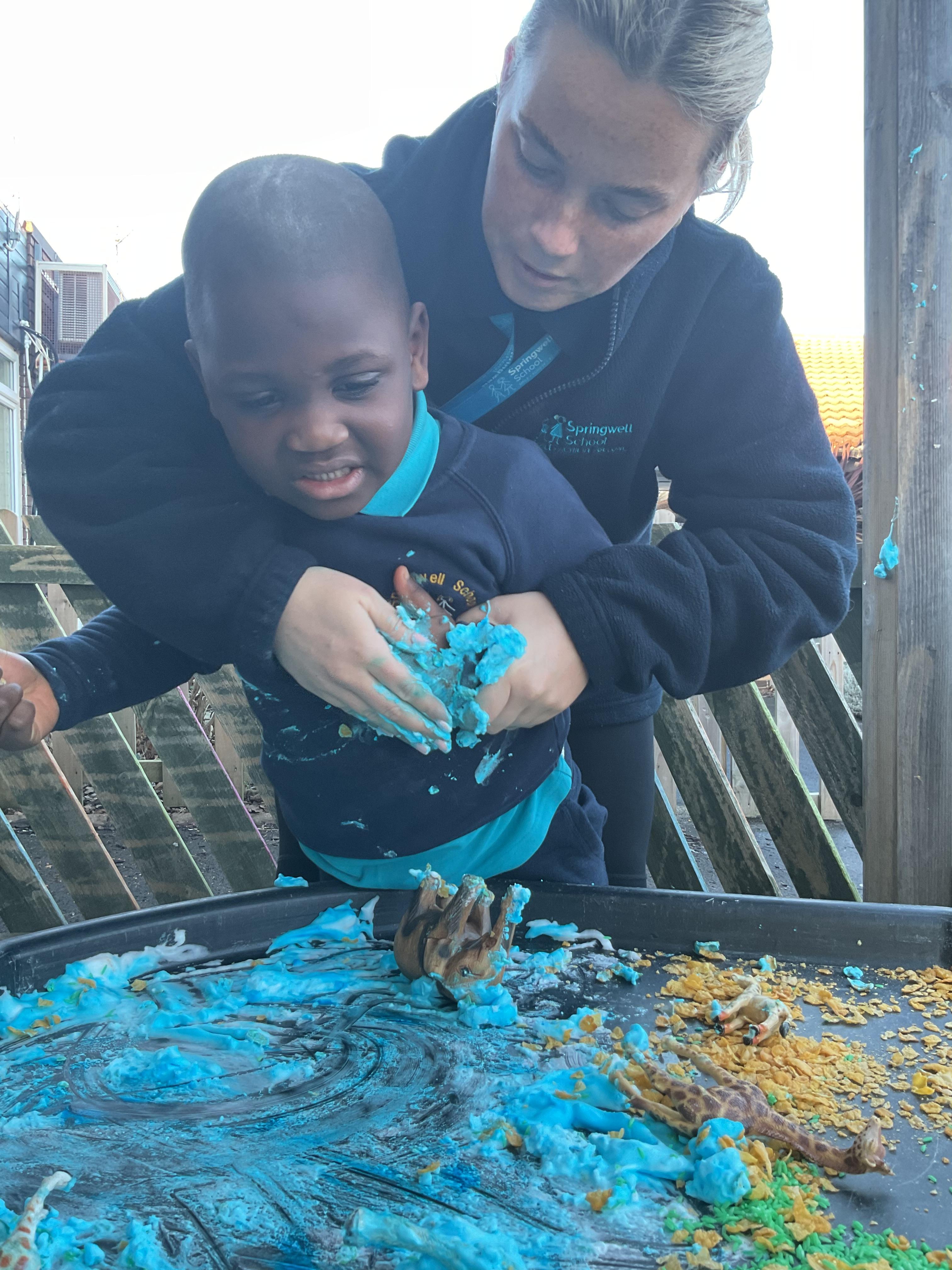 We have had a wonderful week filled with movement, sensory experiences and lots of focused learning. On Monday, the children took part in their rebound session, working hard on their gross motor skills and making great progress towards their individual targets. We also enjoyed some peaceful relaxation time, snuggling up with blankets and taking part in a calming sensory massage. It was a lovely opportunity for everyone to unwind and regulate. The children showed brilliant attention during our Attention Autism session, watching carefully and engaging beautifully throughout. Their focus and curiosity were fantastic. To finish the week, we explored two exciting tuff trays. One tray encouraged the children to try a variety of different foods, while the other supported their cutting skills as they chopped fruits and vegetables. We also had a sensory spring‑themed tray, where the children explored foods representing grass, sky, leaves, and clouds — a fun and creative way to learn through touch, smell and play.