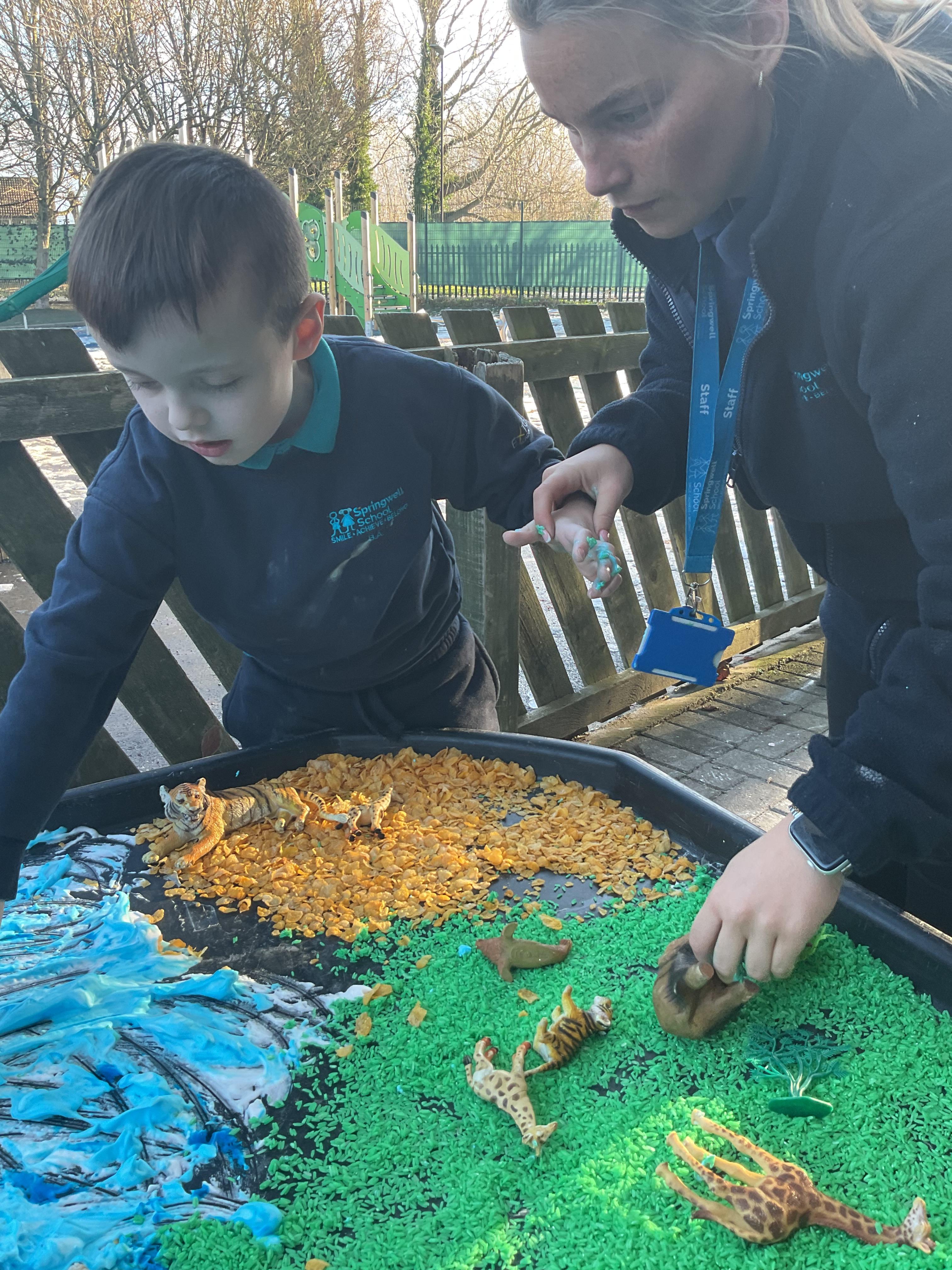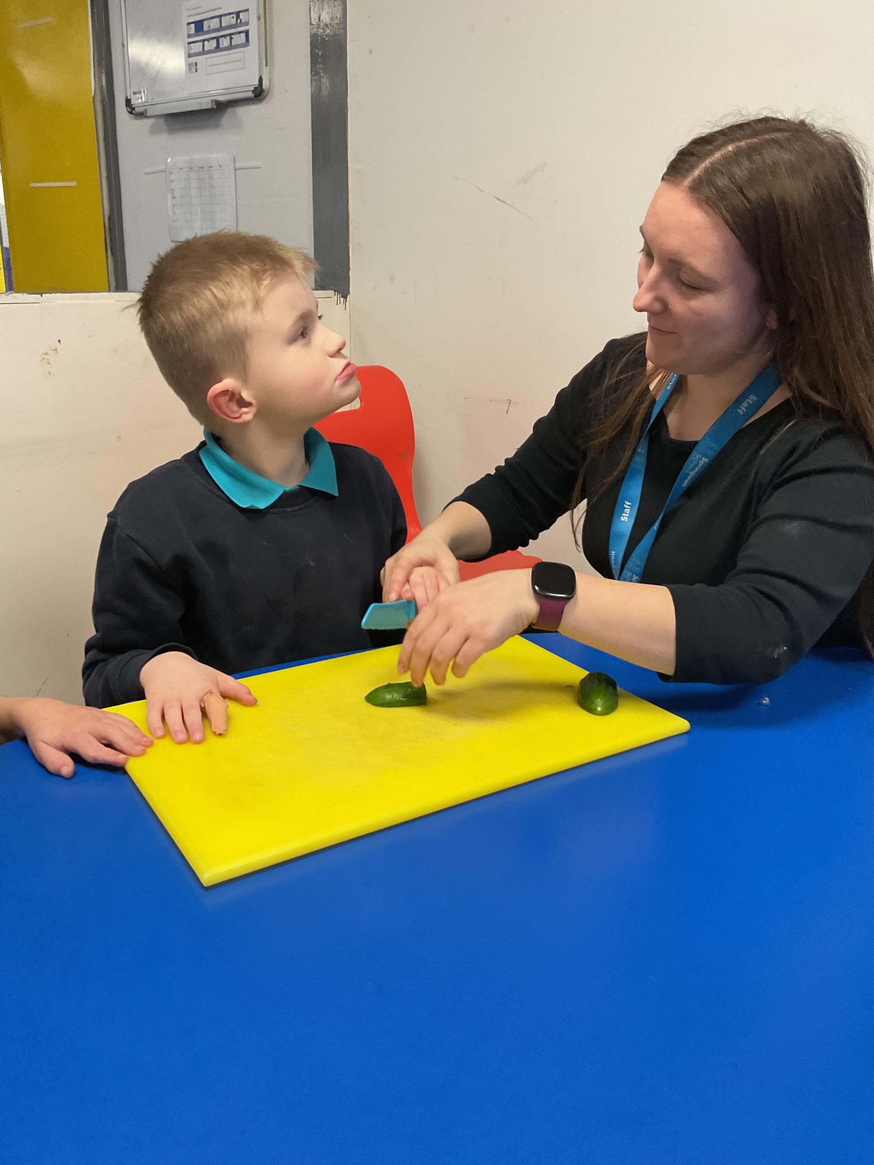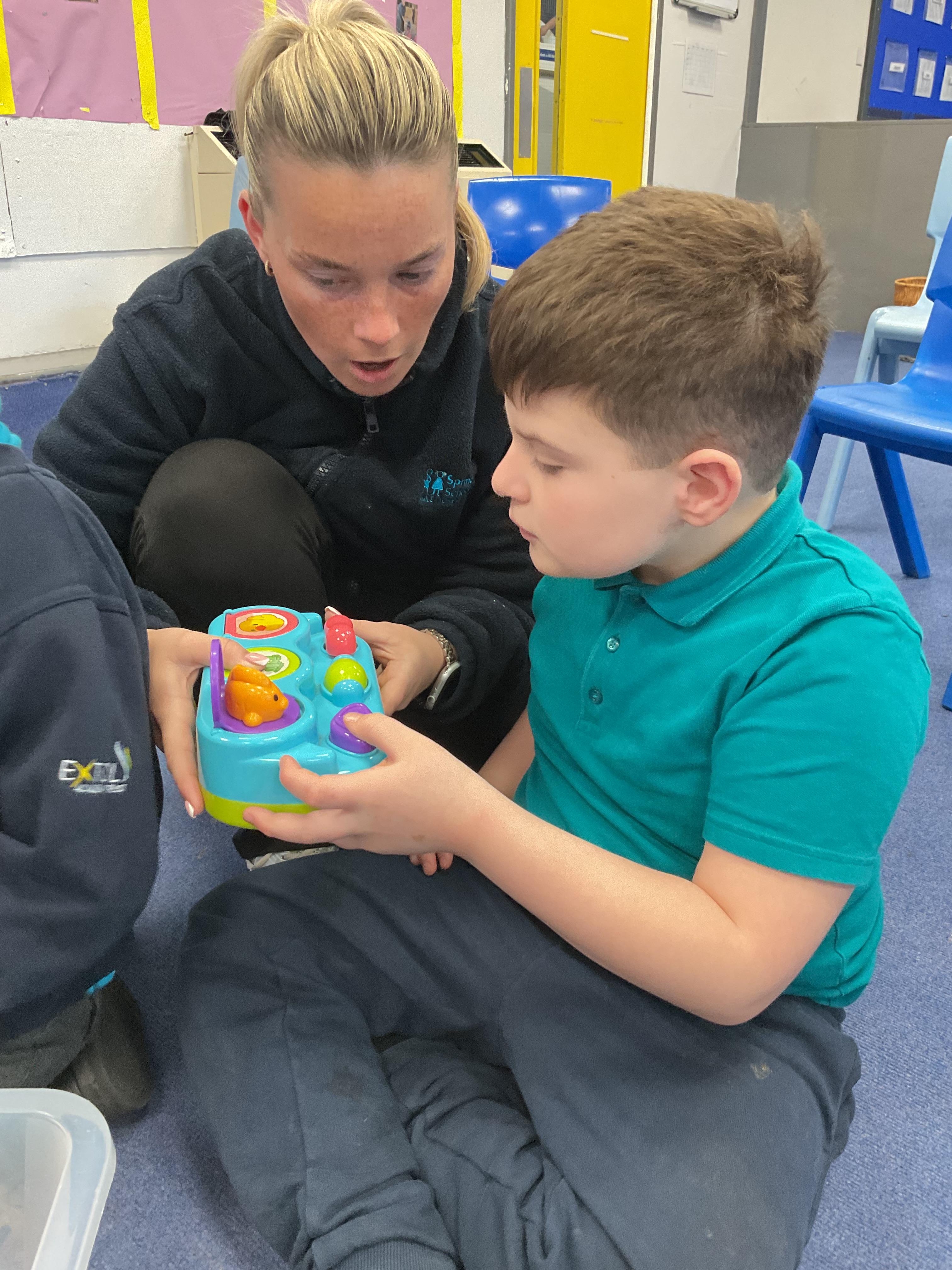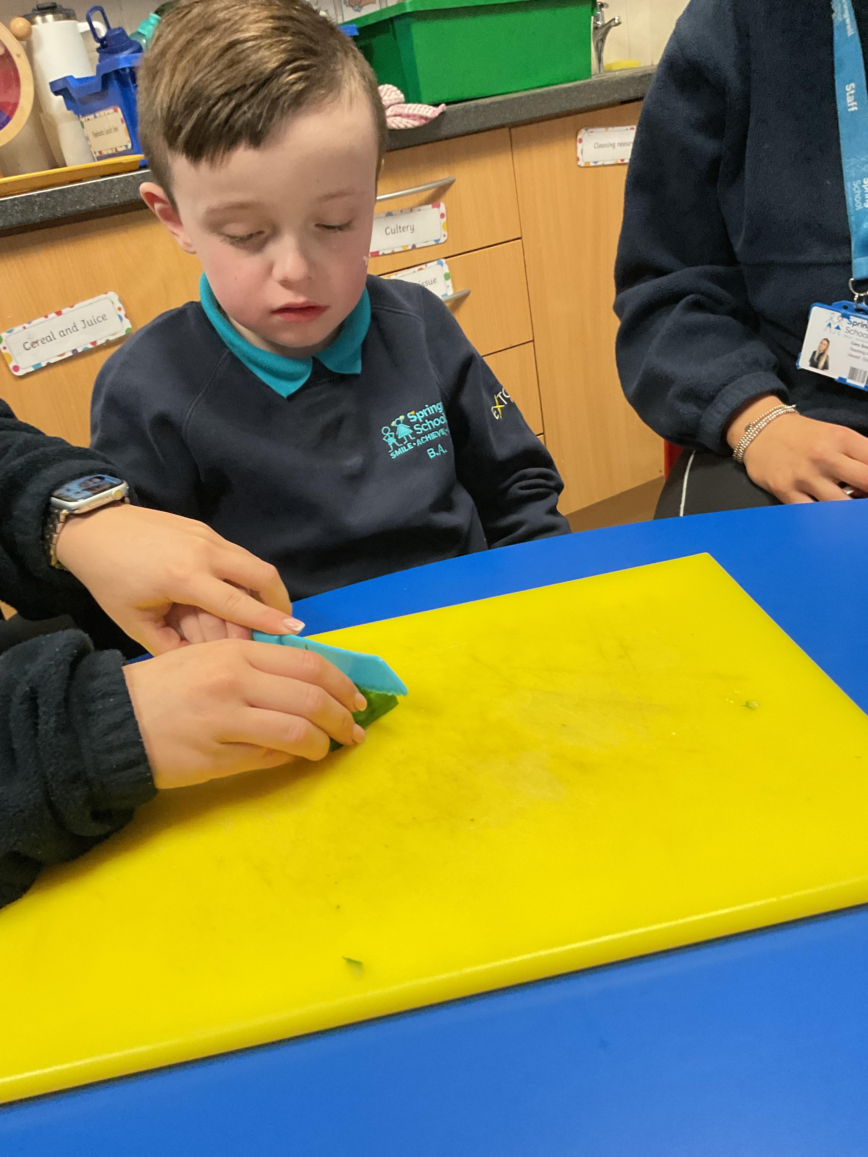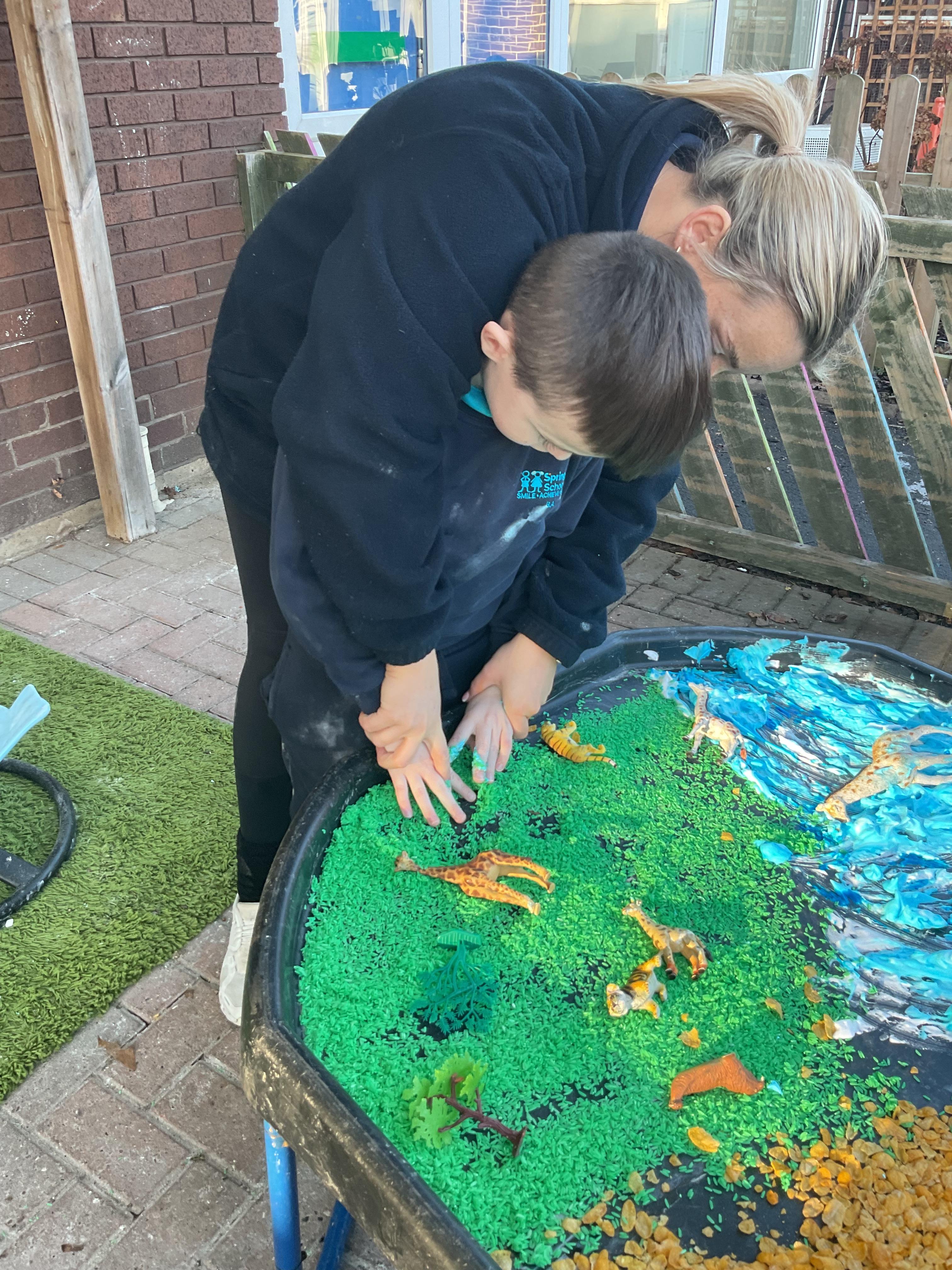 We have had a wonderful week filled with movement, sensory experiences and lots of focused learning. On Monday, the children took part in their rebound session, working hard on their gross motor skills and making great progress towards their individual targets. We also enjoyed some peaceful relaxation time, snuggling up with blankets and taking part in a calming sensory massage. It was a lovely opportunity for everyone to unwind and regulate. The children showed brilliant attention during our Attention Autism session, watching carefully and engaging beautifully throughout. Their focus and curiosity were fantastic. To finish the week, we explored two exciting tuff trays. One tray encouraged the children to try a variety of different foods, while the other supported their cutting skills as they chopped fruits and vegetables. We also had a sensory spring‑themed tray, where the children explored foods representing grass, sky, leaves, and clouds — a fun and creative way to learn through touch, smell and play.