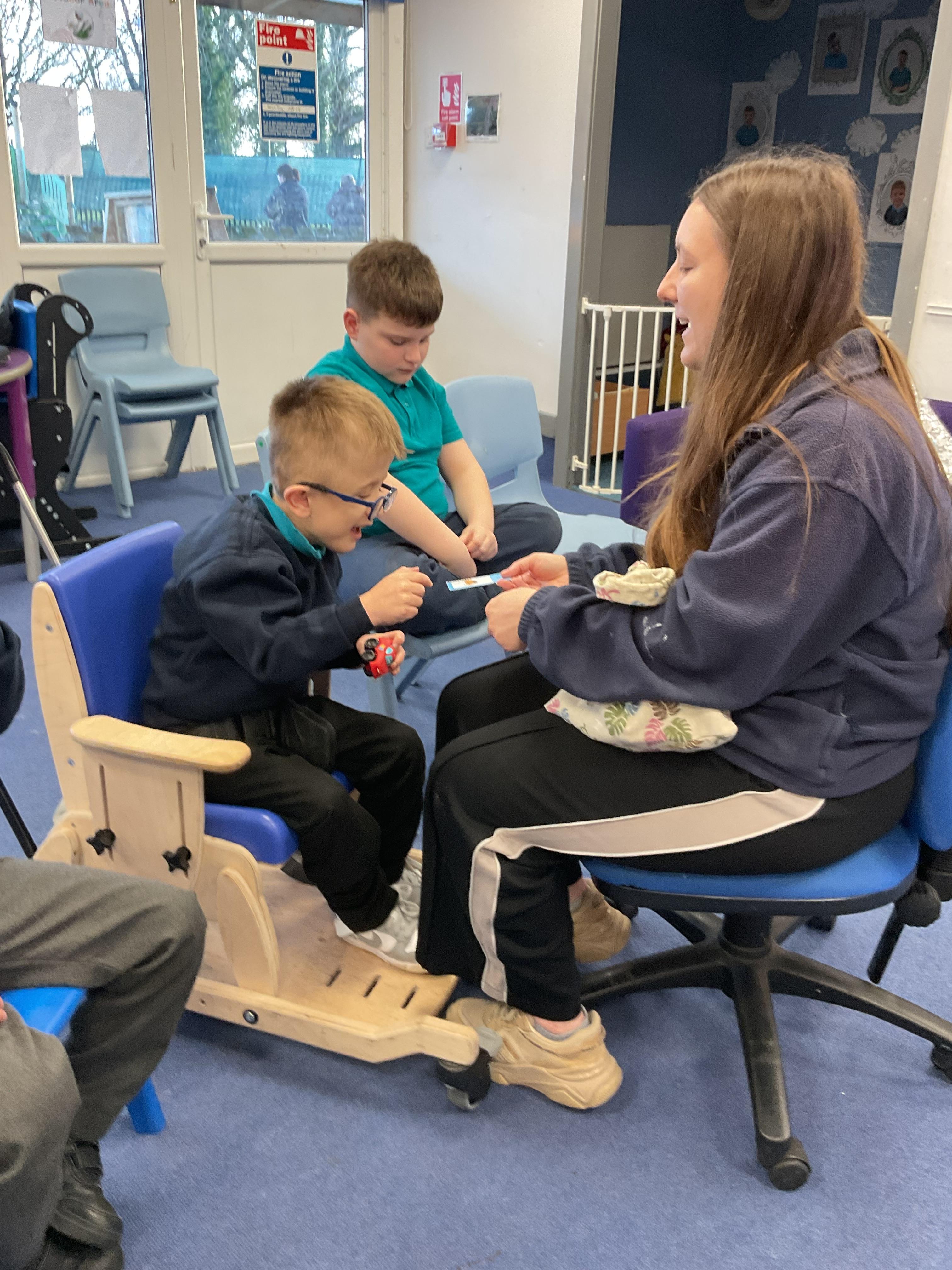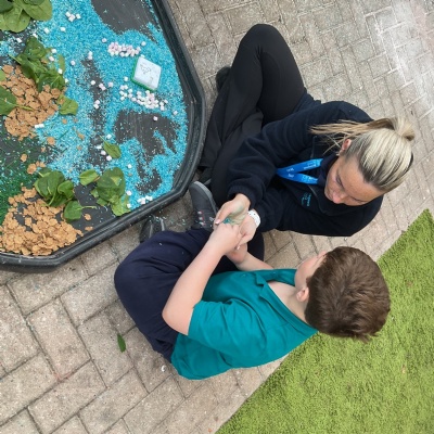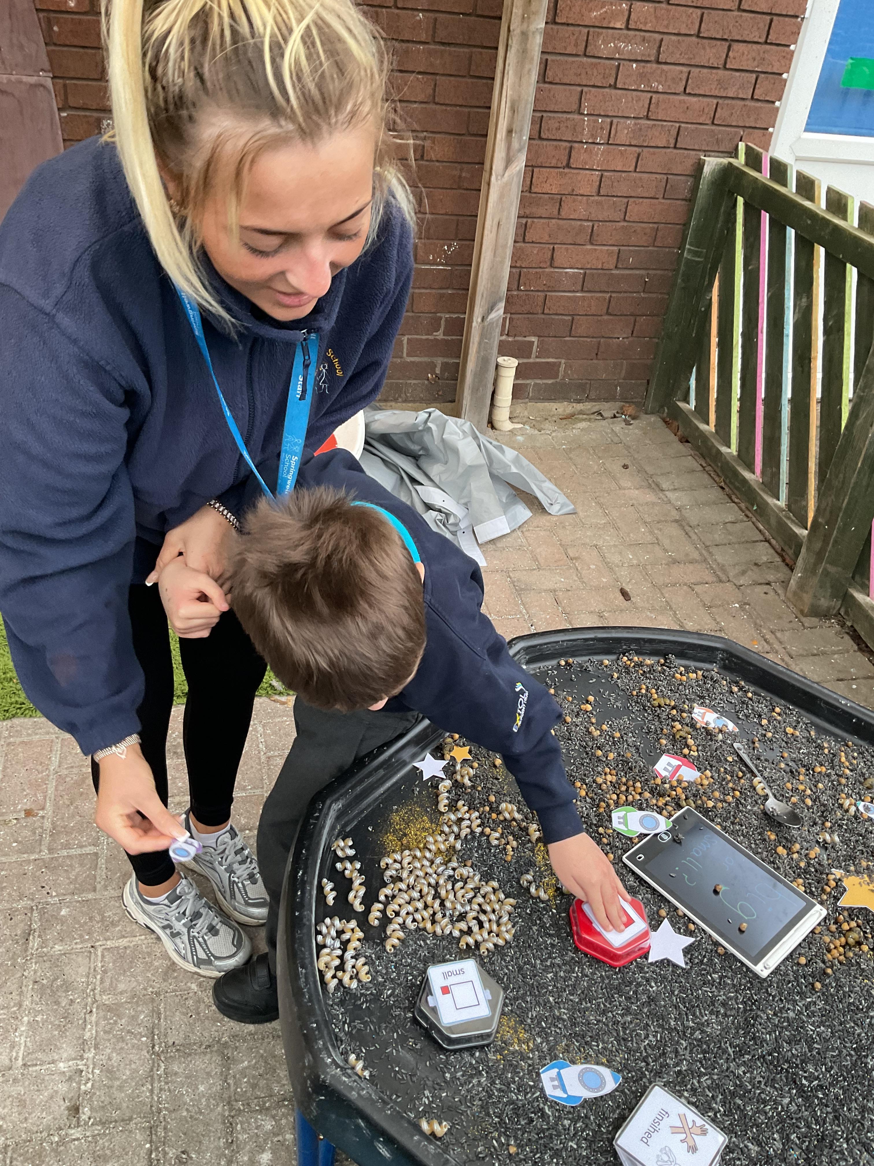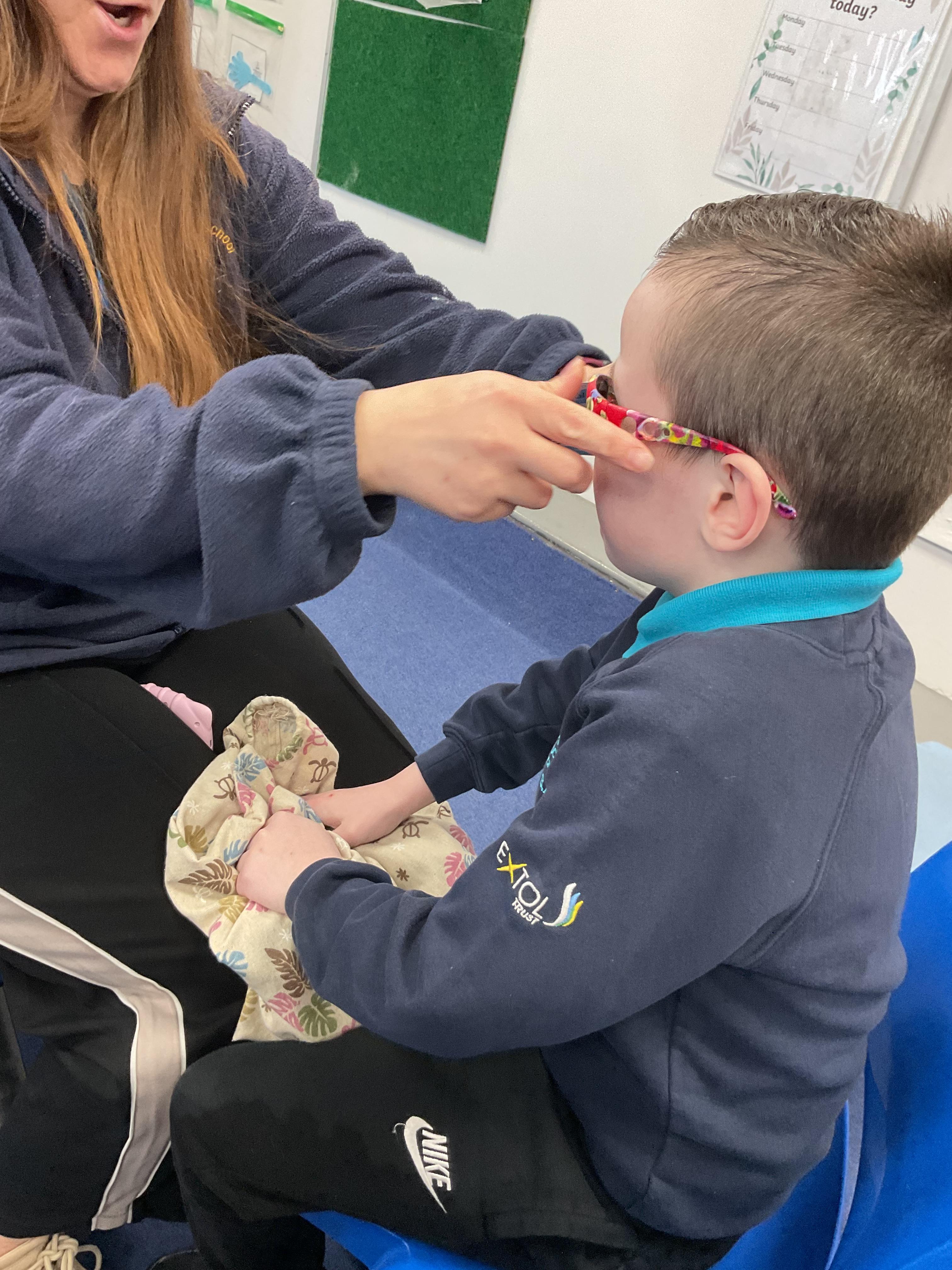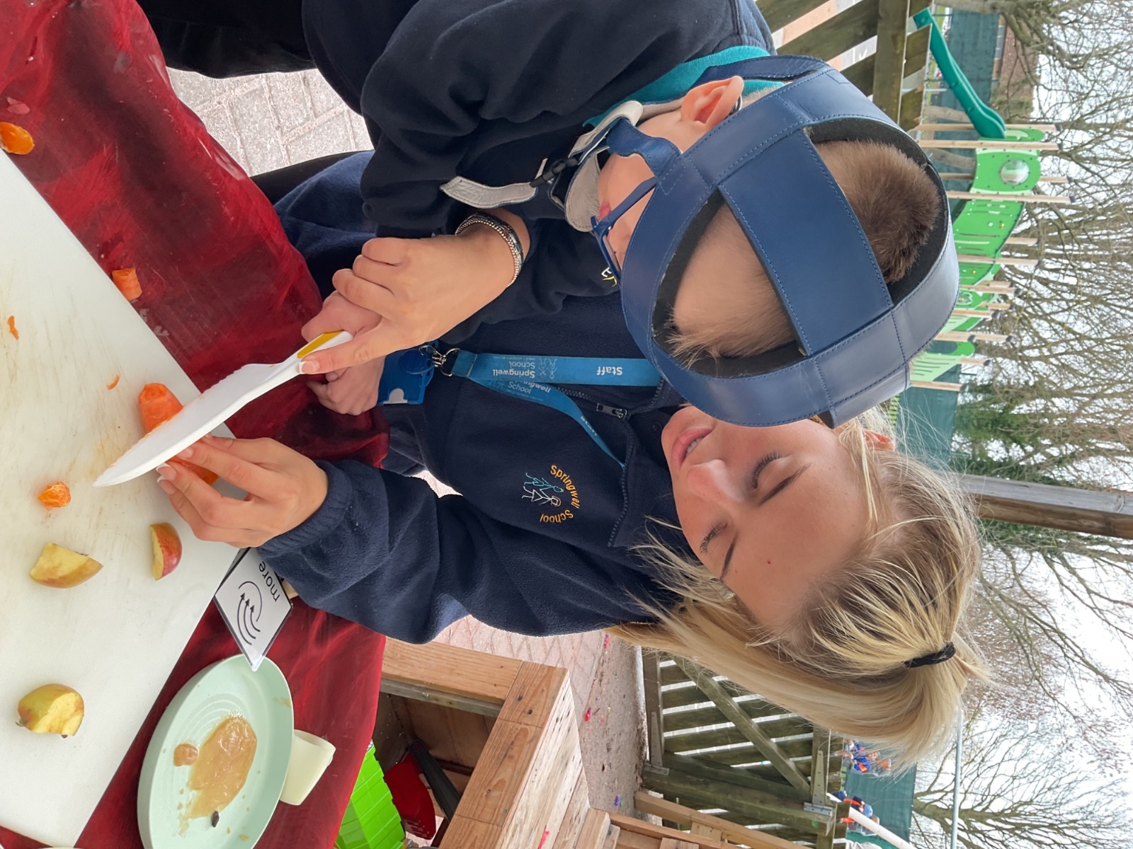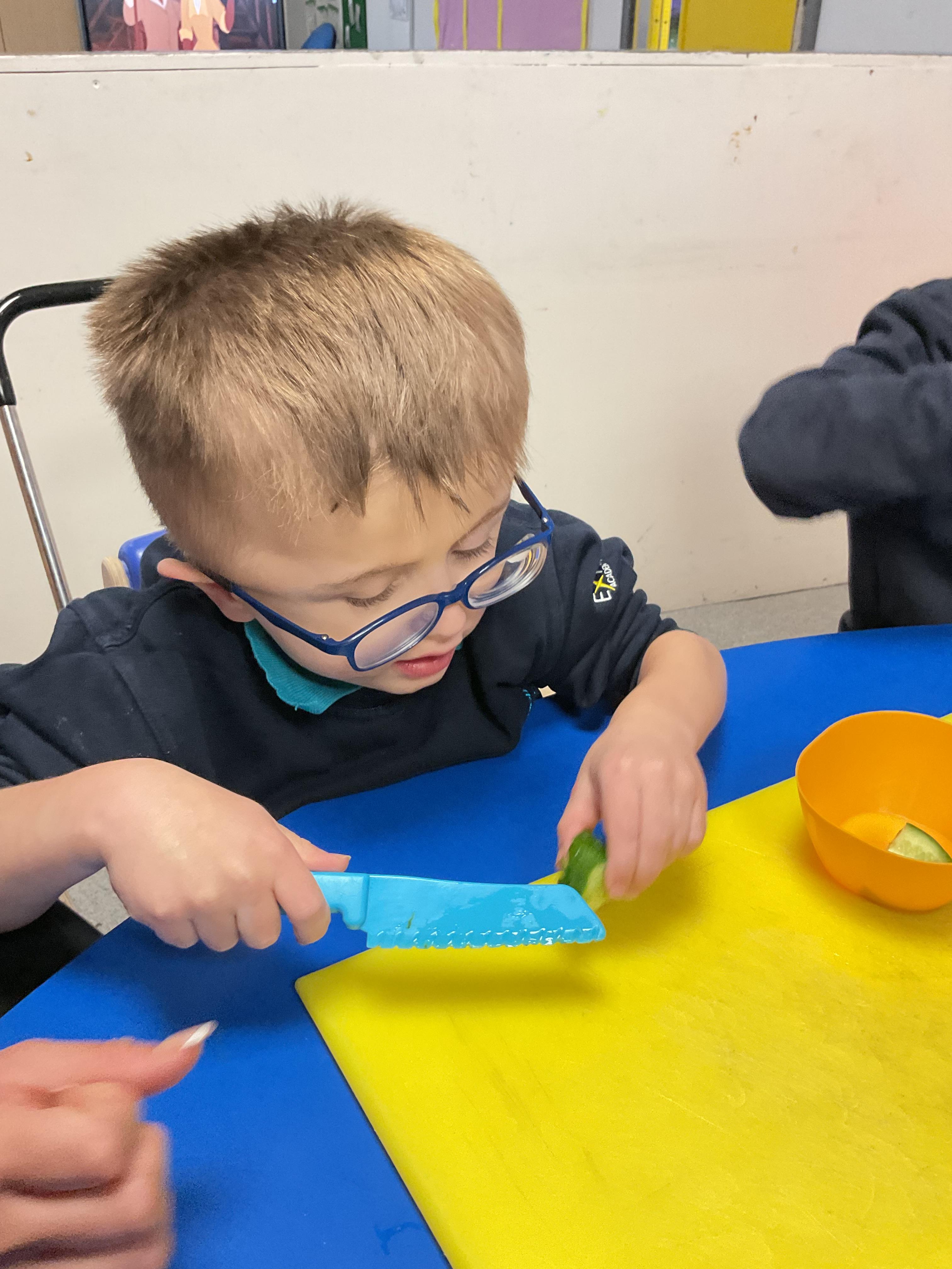 We have had a wonderful week filled with movement, sensory experiences and lots of focused learning. On Monday, the children took part in their rebound session, working hard on their gross motor skills and making great progress towards their individual targets. We also enjoyed some peaceful relaxation time, snuggling up with blankets and taking part in a calming sensory massage. It was a lovely opportunity for everyone to unwind and regulate. The children showed brilliant attention during our Attention Autism session, watching carefully and engaging beautifully throughout. Their focus and curiosity were fantastic. To finish the week, we explored two exciting tuff trays. One tray encouraged the children to try a variety of different foods, while the other supported their cutting skills as they chopped fruits and vegetables. We also had a sensory spring‑themed tray, where the children explored foods representing grass, sky, leaves, and clouds — a fun and creative way to learn through touch, smell and play.