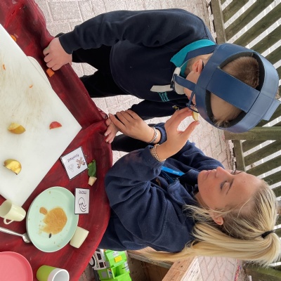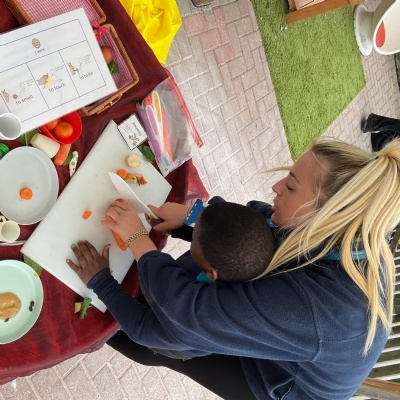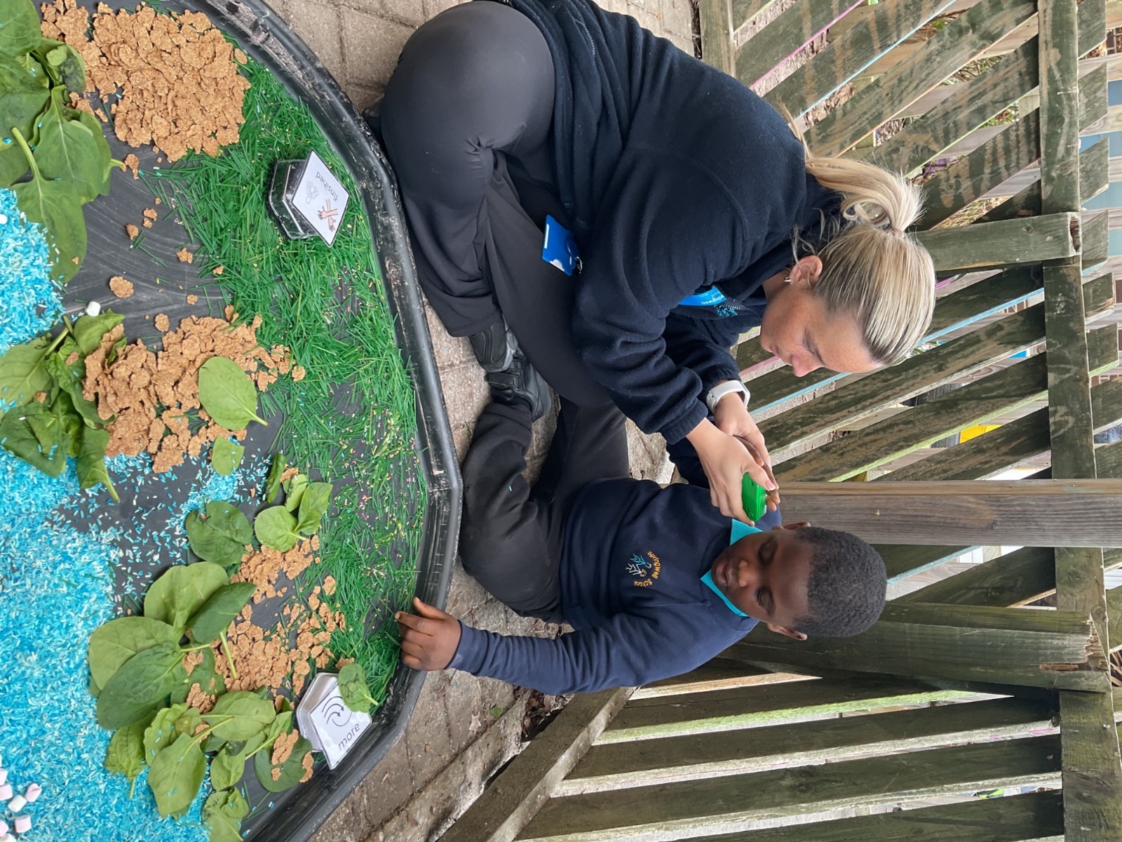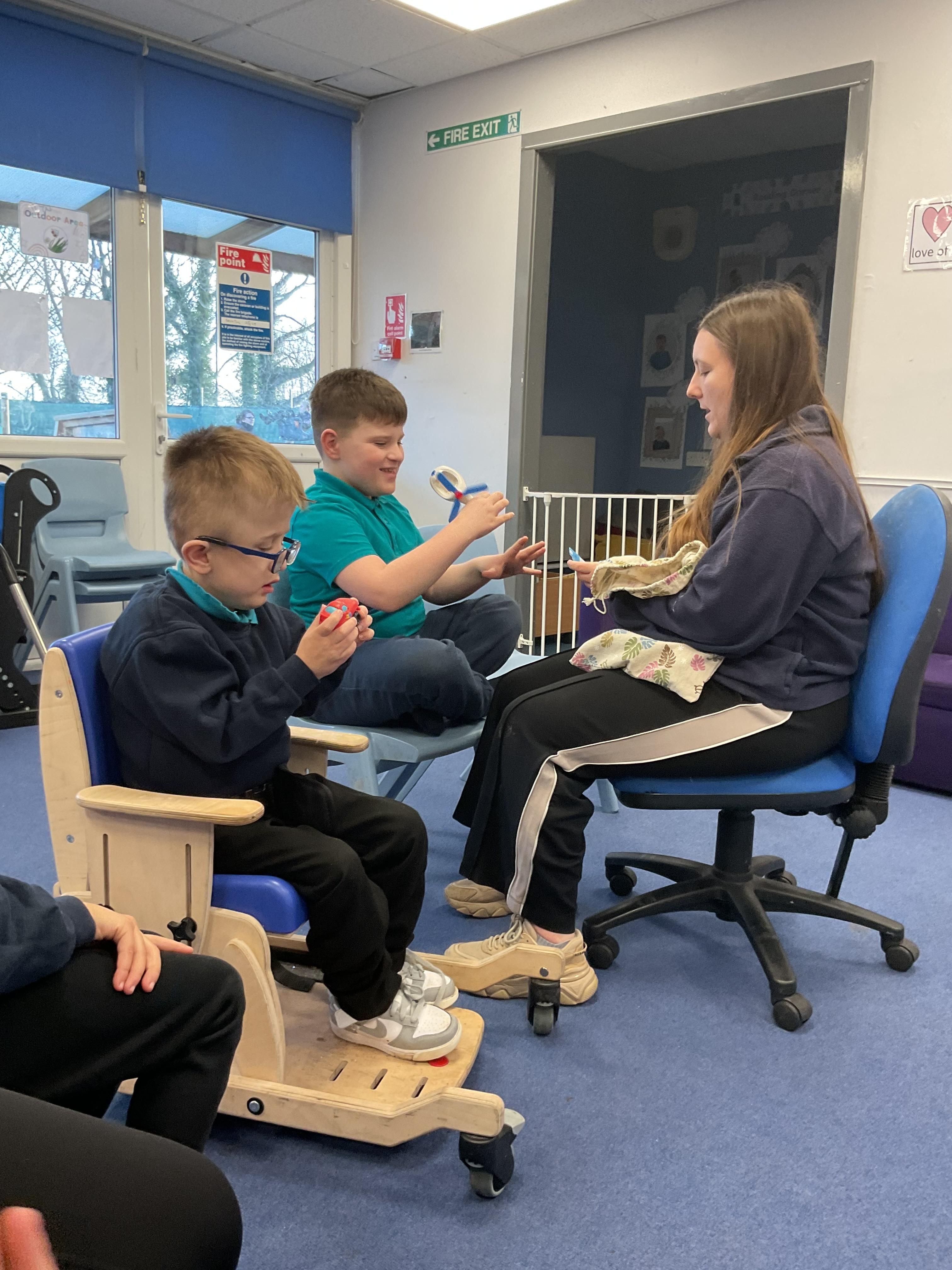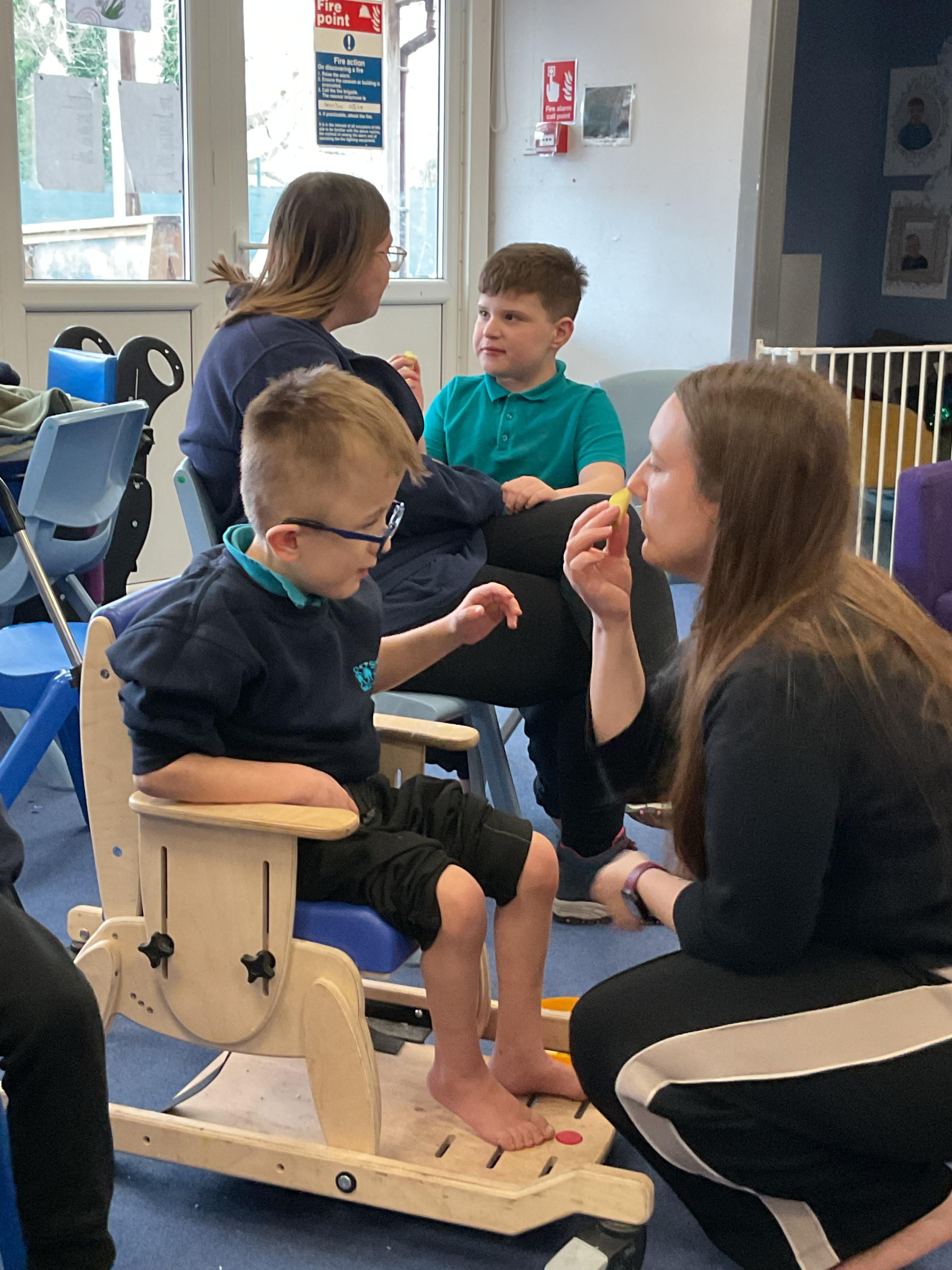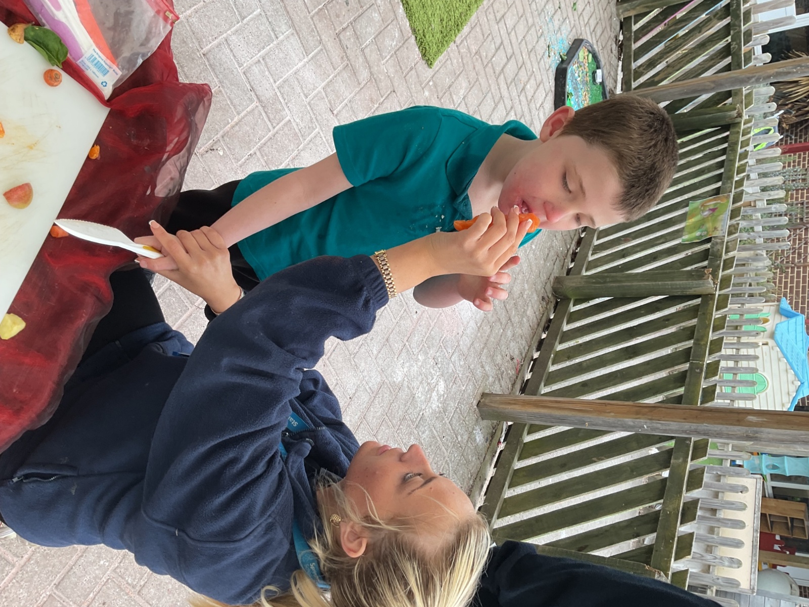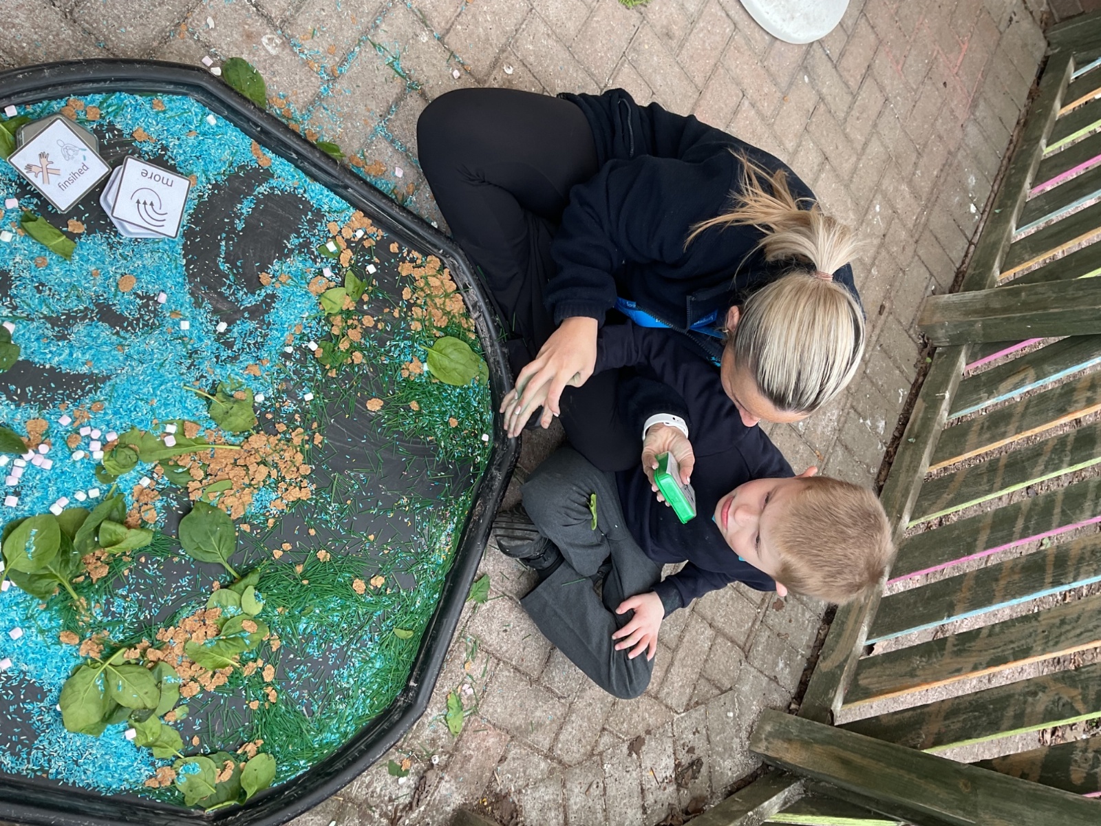 We have had a wonderful week filled with movement, sensory experiences and lots of focused learning. On Monday, the children took part in their rebound session, working hard on their gross motor skills and making great progress towards their individual targets. We also enjoyed some peaceful relaxation time, snuggling up with blankets and taking part in a calming sensory massage. It was a lovely opportunity for everyone to unwind and regulate. The children showed brilliant attention during our Attention Autism session, watching carefully and engaging beautifully throughout. Their focus and curiosity were fantastic. To finish the week, we explored two exciting tuff trays. One tray encouraged the children to try a variety of different foods, while the other supported their cutting skills as they chopped fruits and vegetables. We also had a sensory spring‑themed tray, where the children explored foods representing grass, sky, leaves, and clouds — a fun and creative way to learn through touch, smell and play.
