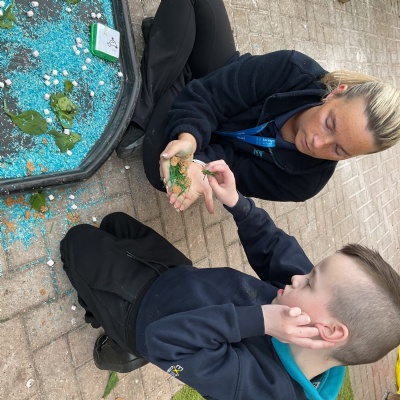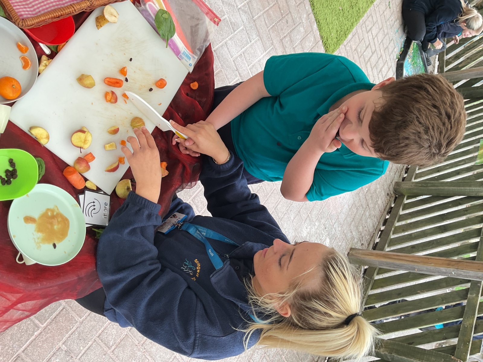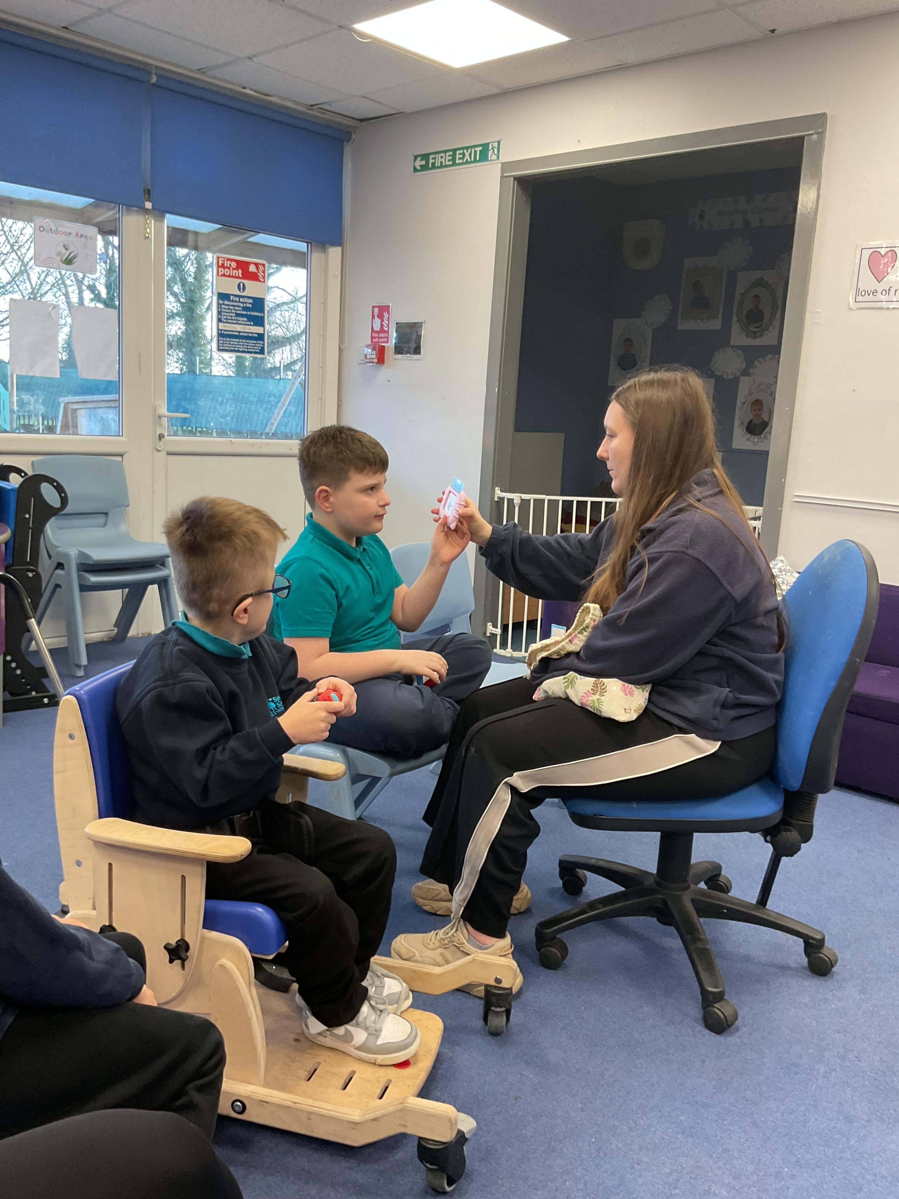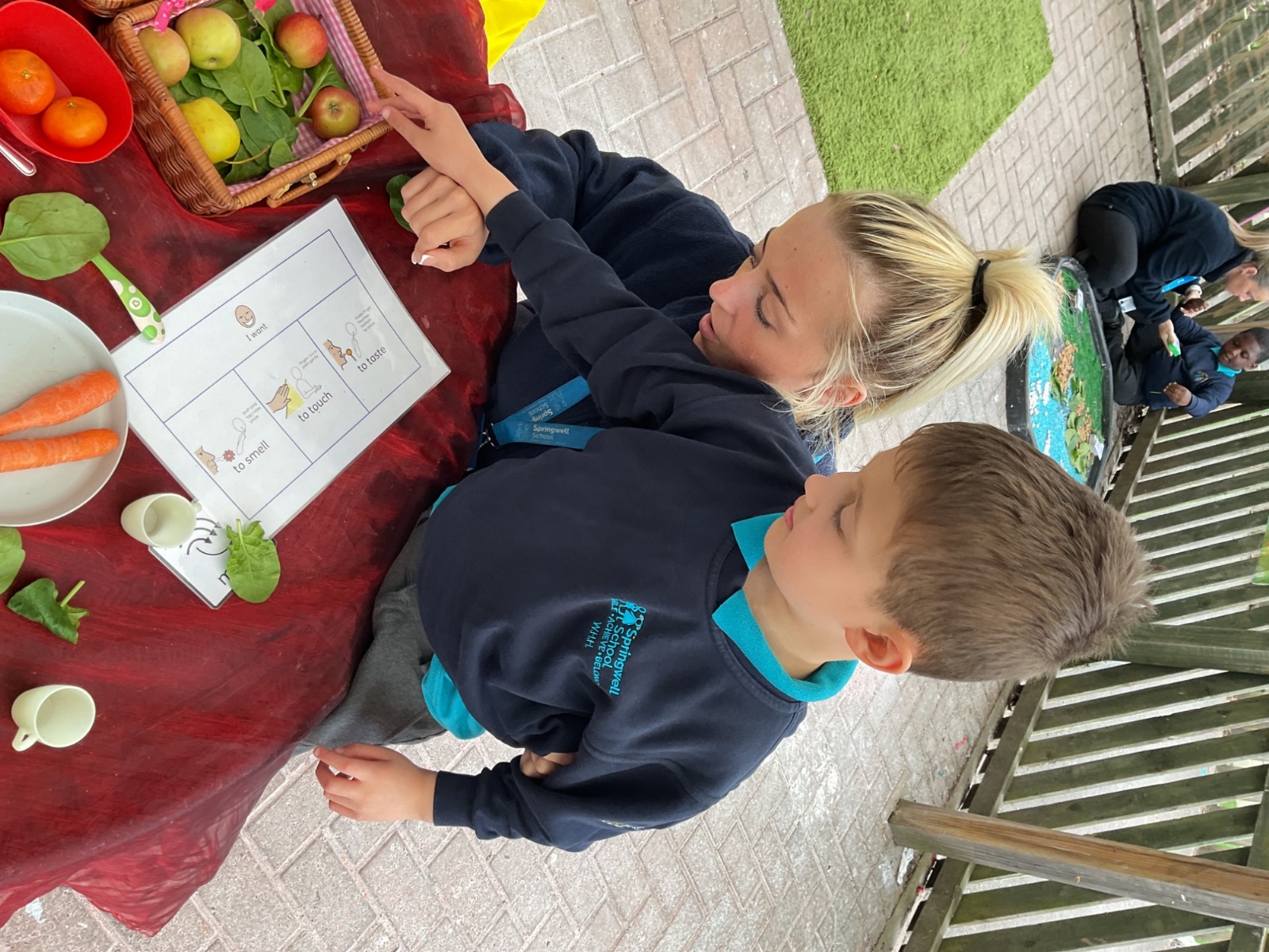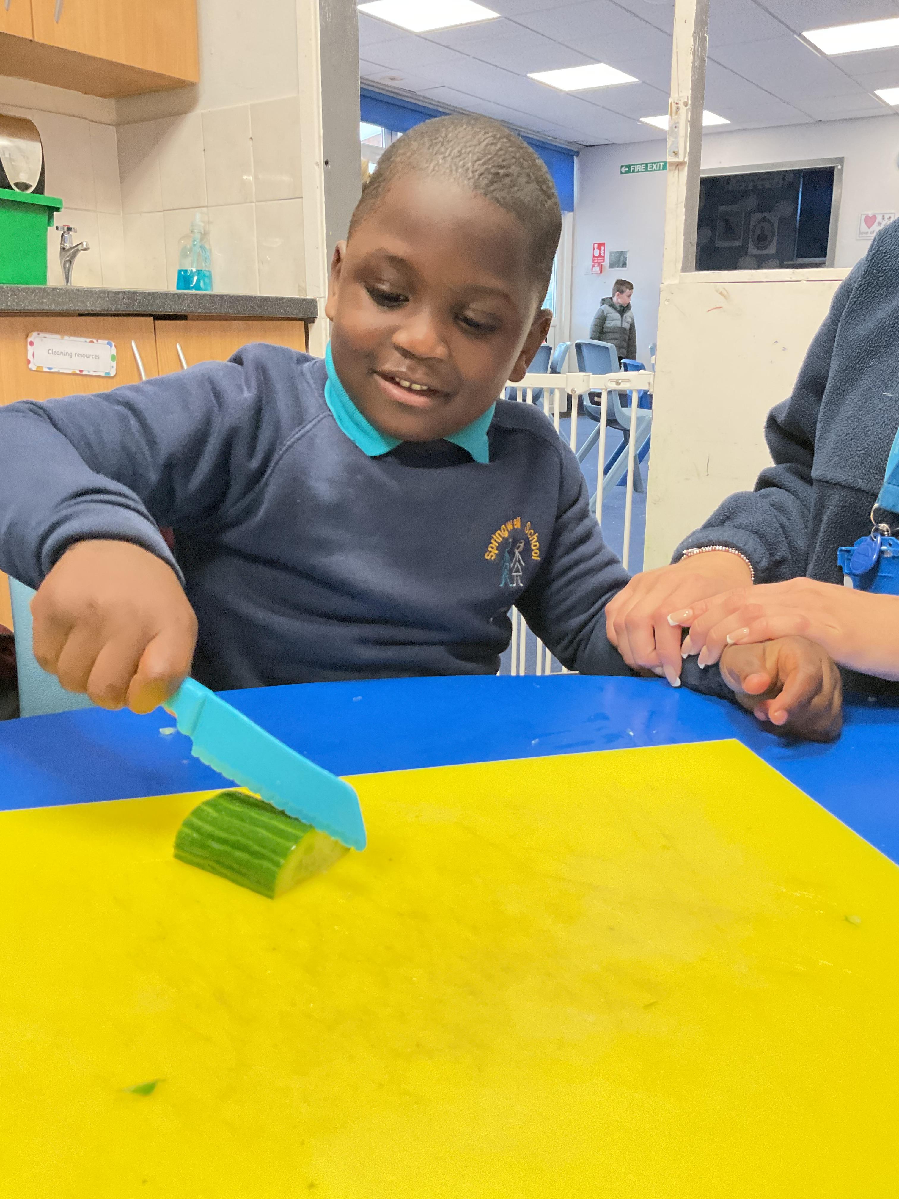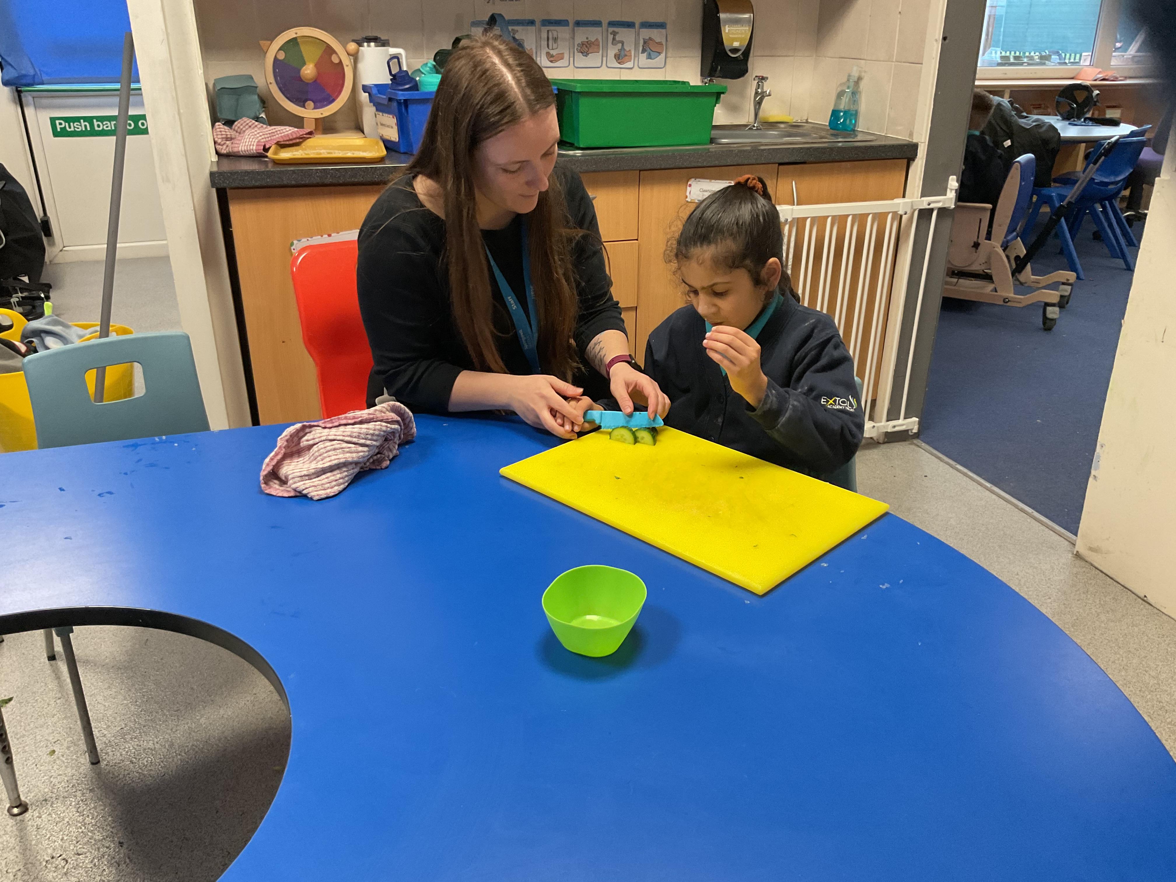 We have had a wonderful week filled with movement, sensory experiences and lots of focused learning. On Monday, the children took part in their rebound session, working hard on their gross motor skills and making great progress towards their individual targets. We also enjoyed some peaceful relaxation time, snuggling up with blankets and taking part in a calming sensory massage. It was a lovely opportunity for everyone to unwind and regulate. The children showed brilliant attention during our Attention Autism session, watching carefully and engaging beautifully throughout. Their focus and curiosity were fantastic. To finish the week, we explored two exciting tuff trays. One tray encouraged the children to try a variety of different foods, while the other supported their cutting skills as they chopped fruits and vegetables. We also had a sensory spring‑themed tray, where the children explored foods representing grass, sky, leaves, and clouds — a fun and creative way to learn through touch, smell and play.