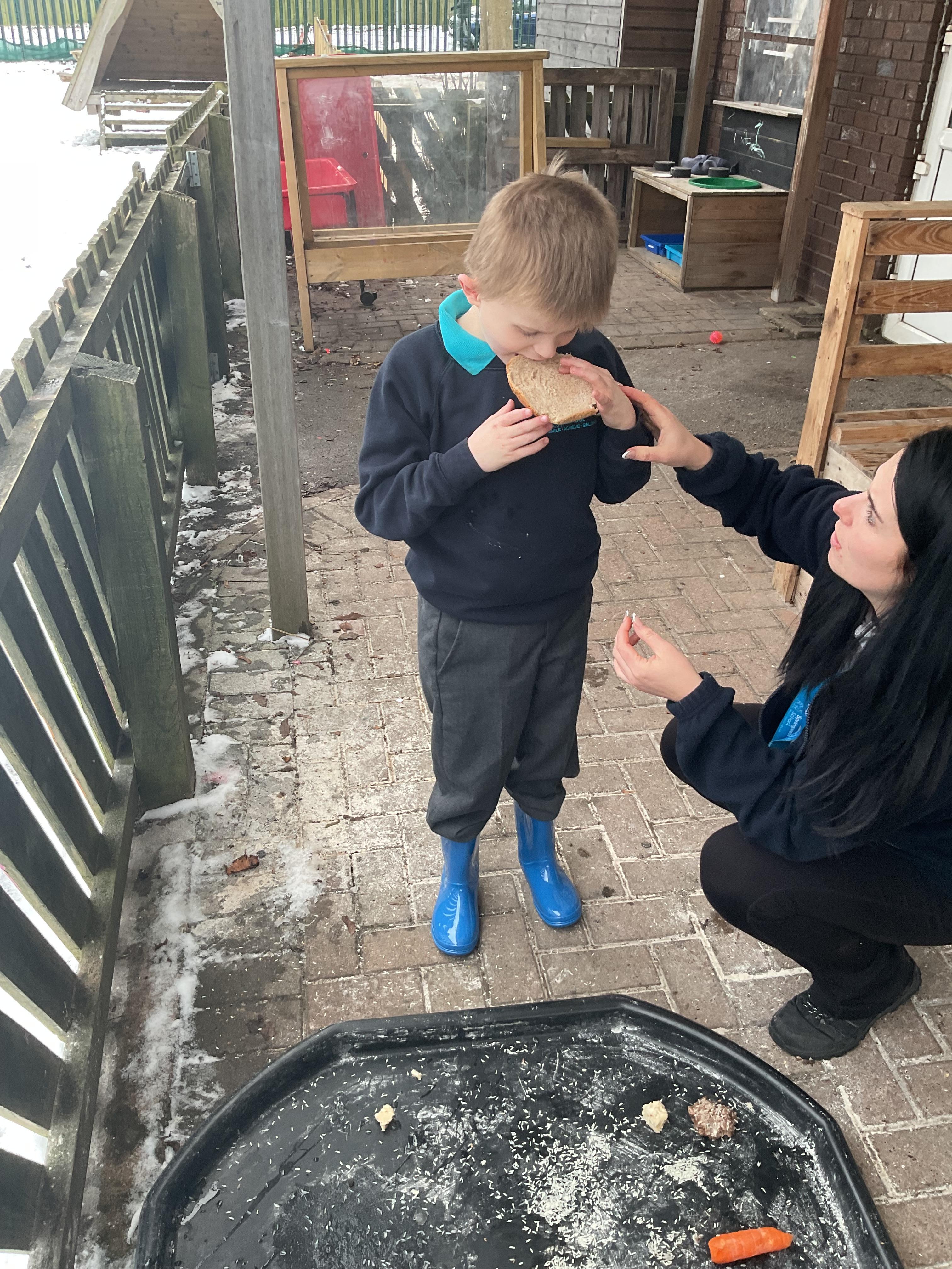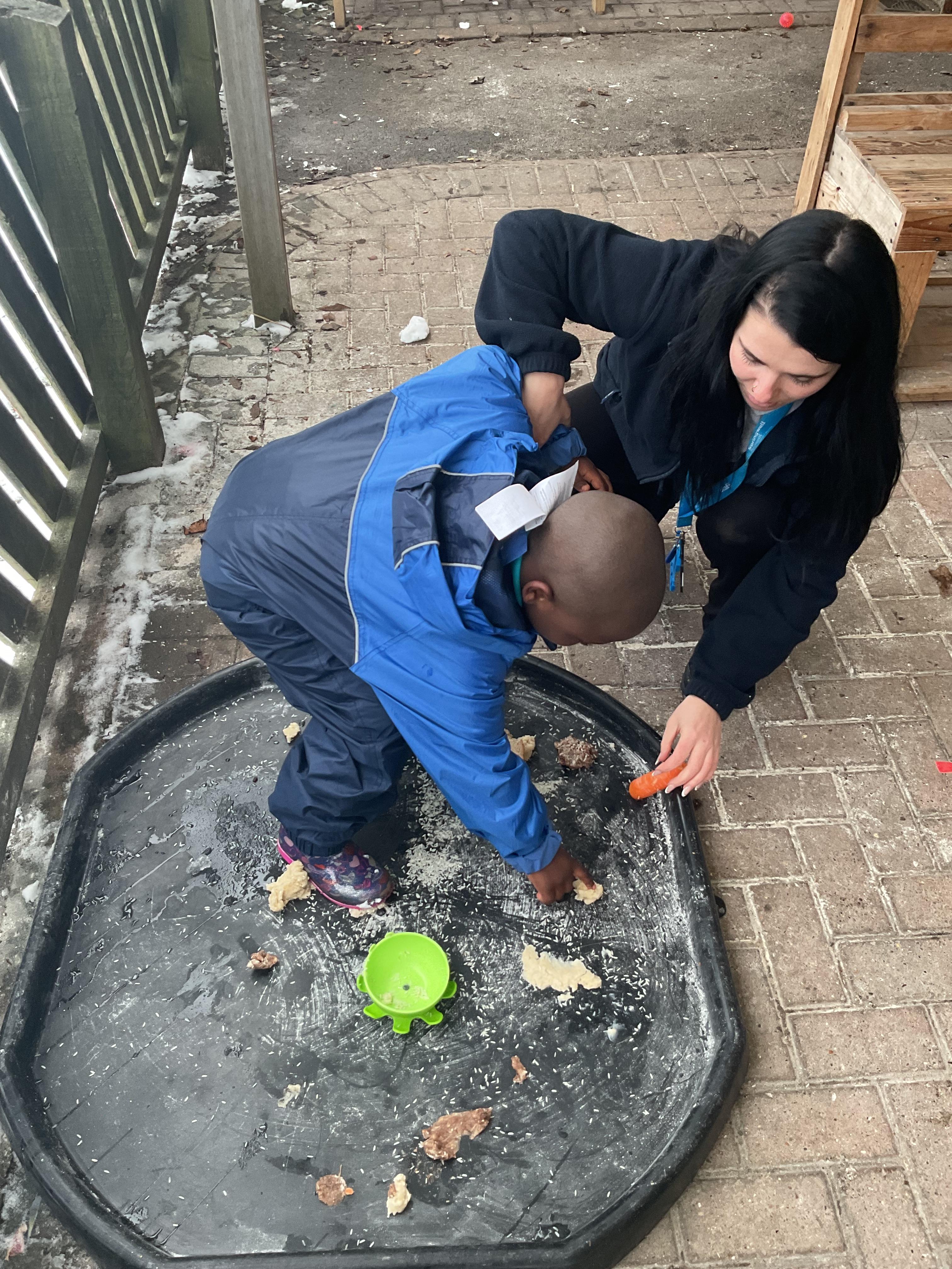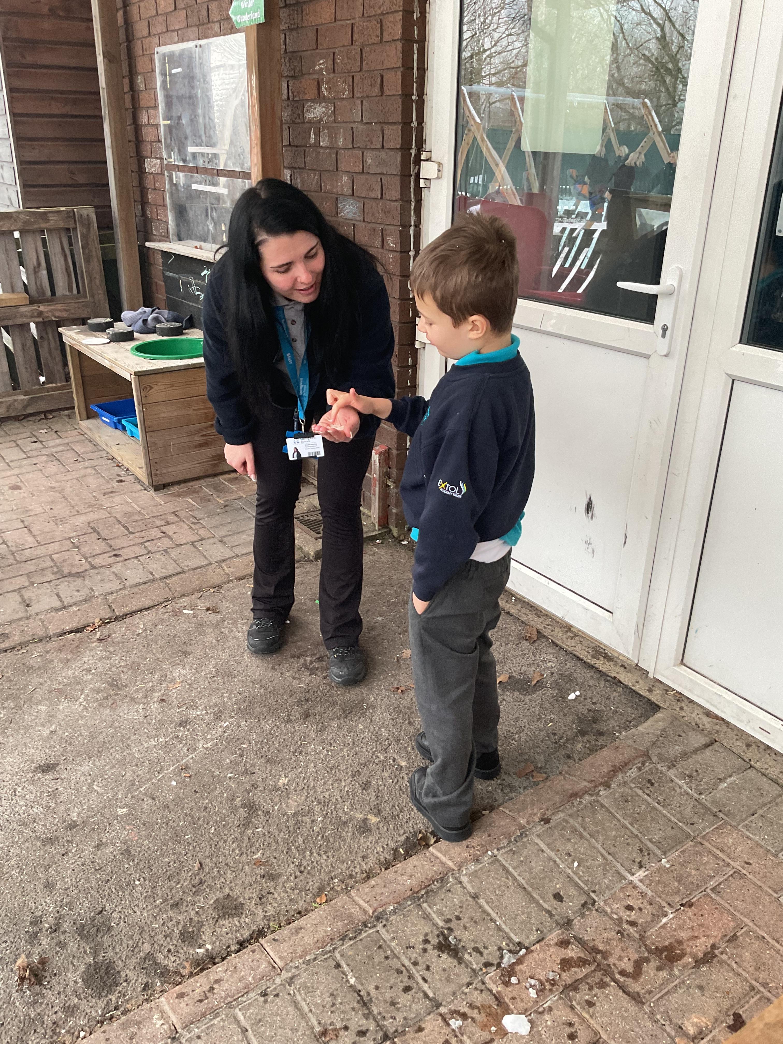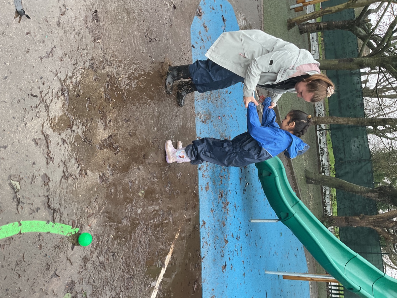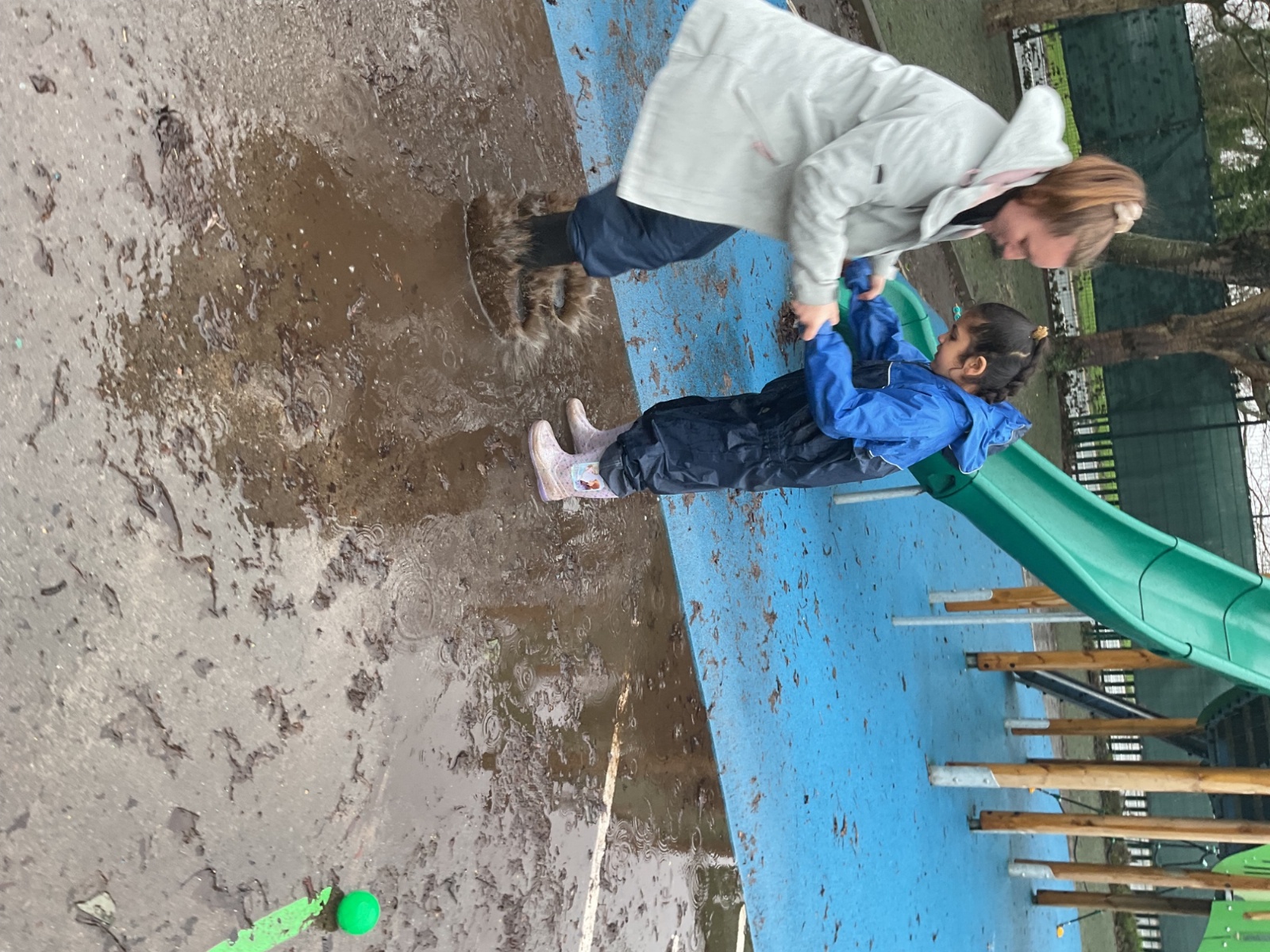 This week the children have been working incredibly hard creating a range of beautiful Valentine’s Day crafts to share with the special people in their lives. We also enjoyed a lovely Valentine’s Day coffee morning, where families joined us for a cosy celebration. The children were so excited to sit with their parents and carers, enjoy some delicious cake, and present their Valentine’s crafts. It was wonderful to see so many smiles. Despite the rainy weather, we’ve still been making the most of our outdoor adventures. Wrapped up snug in our waterproofs, the children explored jumping, splashing, and exploring the wet weather. The little rain never stops us from having fun and learning outdoors.