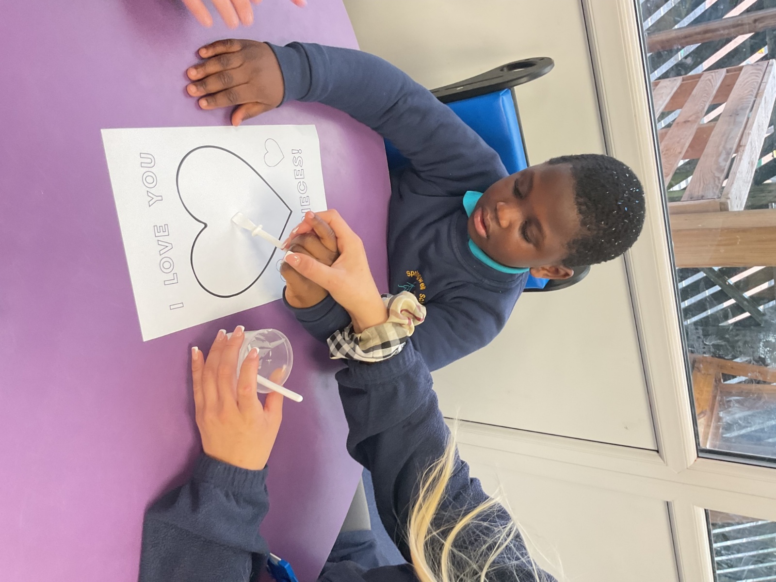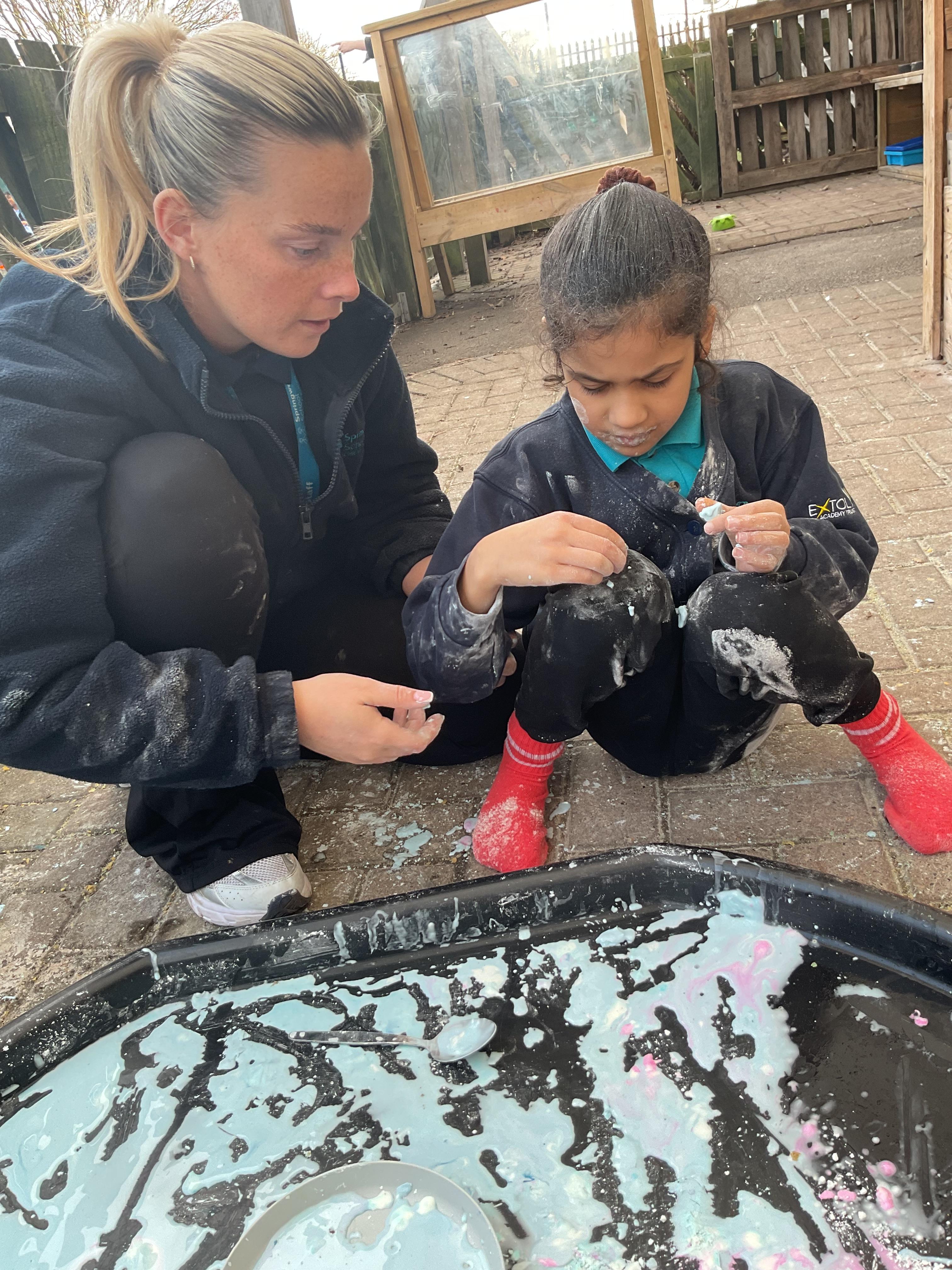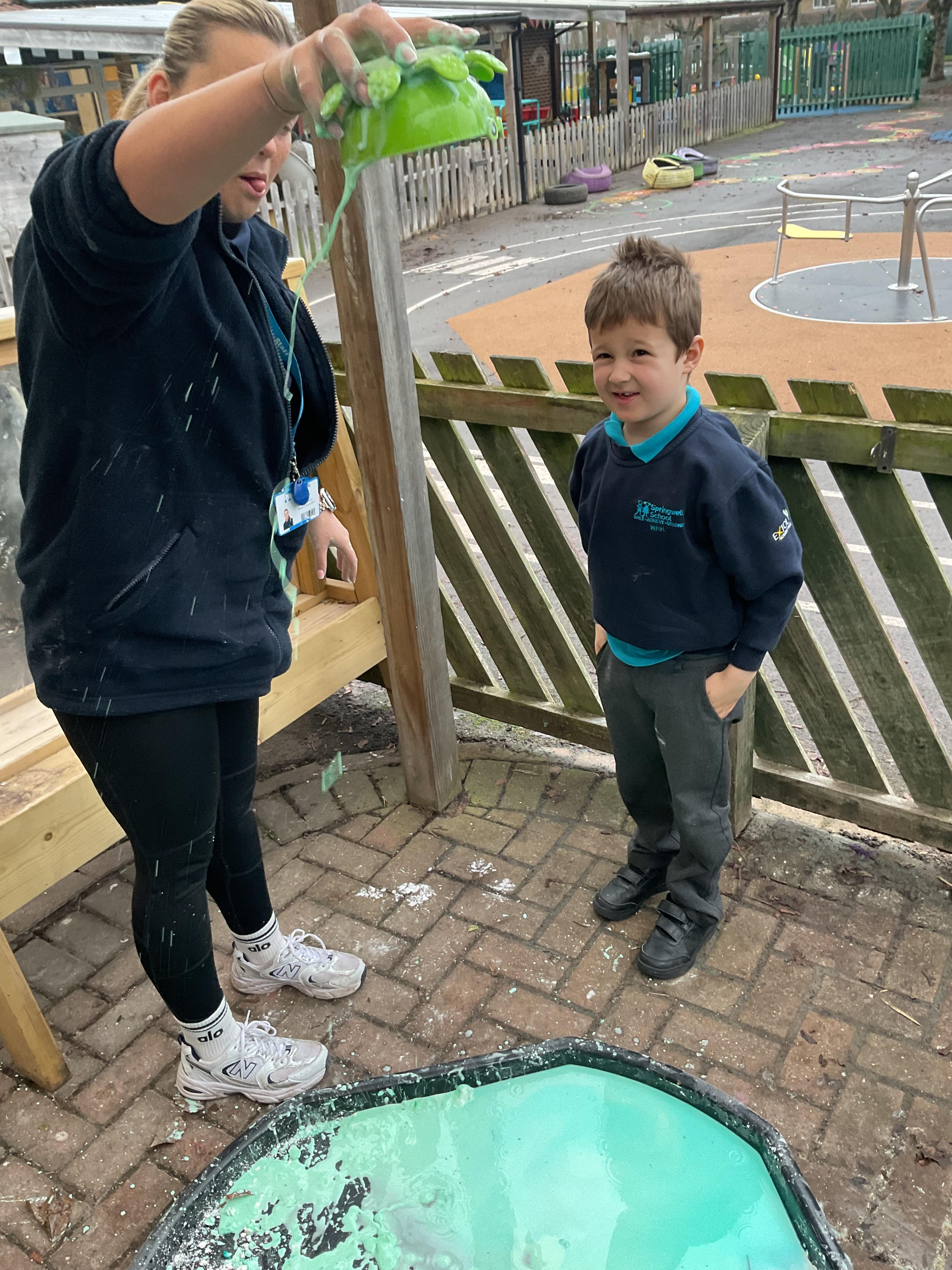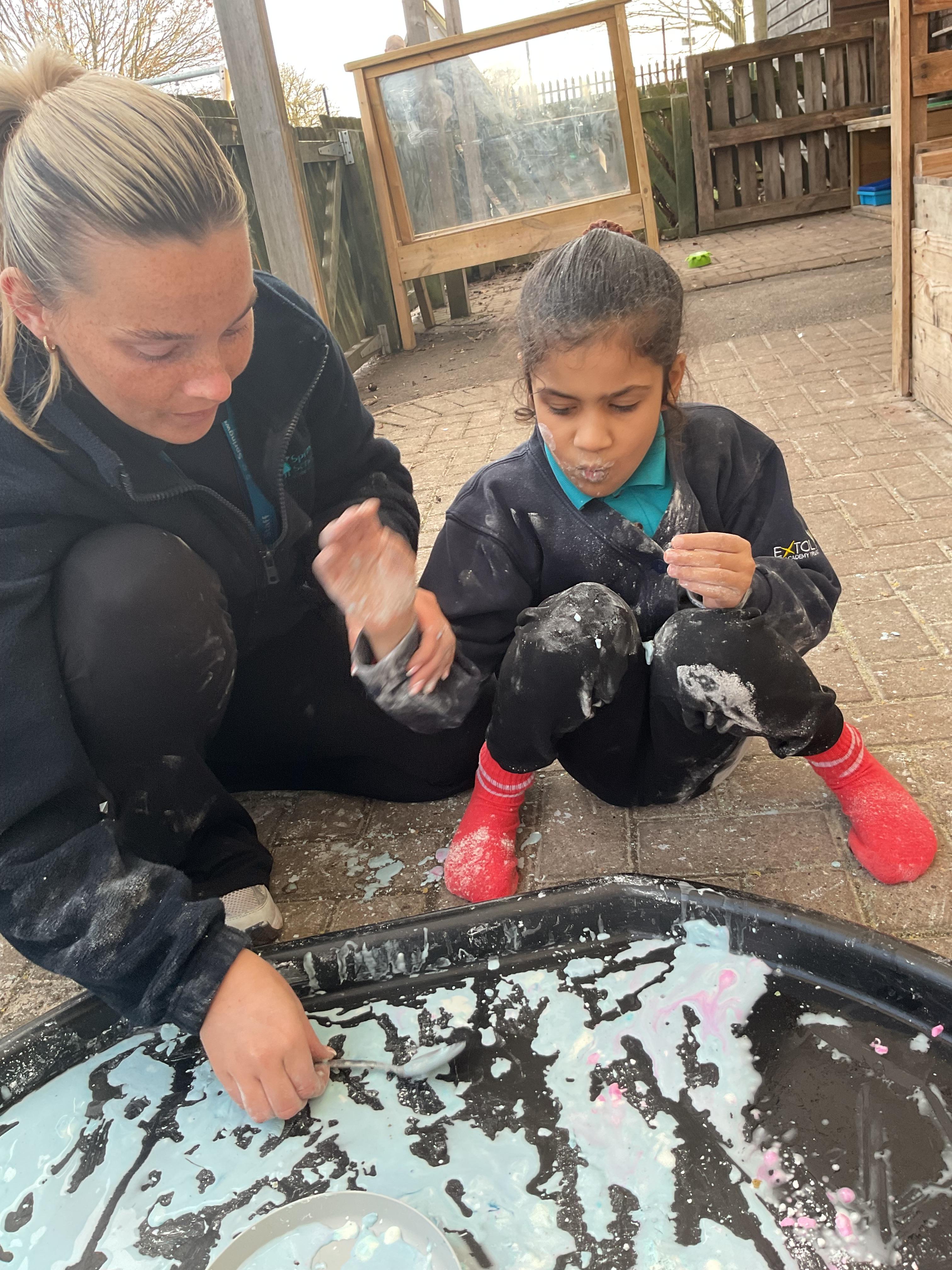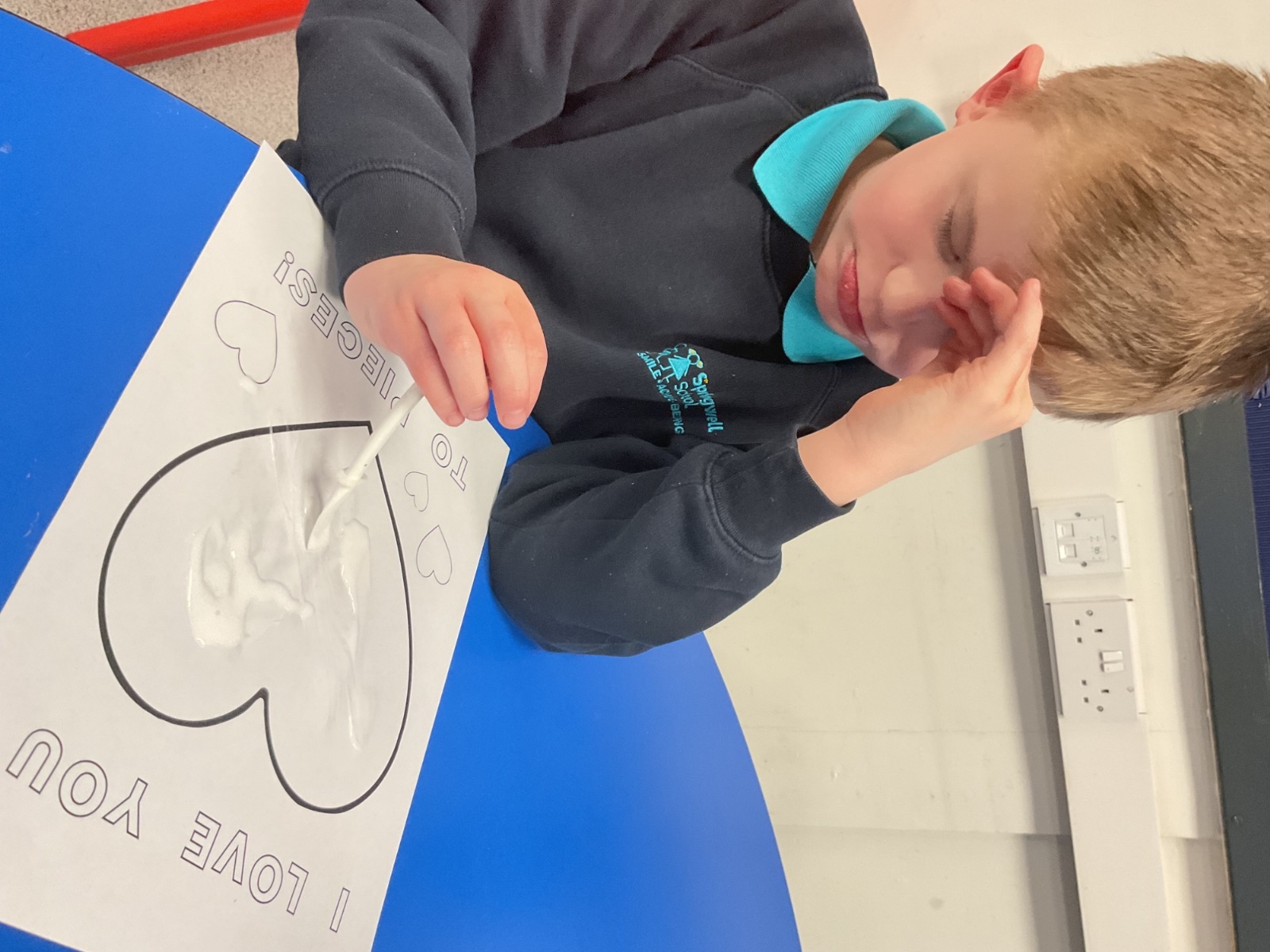 This week the children have been working incredibly hard creating a range of beautiful Valentine’s Day crafts to share with the special people in their lives. We also enjoyed a lovely Valentine’s Day coffee morning, where families joined us for a cosy celebration. The children were so excited to sit with their parents and carers, enjoy some delicious cake, and present their Valentine’s crafts. It was wonderful to see so many smiles. Despite the rainy weather, we’ve still been making the most of our outdoor adventures. Wrapped up snug in our waterproofs, the children explored jumping, splashing, and exploring the wet weather. The little rain never stops us from having fun and learning outdoors.