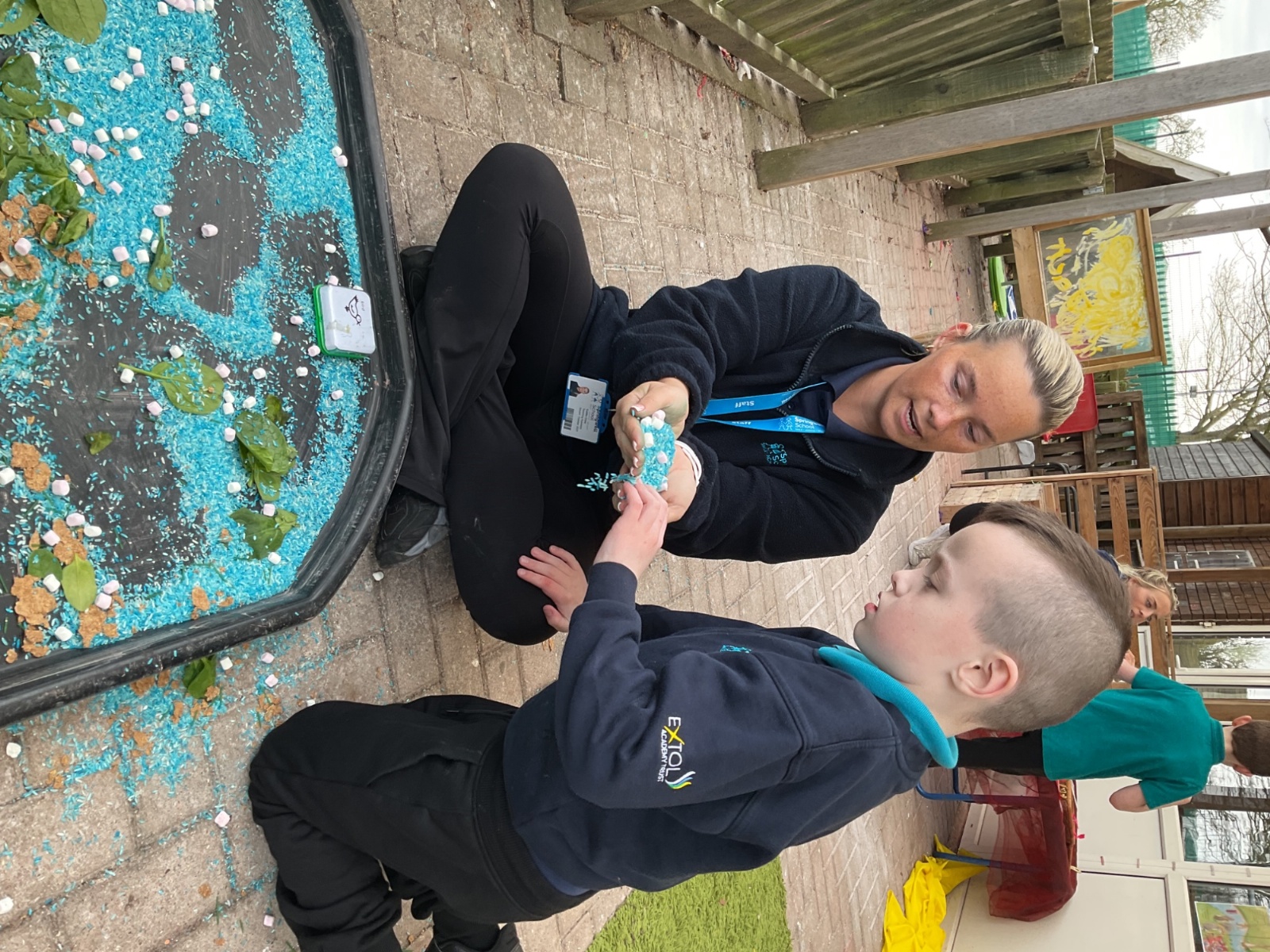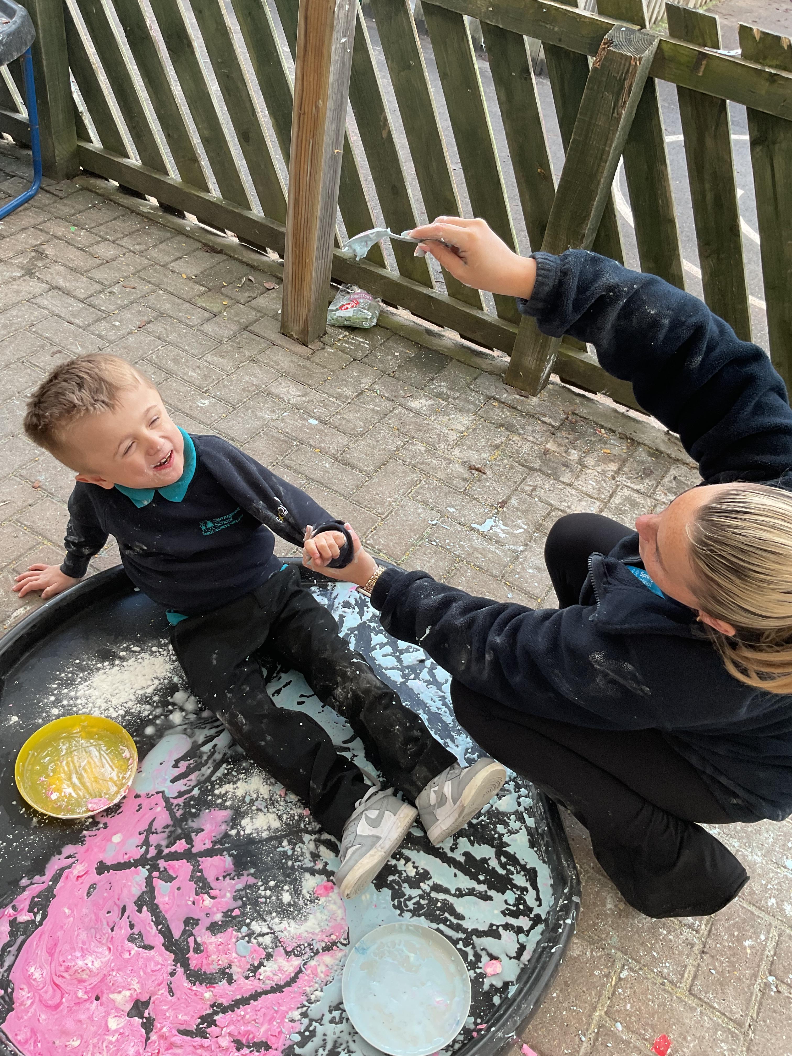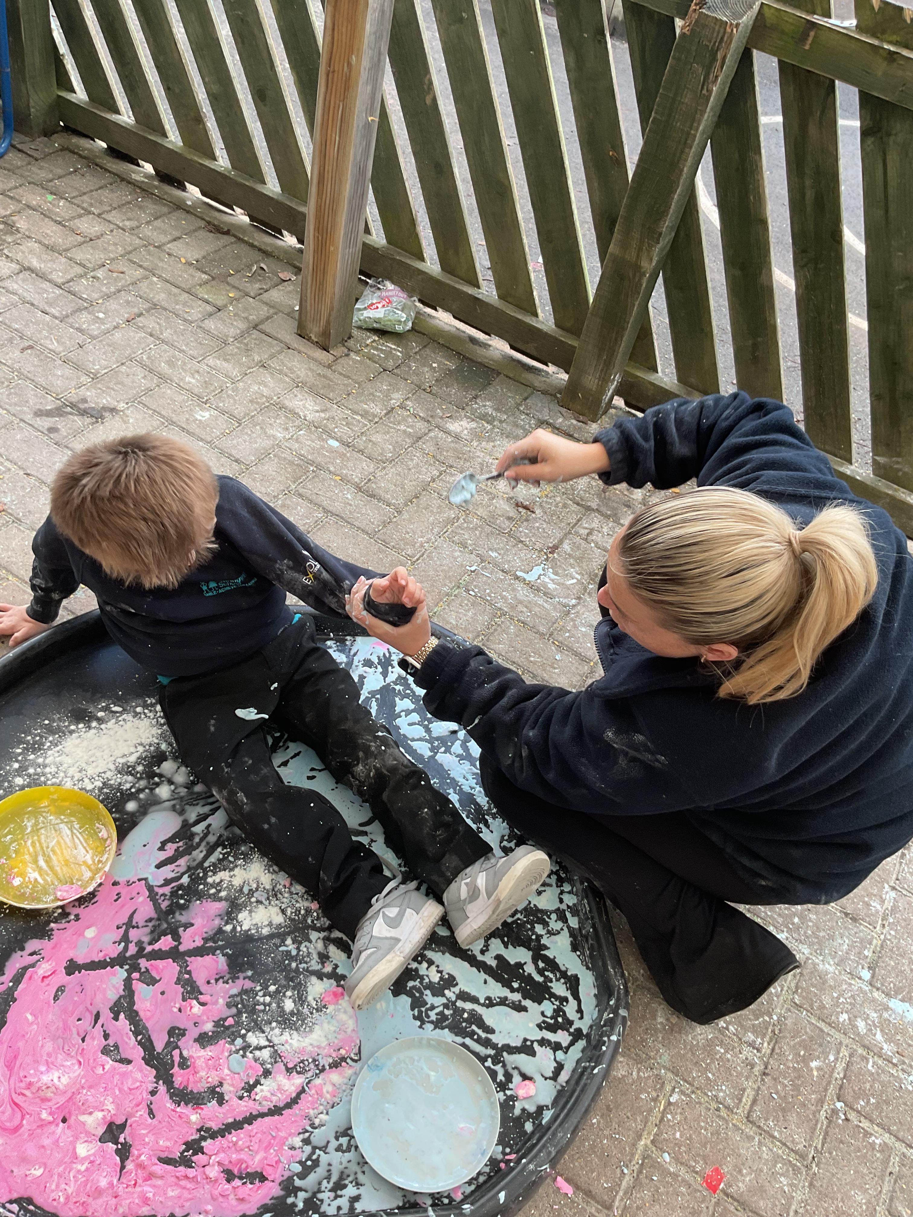 We’ve had a fantastic week filled with movement, creativity and meaningful exploration. The children began the week with their Monday rebound session, working hard on their gross motor skills and making great progress towards their individual targets.Throughout the week, the children enjoyed creating lots of Easter‑themed printing crafts, using different tools and colours to make beautiful seasonal artwork. We also explored a variety of tuff trays, including one focused on the Palm Sunday cross. Through sensory play, the children learned about the Easter story using different foods and drinks to represent key parts of the celebration. This hands‑on approach helped bring the story to life in a way that was engaging and accessible for everyone. Have a lovely weekend everyone.
