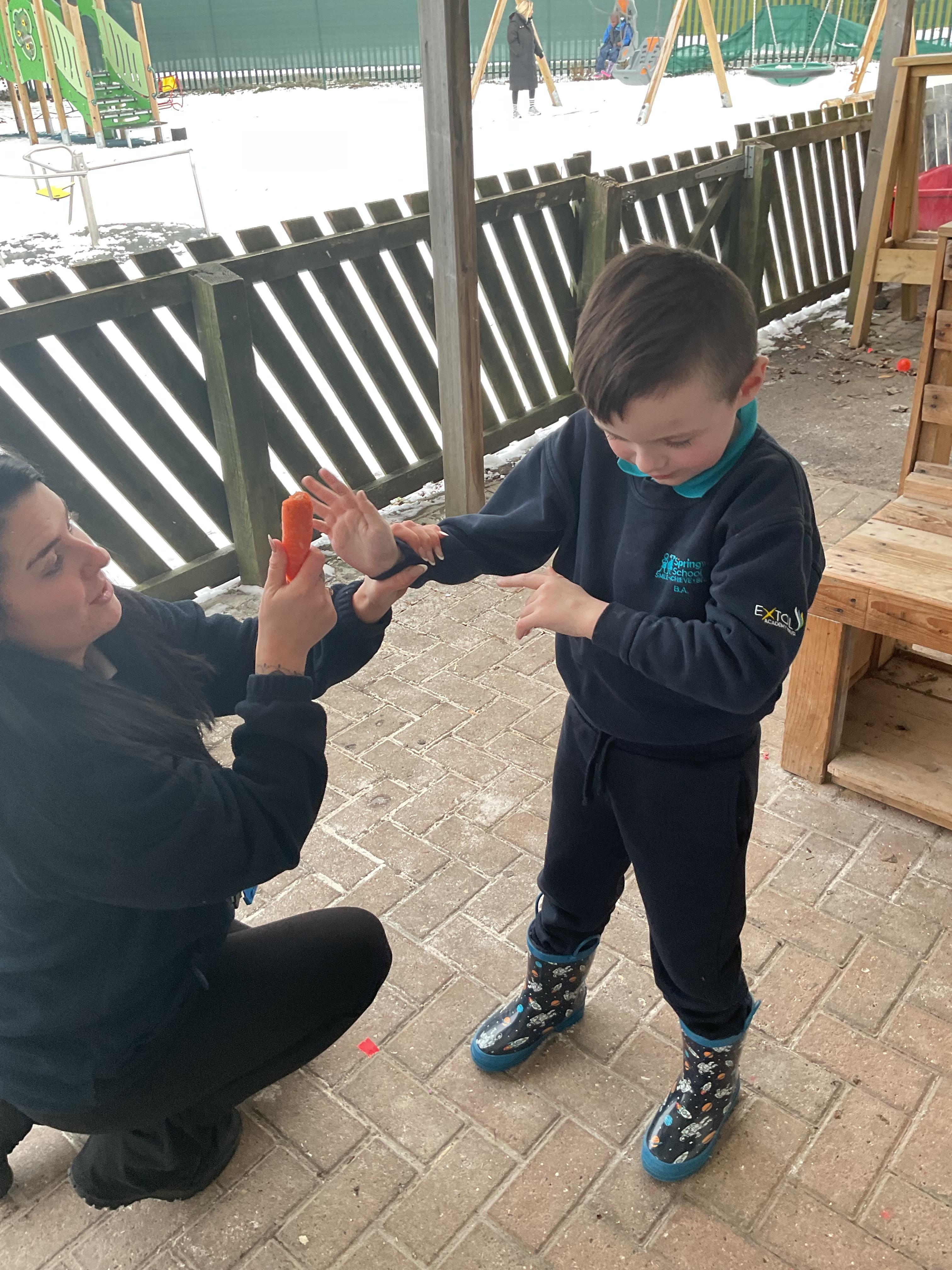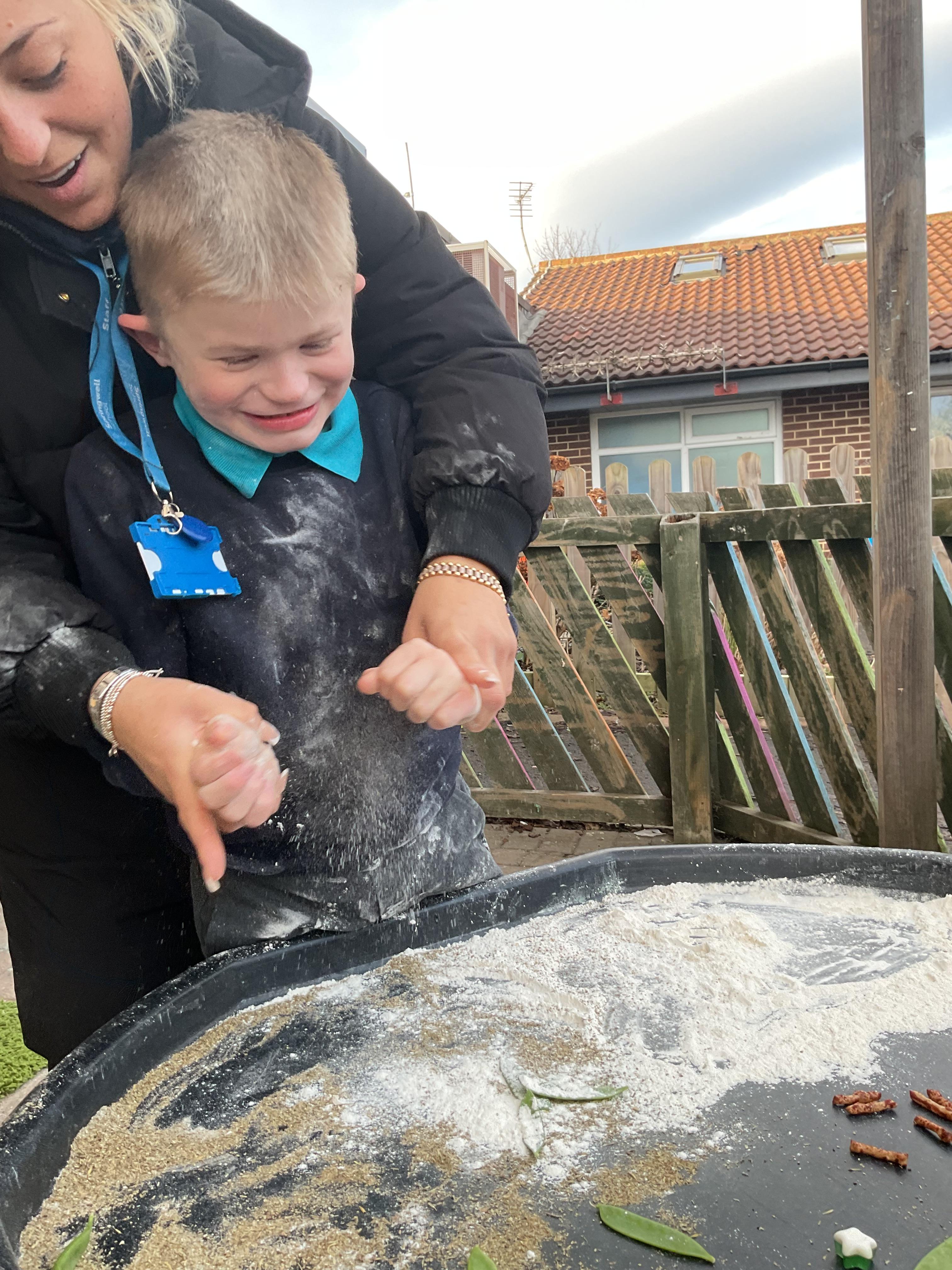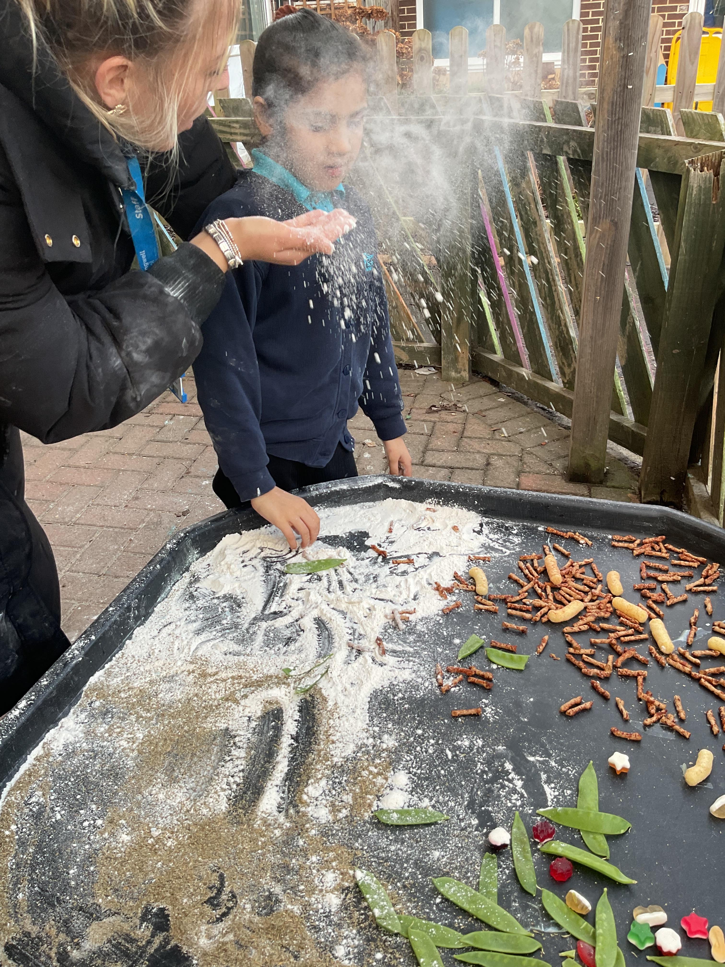 What a wonderful first week back at school. Our colour of the week was yellow and the children had a brilliant time exploring the community to spot everything yellow around us. We found bright yellow flowers, a yellow signpost and even a yellow car. we even manged to see the big, bright, yellow sun on our walk. We also celebrated a very special birthday in our class. Everyone joined in singing Happy Birthday and we enjoyed some delicious cake together. On Thursday, we celebrated World Book Day in the cosiest way possible. The children arrived in their pyjamas with their favourite blankets, ready for a day filled with stories. We shared our gifted World Book Day books and spent time reading together. Outside, we explored World Book Day–themed tuff trays, encouraging imagination, sensory play and plenty of fun.