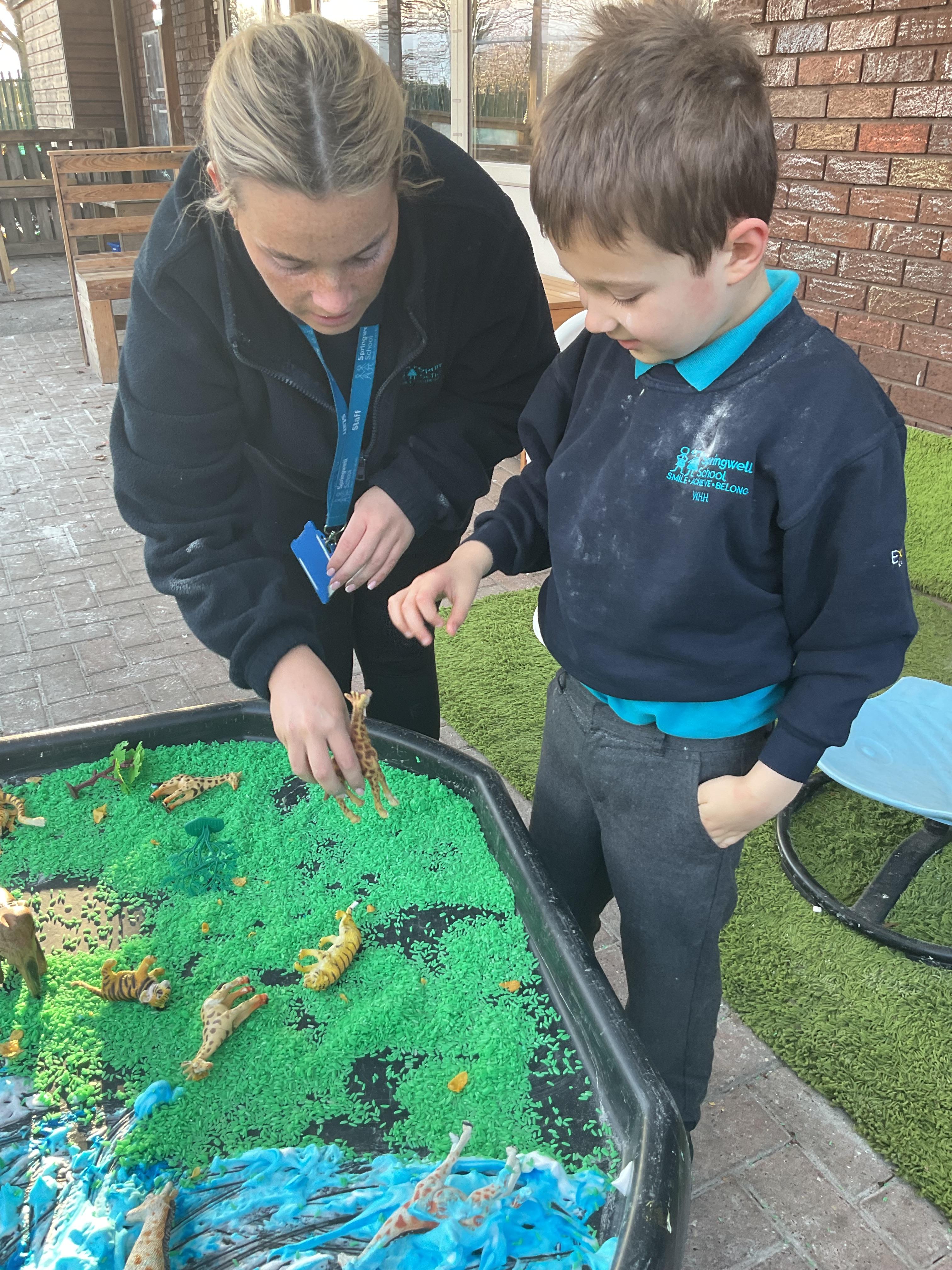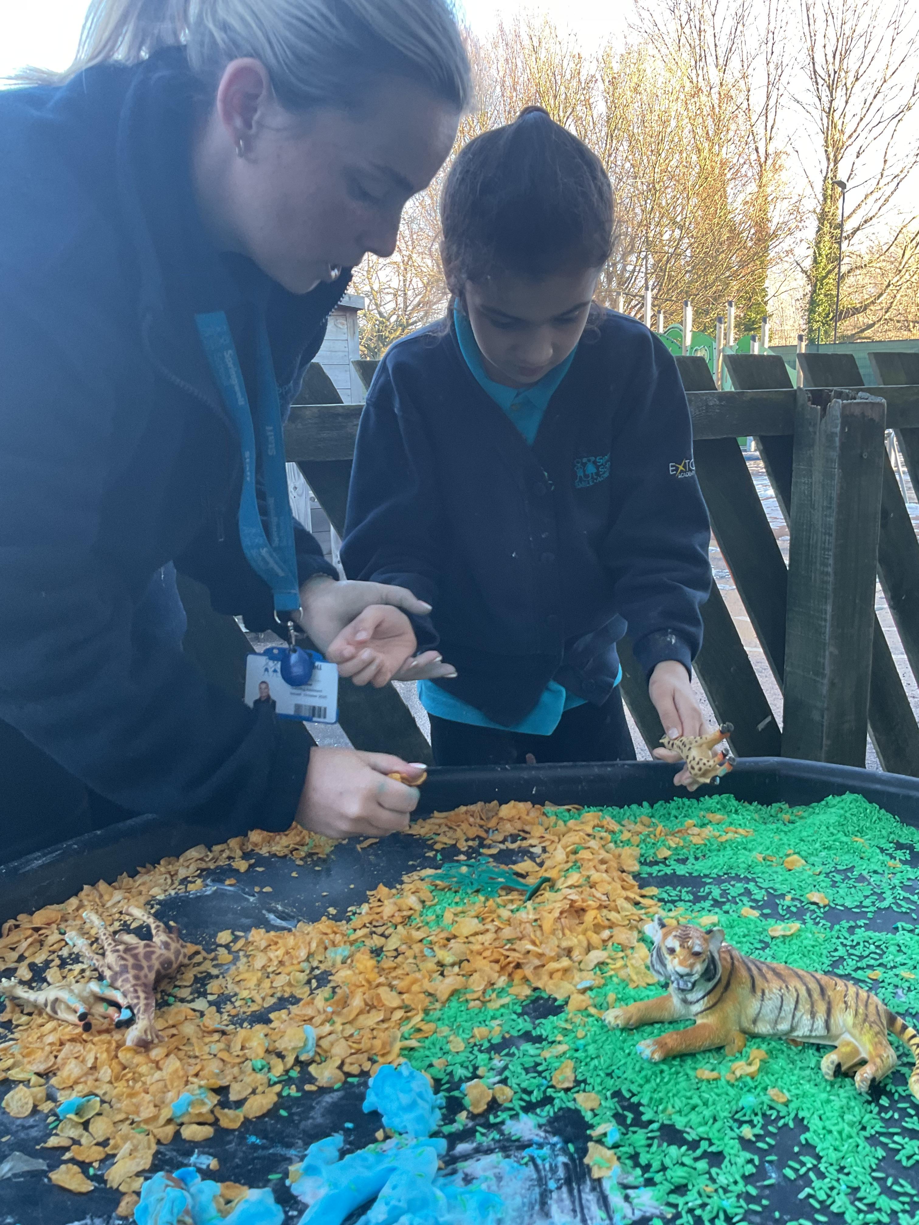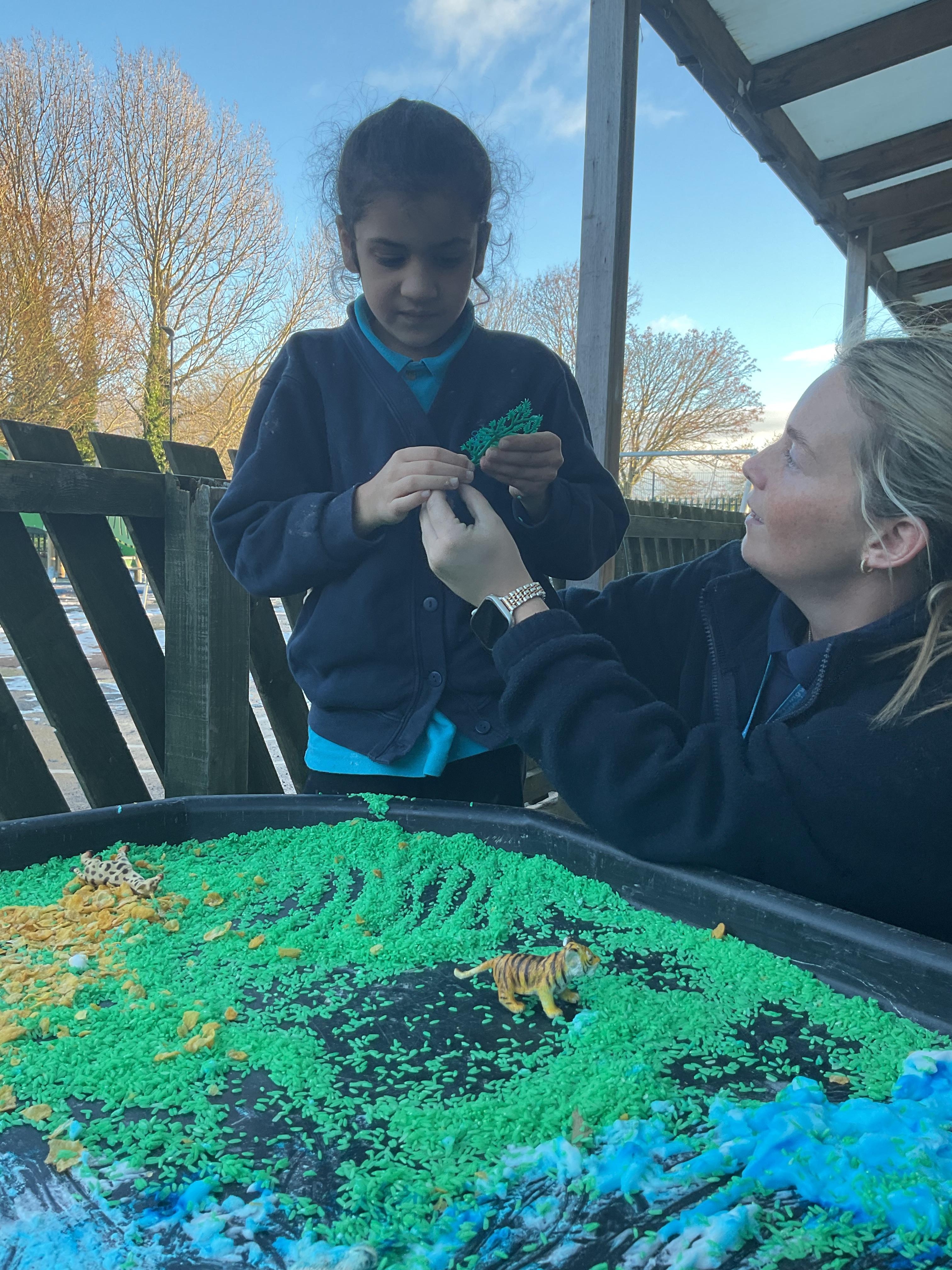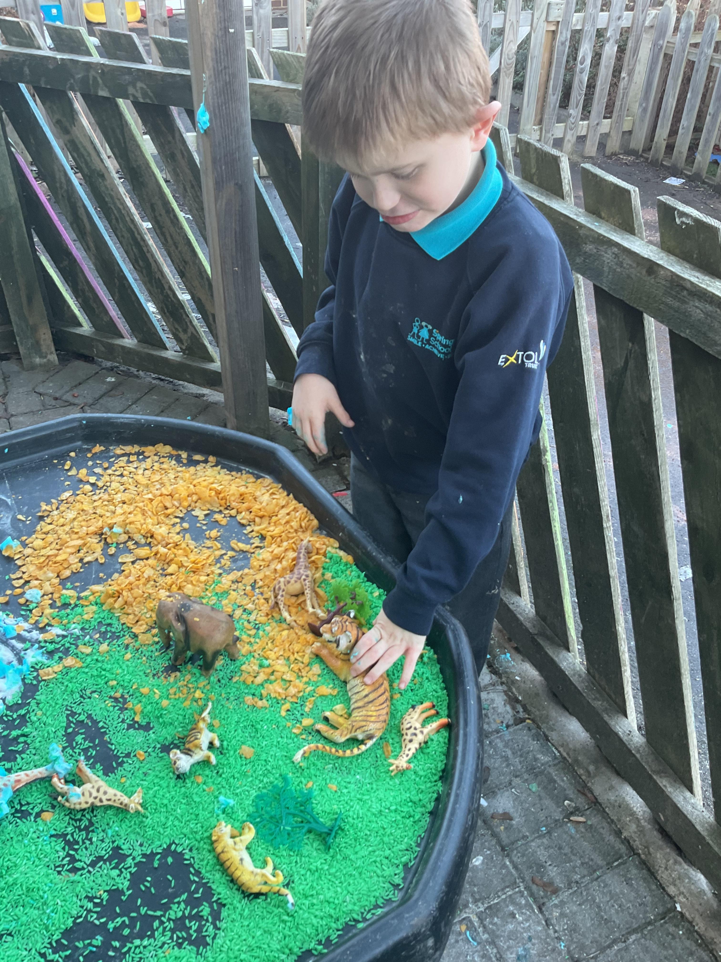 What a wonderful first week back at school. Our colour of the week was yellow and the children had a brilliant time exploring the community to spot everything yellow around us. We found bright yellow flowers, a yellow signpost and even a yellow car. we even manged to see the big, bright, yellow sun on our walk. We also celebrated a very special birthday in our class. Everyone joined in singing Happy Birthday and we enjoyed some delicious cake together. On Thursday, we celebrated World Book Day in the cosiest way possible. The children arrived in their pyjamas with their favourite blankets, ready for a day filled with stories. We shared our gifted World Book Day books and spent time reading together. Outside, we explored World Book Day–themed tuff trays, encouraging imagination, sensory play and plenty of fun.