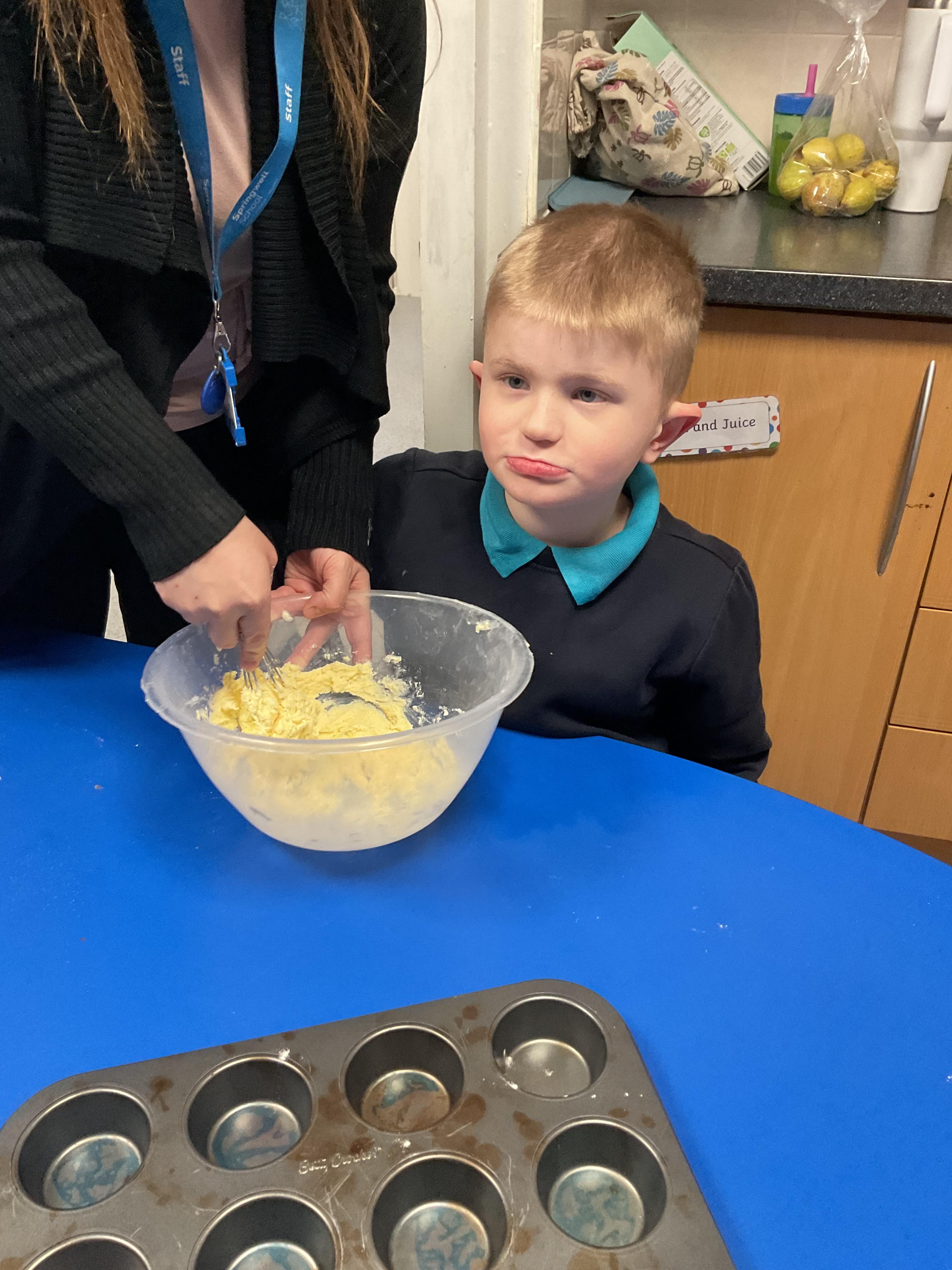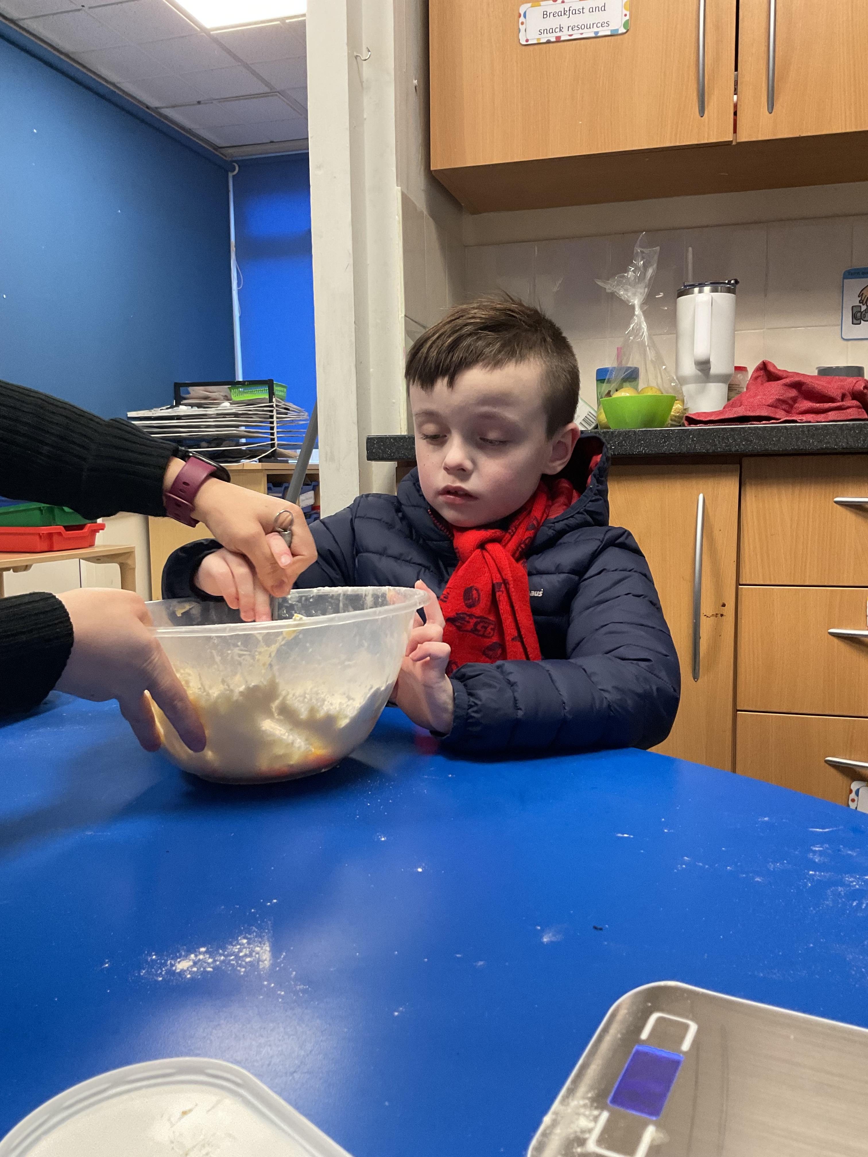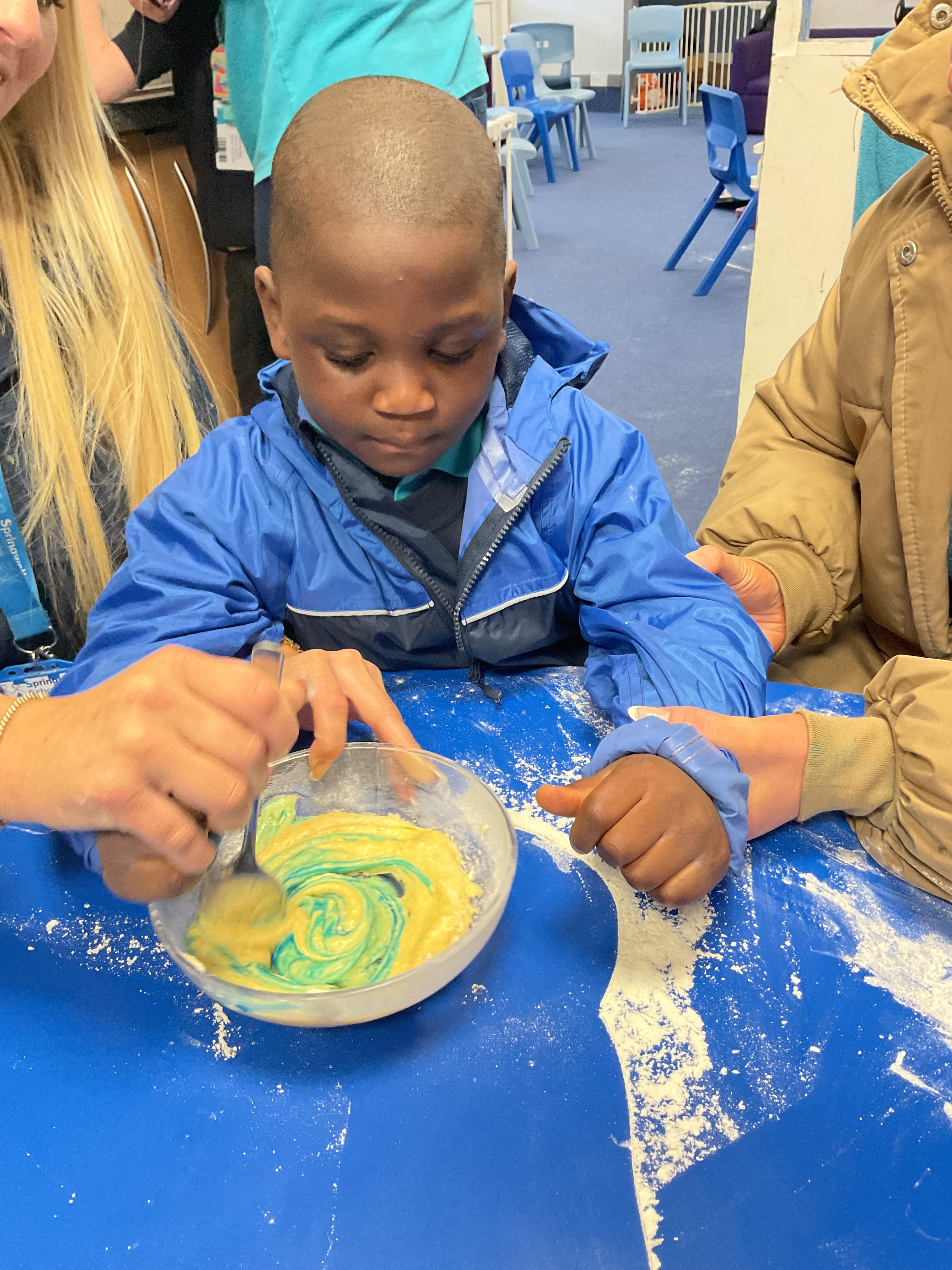 To finish the week on a delicious note, the children baked marble cakes, practising their mixing, pouring, and turn‑taking skills.