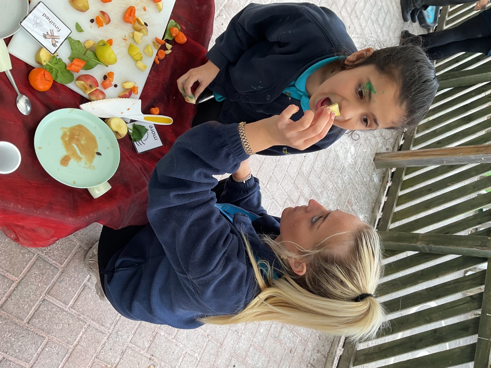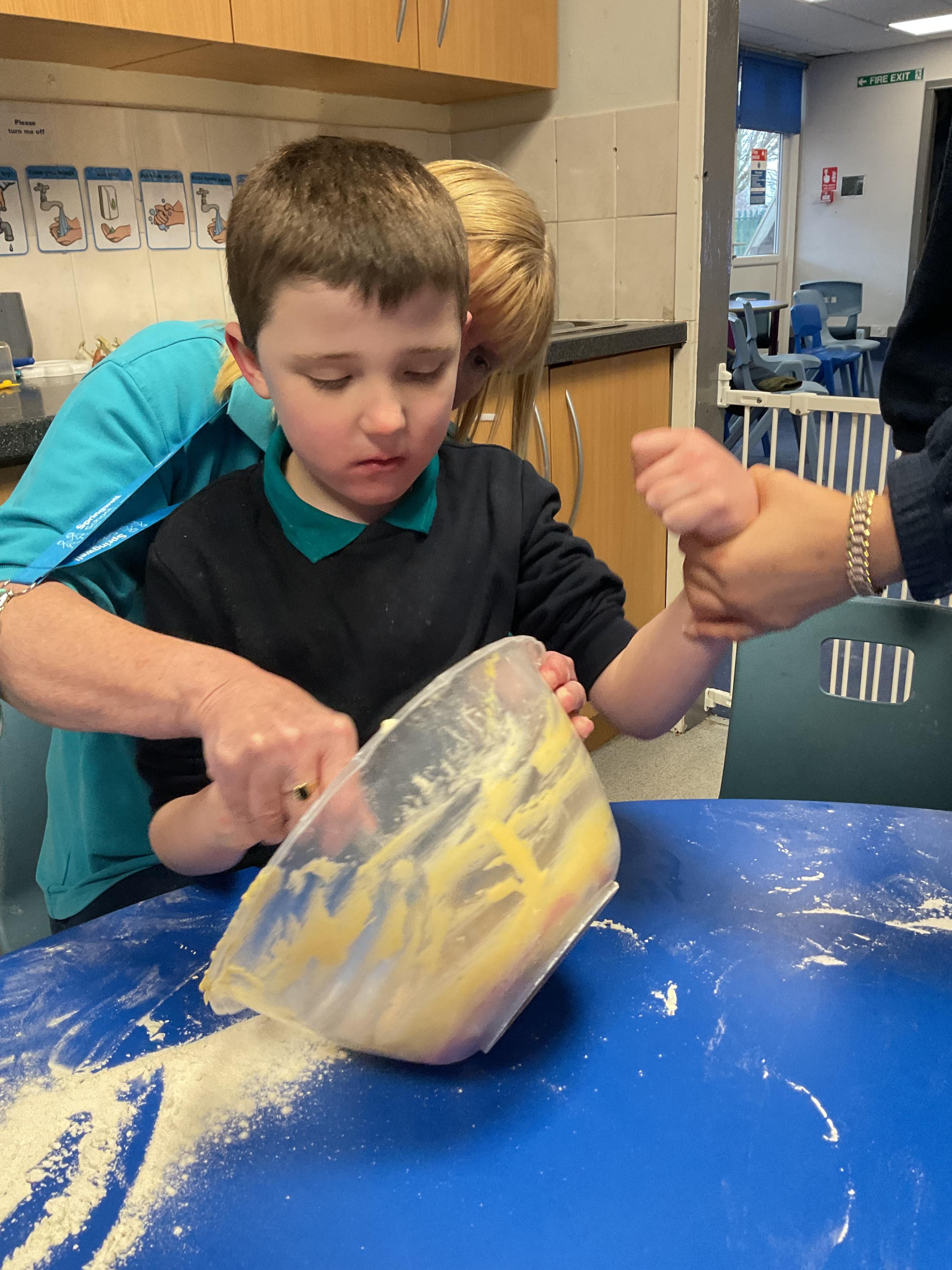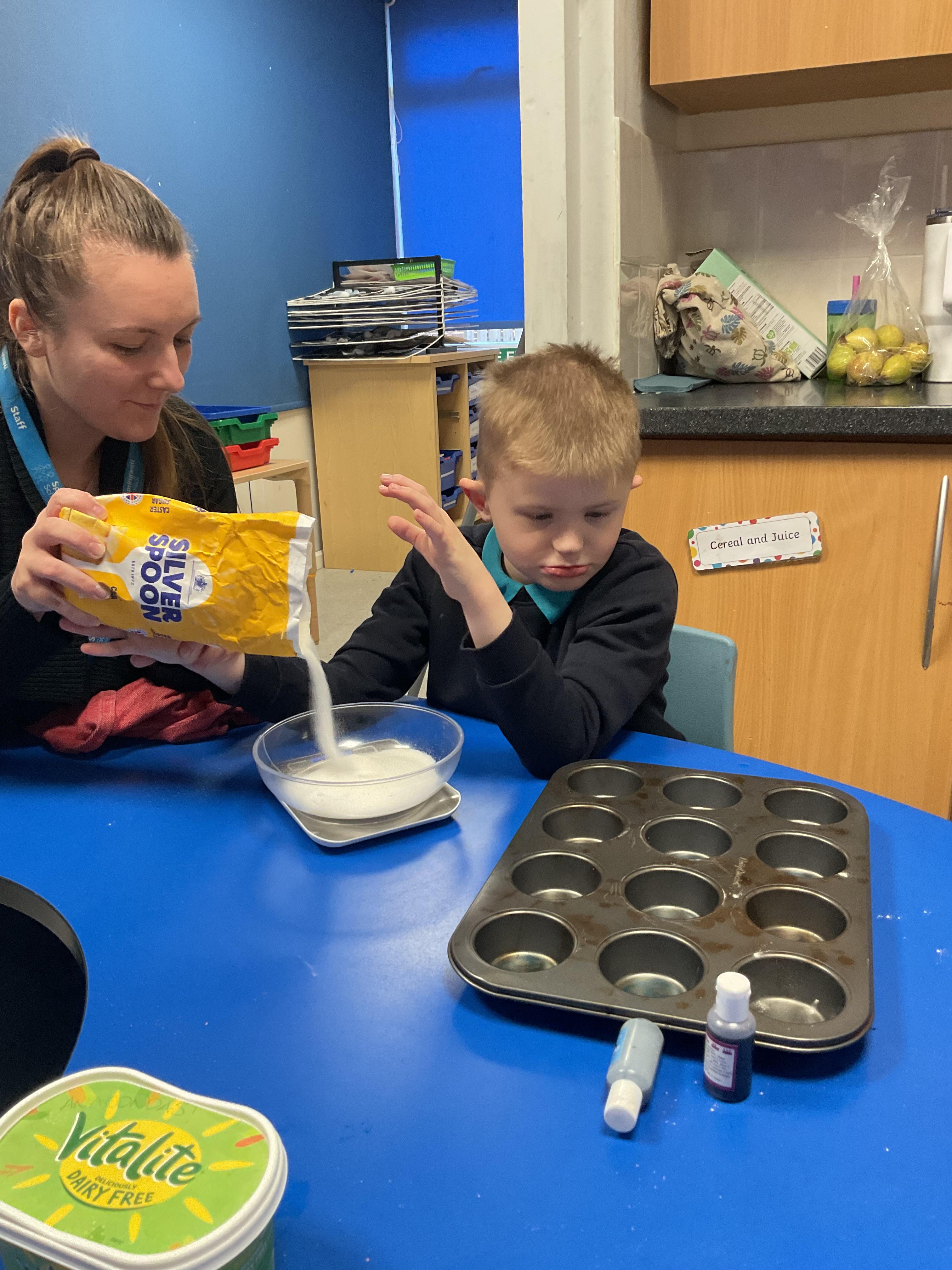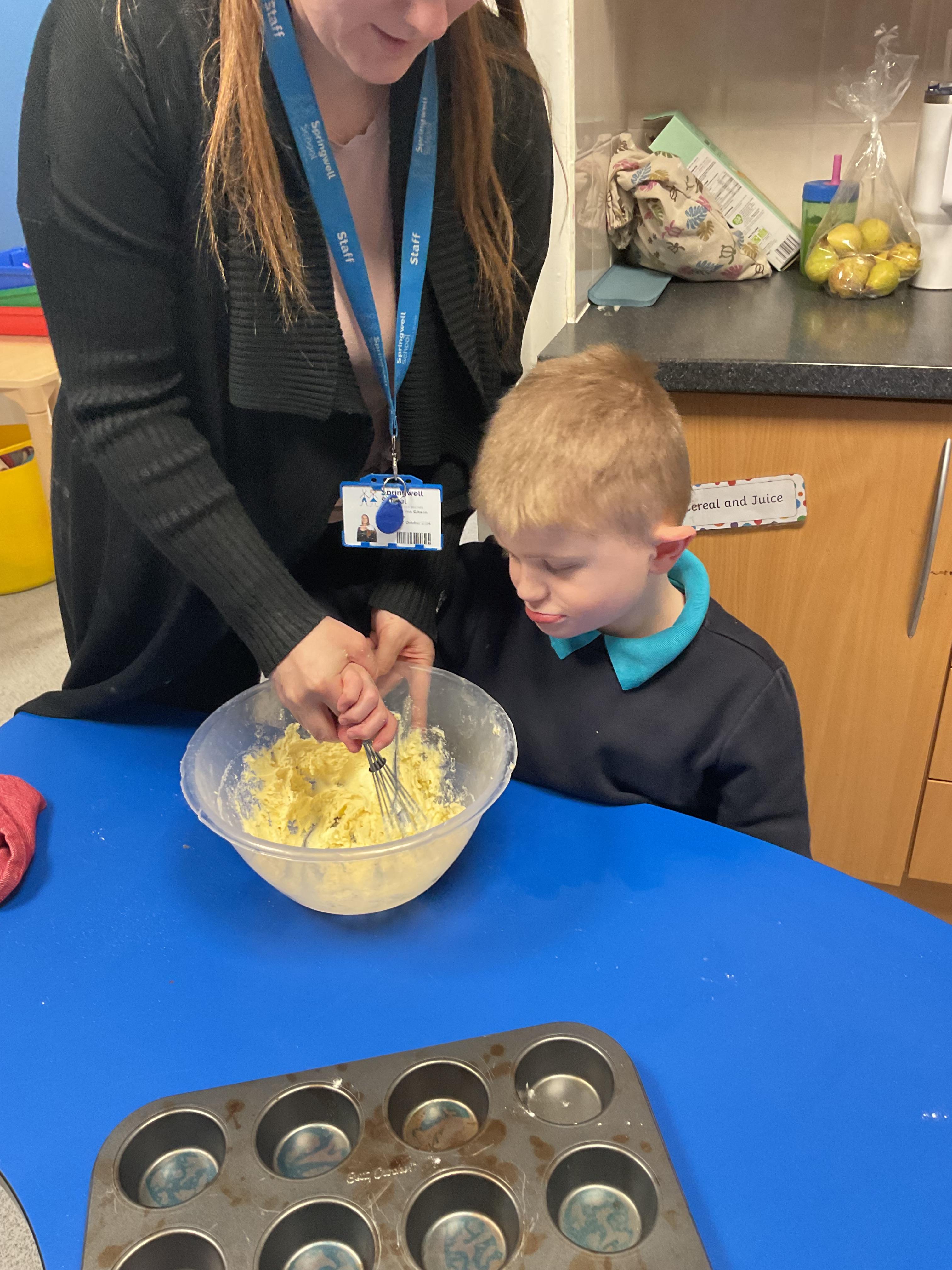 To finish the week on a delicious note, the children baked marble cakes, practising their mixing, pouring, and turn‑taking skills.