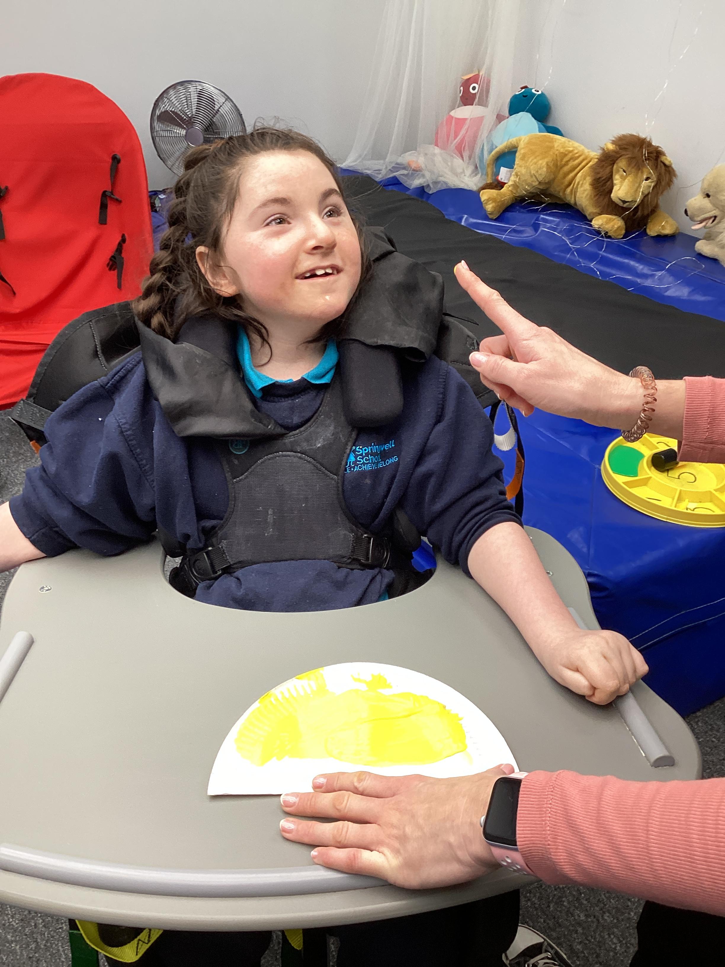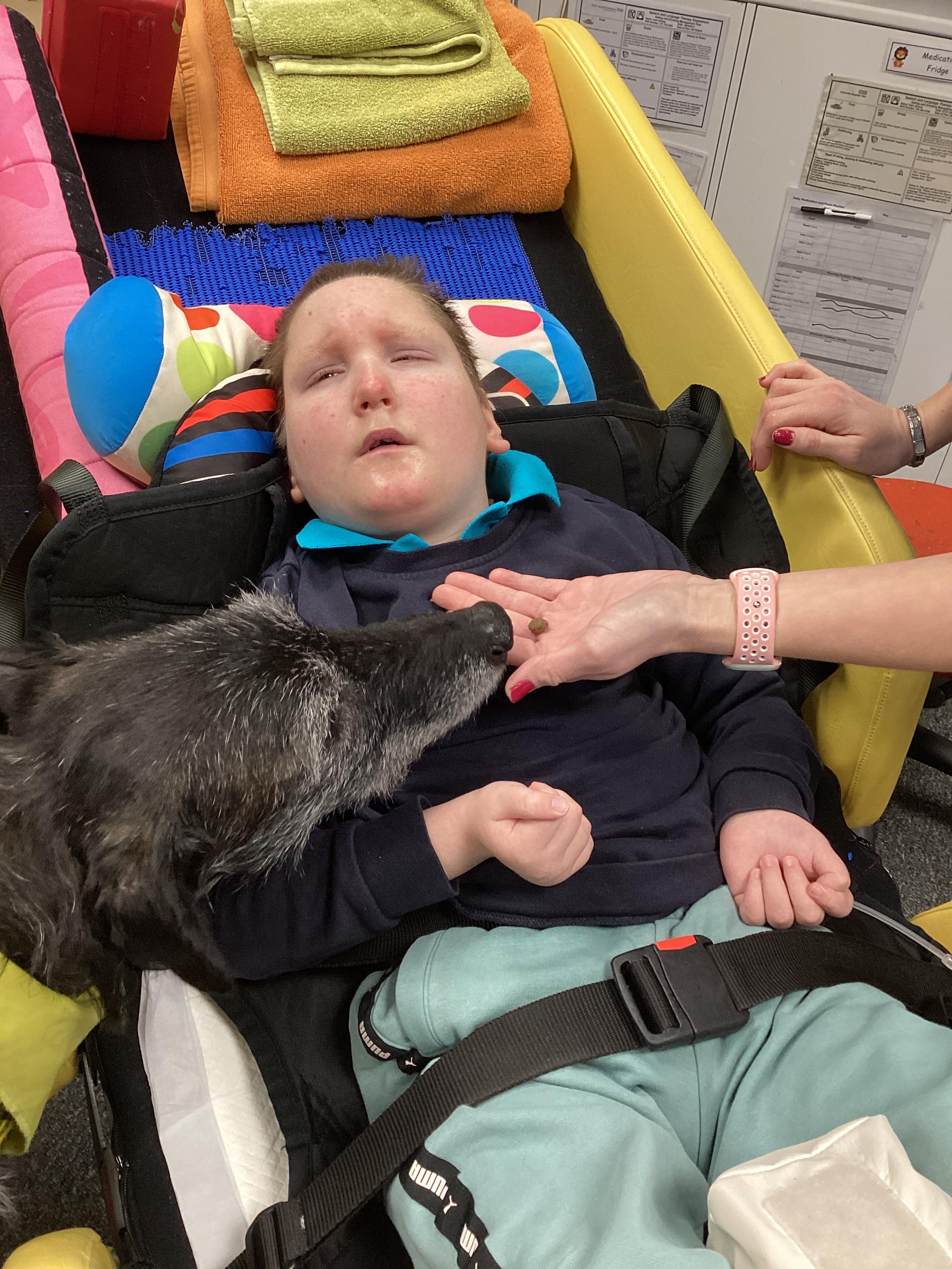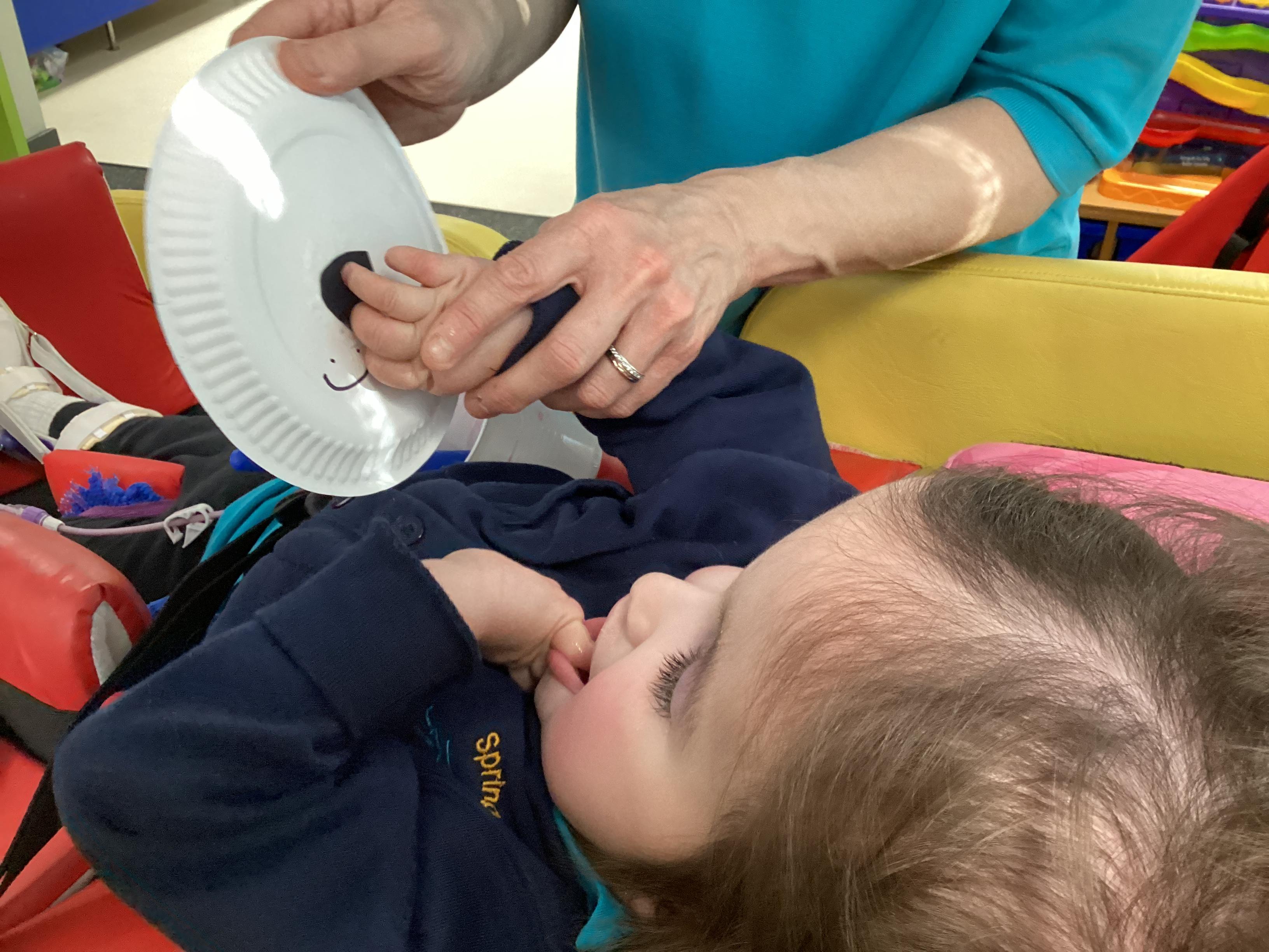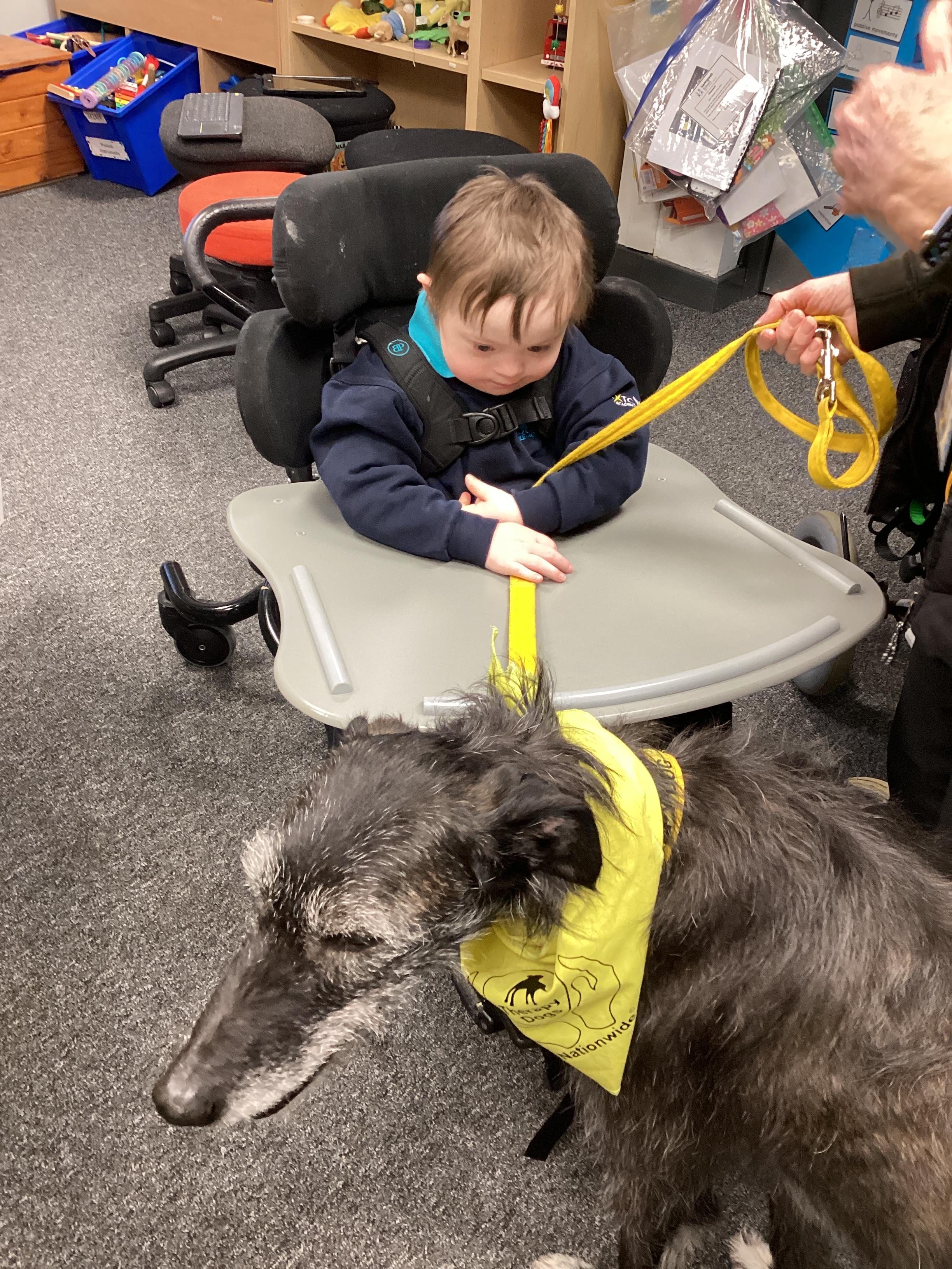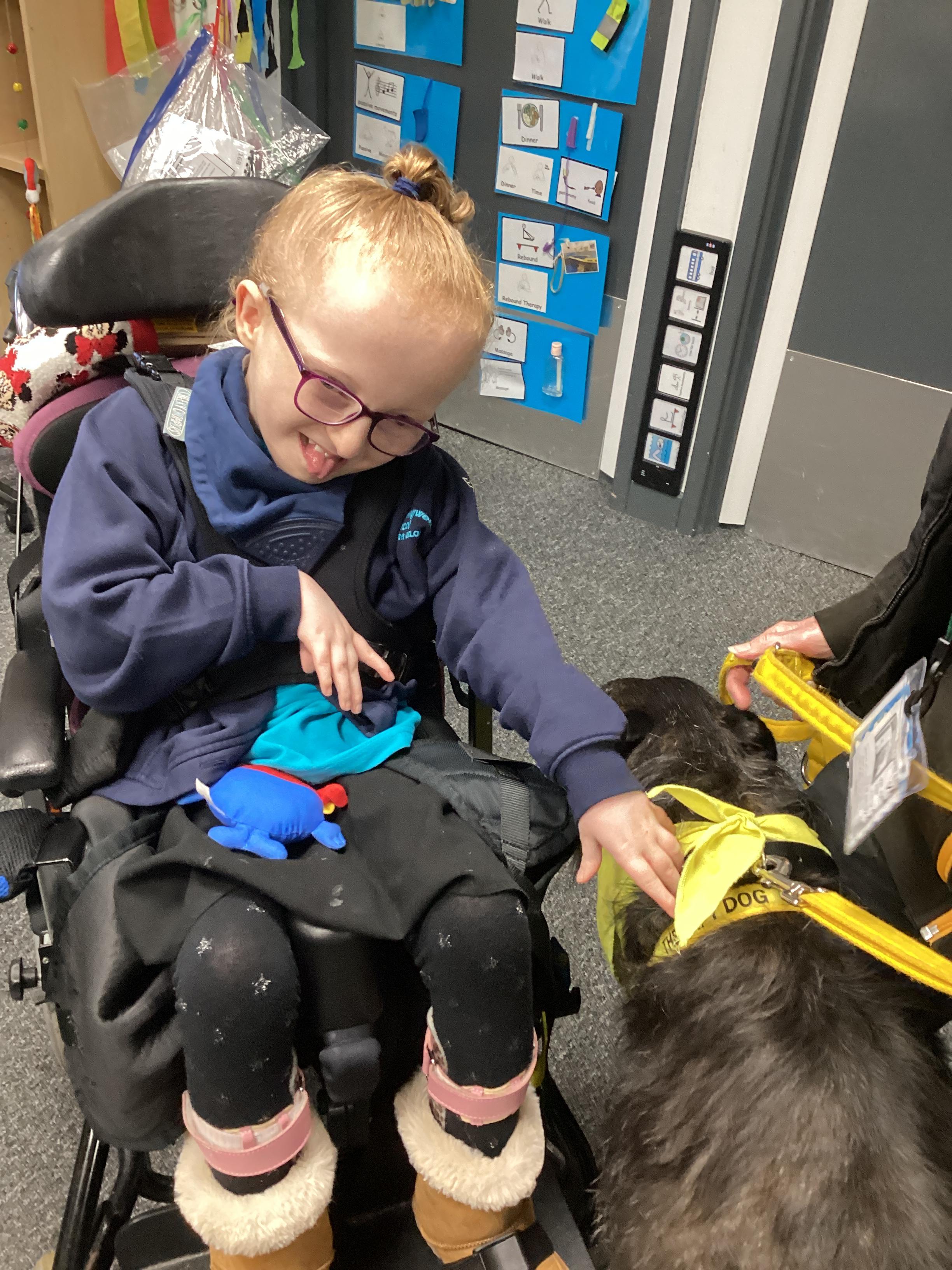 Lions Class have had another busy week including a bus trip into town, physio and communication activities and our usual therapy sessions. We seem to have had a 'dog' theme in class this week - we had a lovely visit from Joanna from the Library who shared a story about a dog called Jason. We then created our very own paper plate dog and on Thursday, Ronnie the therapy dog came to visit us.