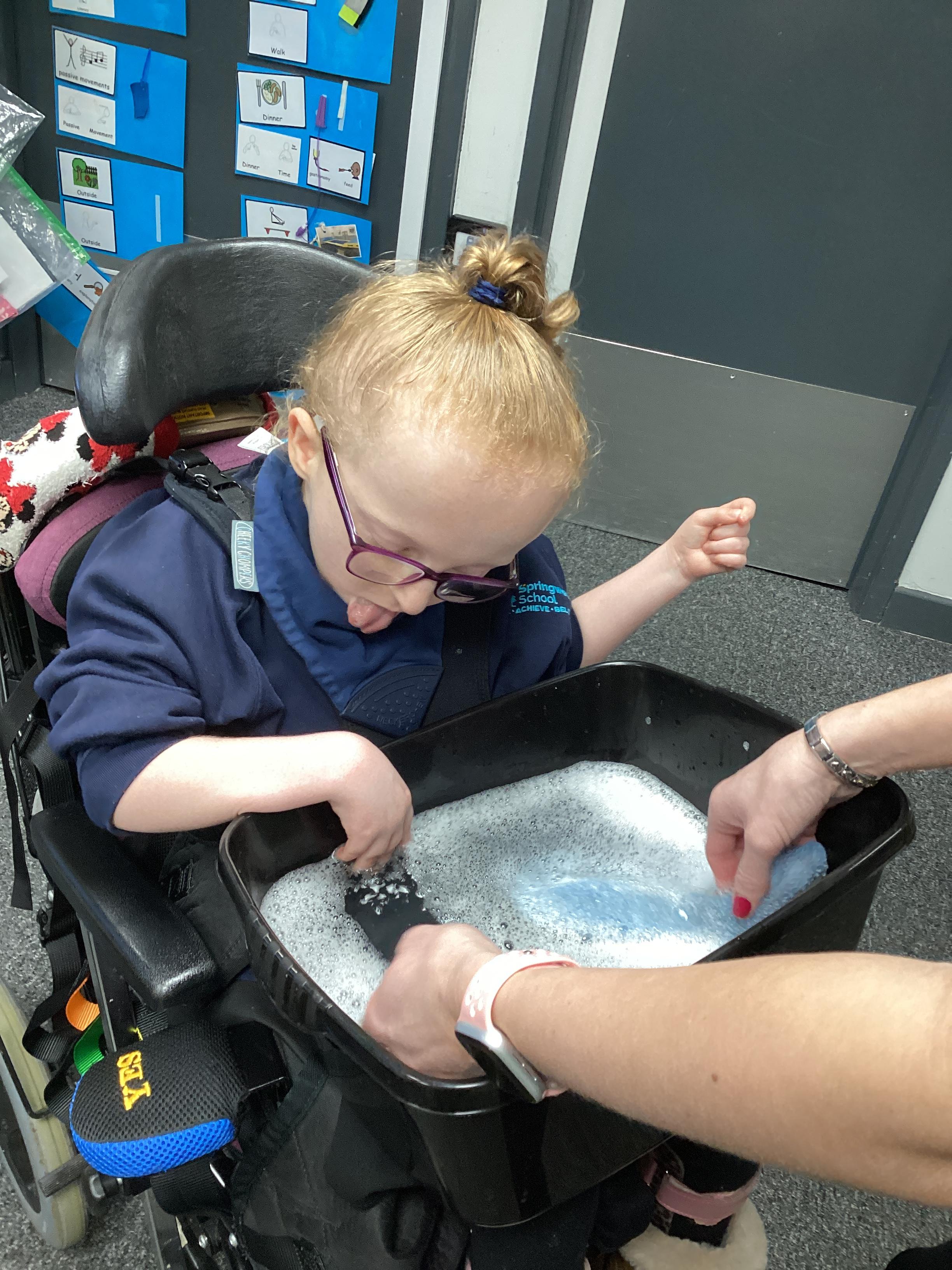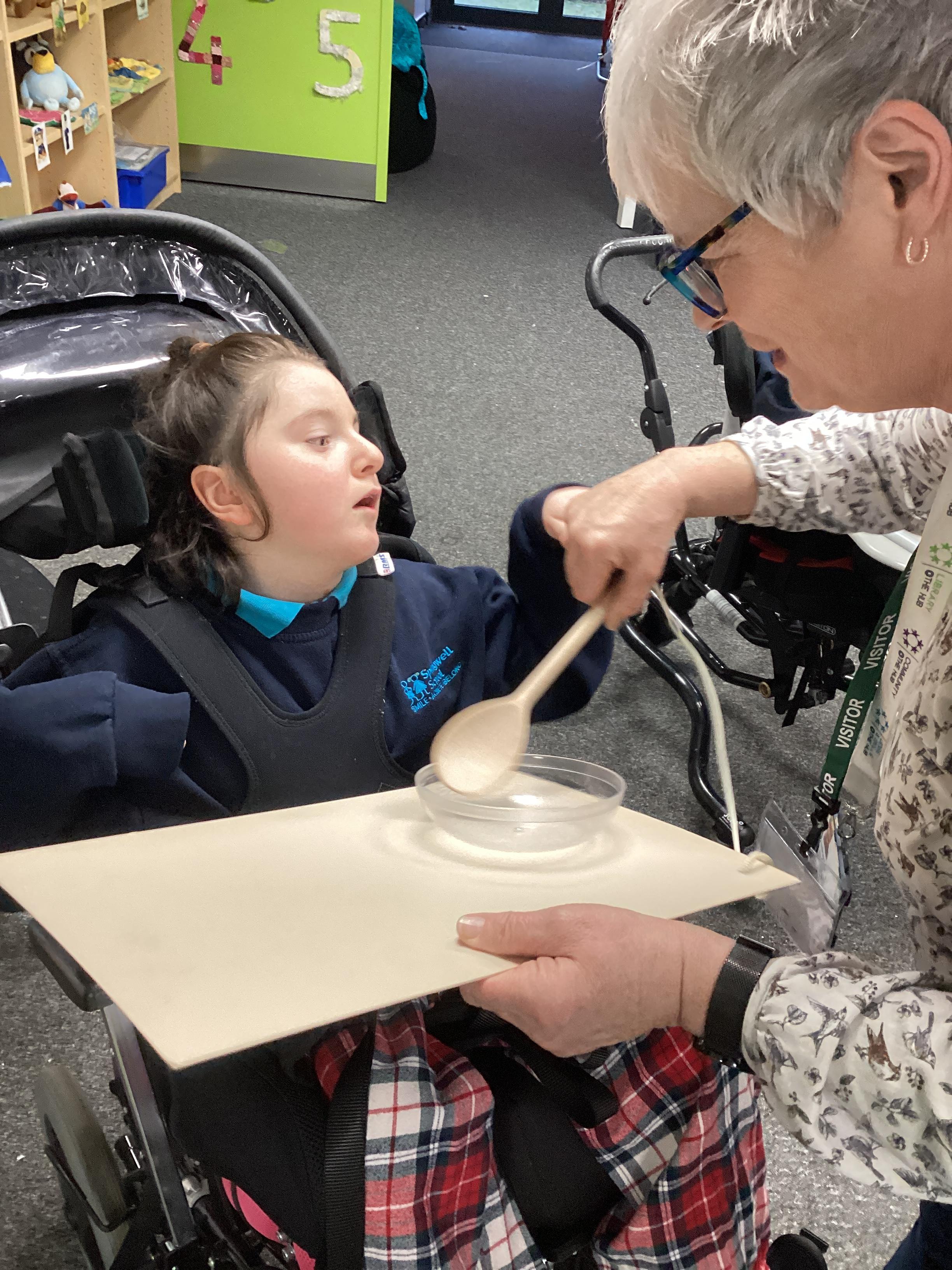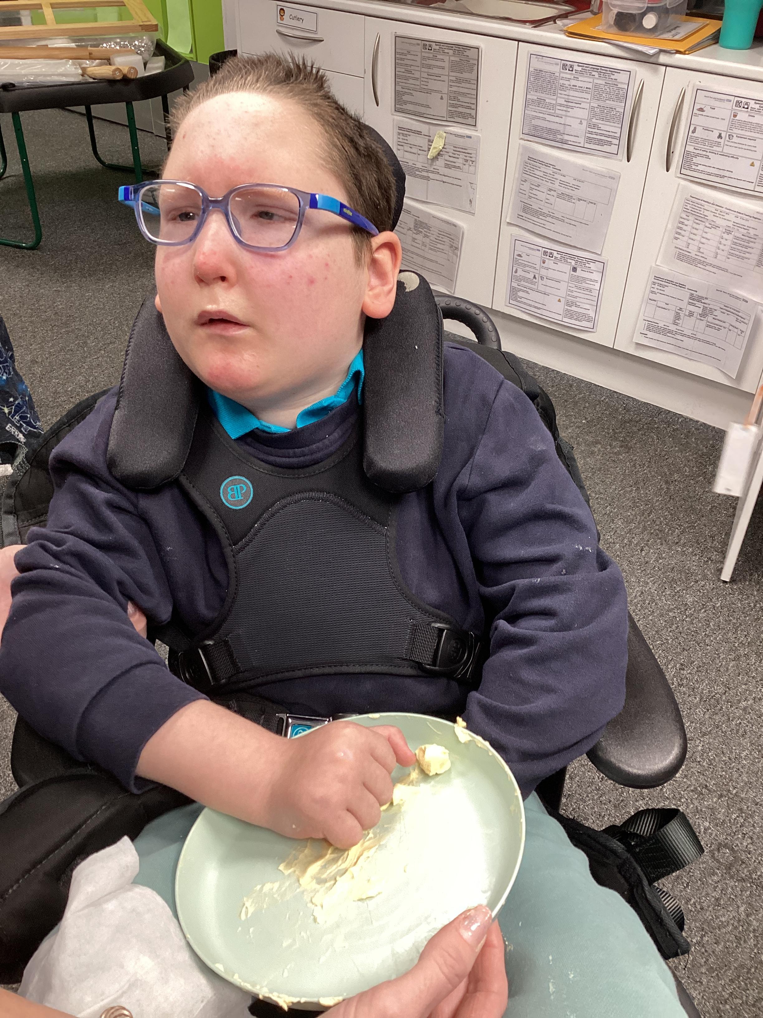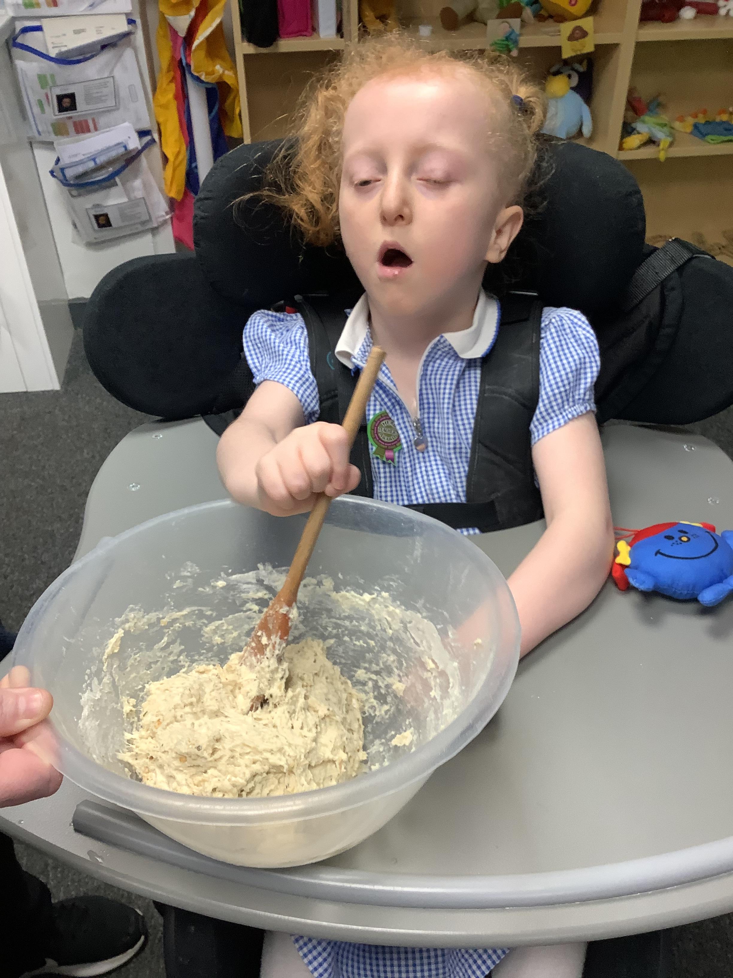 This week we have been very busy in Lion Class. We started the week with a sensory walk on Monday morning, we worked hard on our physio plans to support our physical development and continued to challenge ourselves with working towards our PLP targets. On Wednesday, families were invited to 'Share a Story' where we engaged in a sensory story all about Space. Keeping with the theme, we made rock buns in Cookery on Thursday and we went shopping to Lidl to explore the sights and smells on offer.