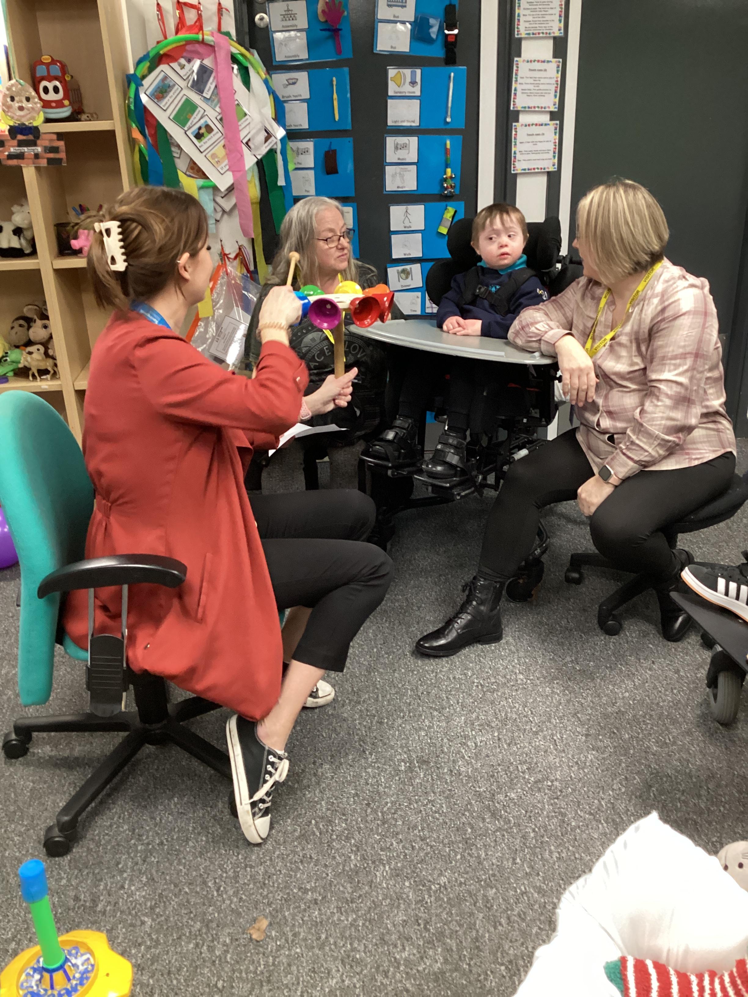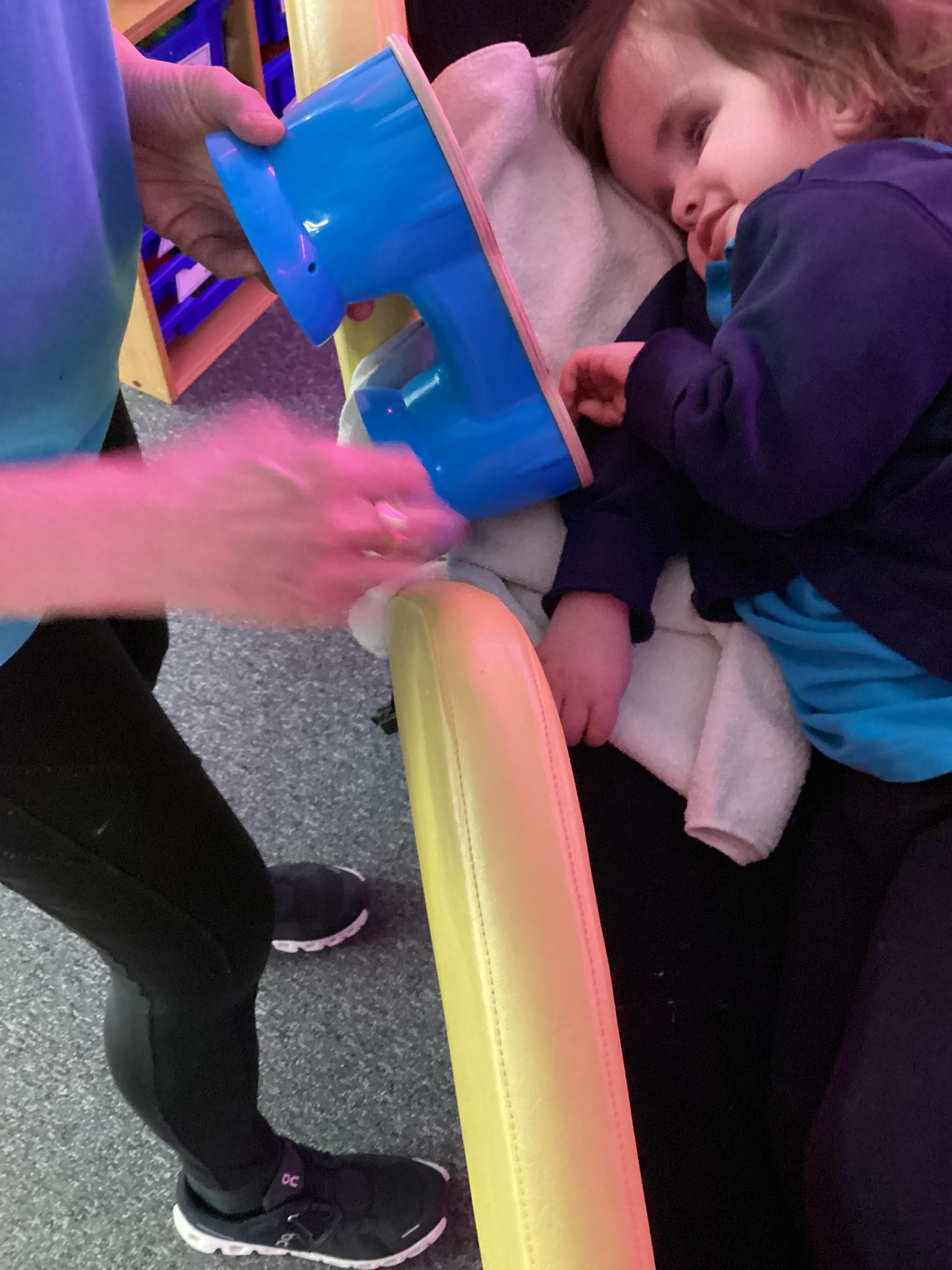 With the icy weather preventing us from visiting the library today, we had our own rhythm and rhyme time in class with some children from Anaconda class. We listened to music and picked which instrument we wanted to play.