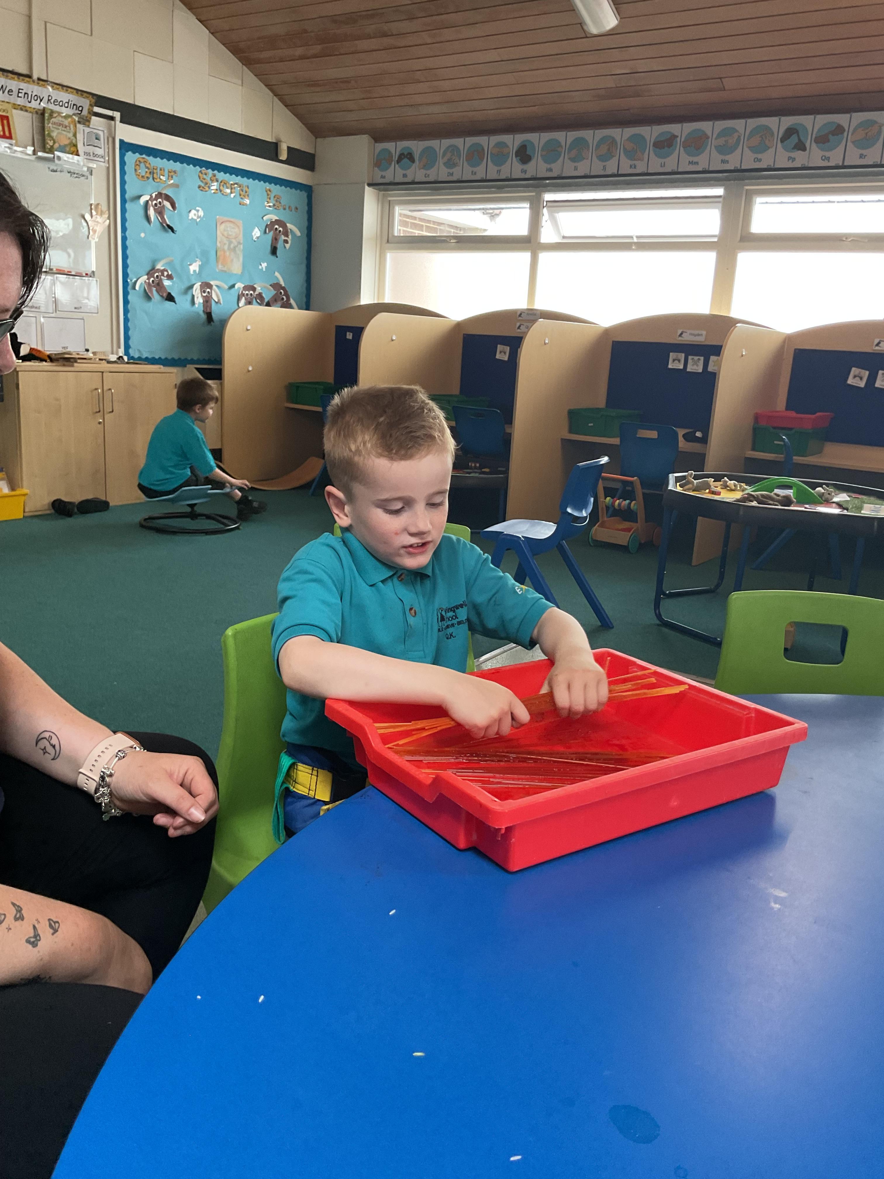 18.6.25 - This morning the Toucans all selected different toys and games to play with during free play time. We had a great time with drawing pads, making towers, using the sensory equipment and some messy play. It was lots of fun!