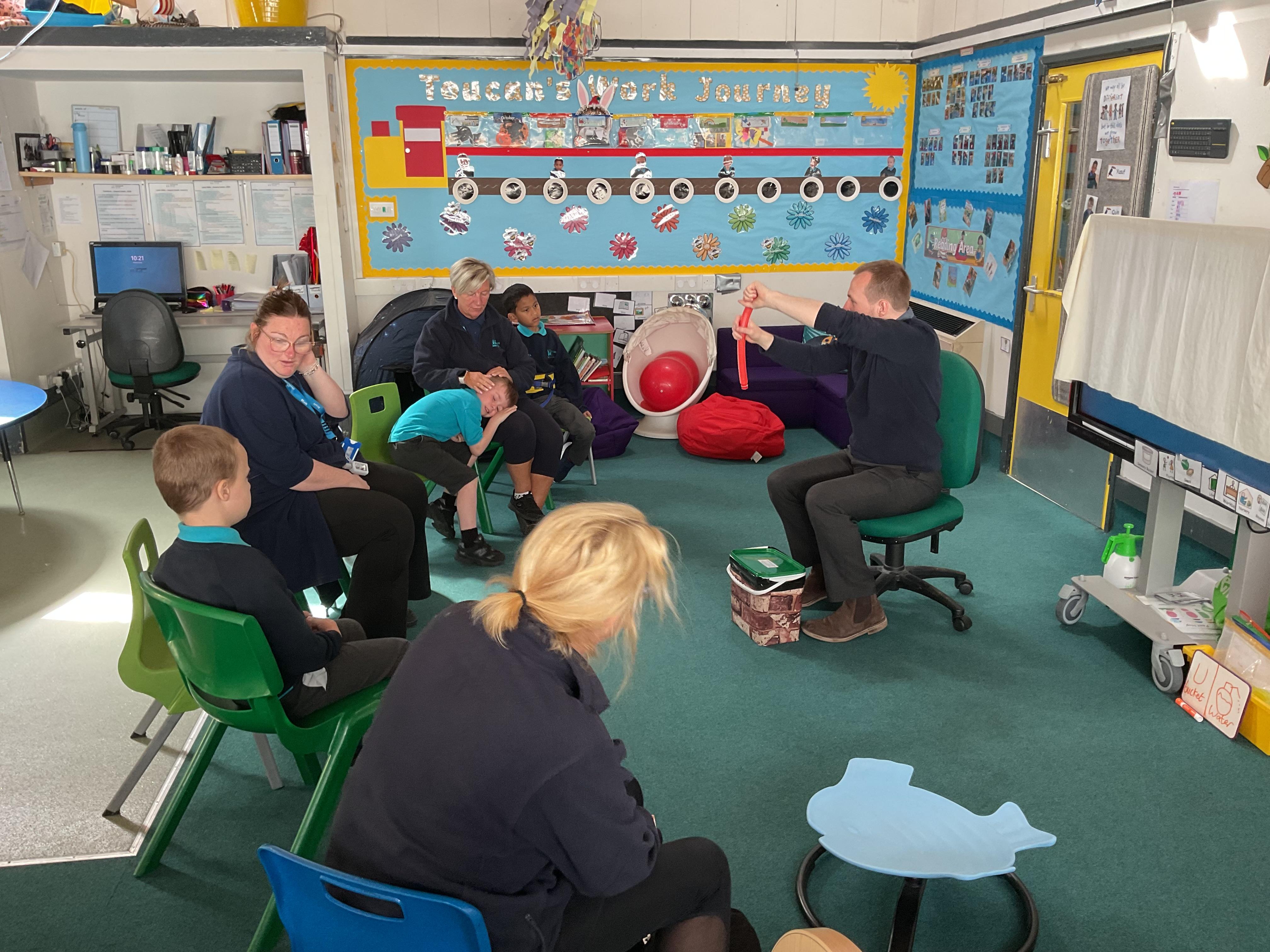 22.5.25 - Today the children enjoyed an Attention Autism session. They anticipated all of the items in the bucket and were excited to interact with them. Everyone waited patiently for their turn, the children love the sessions which help to build up their concentration levels and tolerance sitting in a social group. Well done Toucans!